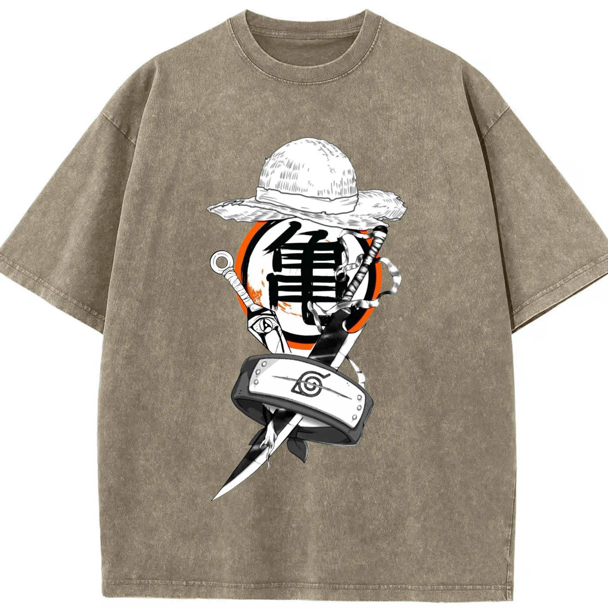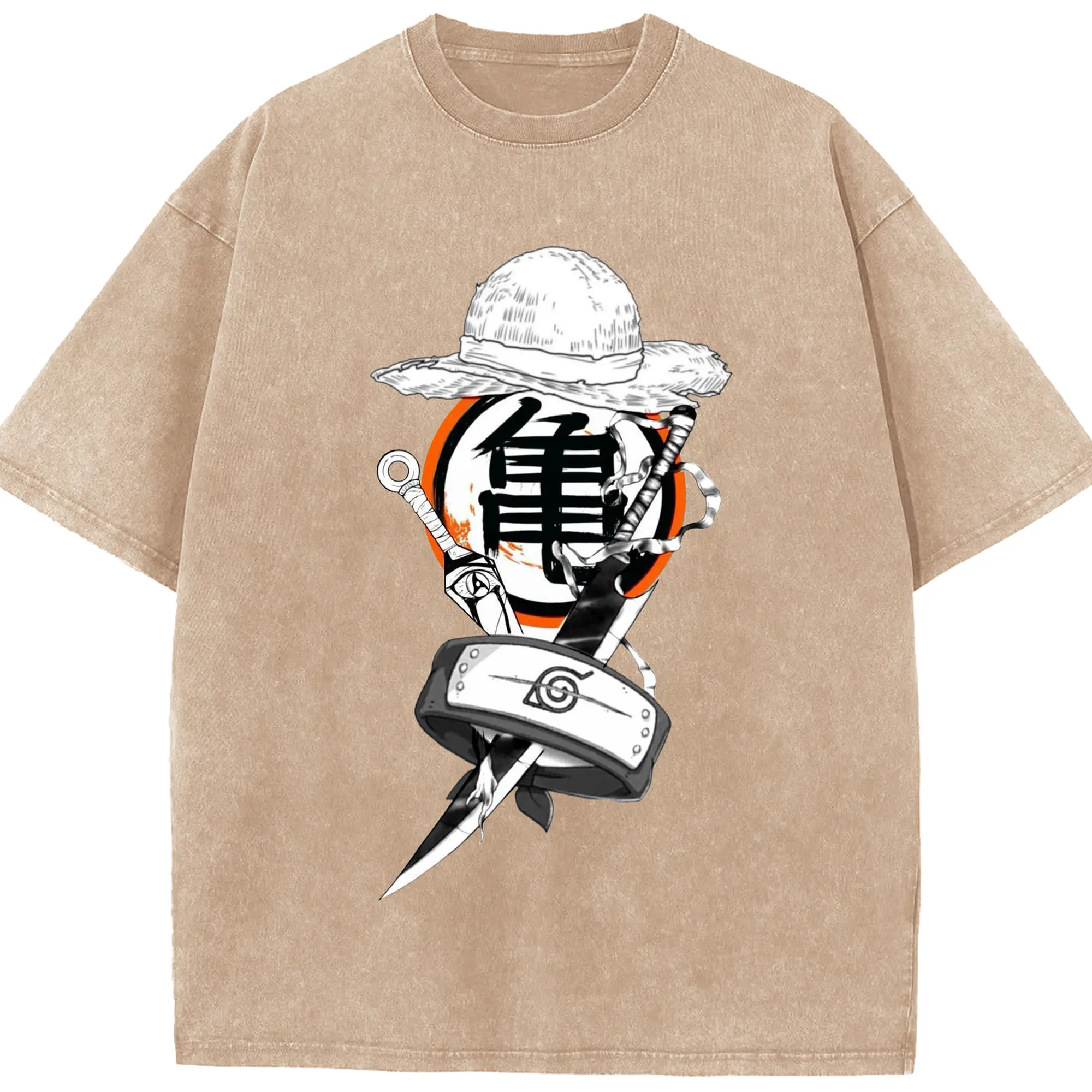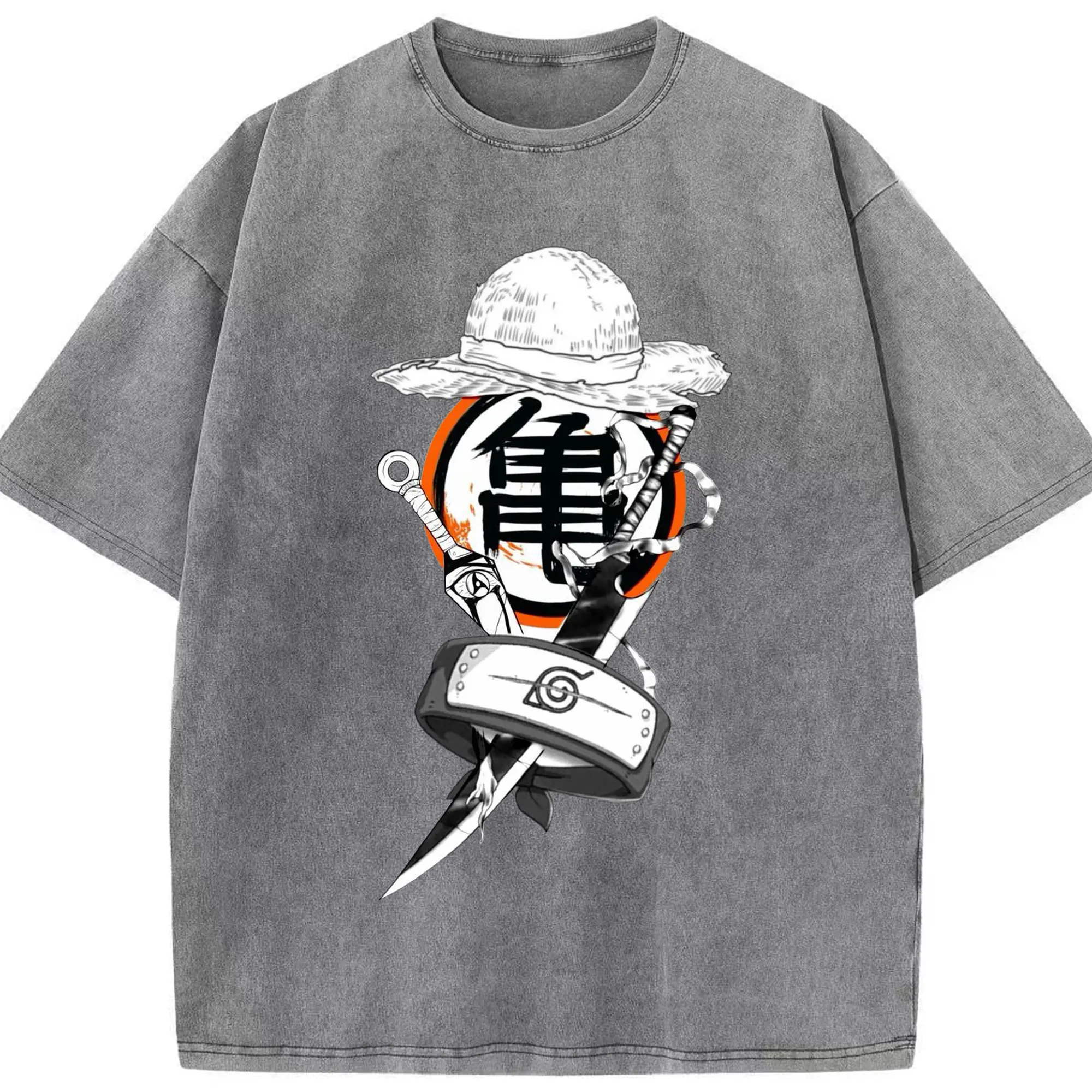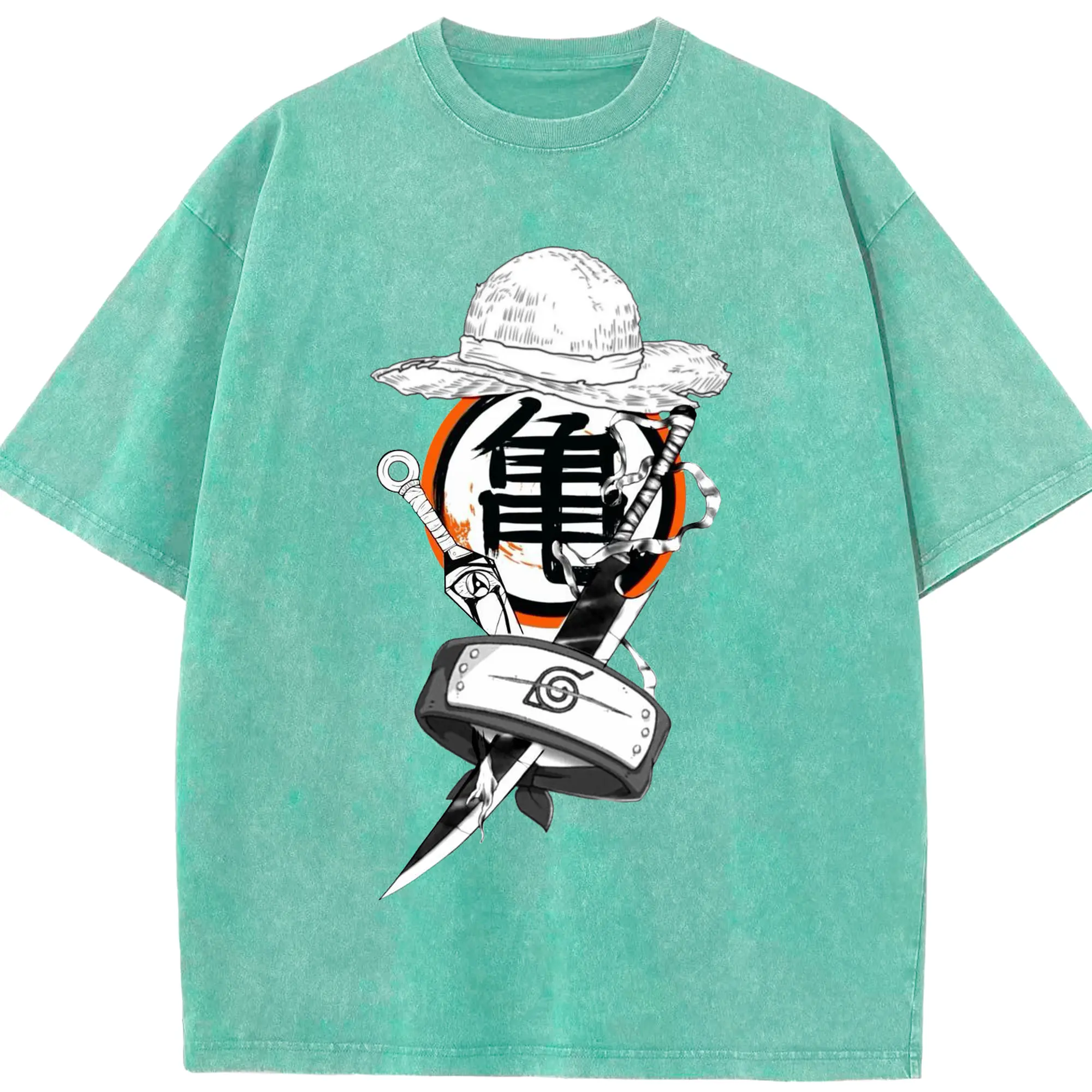 うずまき ナルトワンピース ドラゴンボールコラボ限定 - 綿100% 半袖Tシャツ ・ フロントプリント ・ 快適 通気性 ・ 日常使い 散歩 スポーツ用