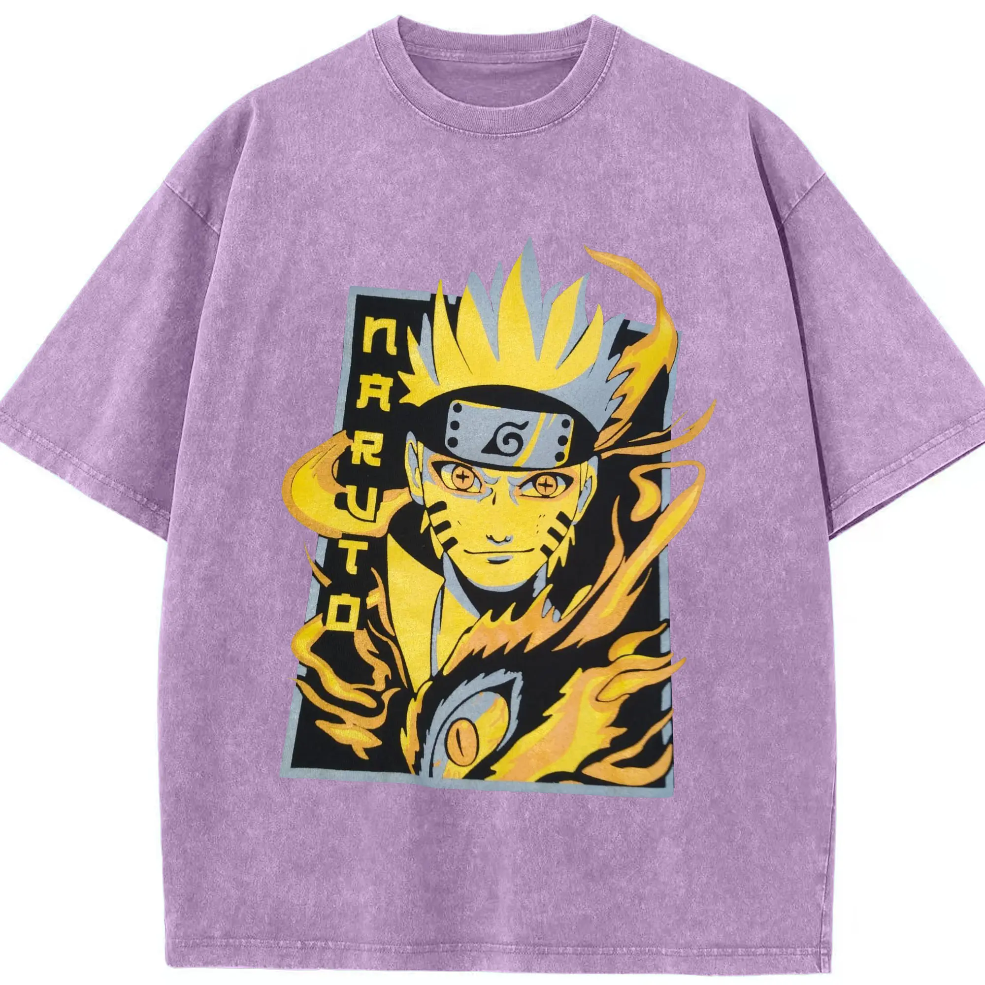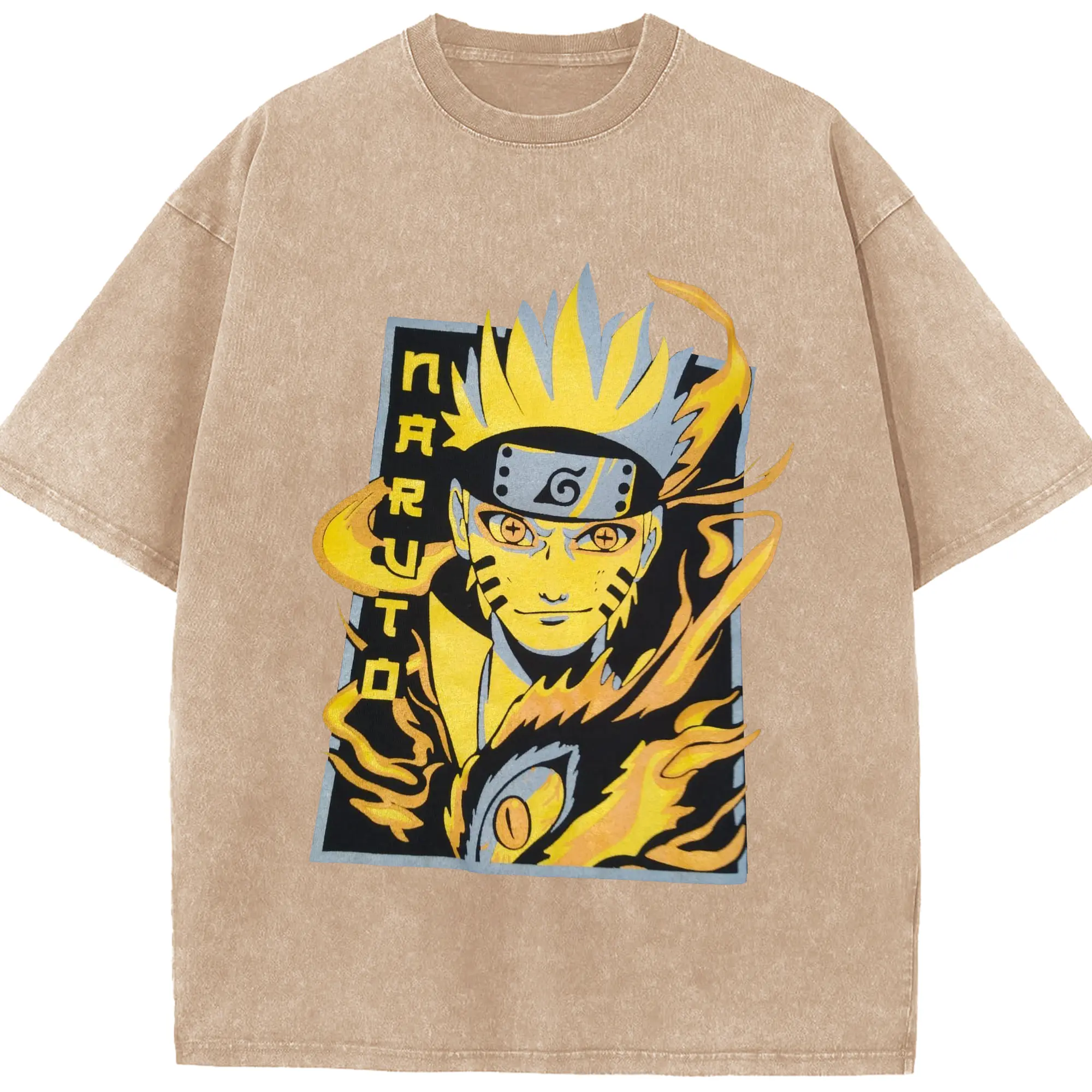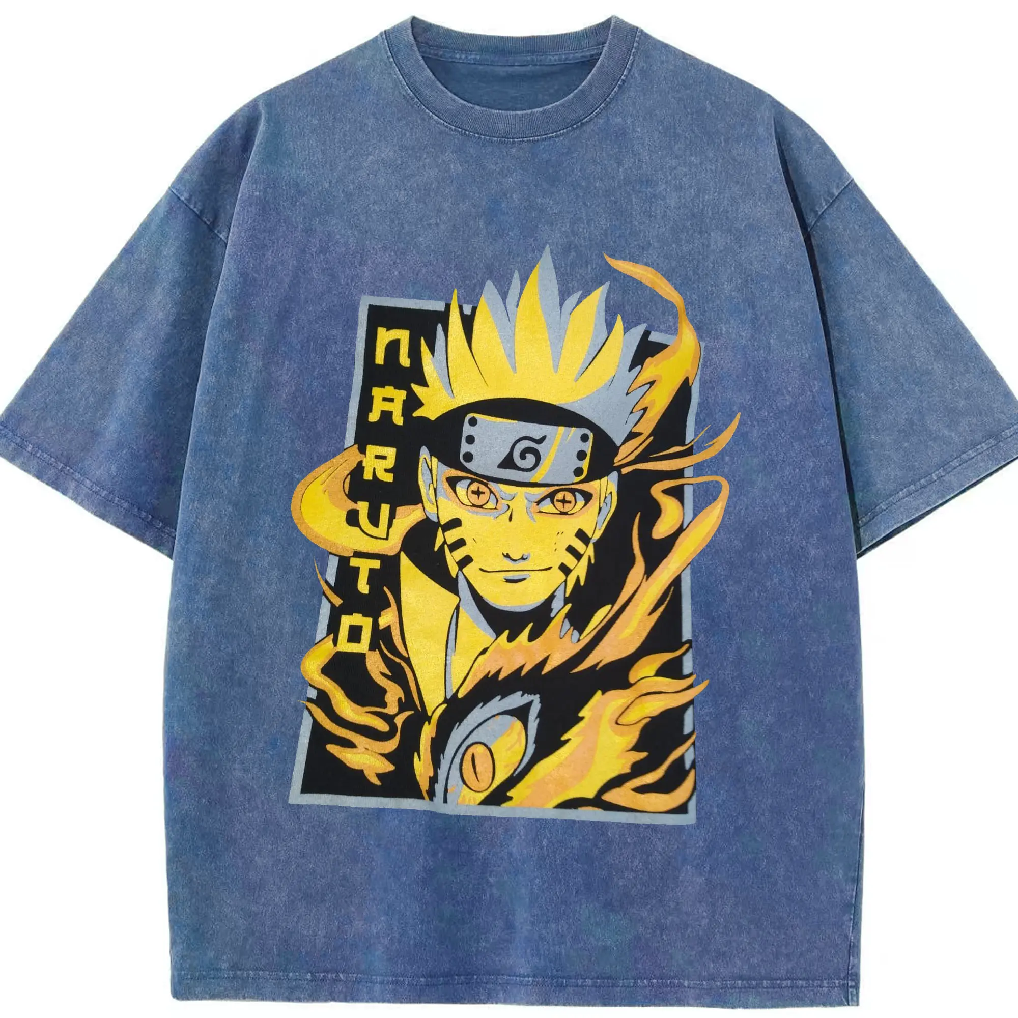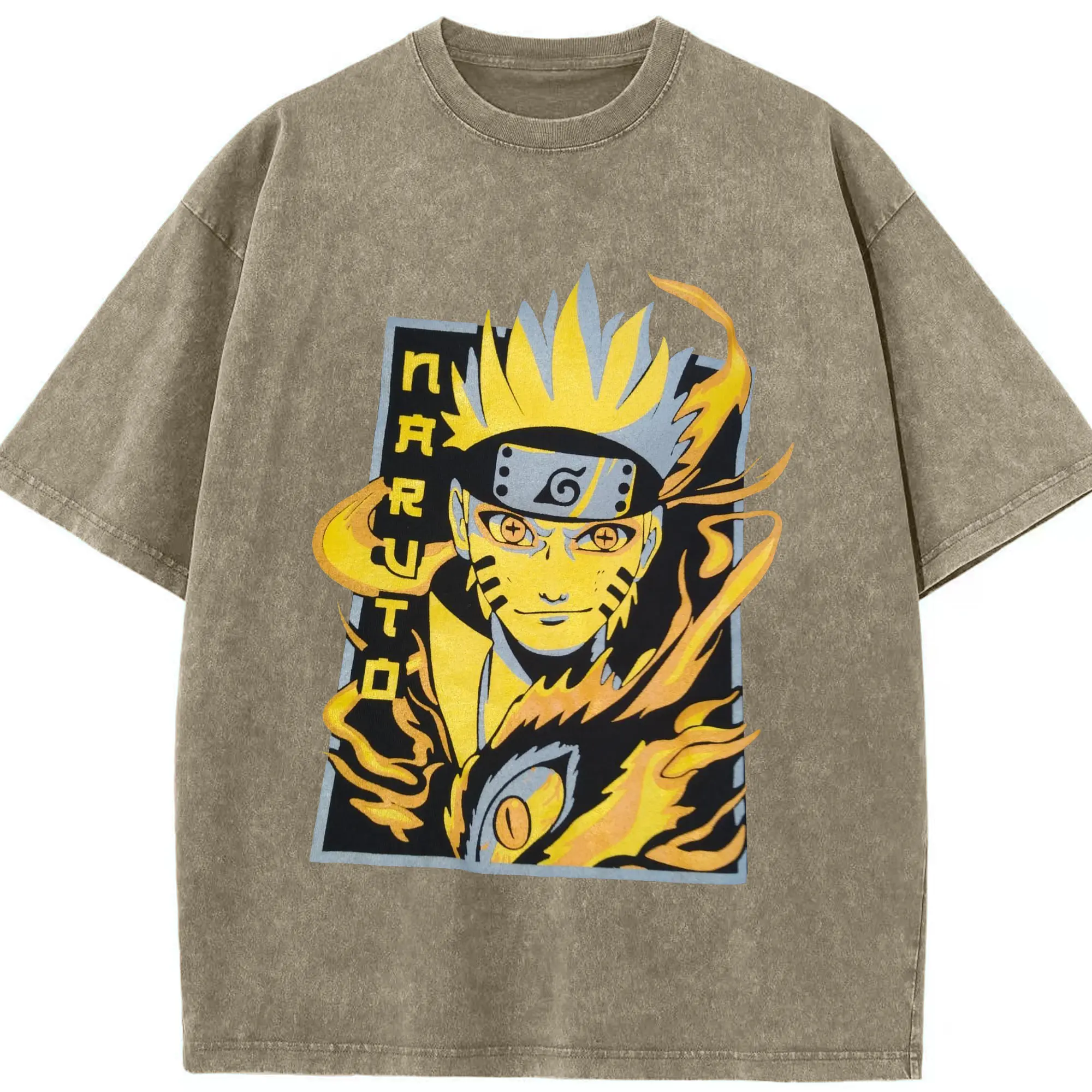 うずまき ナルト ナルト 仙人モード - 綿100% ヴィンテージ風 半袖Tシャツ ・ フロントプリント ・ 柔らか肌触り ・ 通気性 快適 ・ スポーツ カジュアル 外出用
