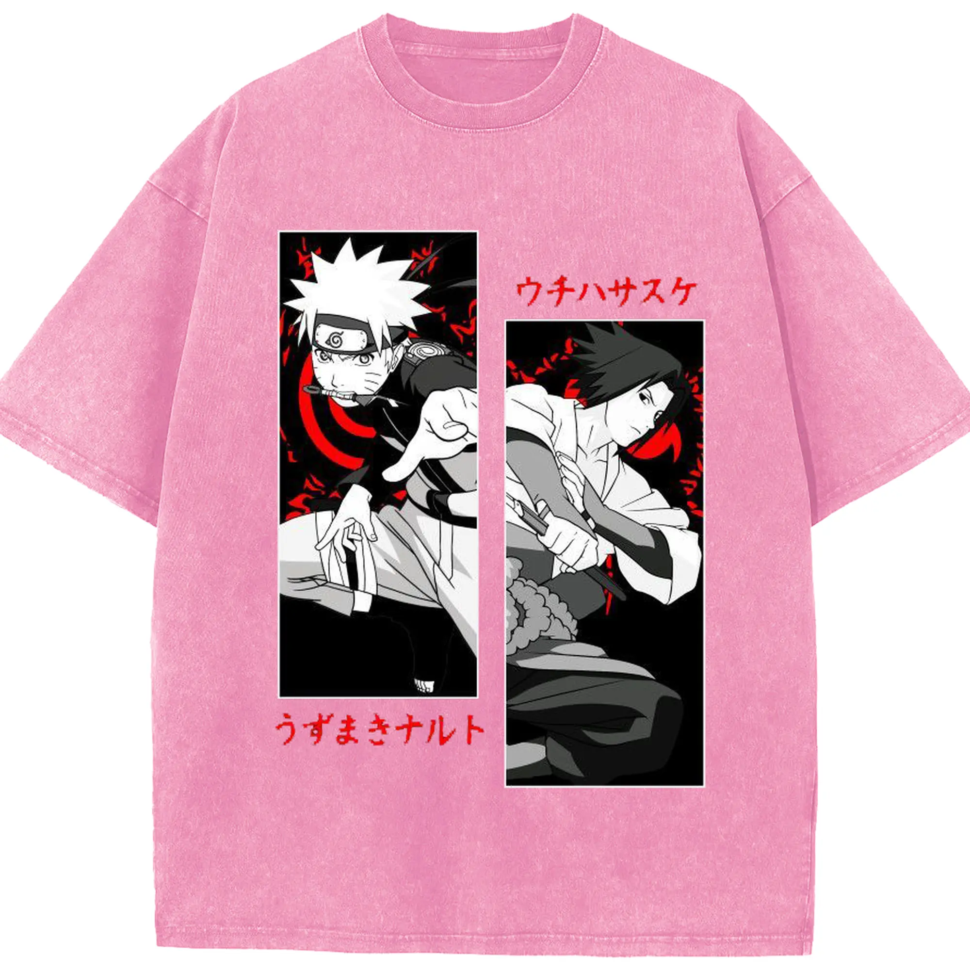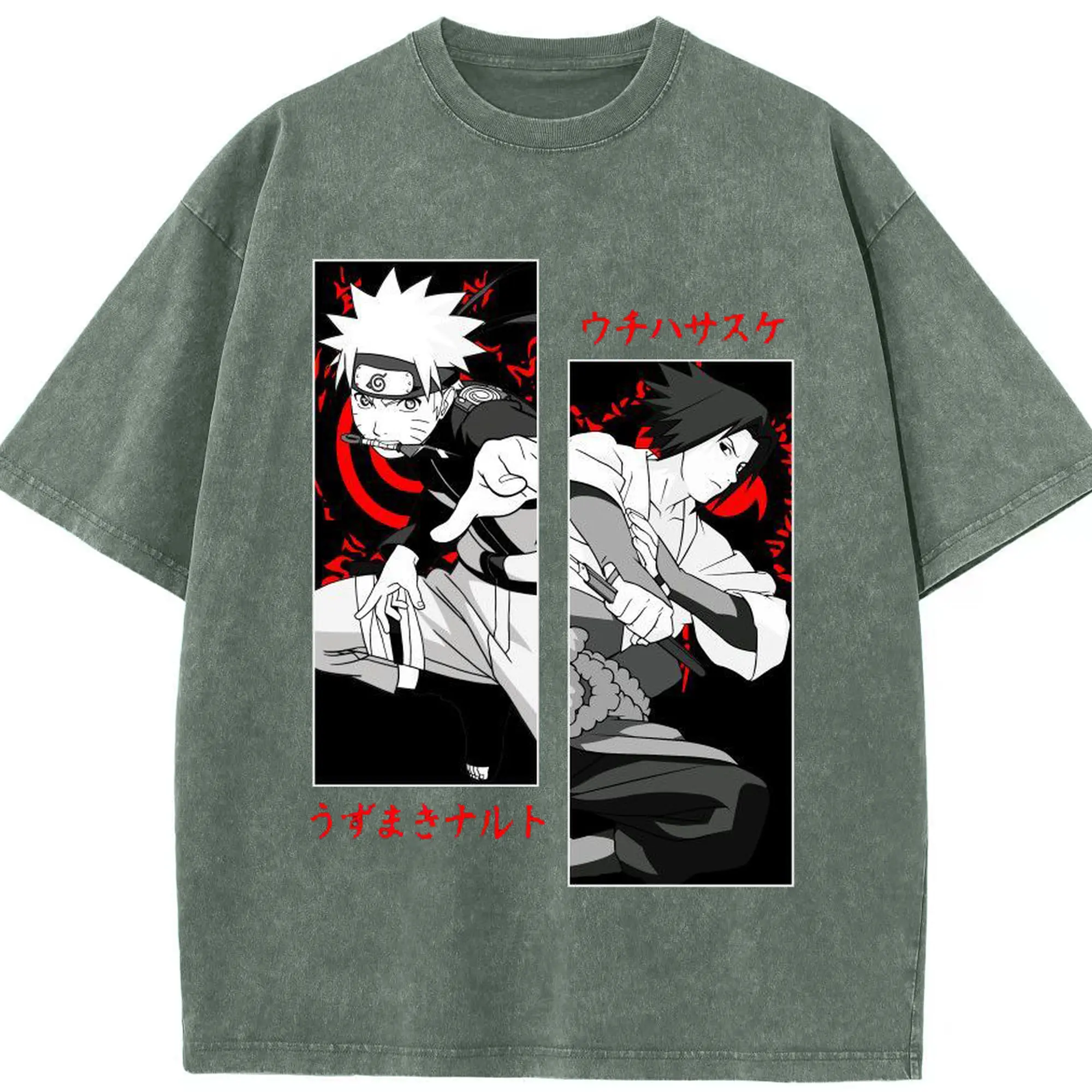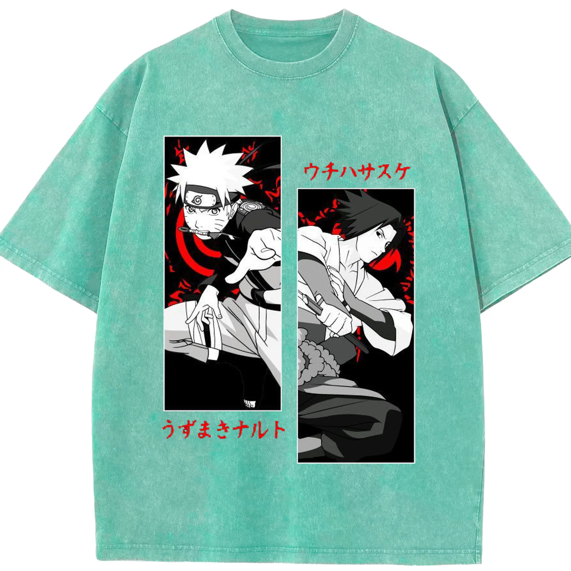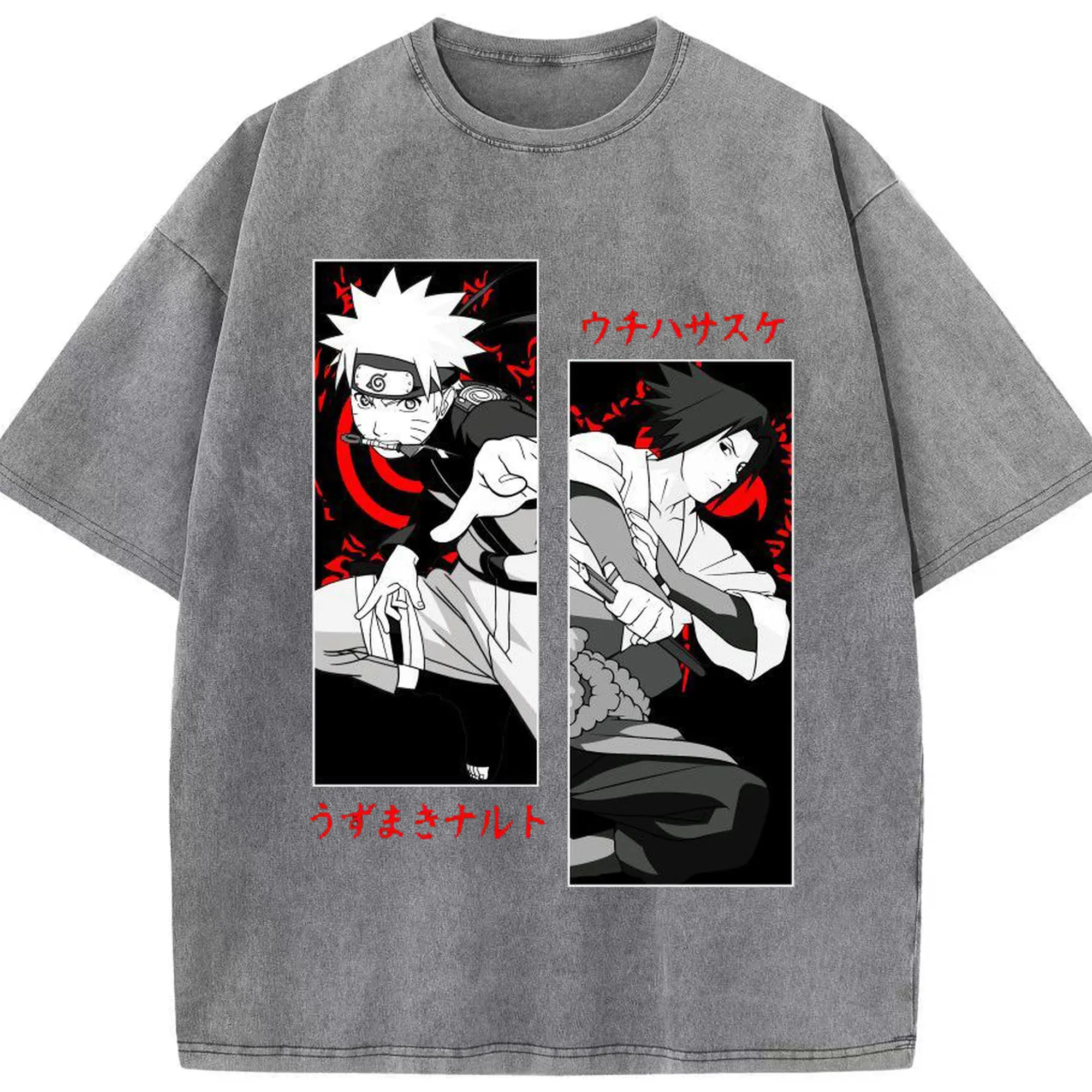 うずまき ナルト ナルト サスケ対決 - 綿100% 半袖Tシャツ ・ フロントプリント ・ 快適 通気性 ・ 日常使い 散歩 スポーツ用