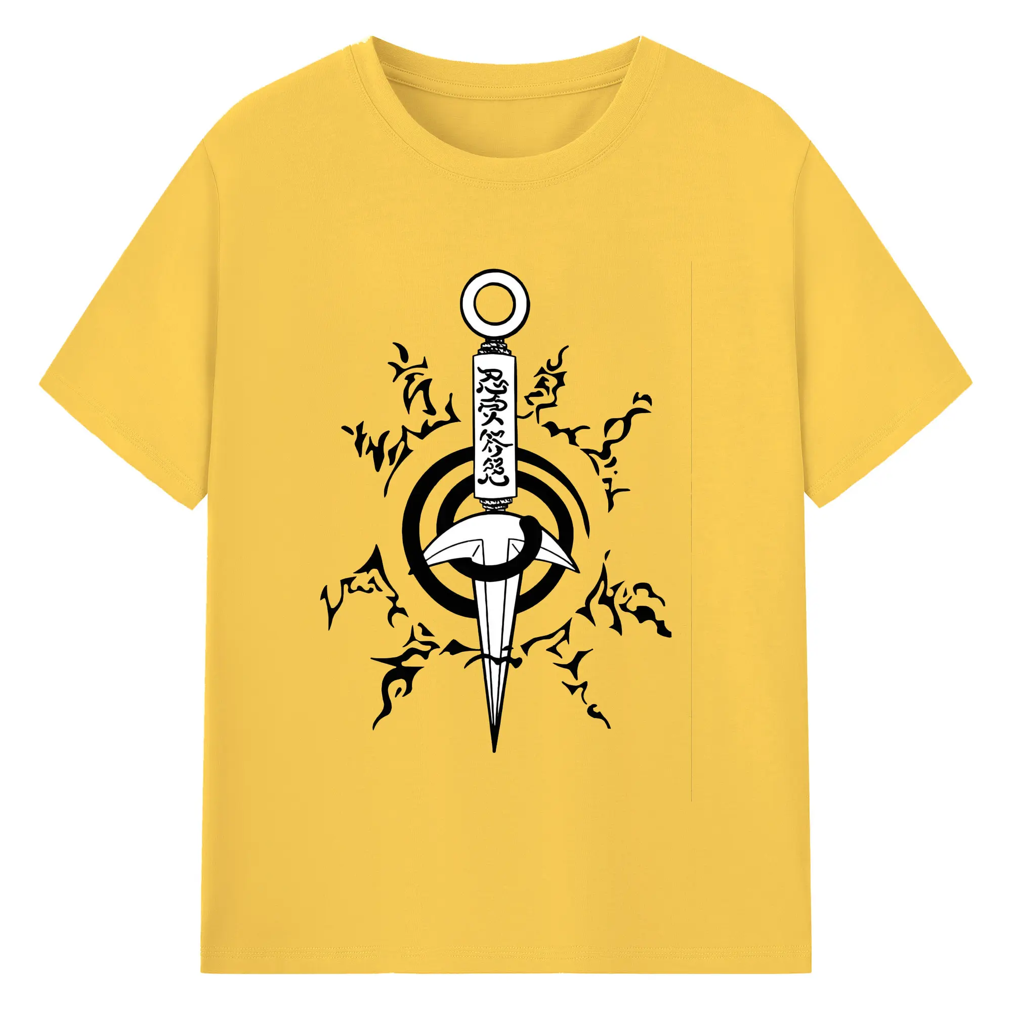 うずまき ナルト 九尾の封印 - 綿100% 半袖Tシャツ ・ フロントプリント ・ 快適 通気性 ・ 日常使い 散歩 スポーツ用