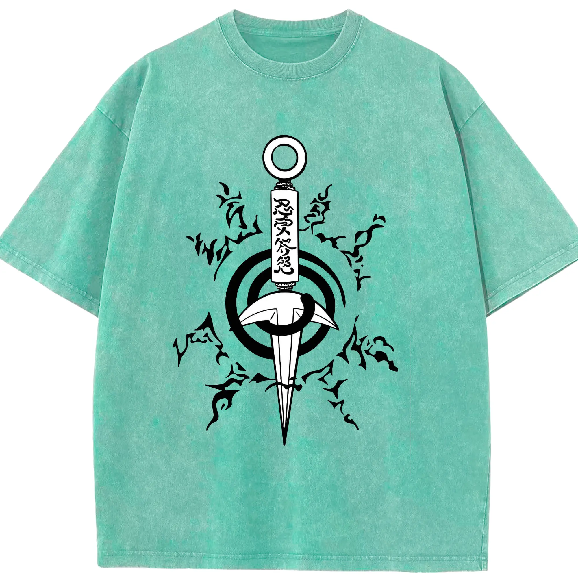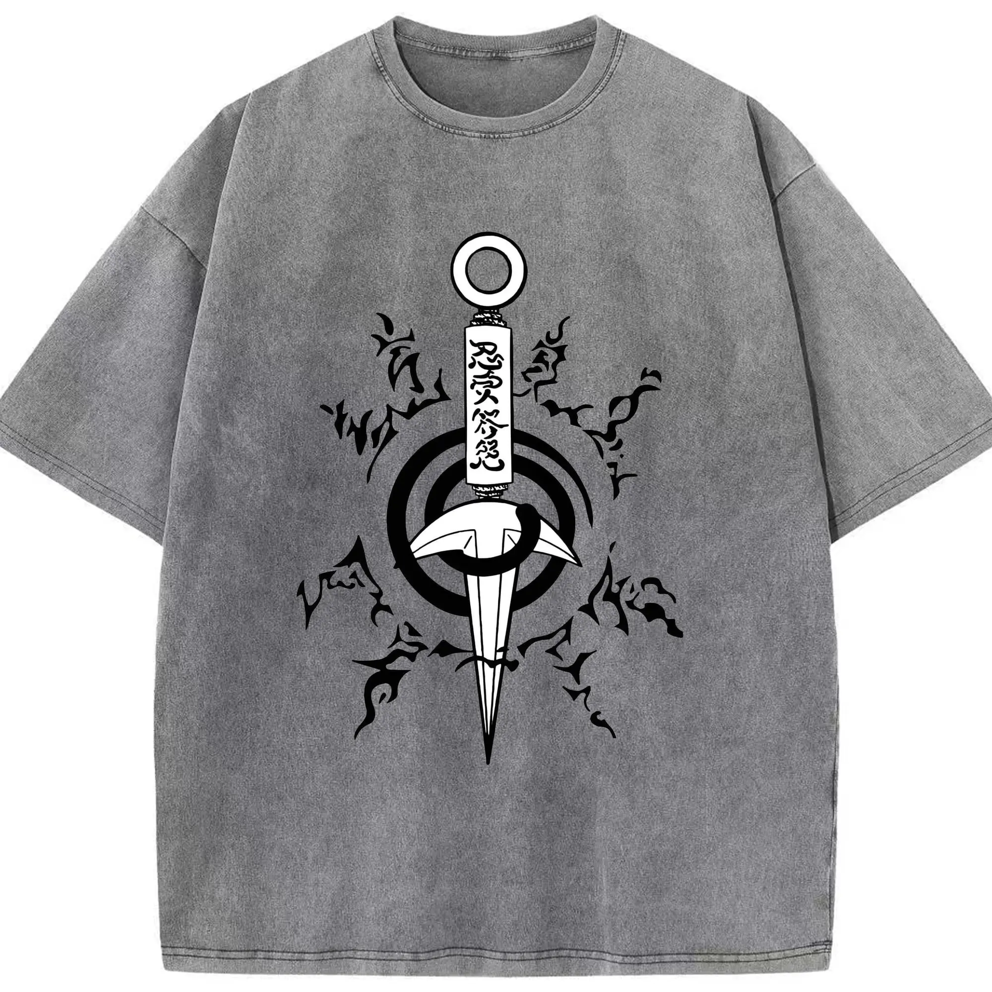 うずまき ナルト 九尾の封印 - 綿100% ヴィンテージ風 半袖Tシャツ ・ フロントプリント ・ 柔らか肌触り ・ 通気性 快適 ・ スポーツ カジュアル 外出用