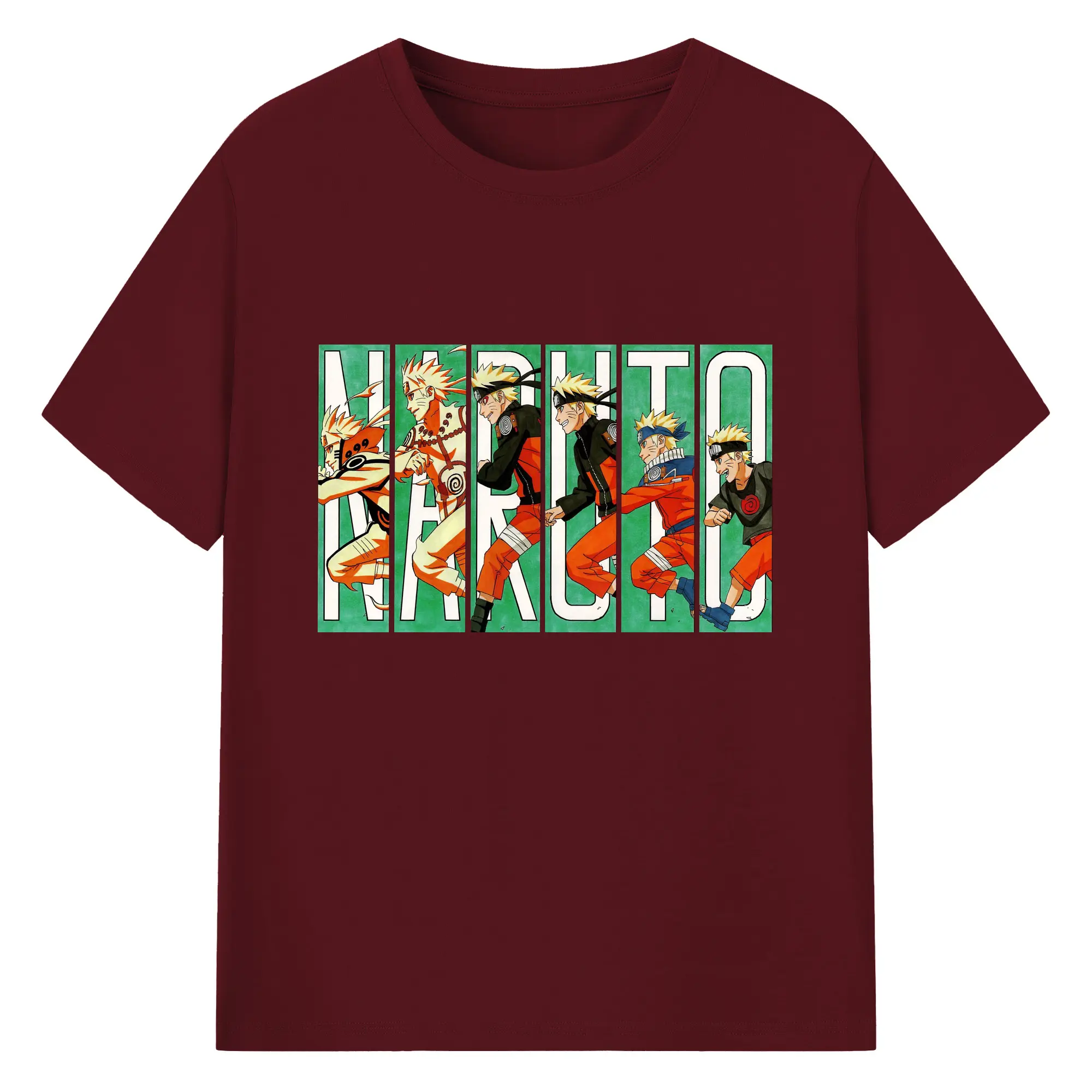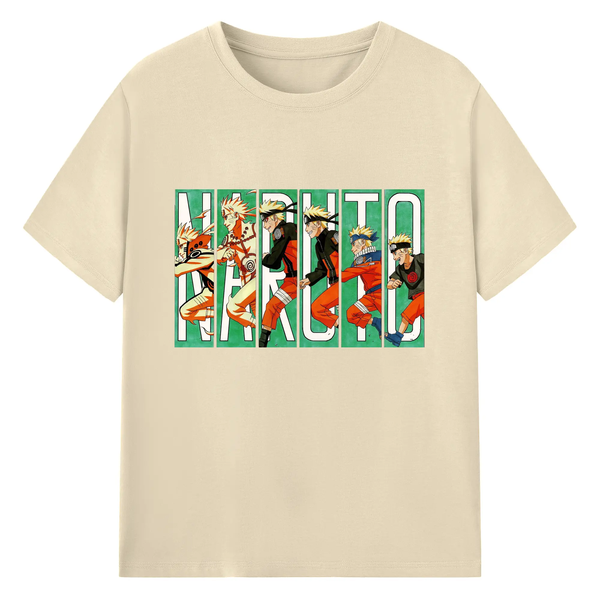 うずまき ナルト 修行の旅 - 綿100% ヴィンテージ風 半袖Tシャツ ・ フロントプリント ・ 柔らか肌触り ・ 通気性 快適 ・ スポーツ カジュアル 外出用