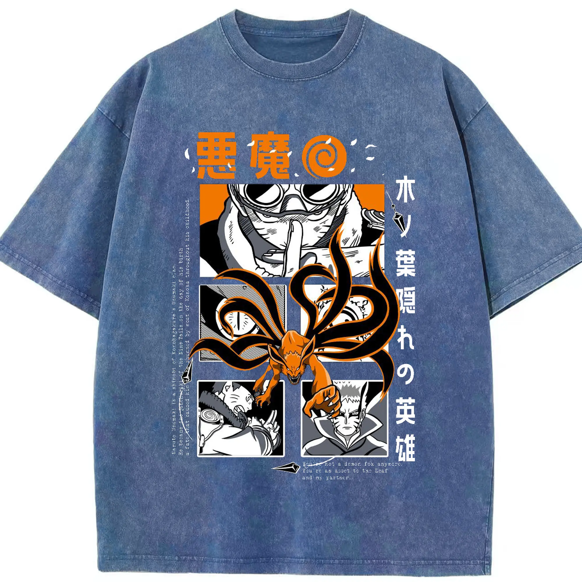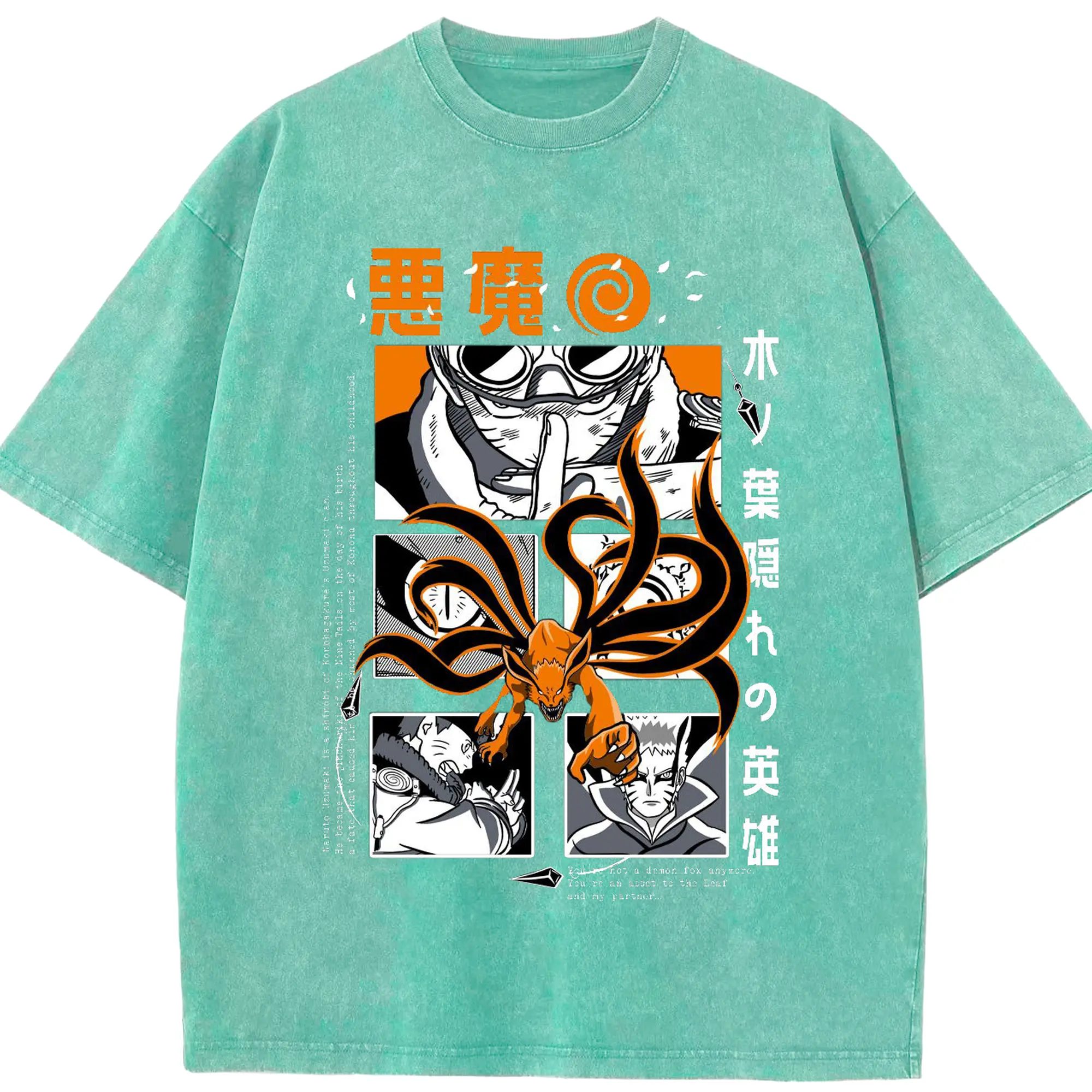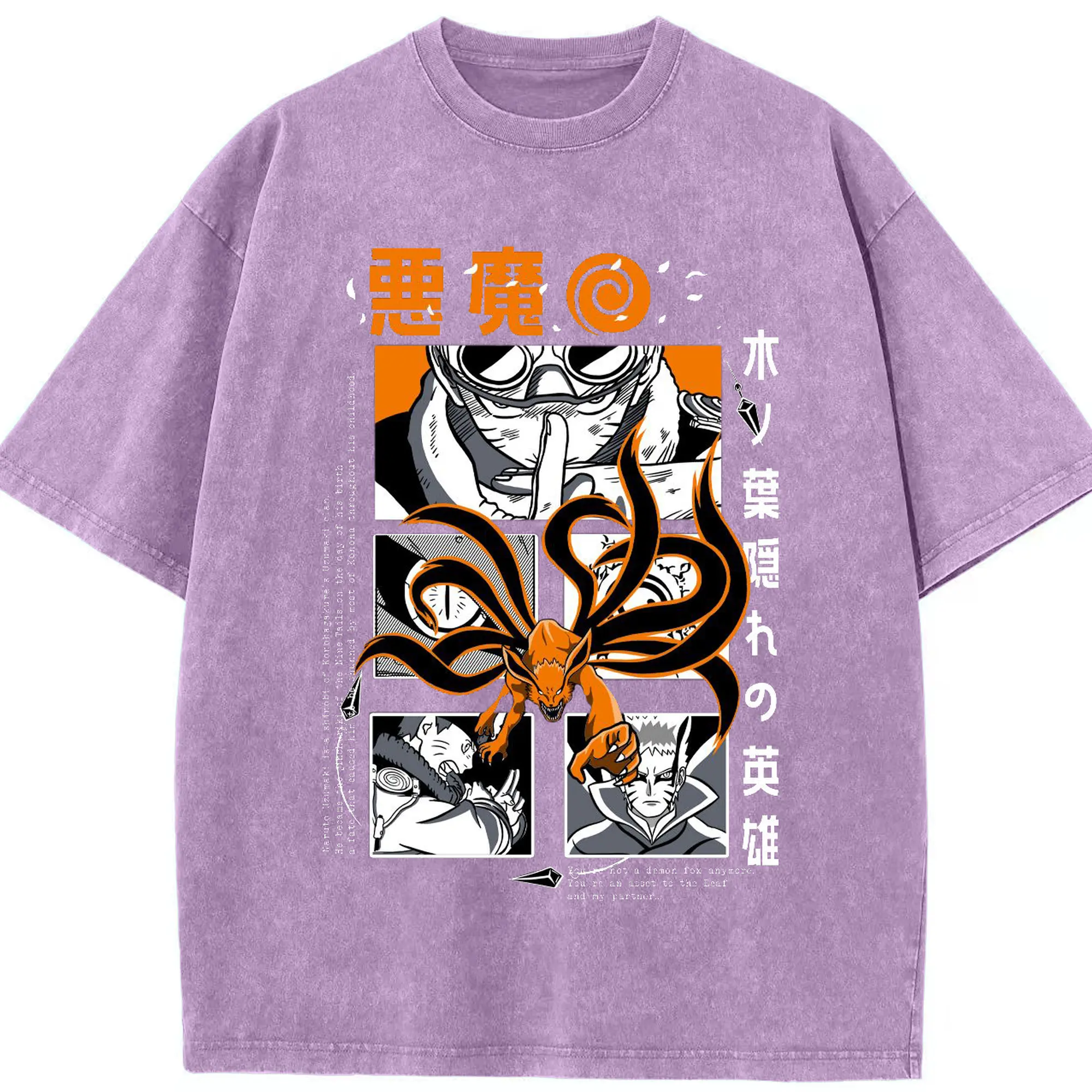 うずまき ナルト 尻尾化 九尾の封印 - 綿100% 半袖Tシャツ ・ フロントプリント ・ 快適 通気性 ・ 日常使い 散歩 スポーツ用