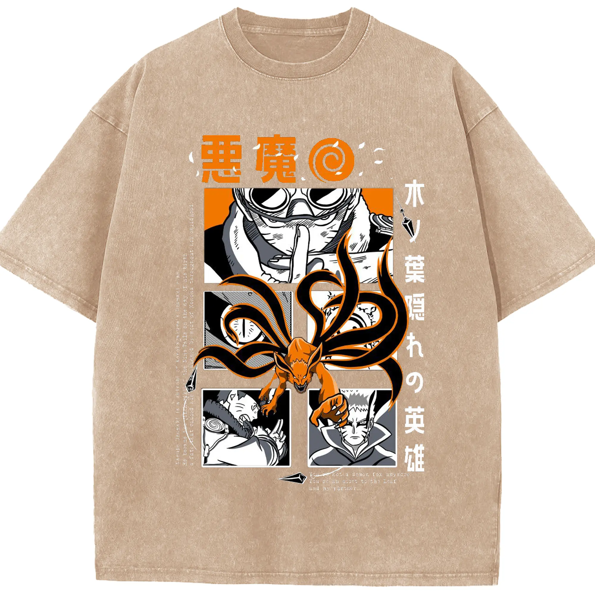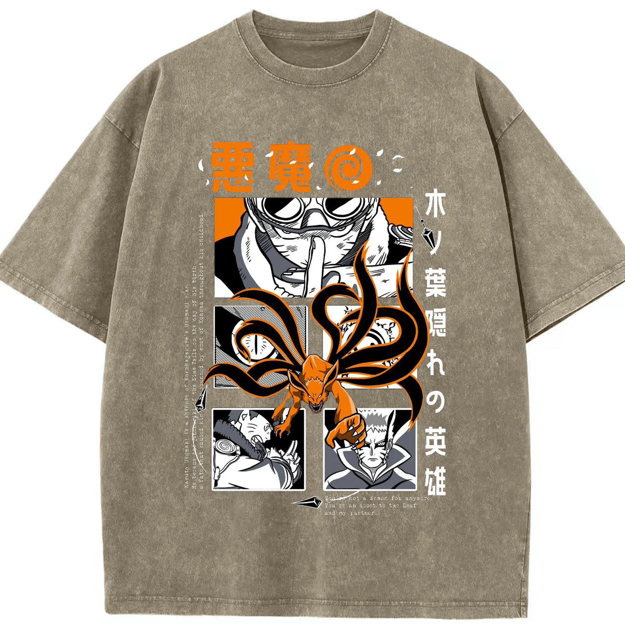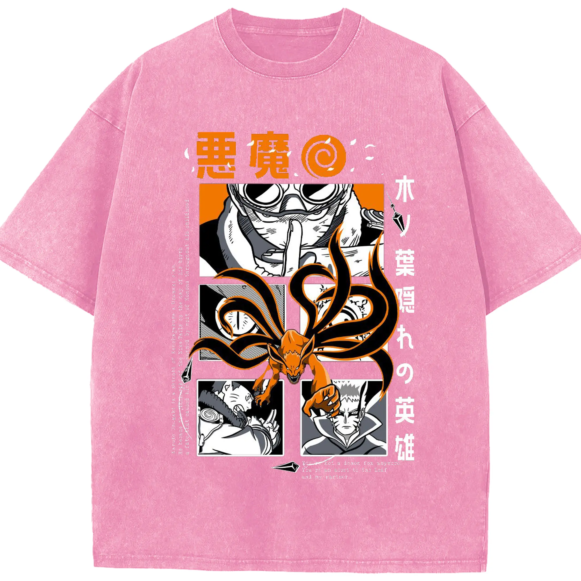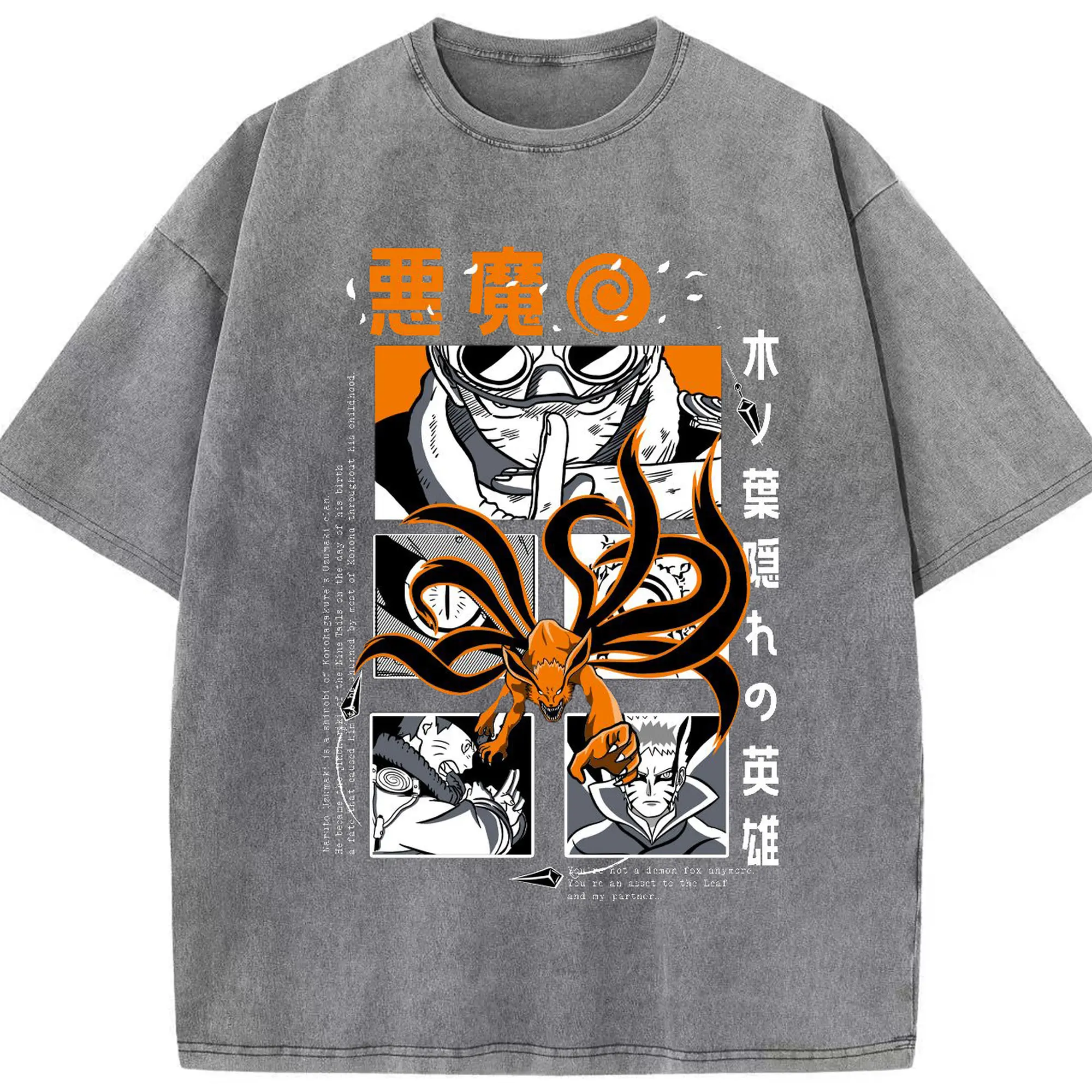 うずまき ナルト 尻尾化 九尾の封印 - 綿100% 半袖Tシャツ ・ フロントプリント ・ 快適 通気性 ・ 日常使い 散歩 スポーツ用