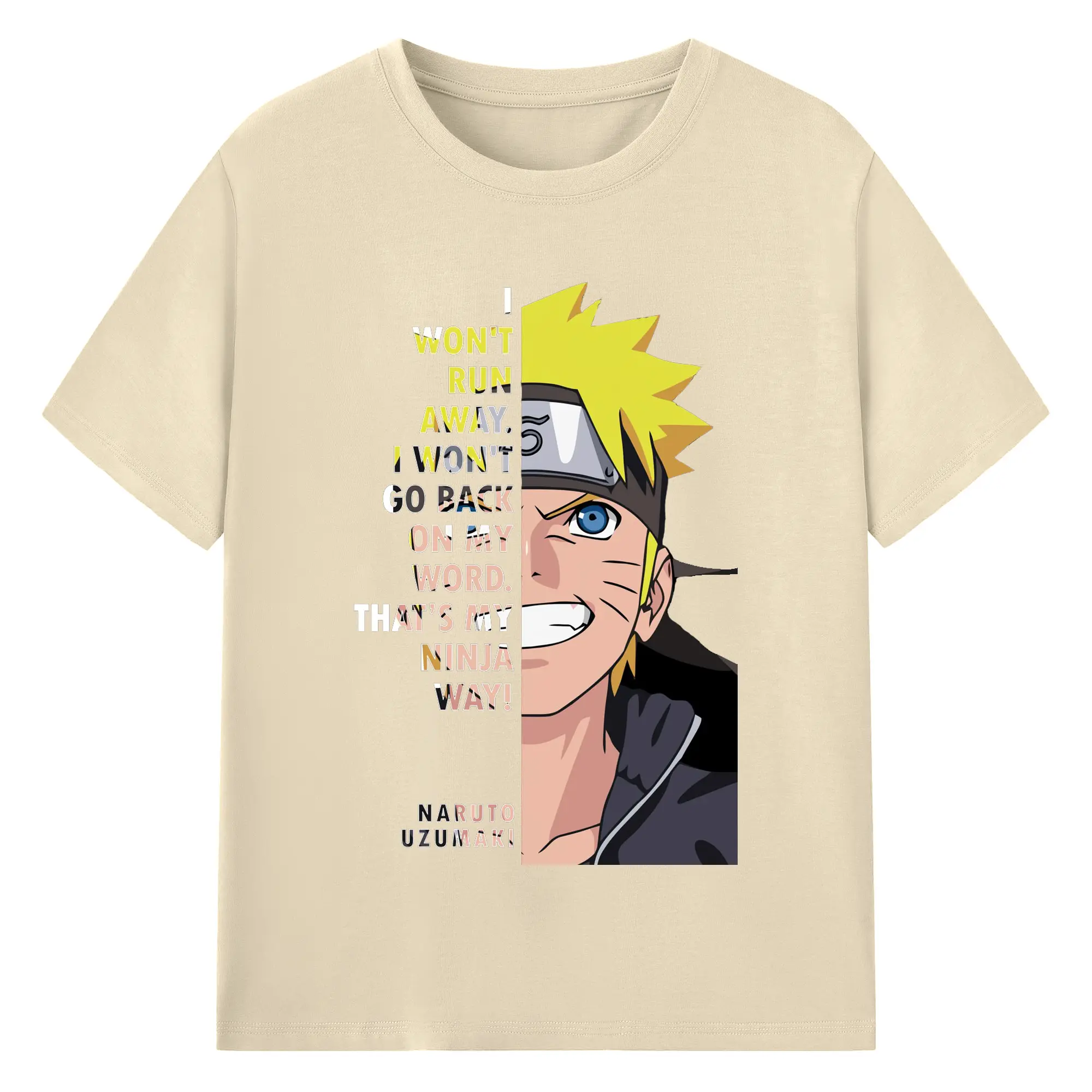 うずまき ナルト - 綿100% ヴィンテージ風 半袖Tシャツ ・ フロントプリント ・ 柔らか肌触り ・ 通気性 快適 ・ スポーツ カジュアル 外出用