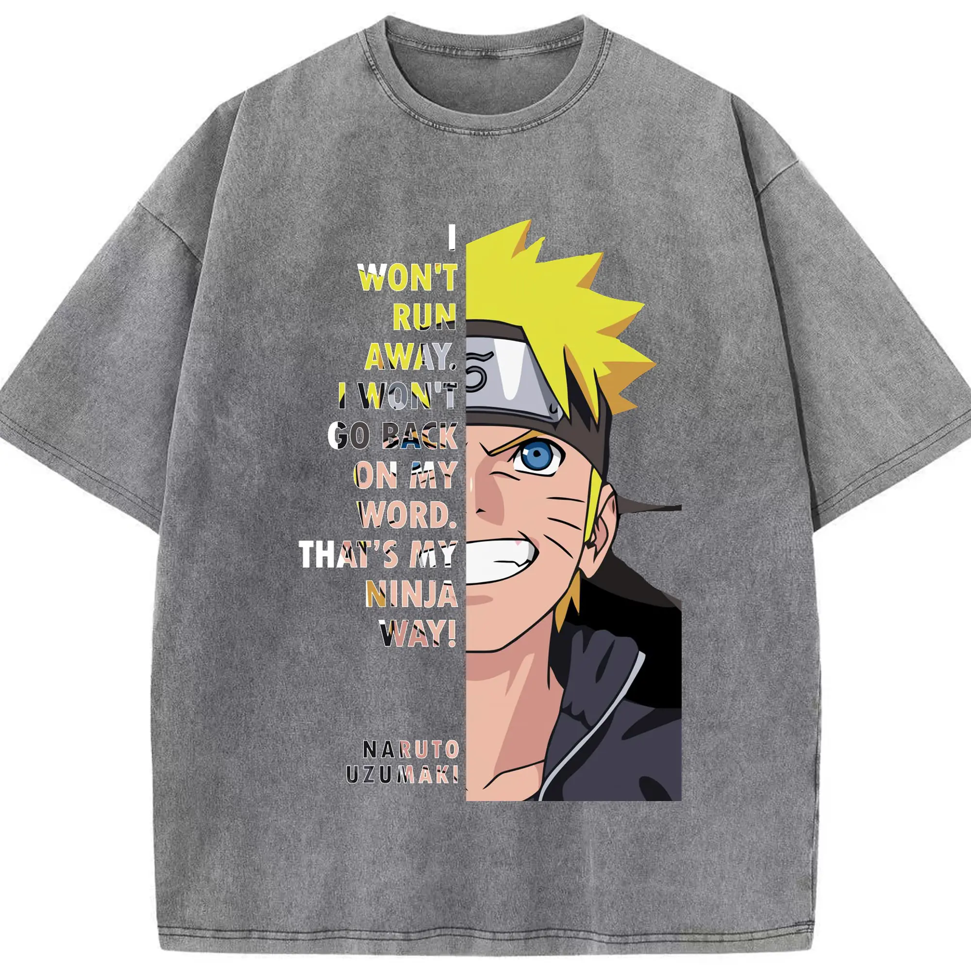 うずまき ナルト - 綿100% 半袖Tシャツ ・ フロントプリント ・ 快適 通気性 ・ 日常使い 散歩 スポーツ用