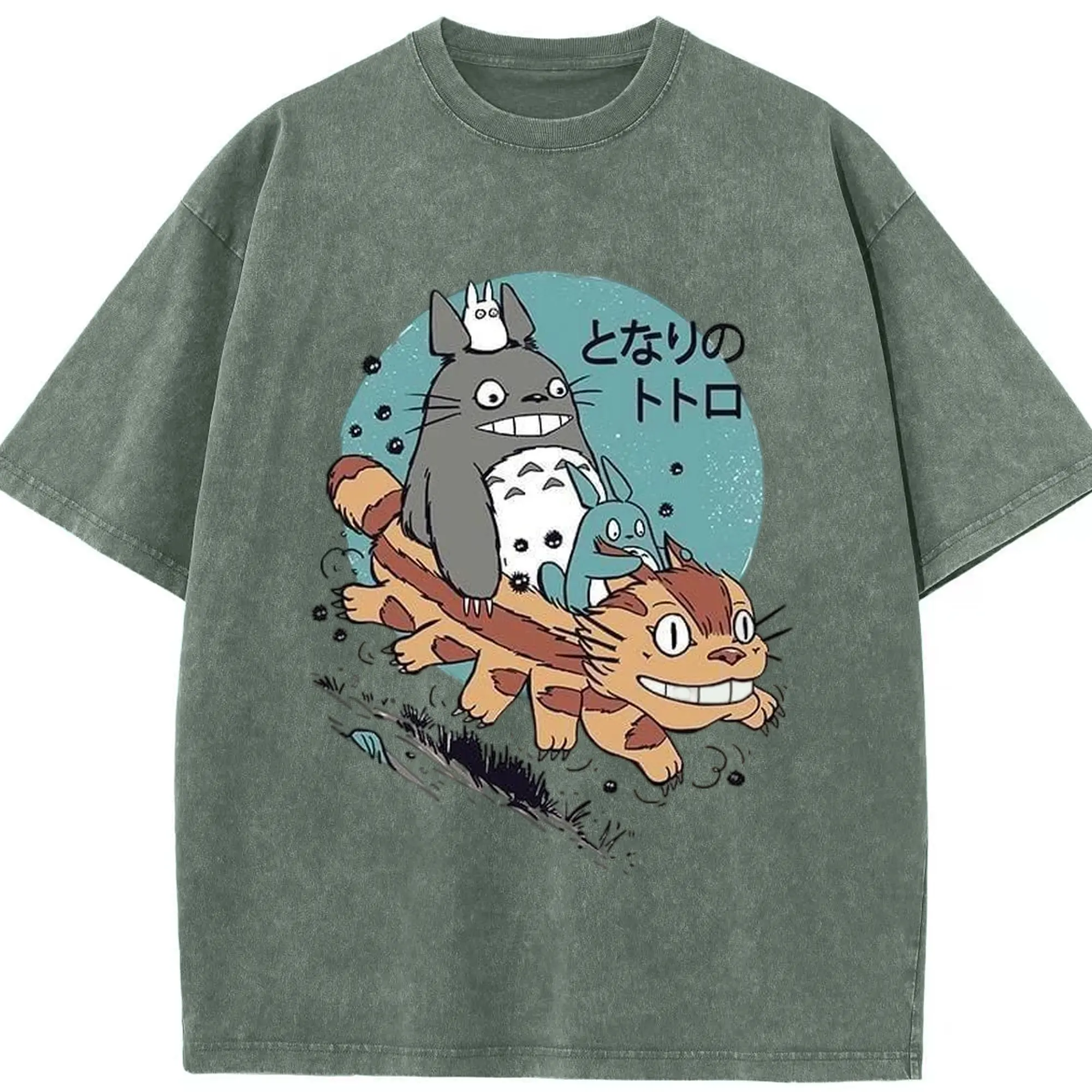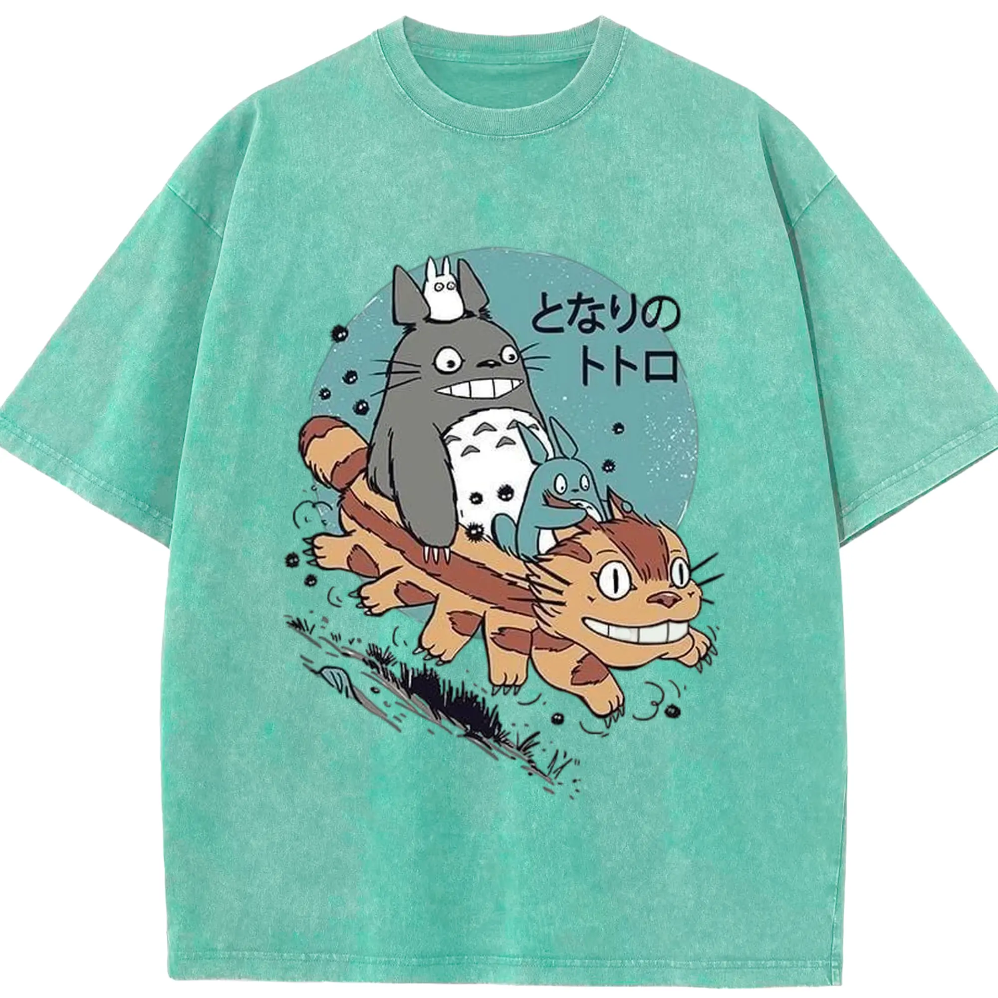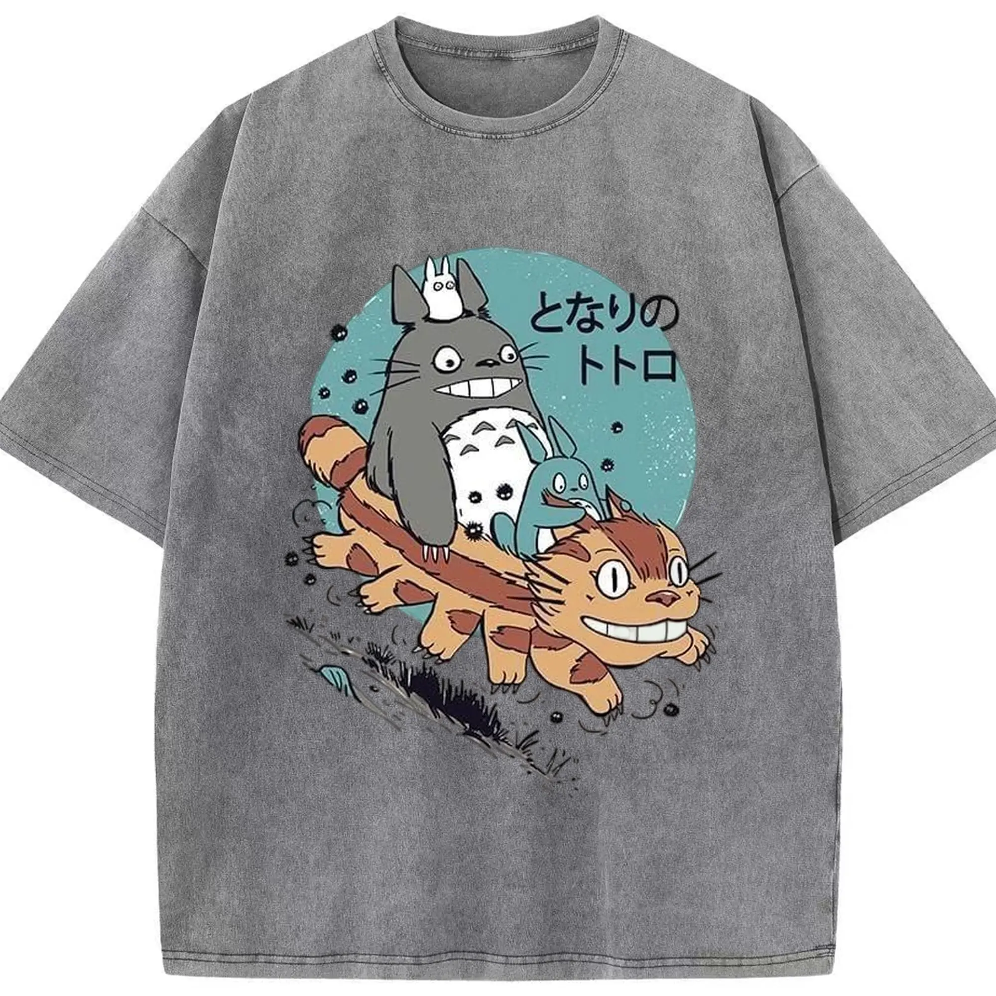 となりのトトロトトロ三兄弟 - 綿100% 半袖Tシャツ ・ フロントプリント ・ 快適 通気性 ・ 日常使い 散歩 スポーツ用