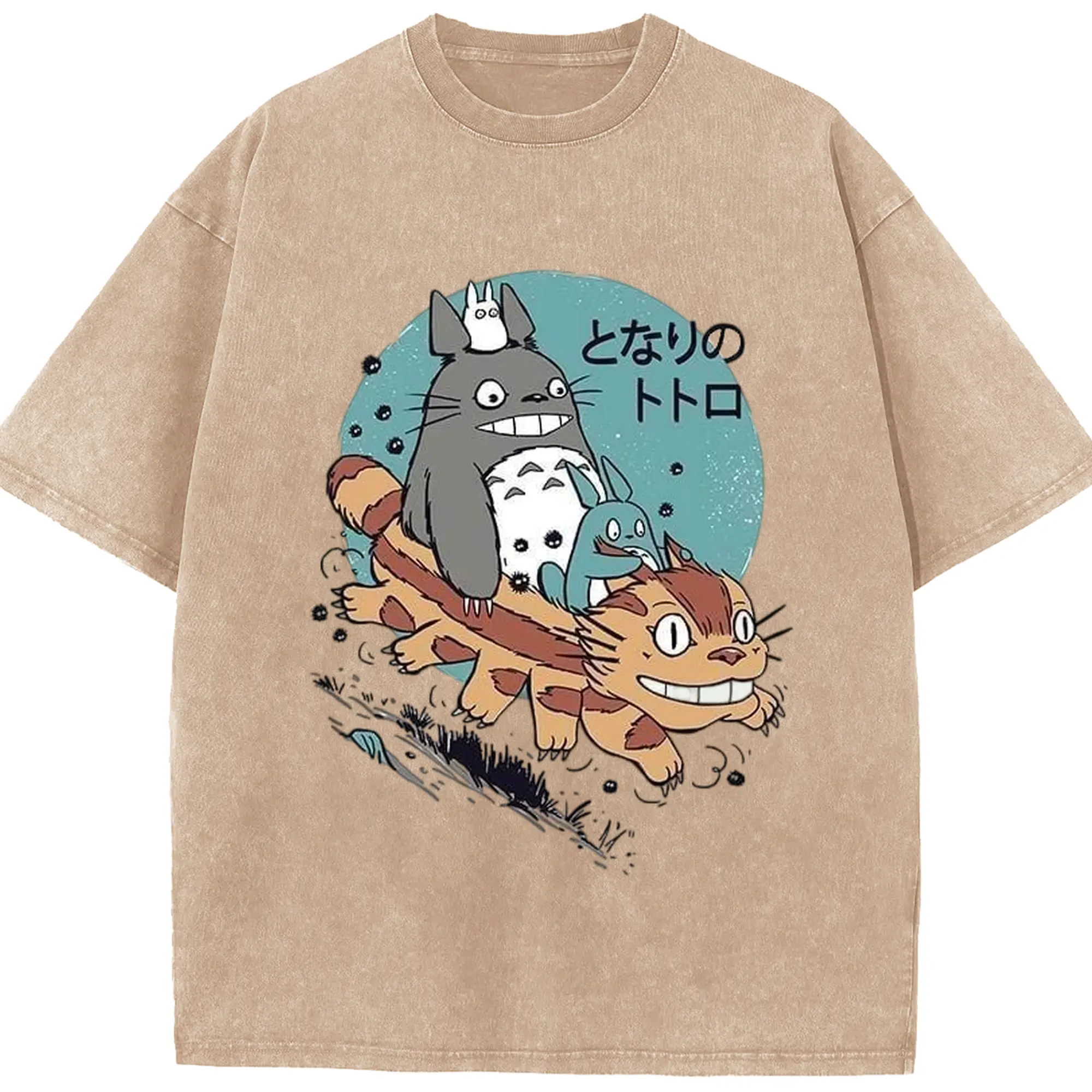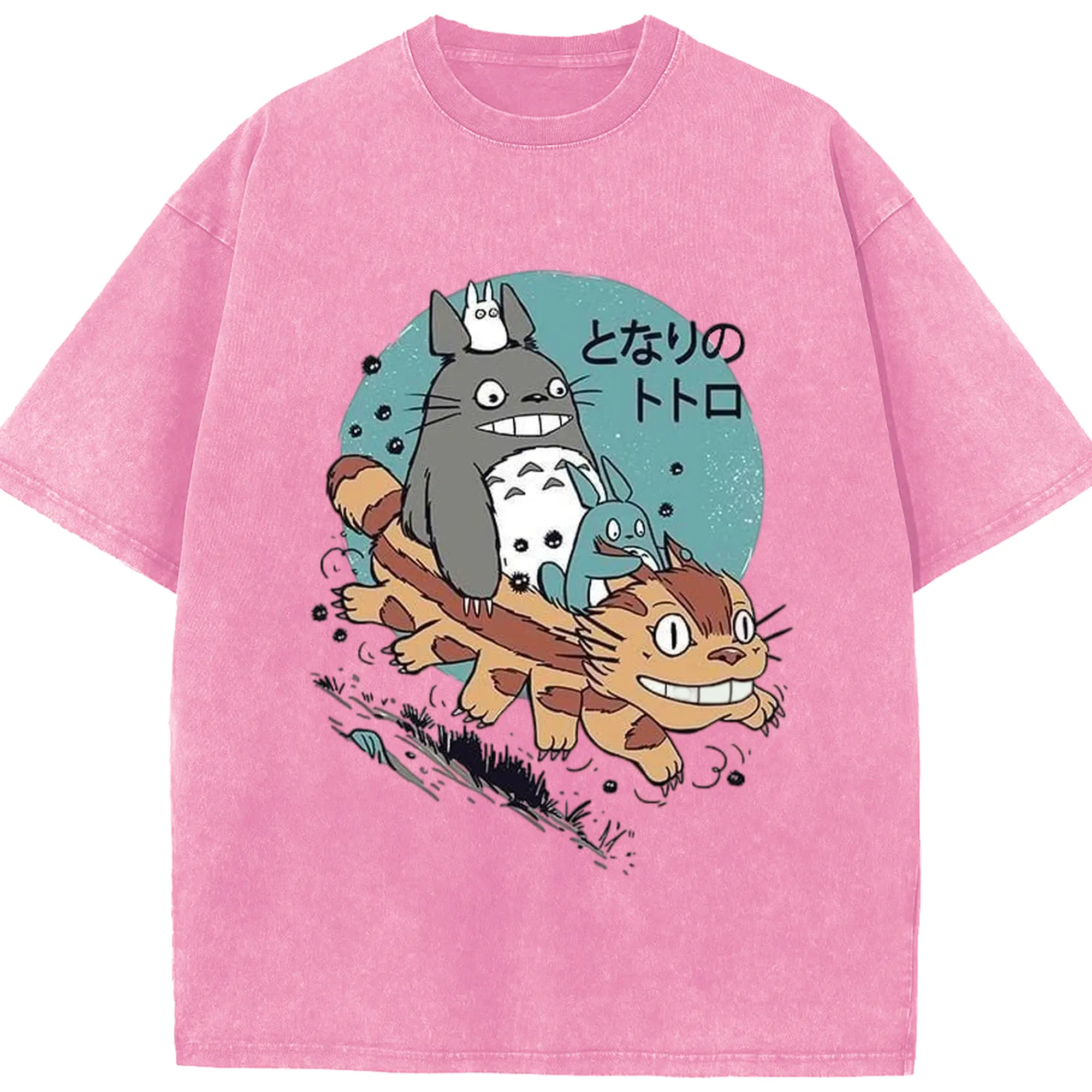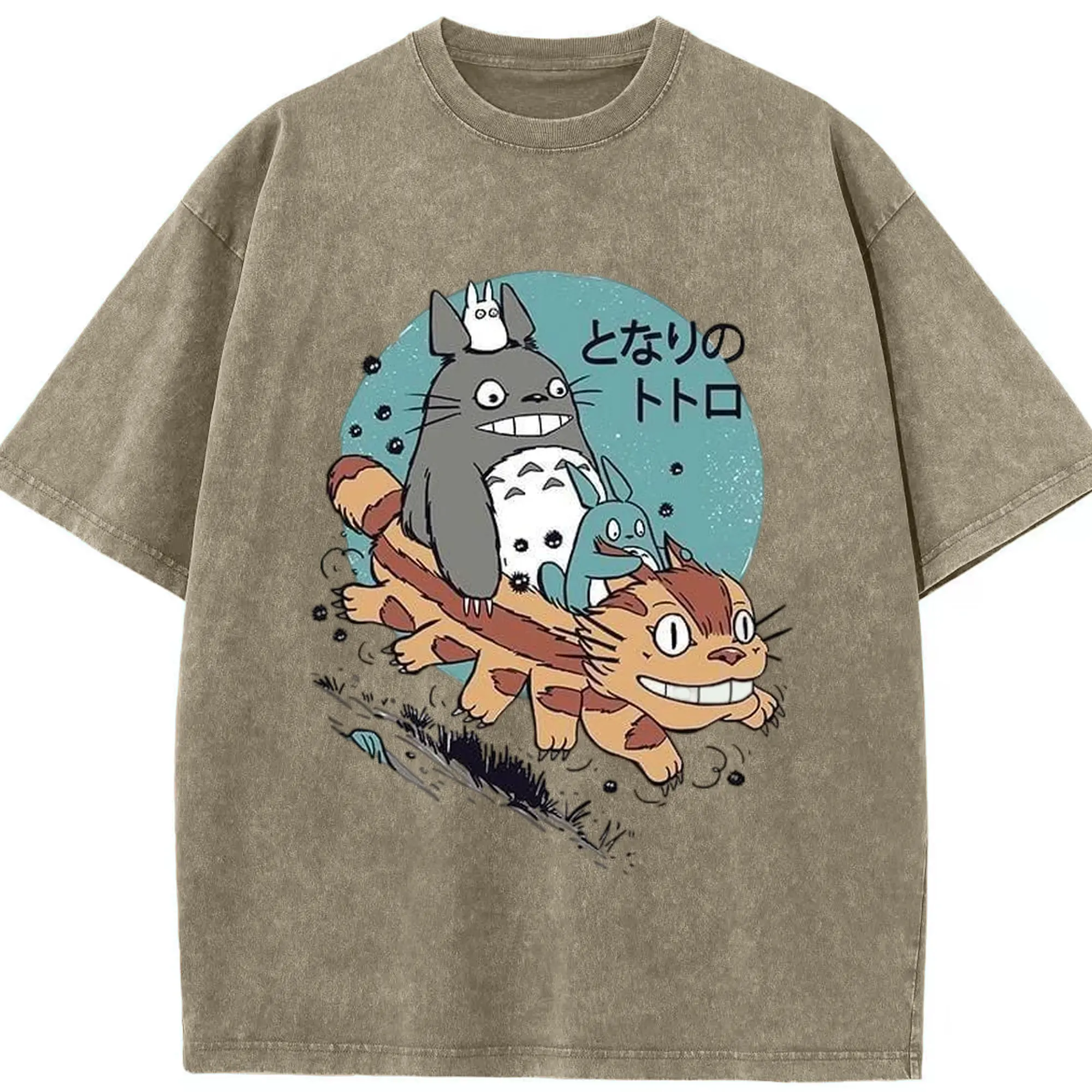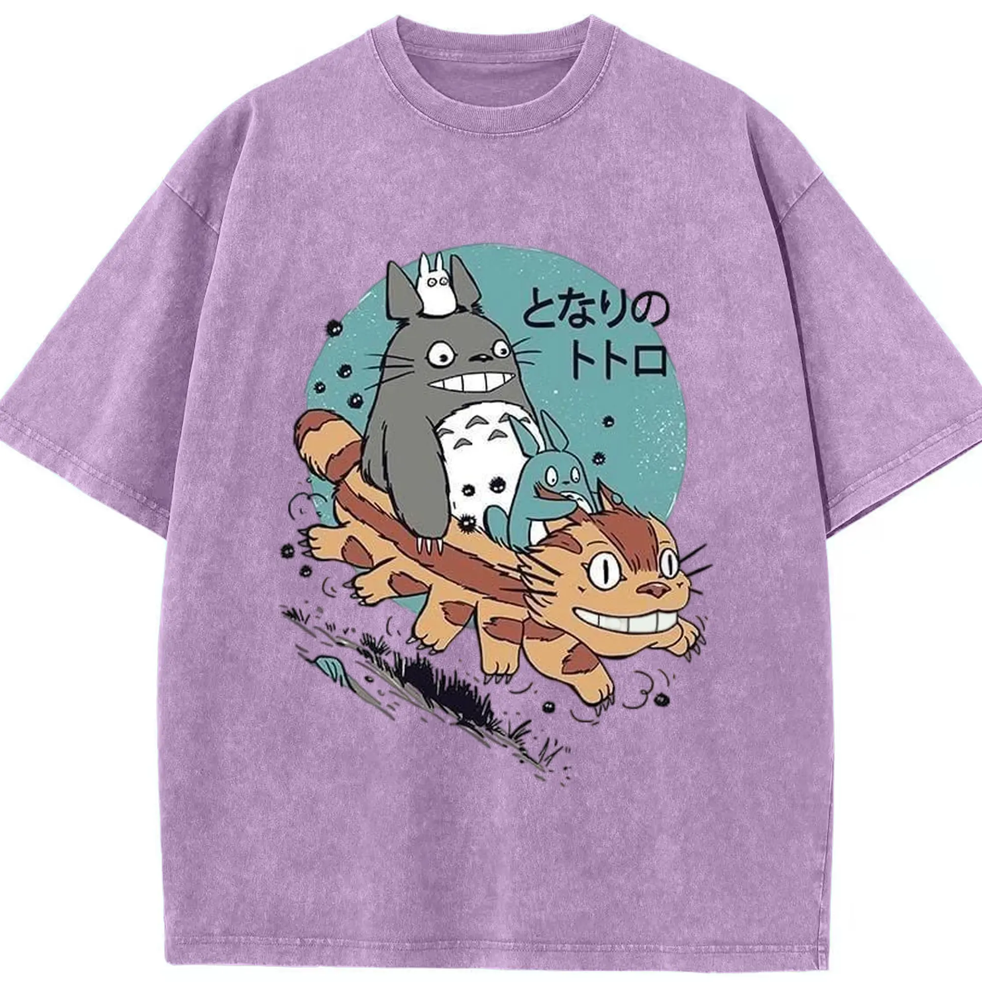 となりのトトロトトロ三兄弟 - 綿100% 半袖Tシャツ ・ フロントプリント ・ 快適 通気性 ・ 日常使い 散歩 スポーツ用
