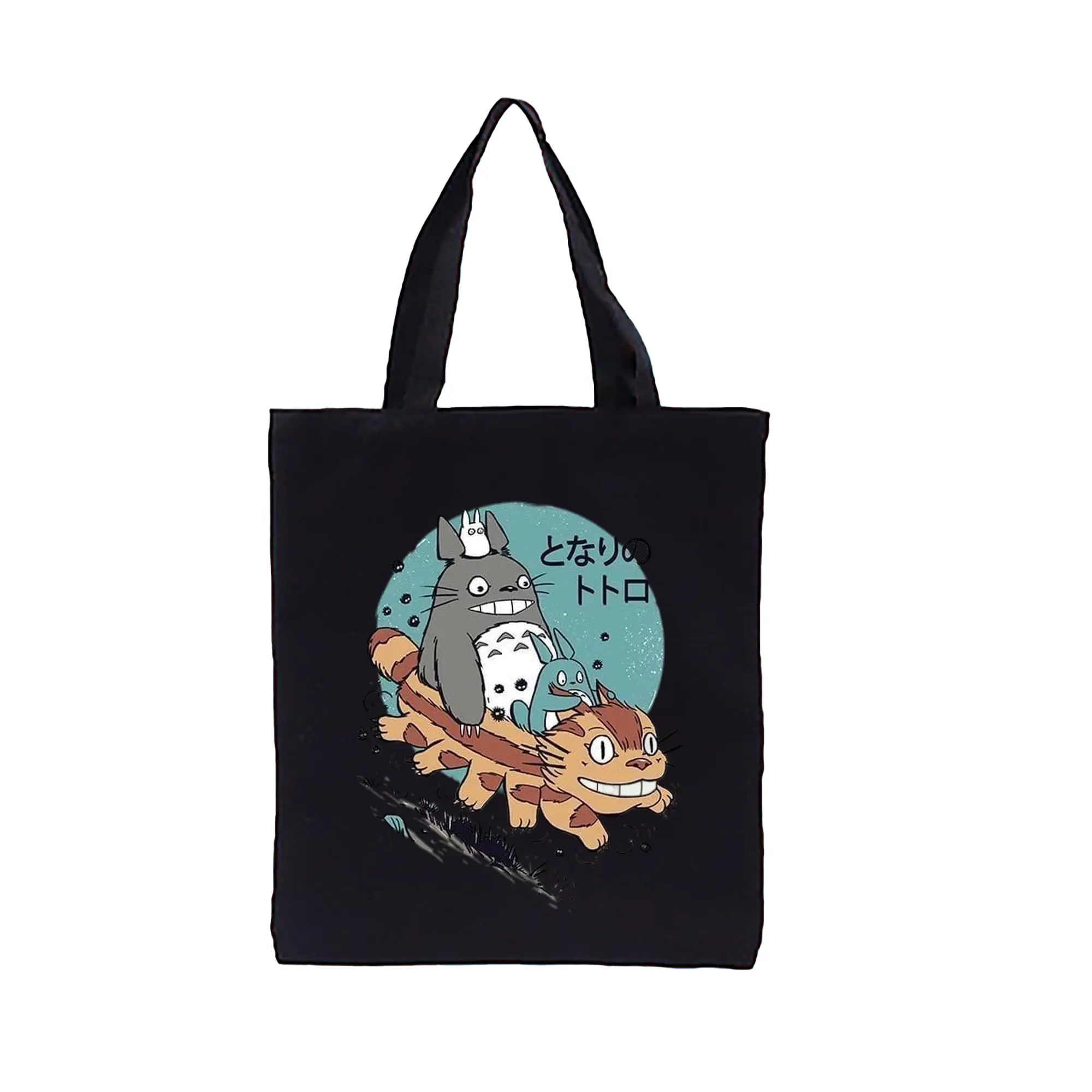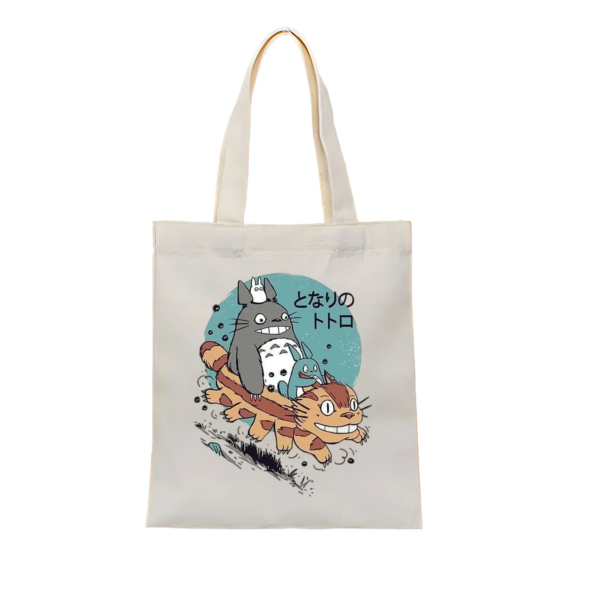となりのトトロトトロ三兄弟 - 縦型キャンバス手提げバッグ(トートバッグ) ・ キャンバス素材 ・ ショッピング用 ・ 軽量 丈夫 お手入れ簡単