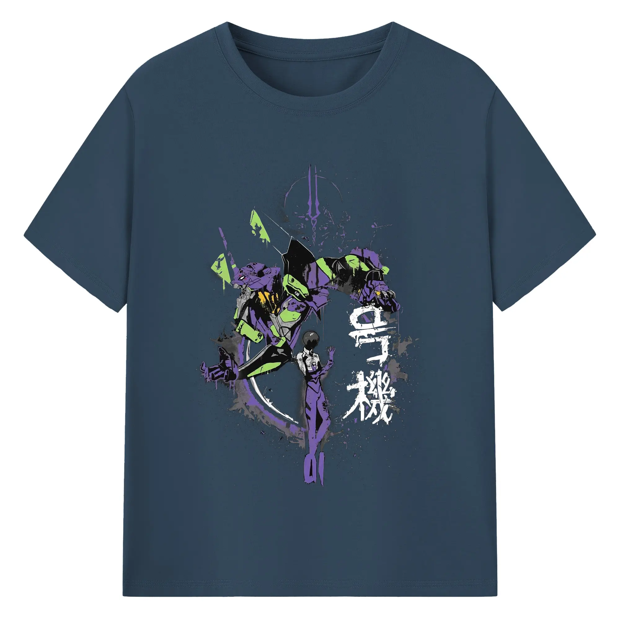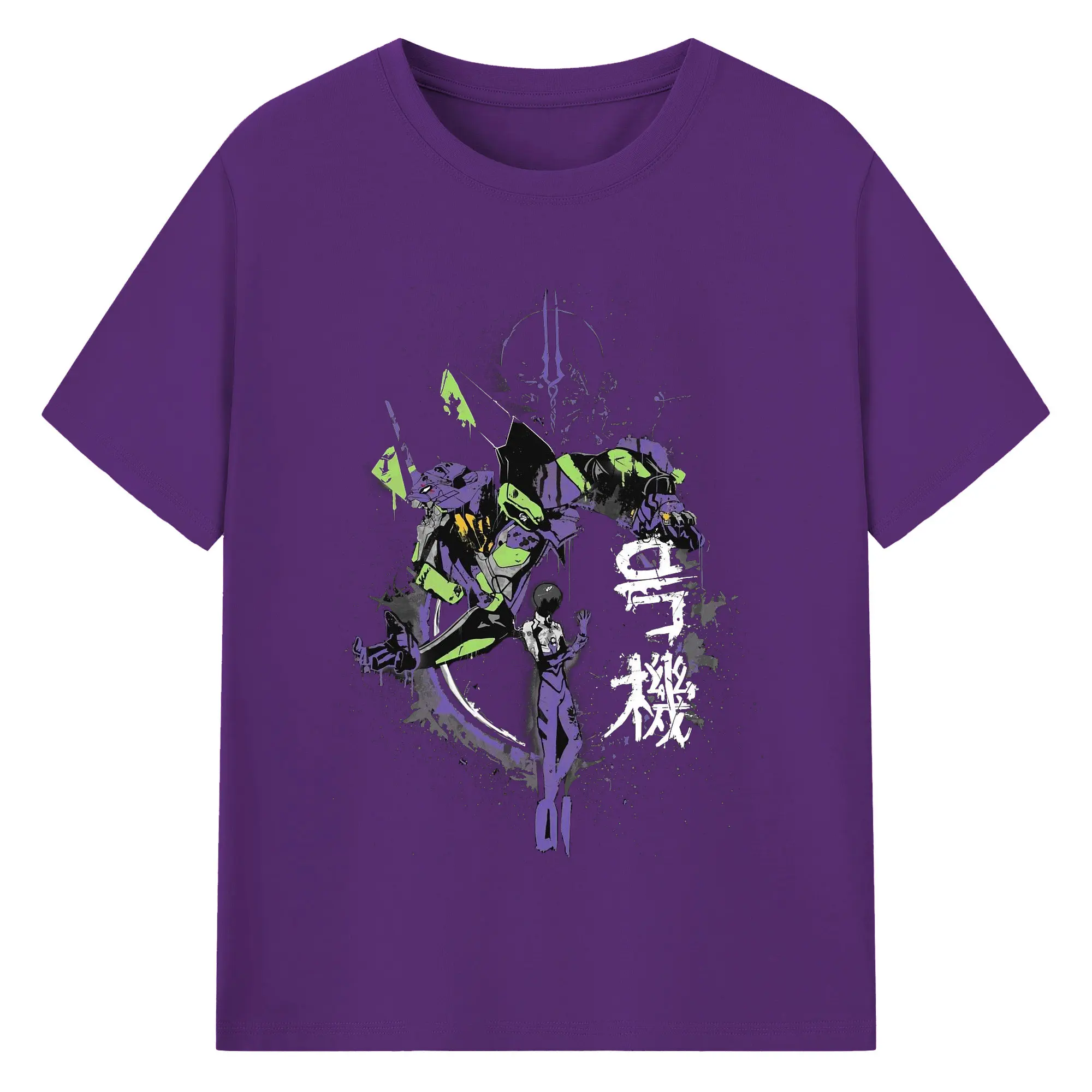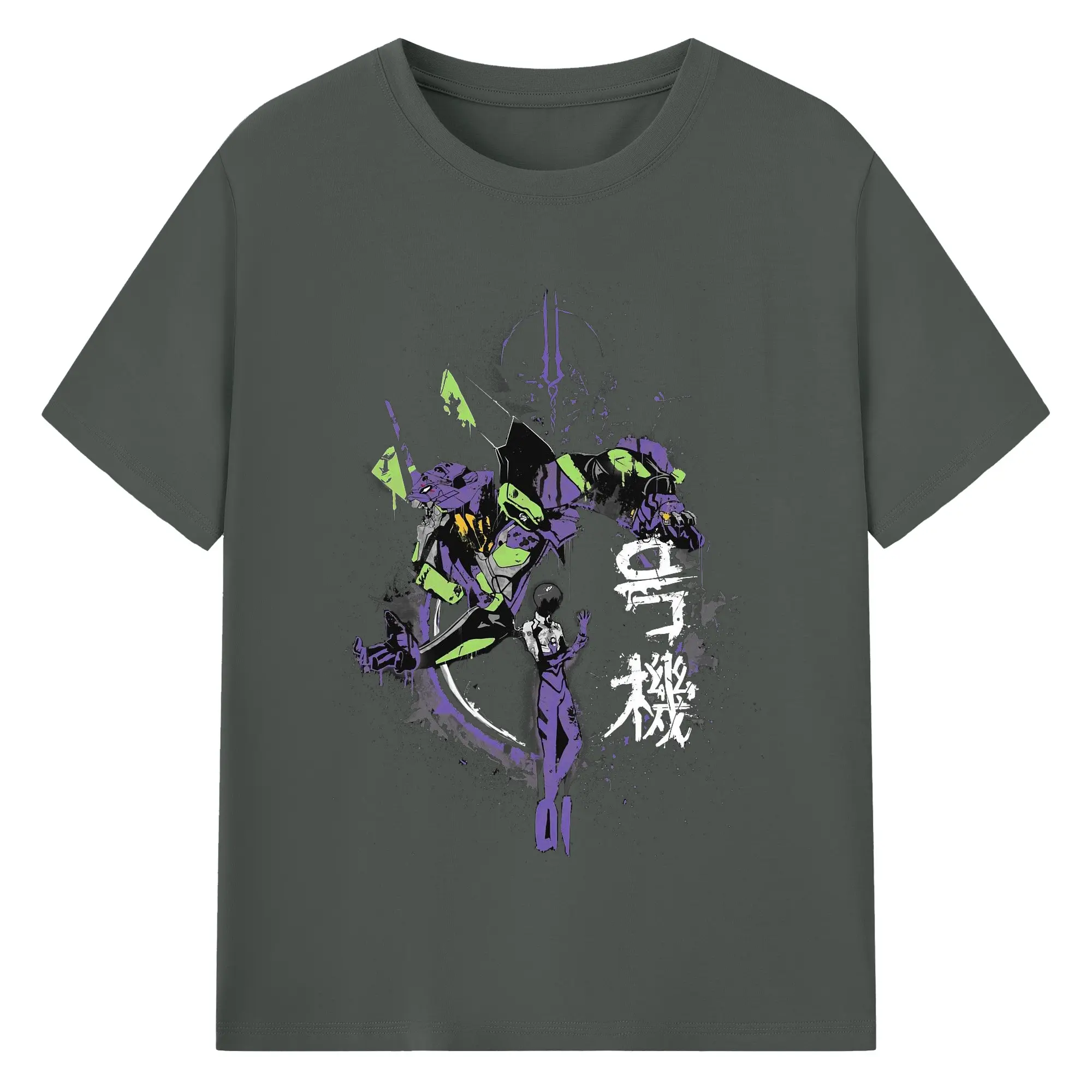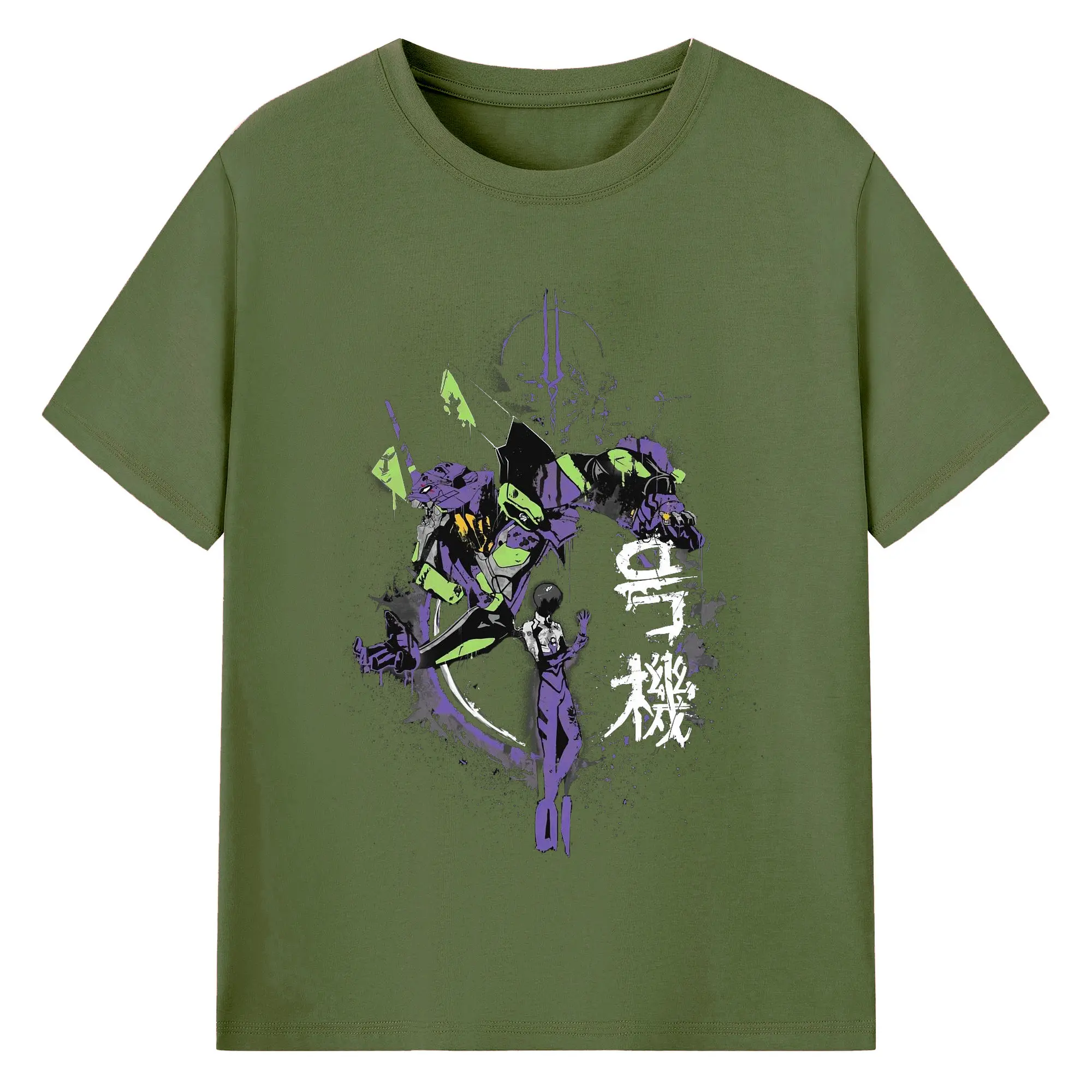 エヴァンゲリオン EVA初号機 - 綿100% ヴィンテージ風 半袖Tシャツ ・ フロントプリント ・ 柔らか肌触り ・ 通気性 快適 ・ スポーツ カジュアル 外出用