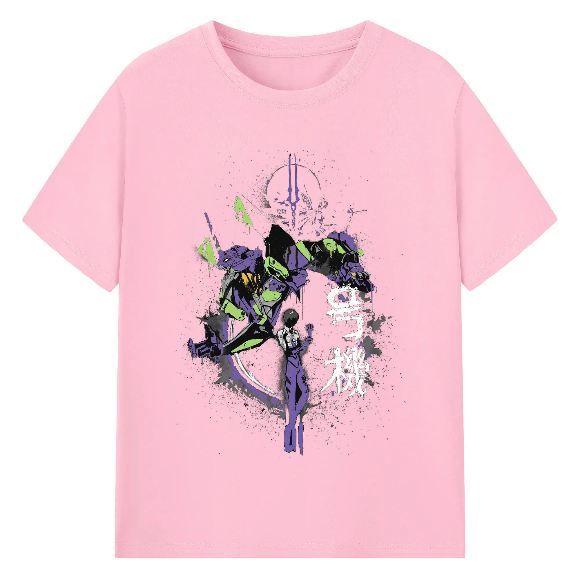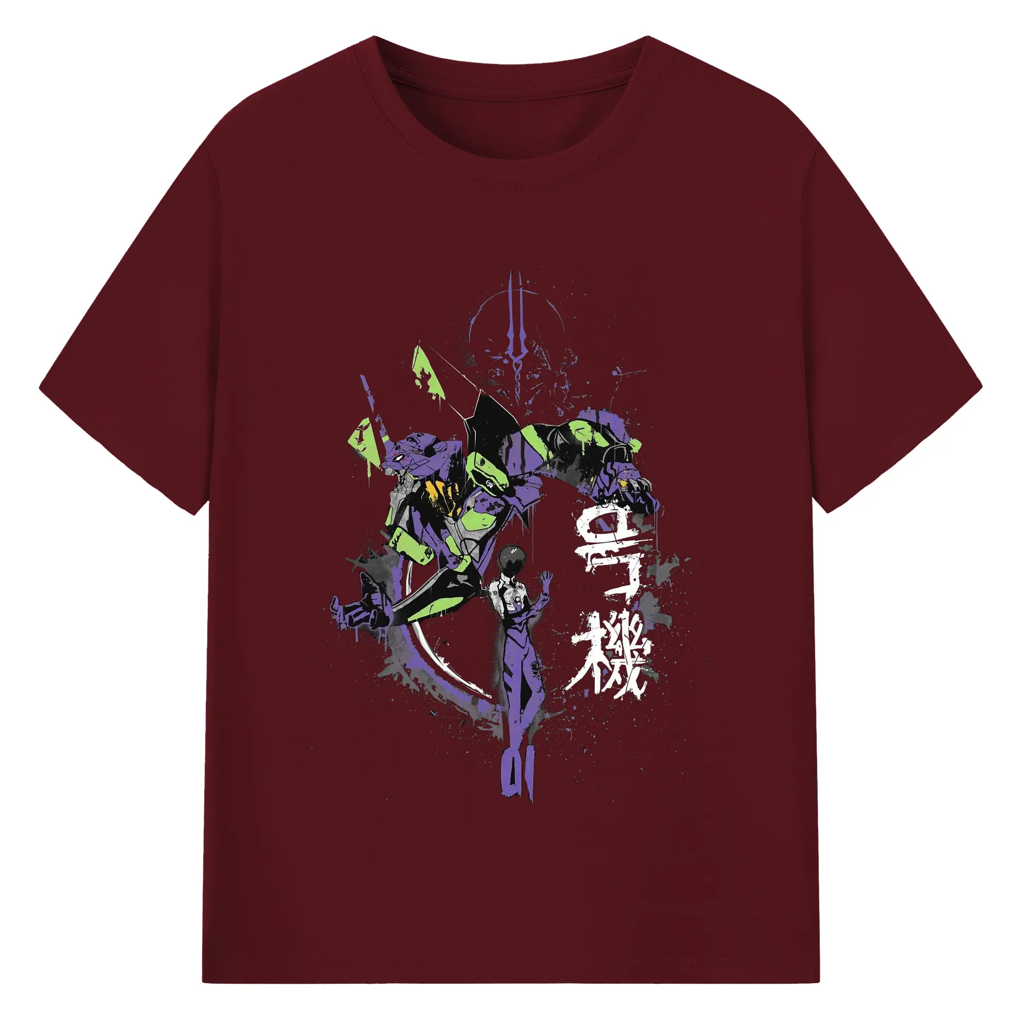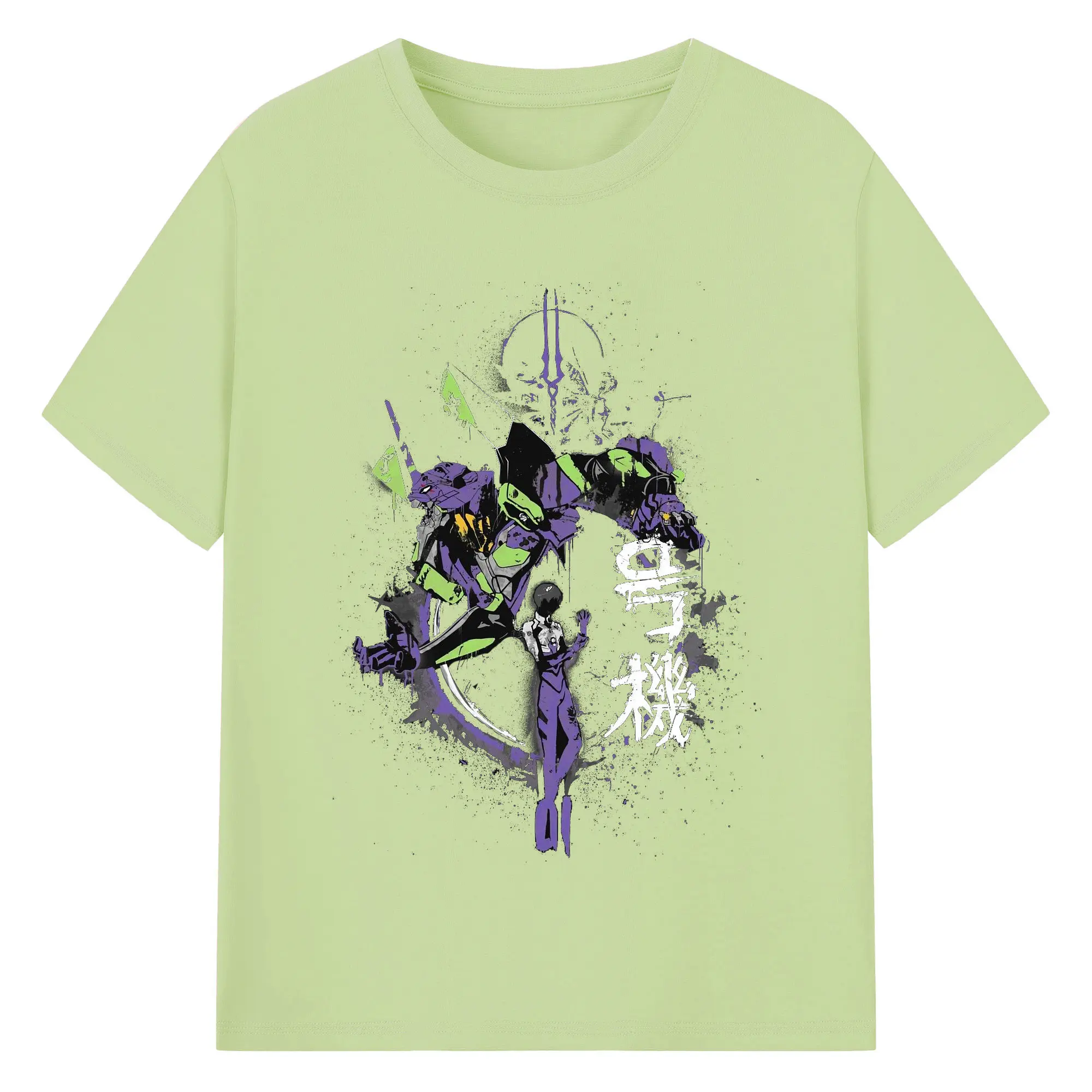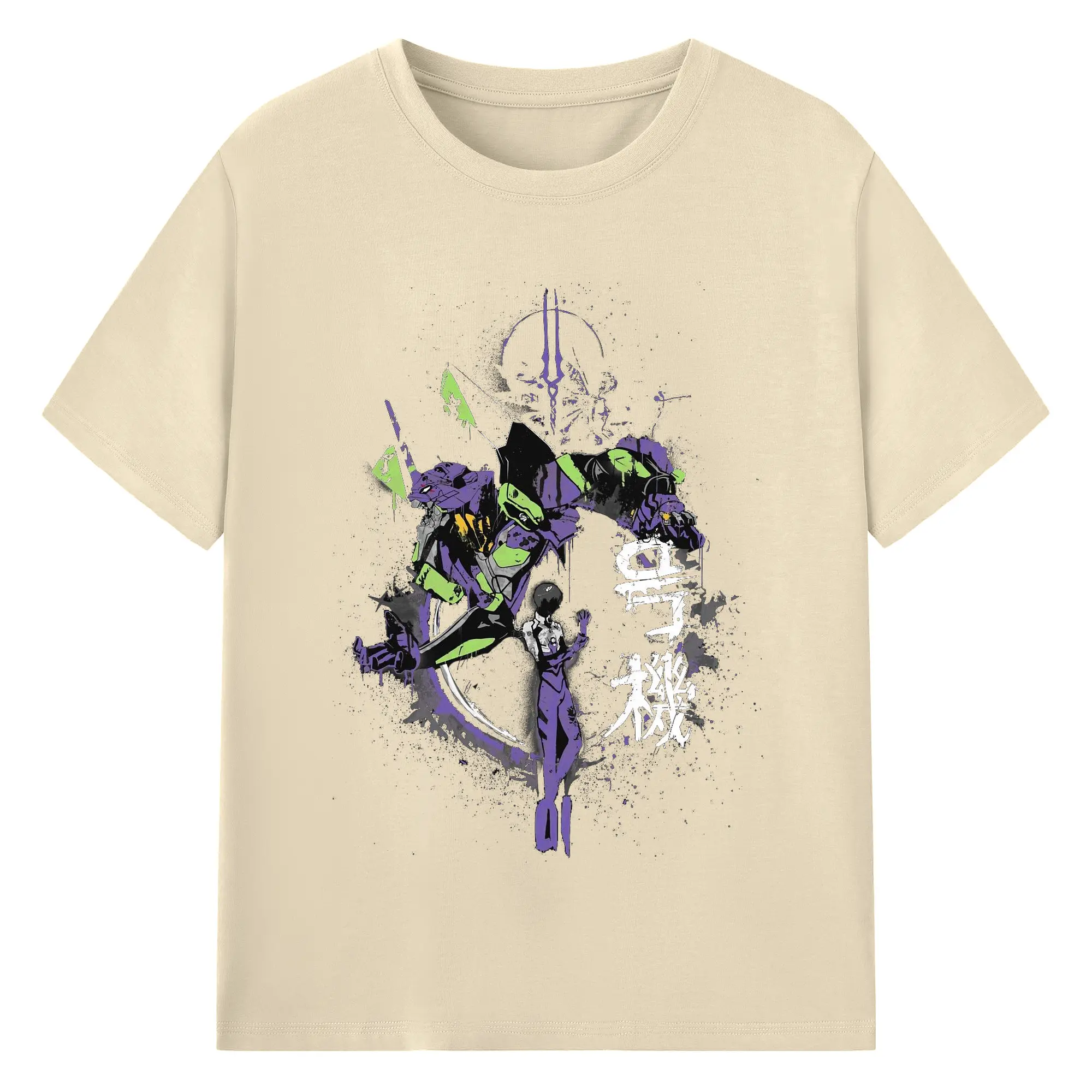 エヴァンゲリオン EVA初号機 - 綿100% ヴィンテージ風 半袖Tシャツ ・ フロントプリント ・ 柔らか肌触り ・ 通気性 快適 ・ スポーツ カジュアル 外出用