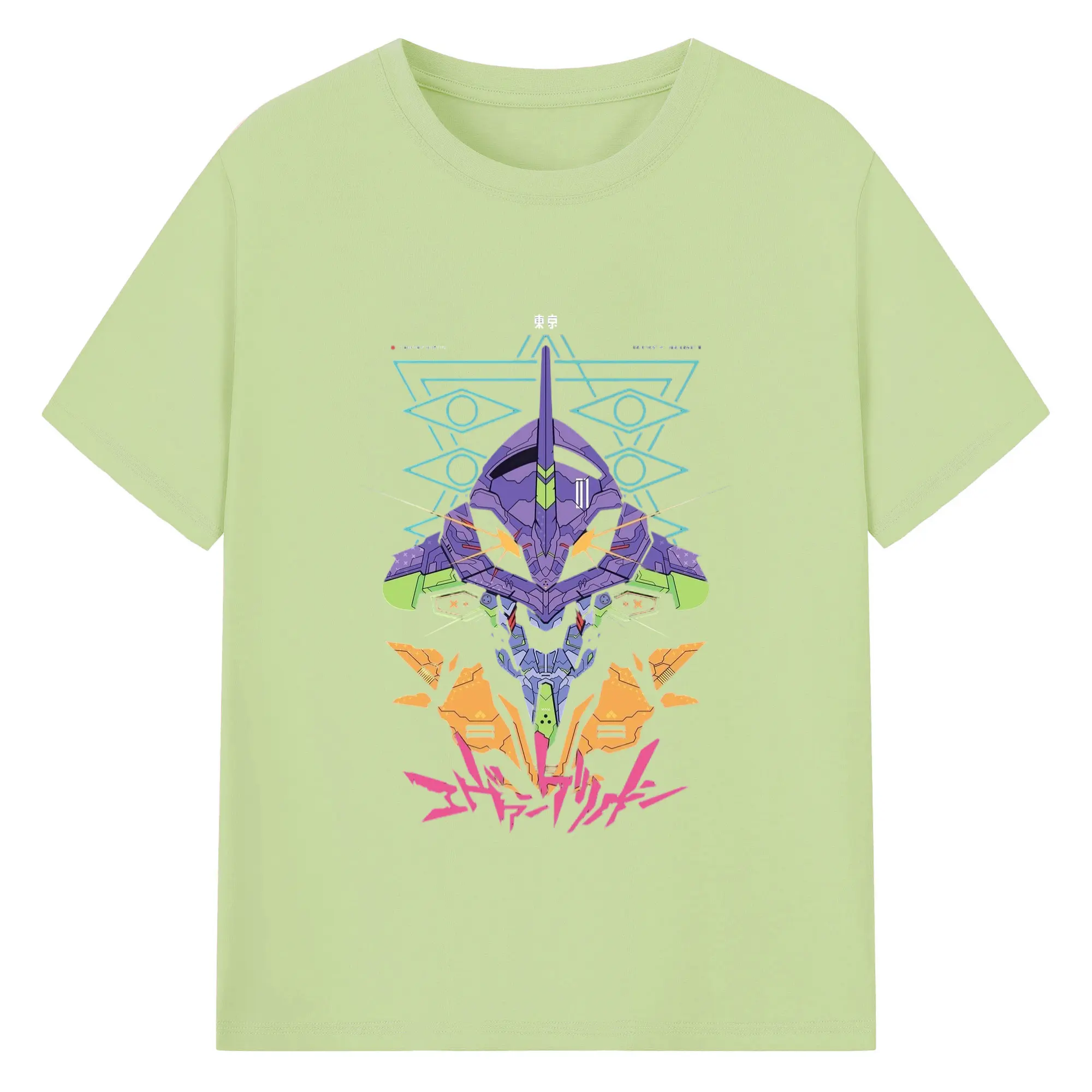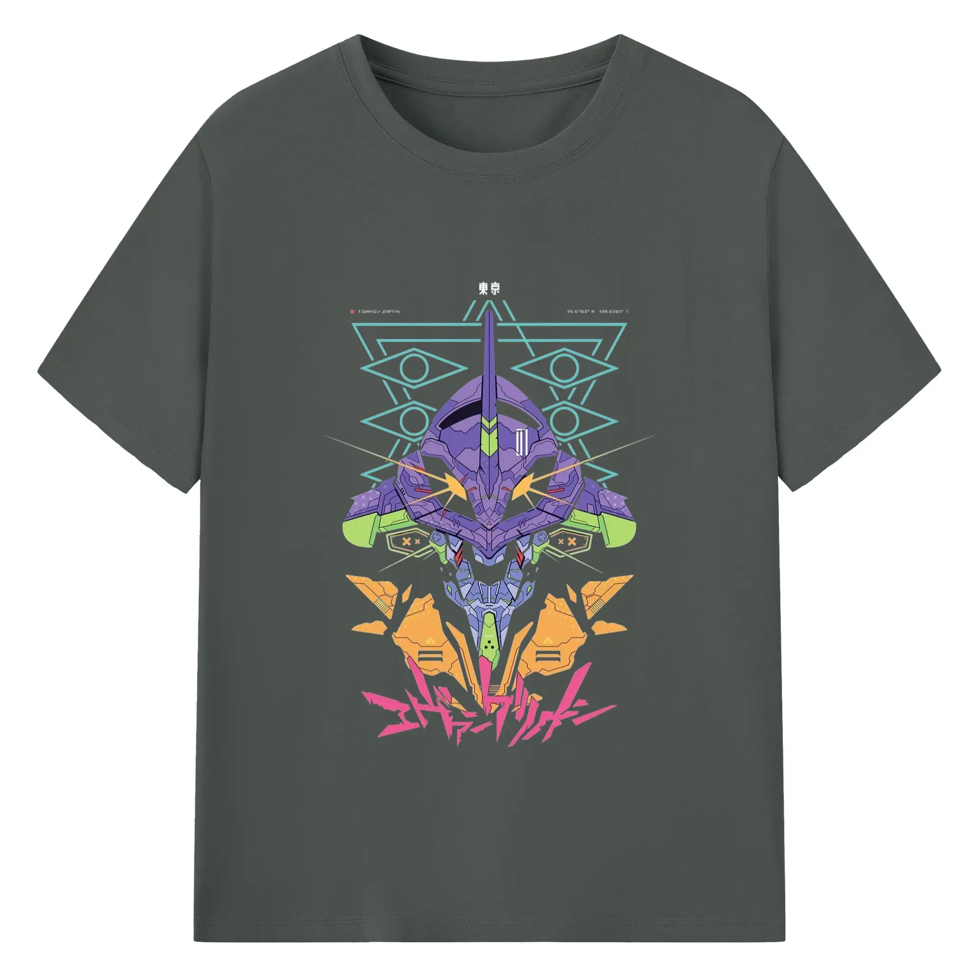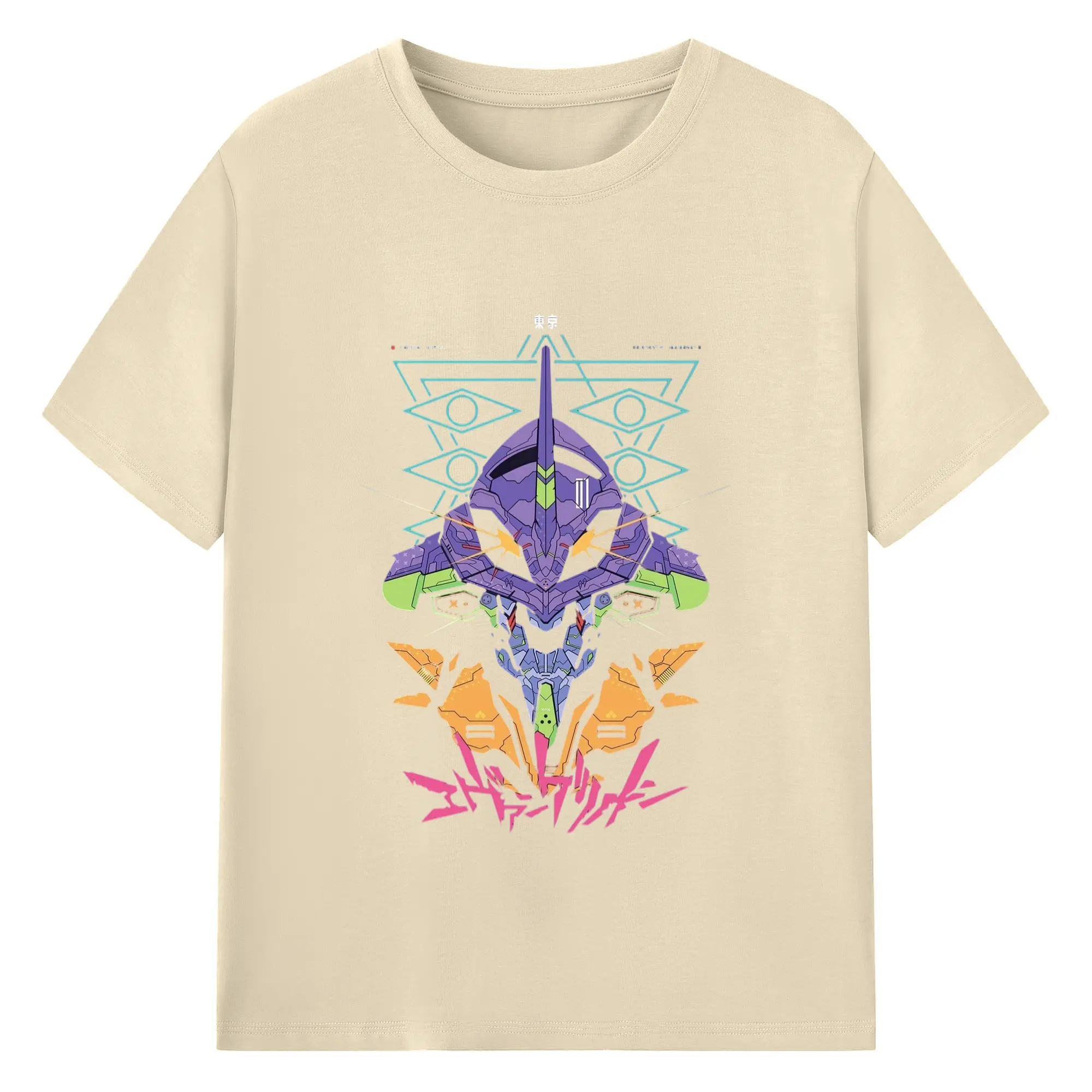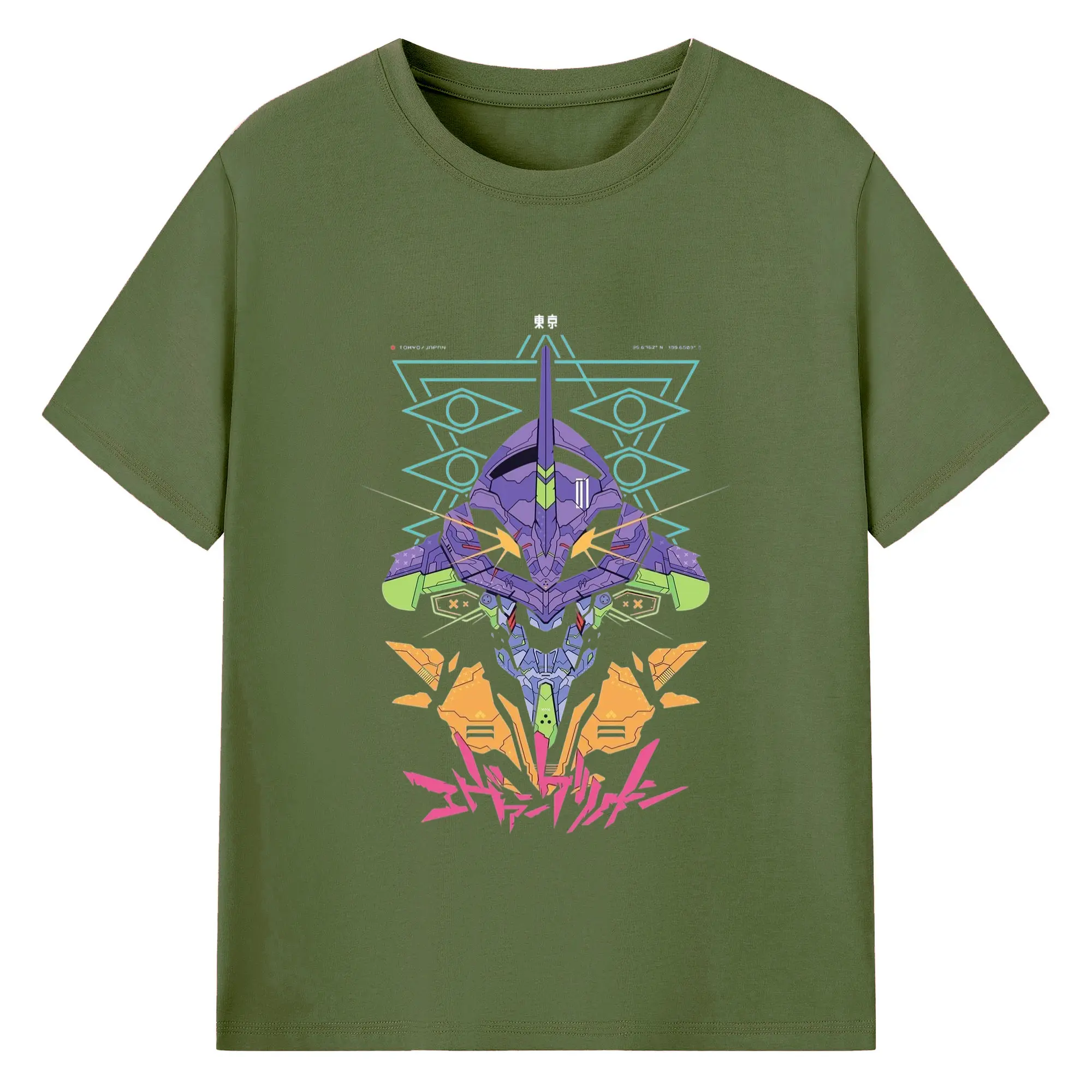 エヴァンゲリオン EVA初号機 - 綿100% ヴィンテージ風 半袖Tシャツ ・ フロントプリント ・ 柔らか肌触り ・ 通気性 快適 ・ スポーツ カジュアル 外出用