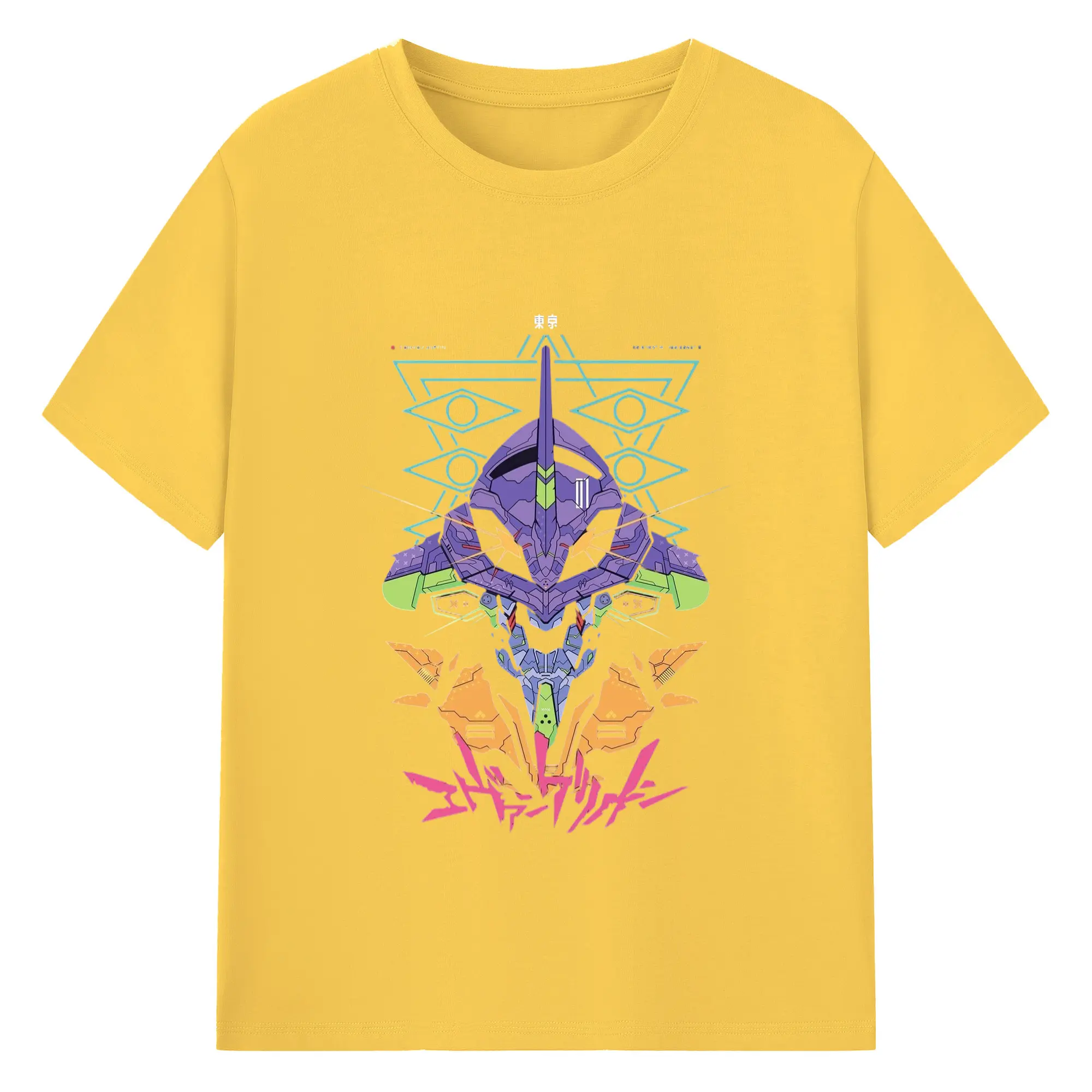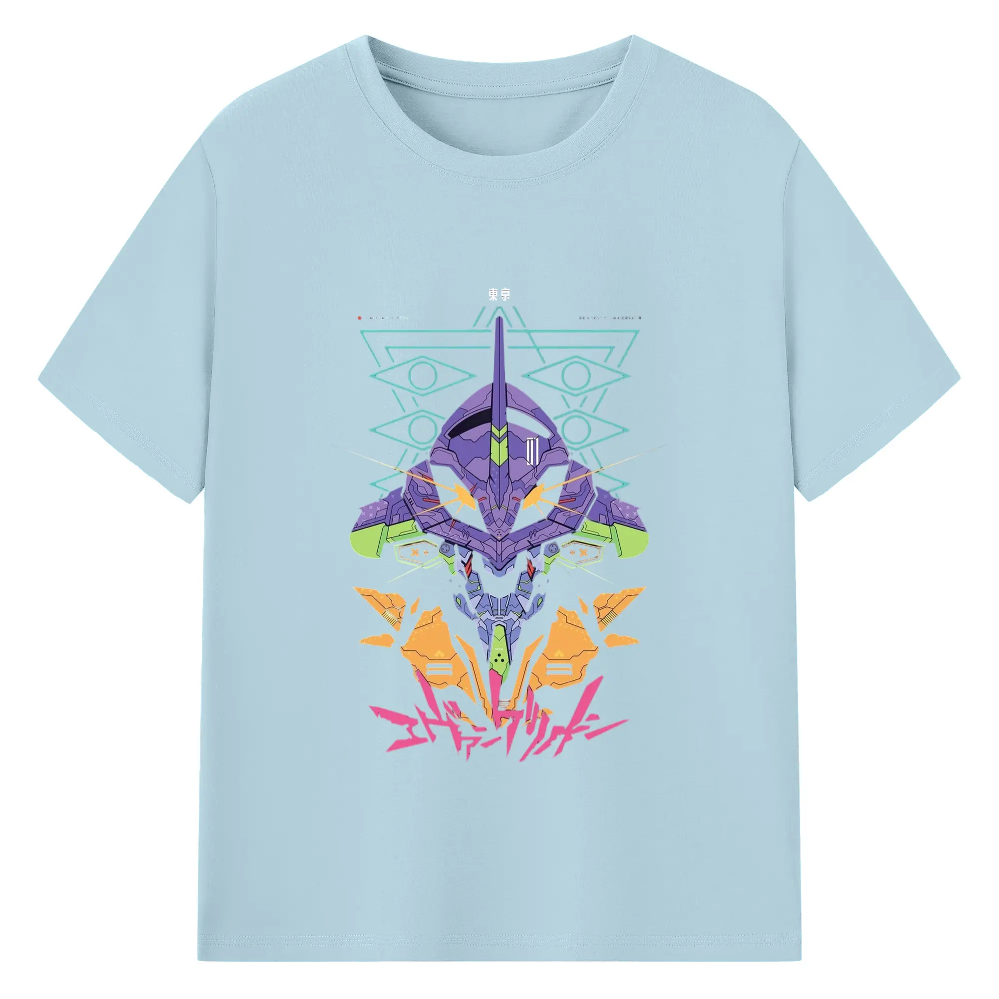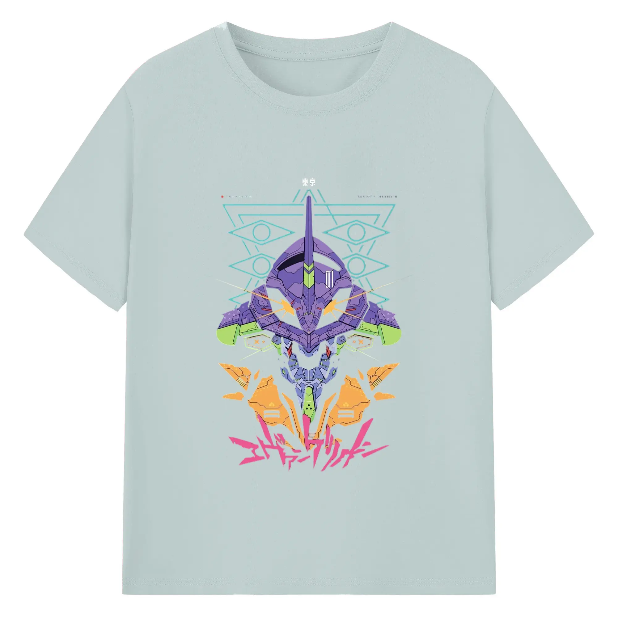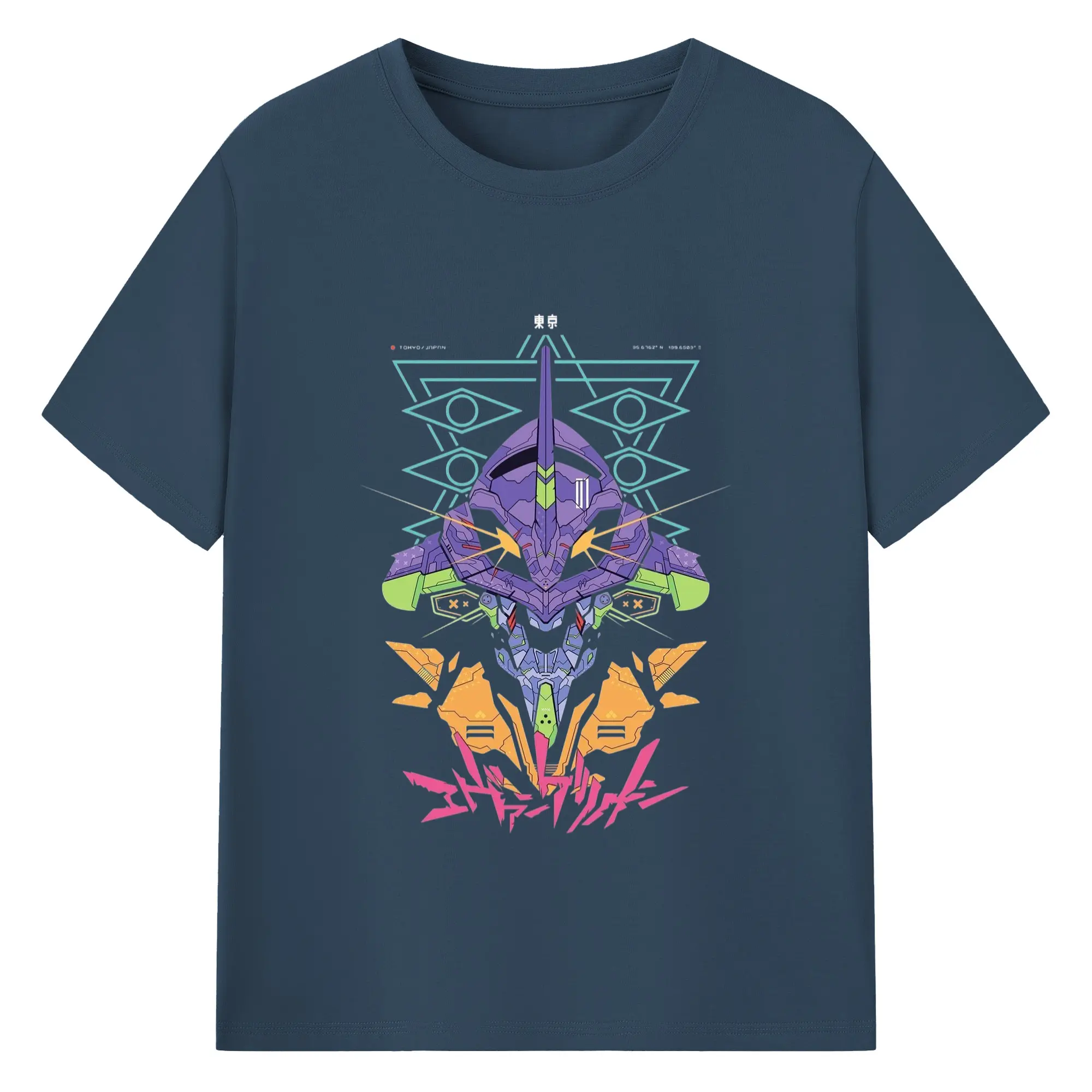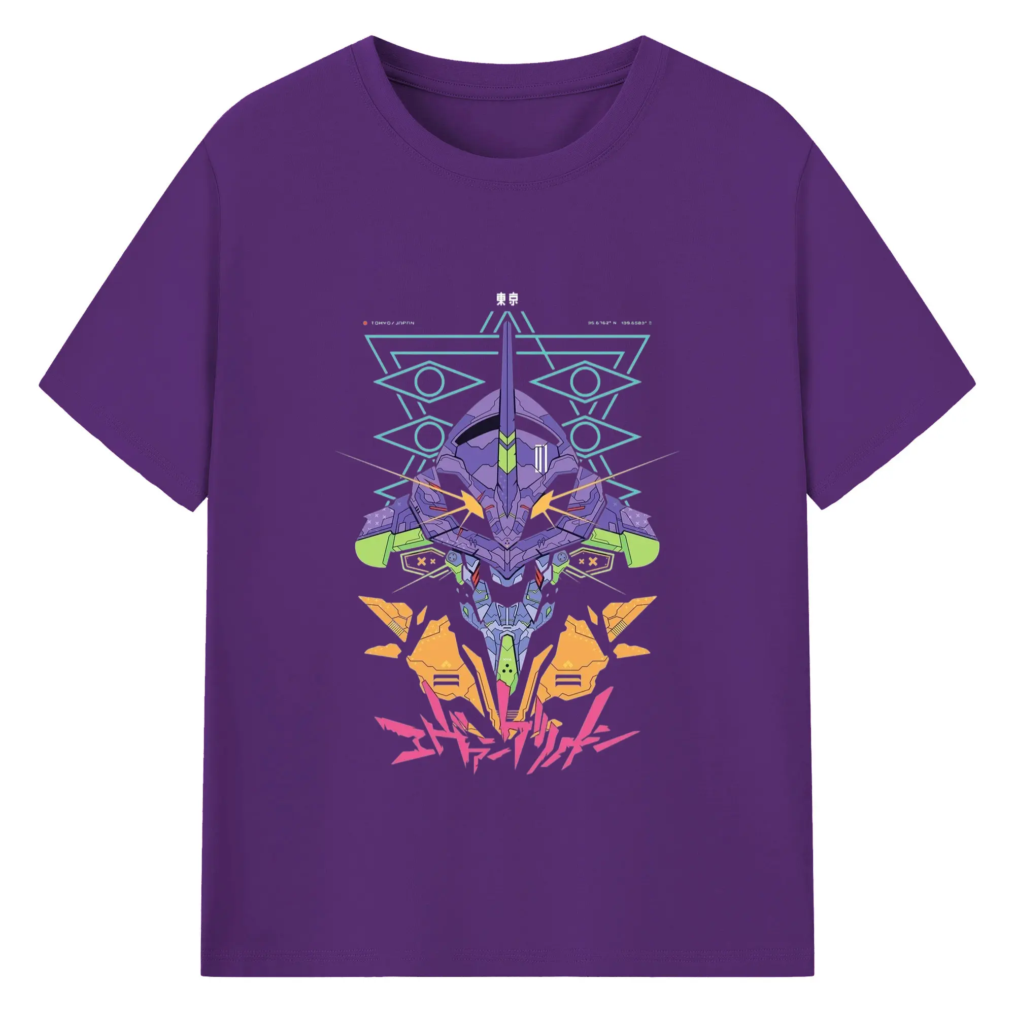 エヴァンゲリオン EVA初号機 - 綿100% ヴィンテージ風 半袖Tシャツ ・ フロントプリント ・ 柔らか肌触り ・ 通気性 快適 ・ スポーツ カジュアル 外出用