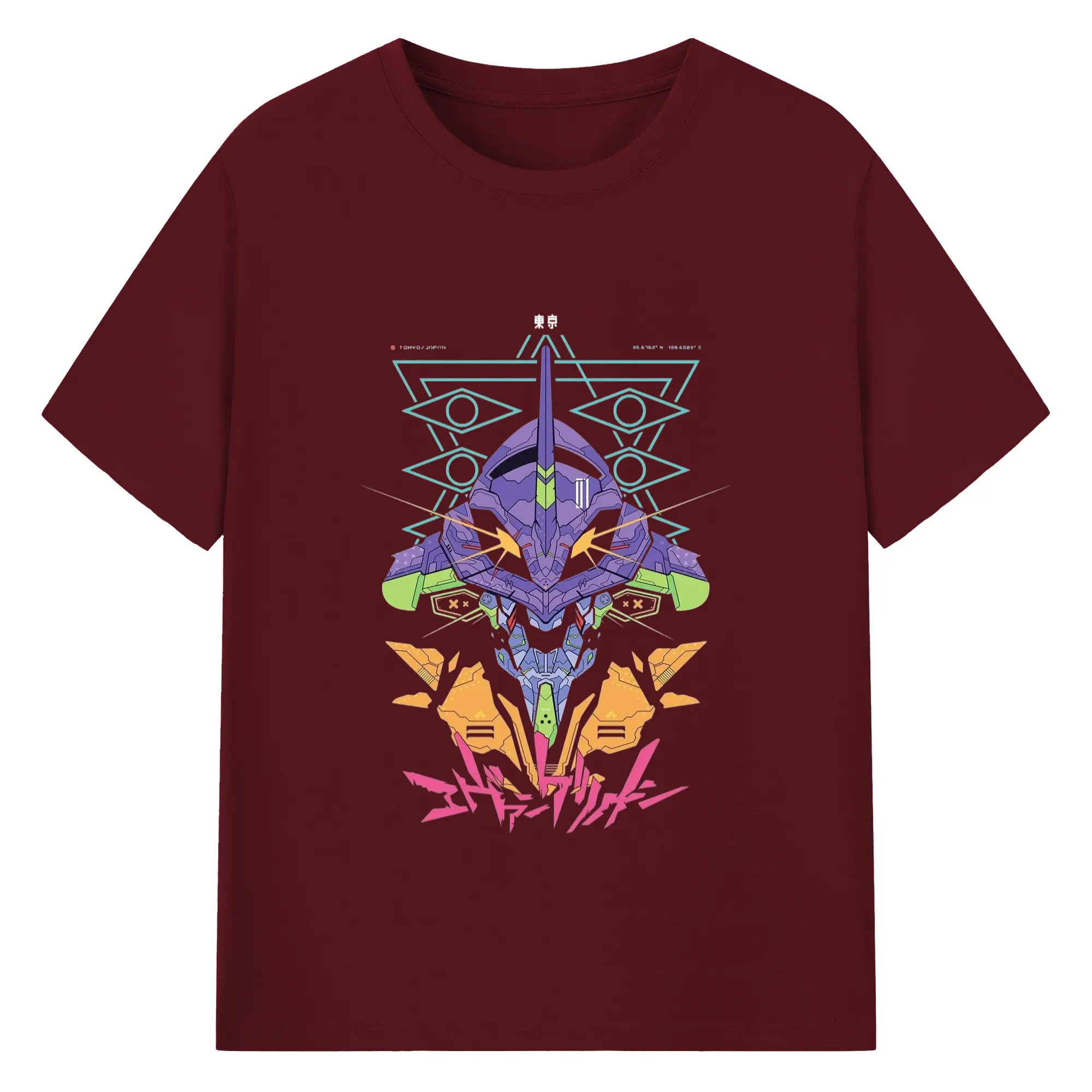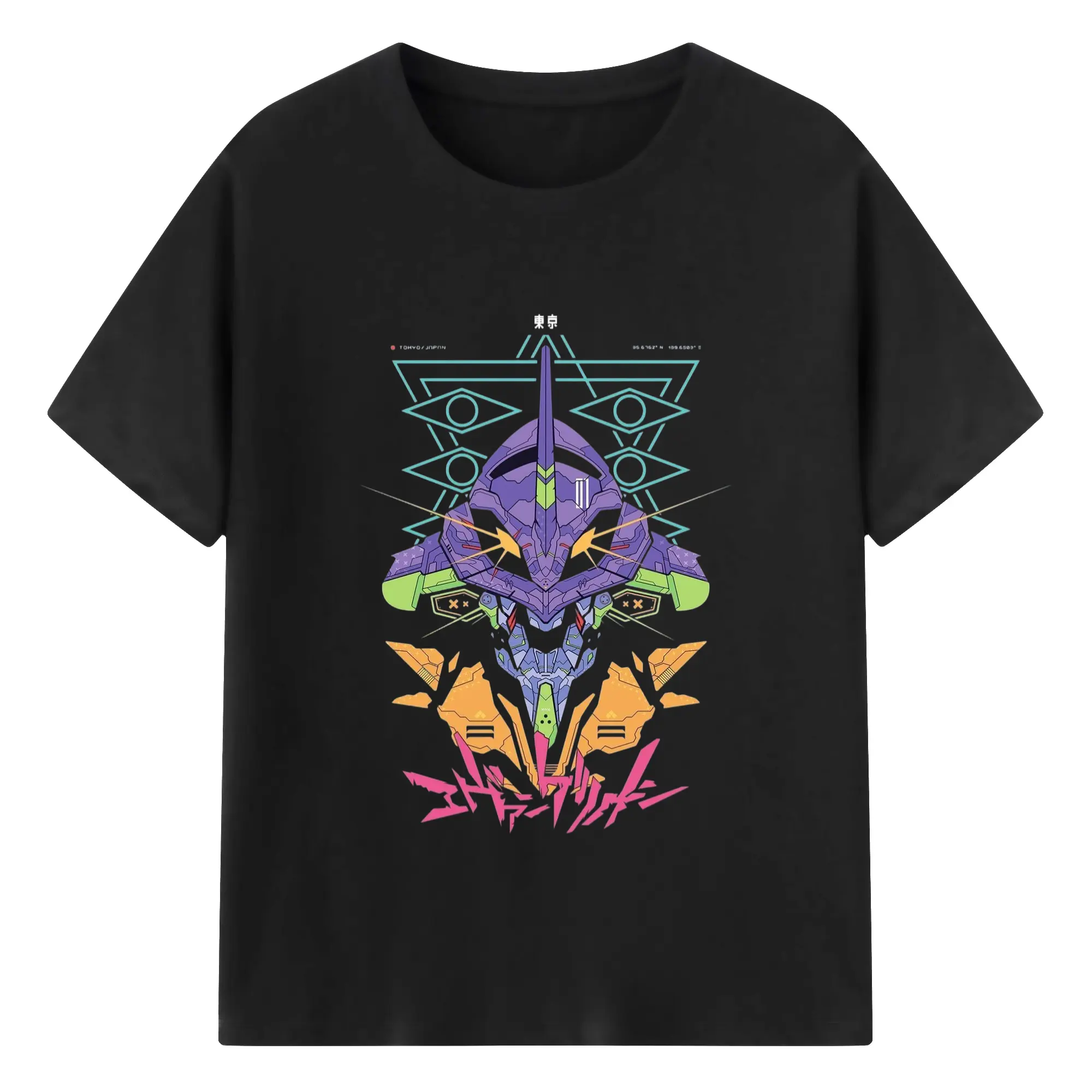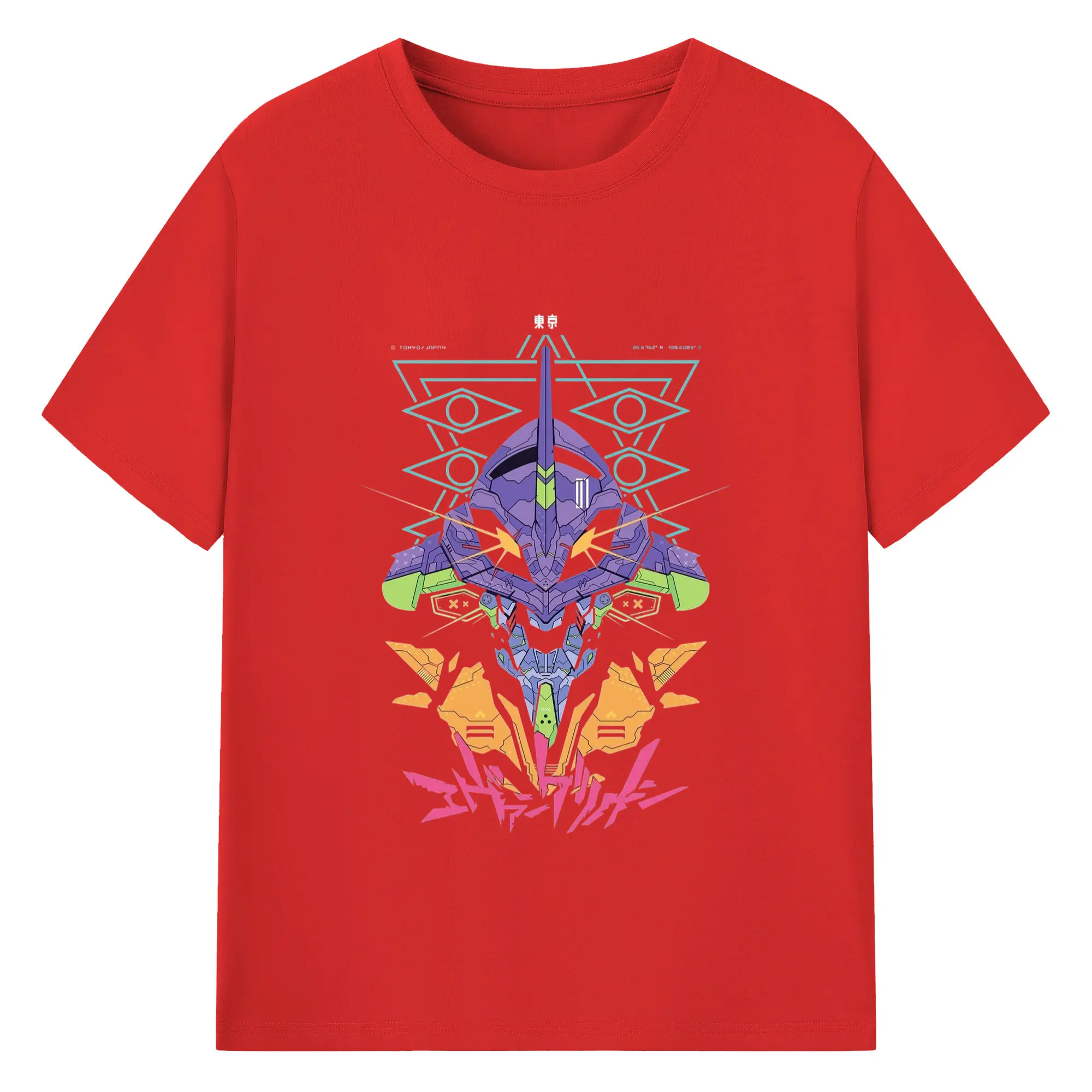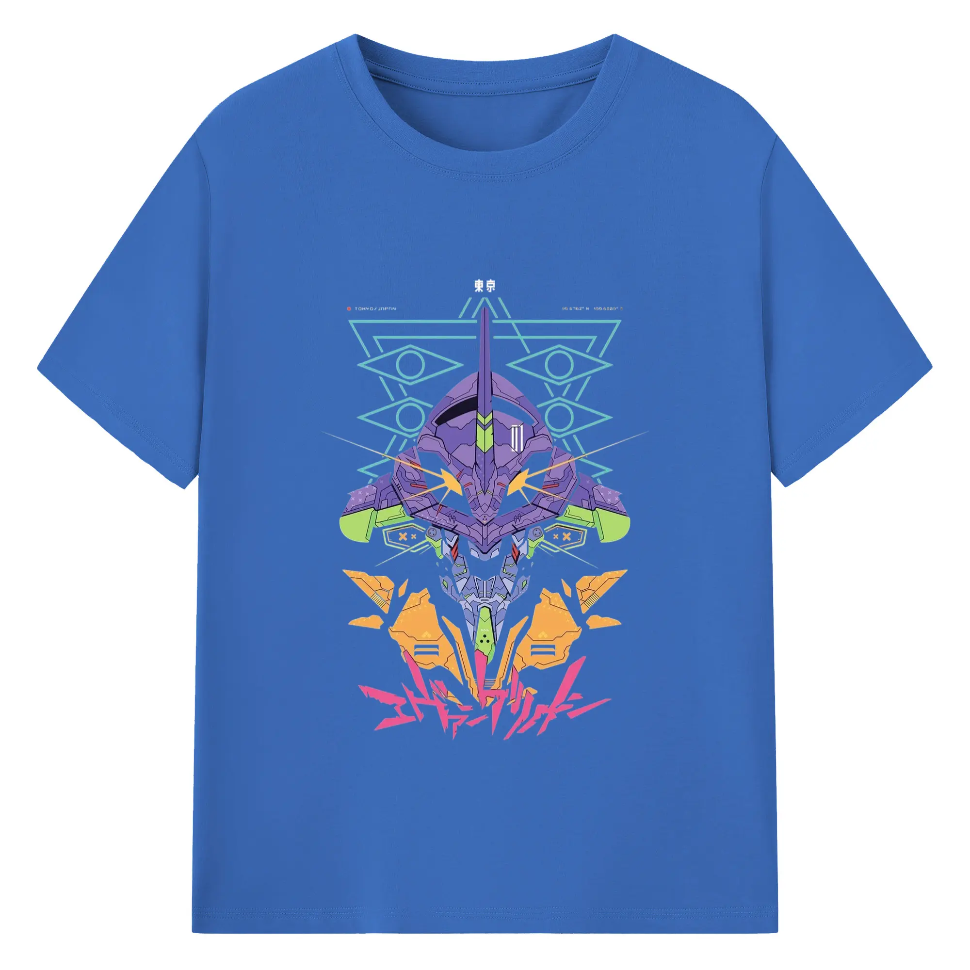 エヴァンゲリオン EVA初号機 - 綿100% ヴィンテージ風 半袖Tシャツ ・ フロントプリント ・ 柔らか肌触り ・ 通気性 快適 ・ スポーツ カジュアル 外出用