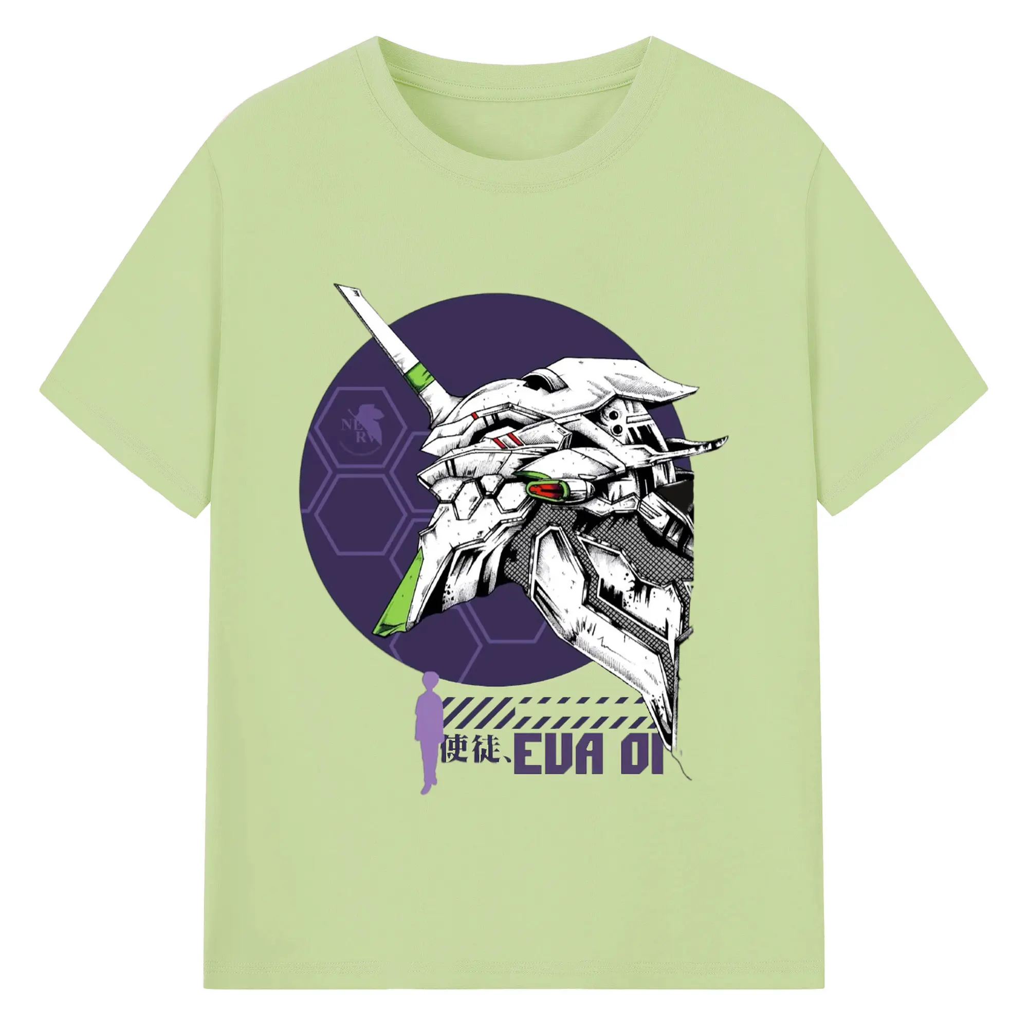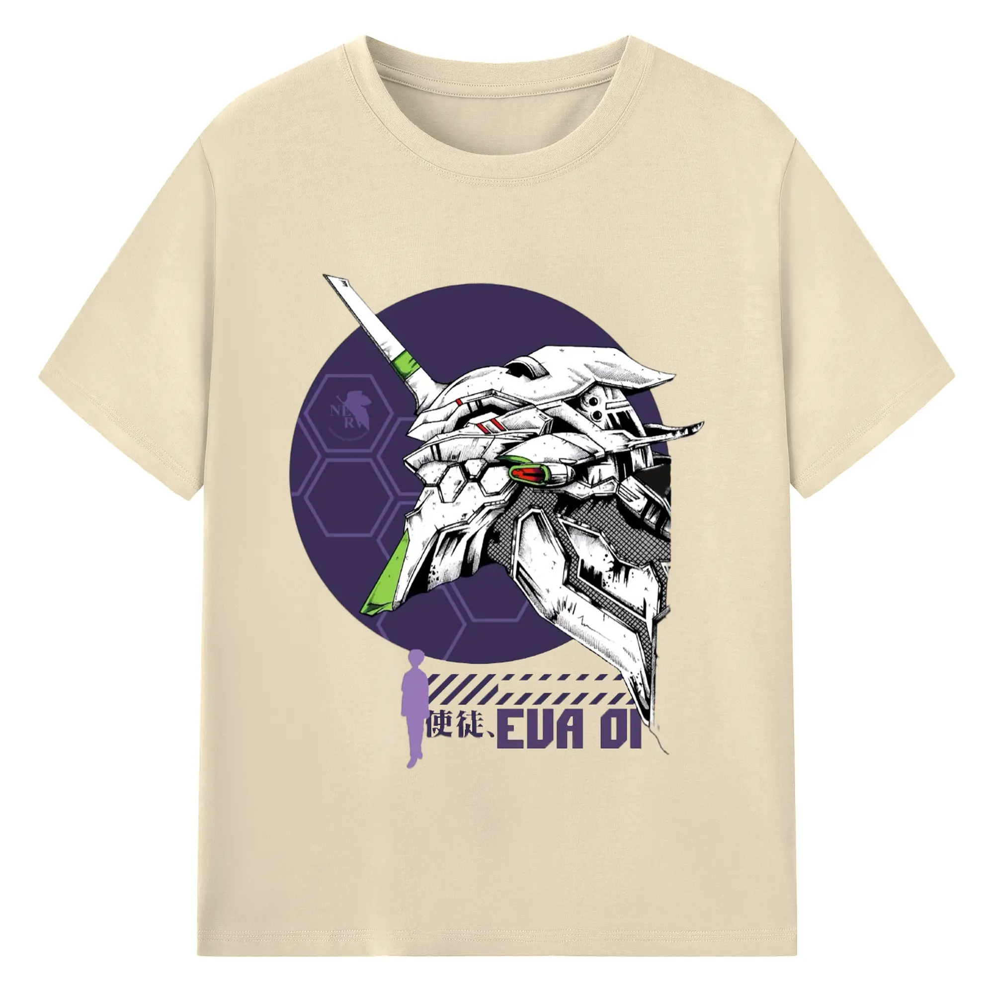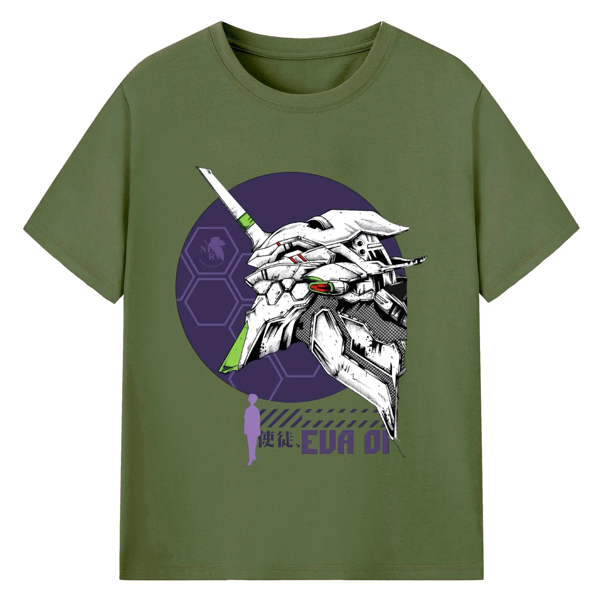 エヴァンゲリオン EVA初号機 - 綿100% ヴィンテージ風 半袖Tシャツ ・ フロントプリント ・ 柔らか肌触り ・ 通気性 快適 ・ スポーツ カジュアル 外出用