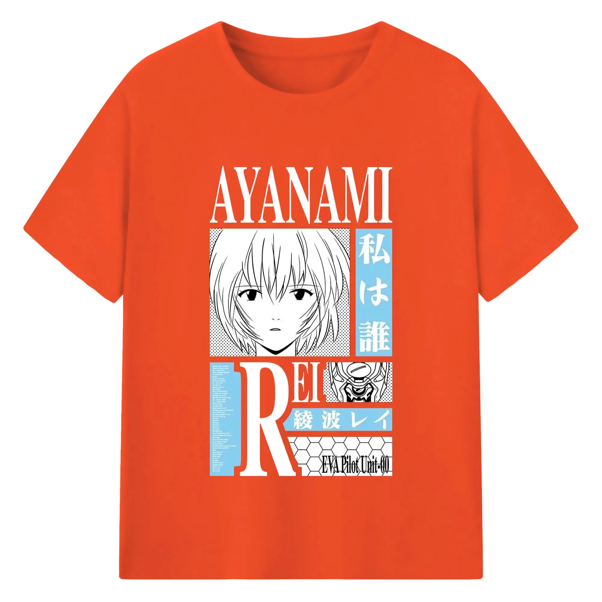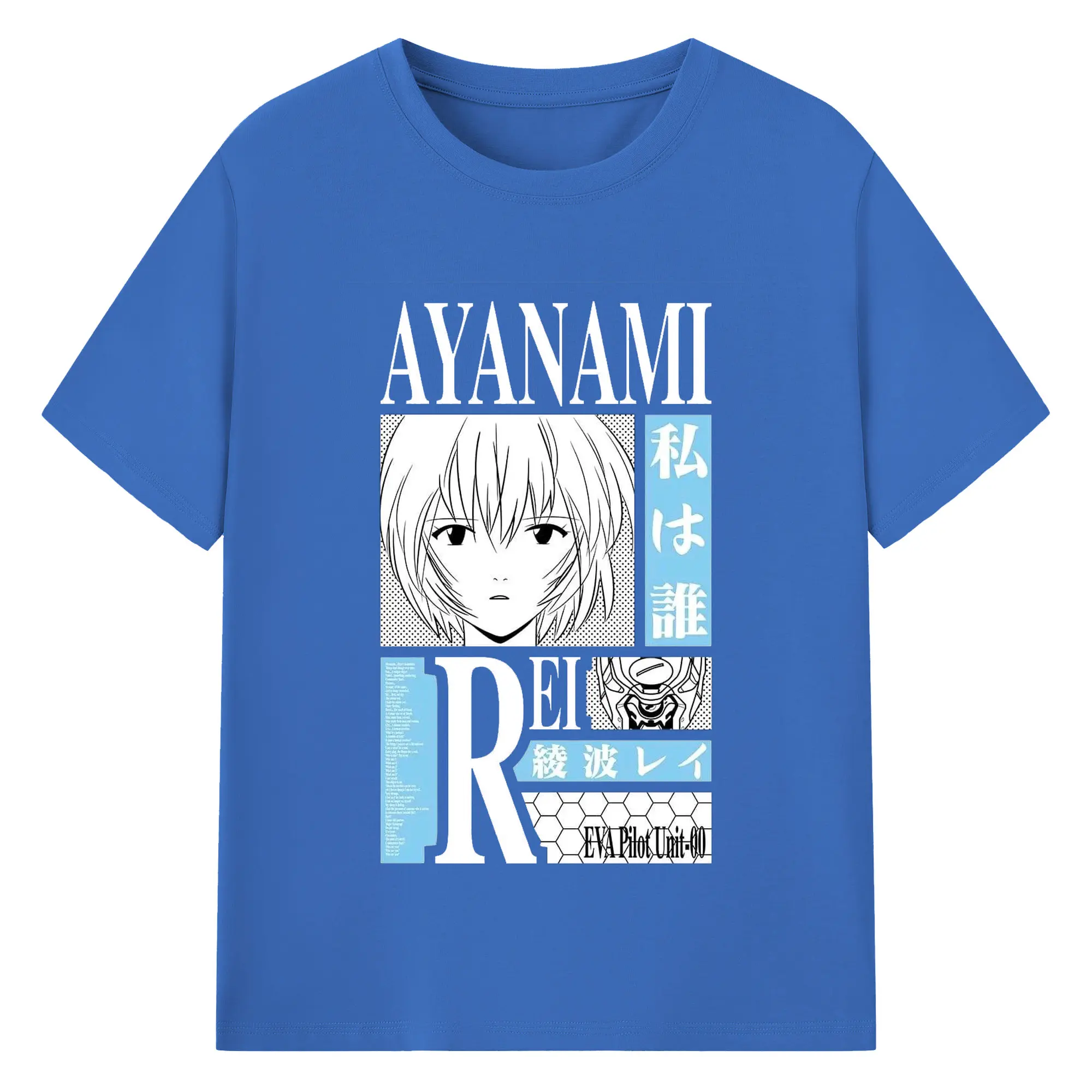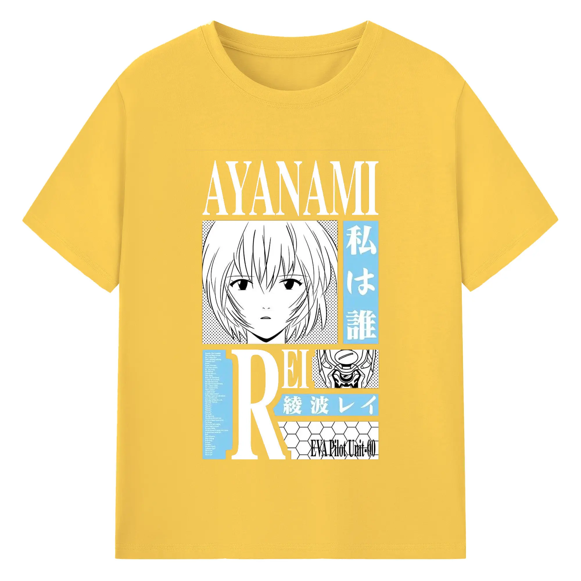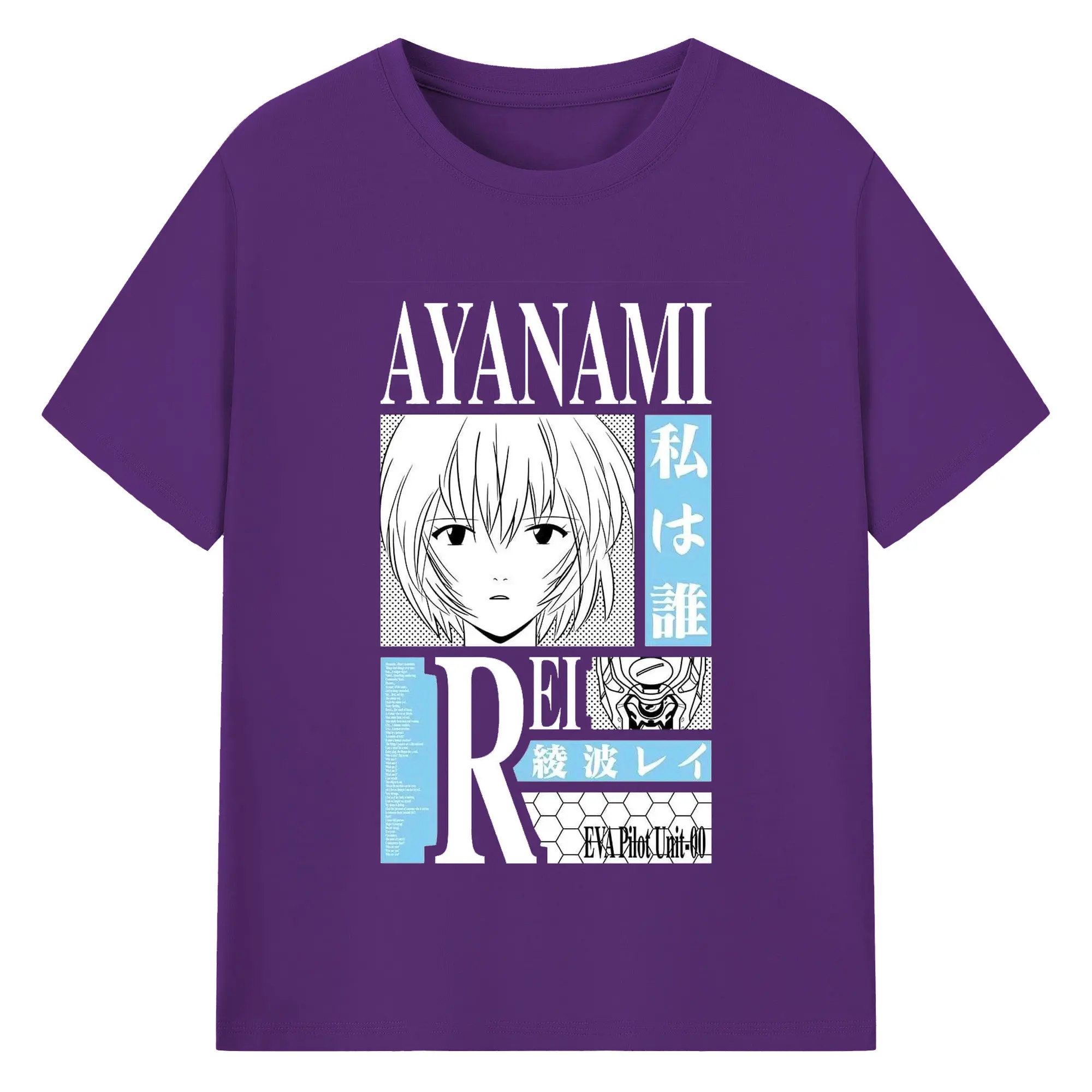エヴァンゲリオン 綾波レイ - 綿100% ヴィンテージ風 半袖Tシャツ ・ フロントプリント ・ 柔らか肌触り ・ 通気性 快適 ・ スポーツ カジュアル 外出用