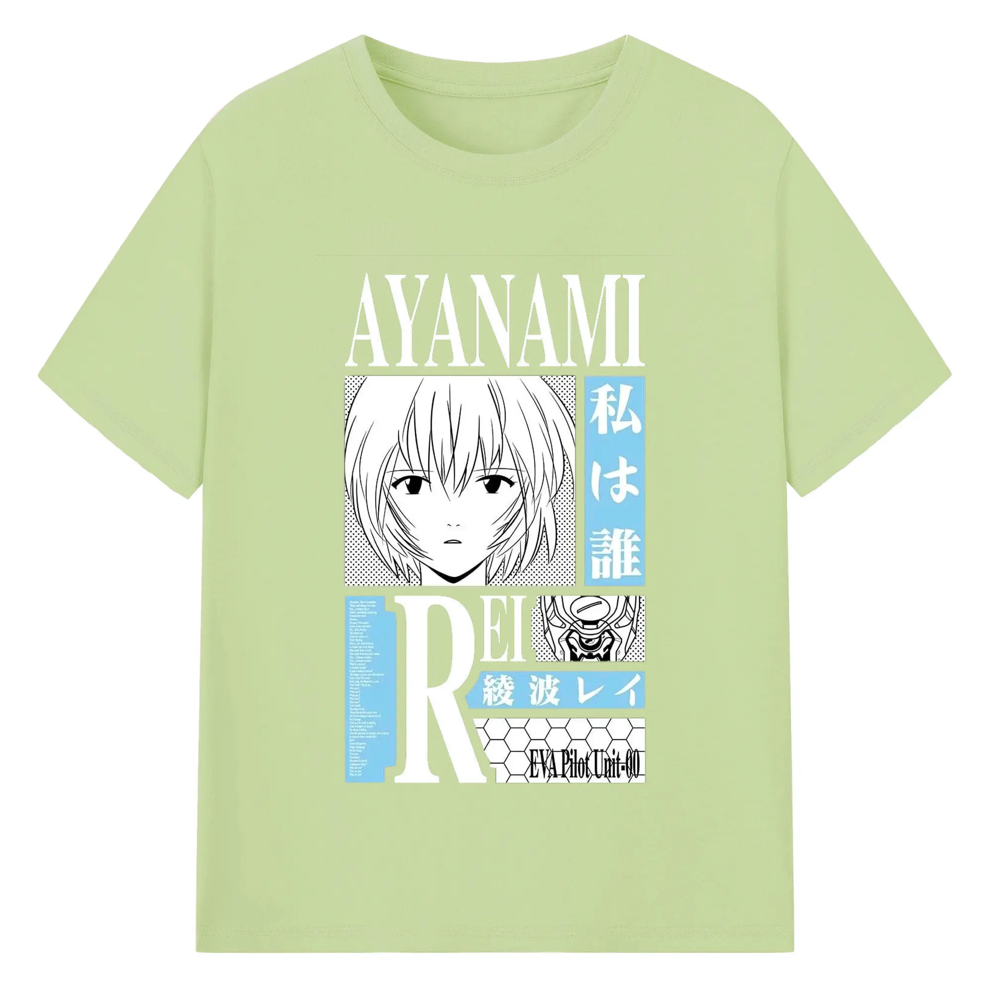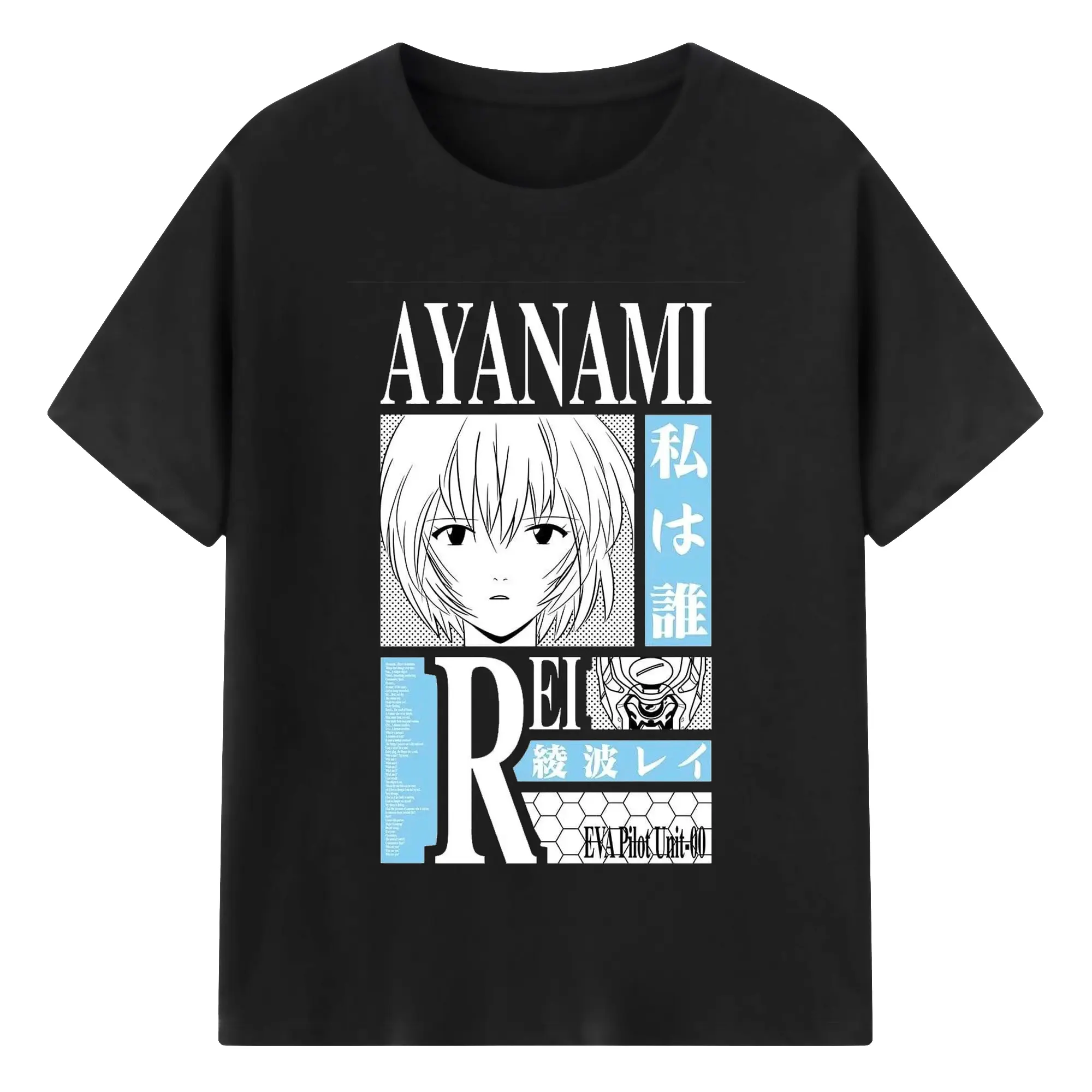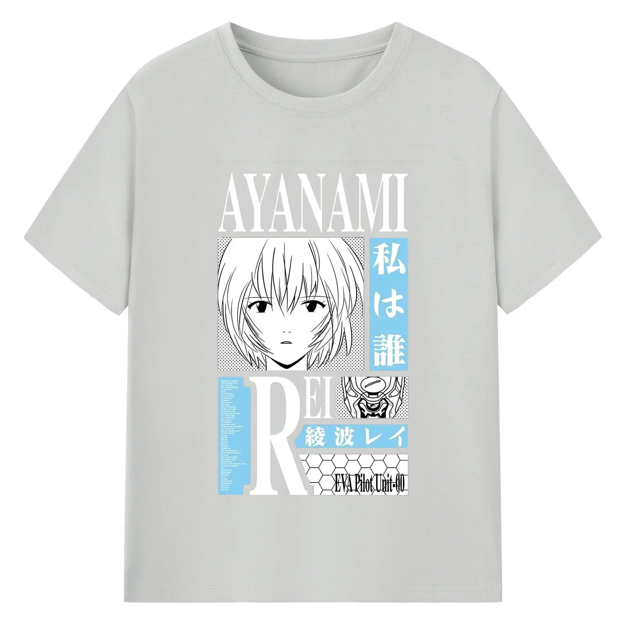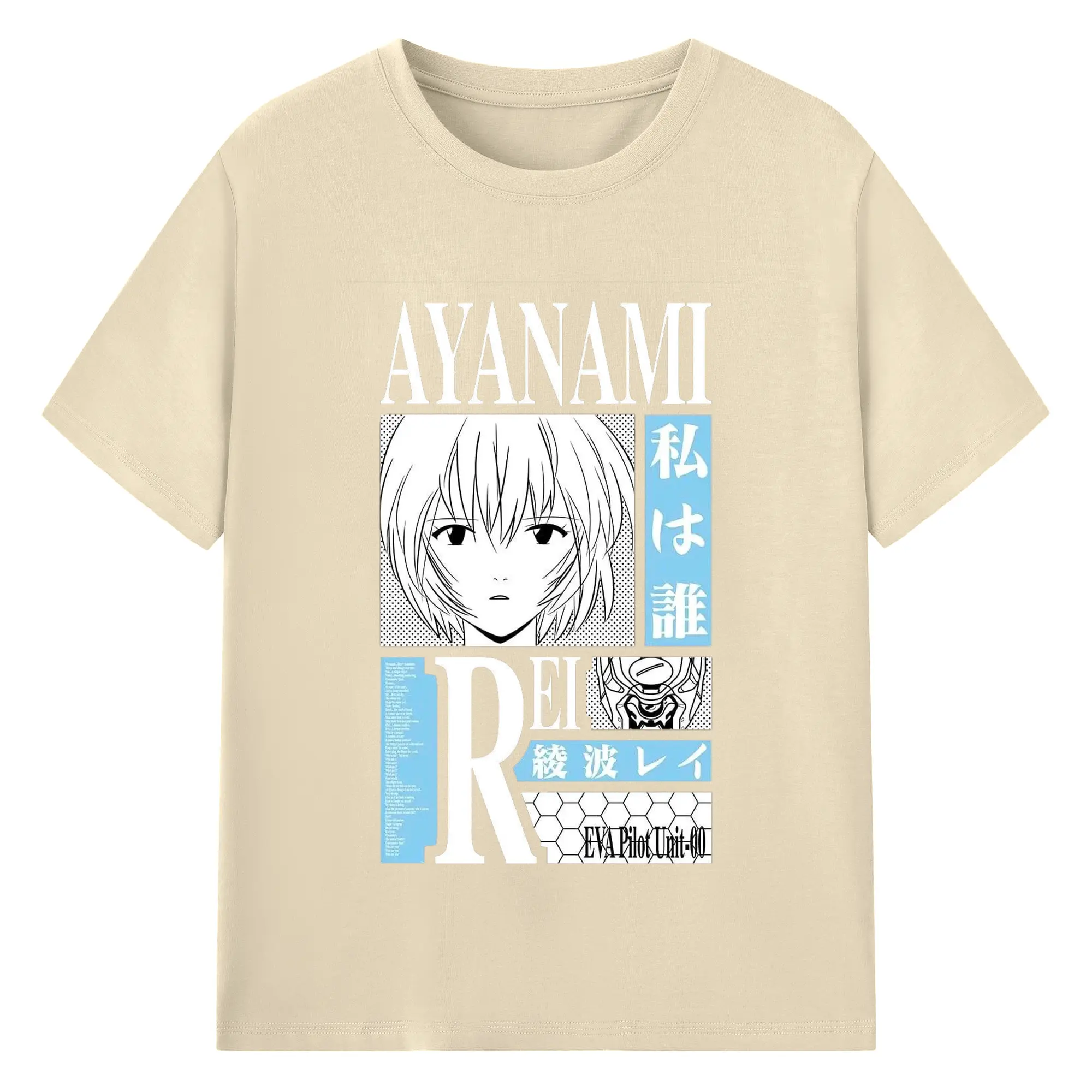 エヴァンゲリオン 綾波レイ - 綿100% ヴィンテージ風 半袖Tシャツ ・ フロントプリント ・ 柔らか肌触り ・ 通気性 快適 ・ スポーツ カジュアル 外出用