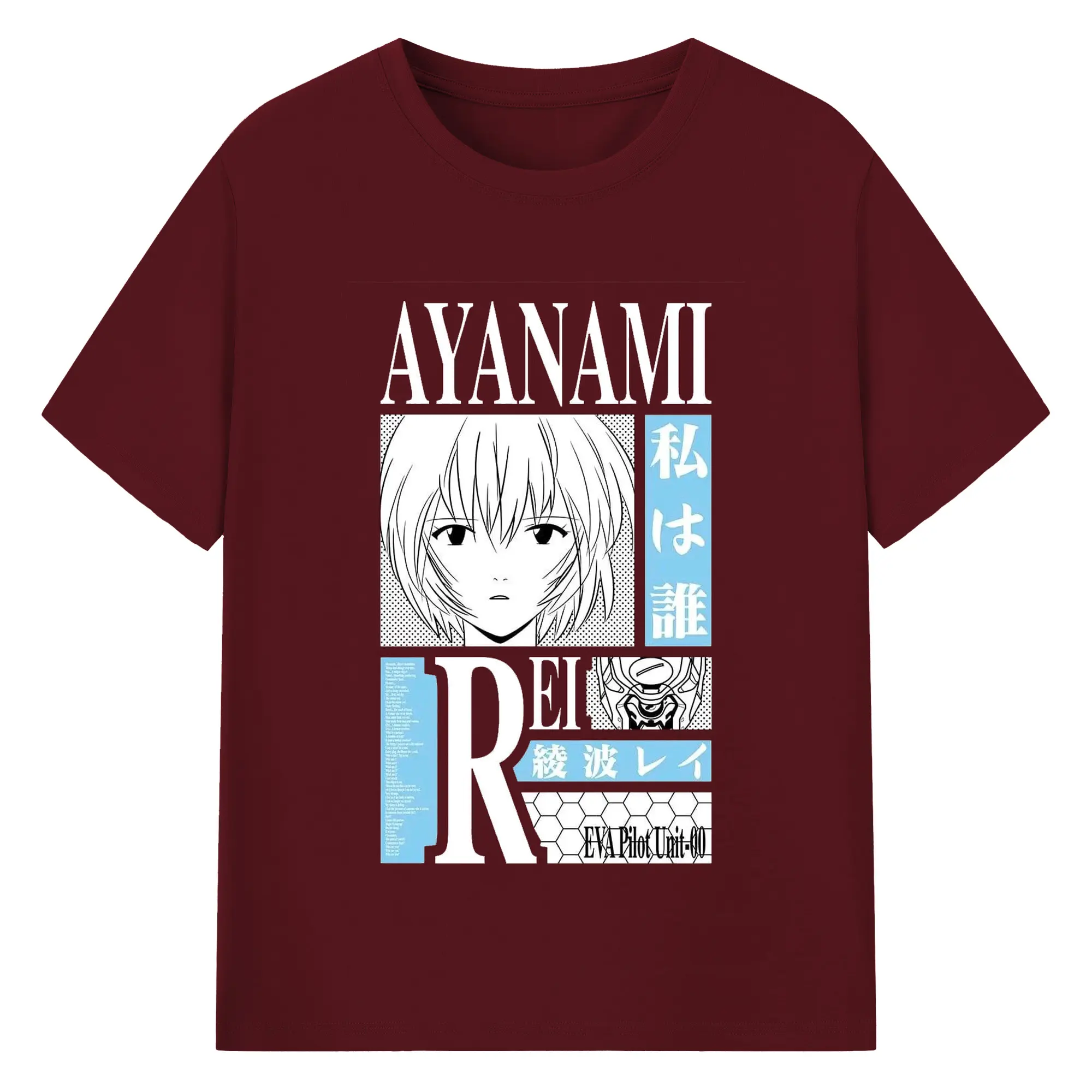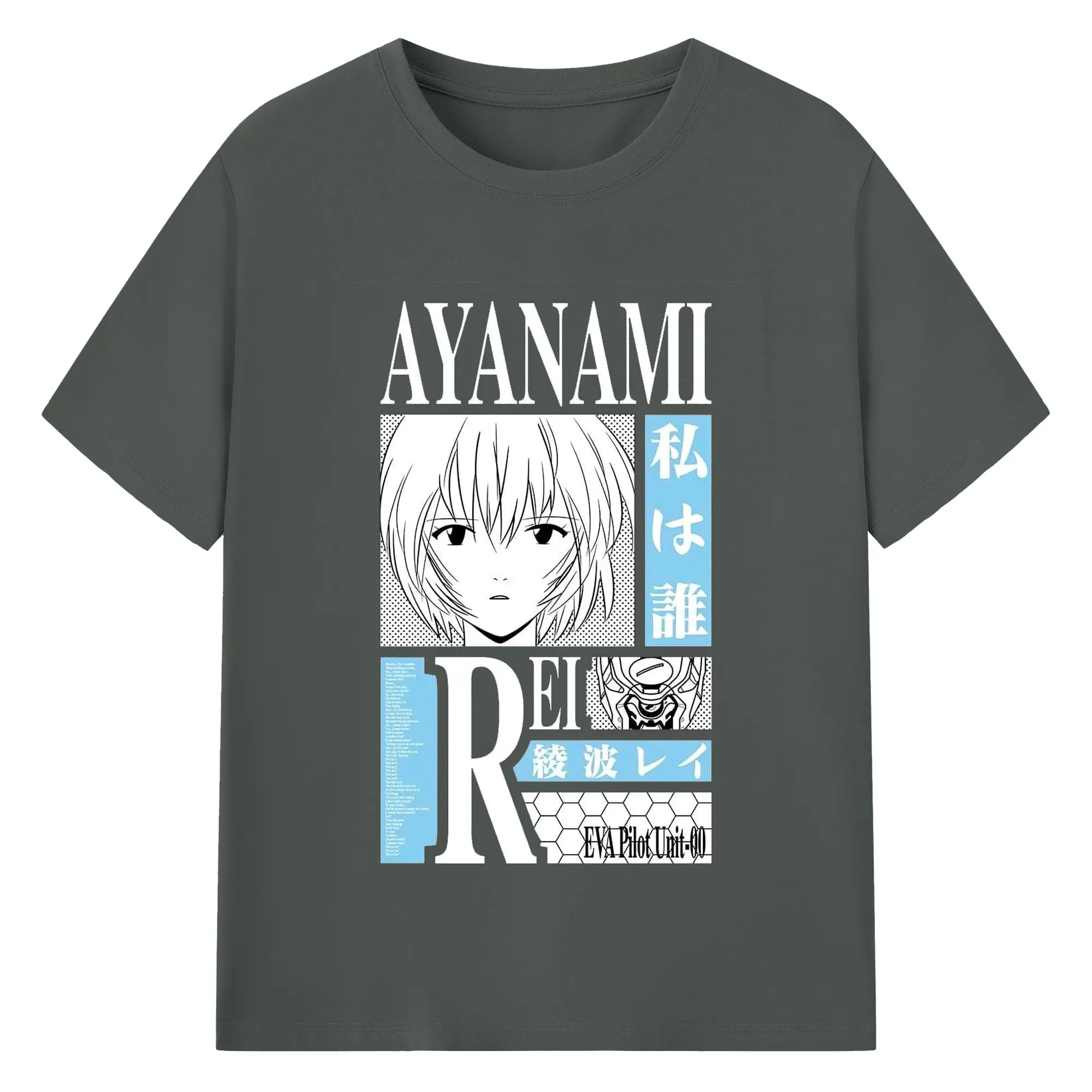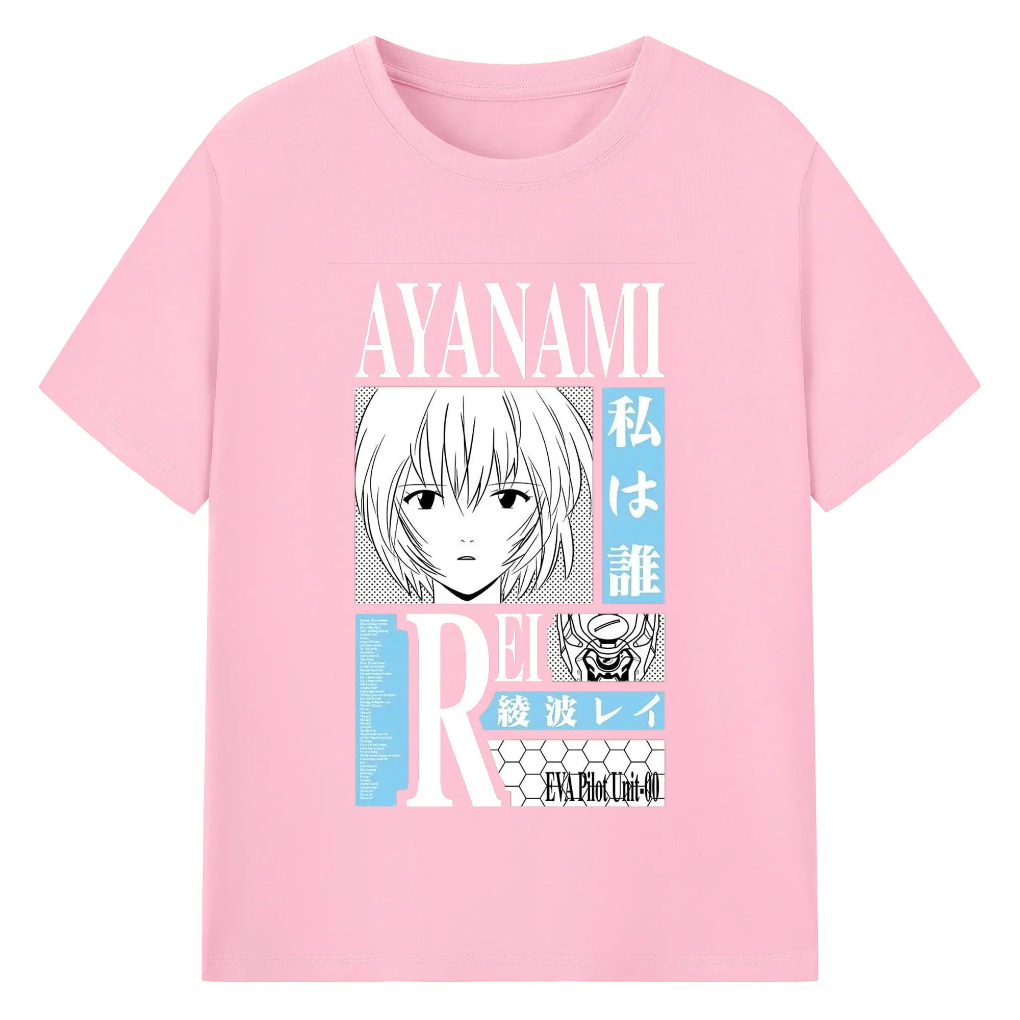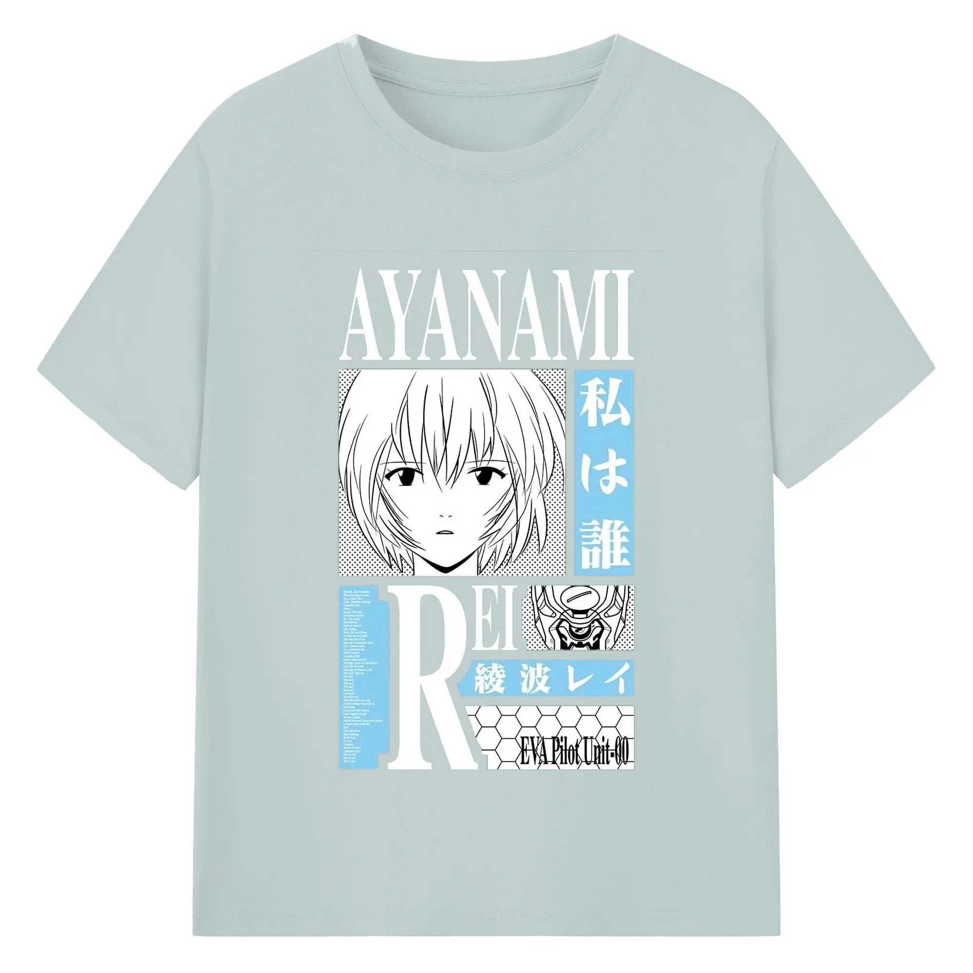 エヴァンゲリオン 綾波レイ - 綿100% ヴィンテージ風 半袖Tシャツ ・ フロントプリント ・ 柔らか肌触り ・ 通気性 快適 ・ スポーツ カジュアル 外出用