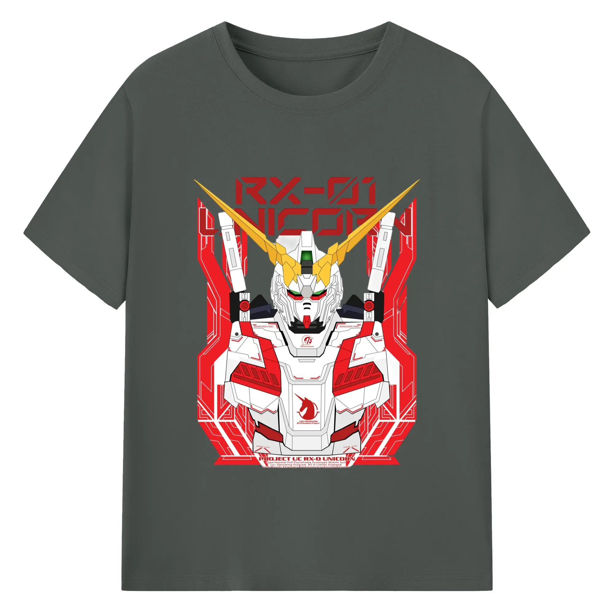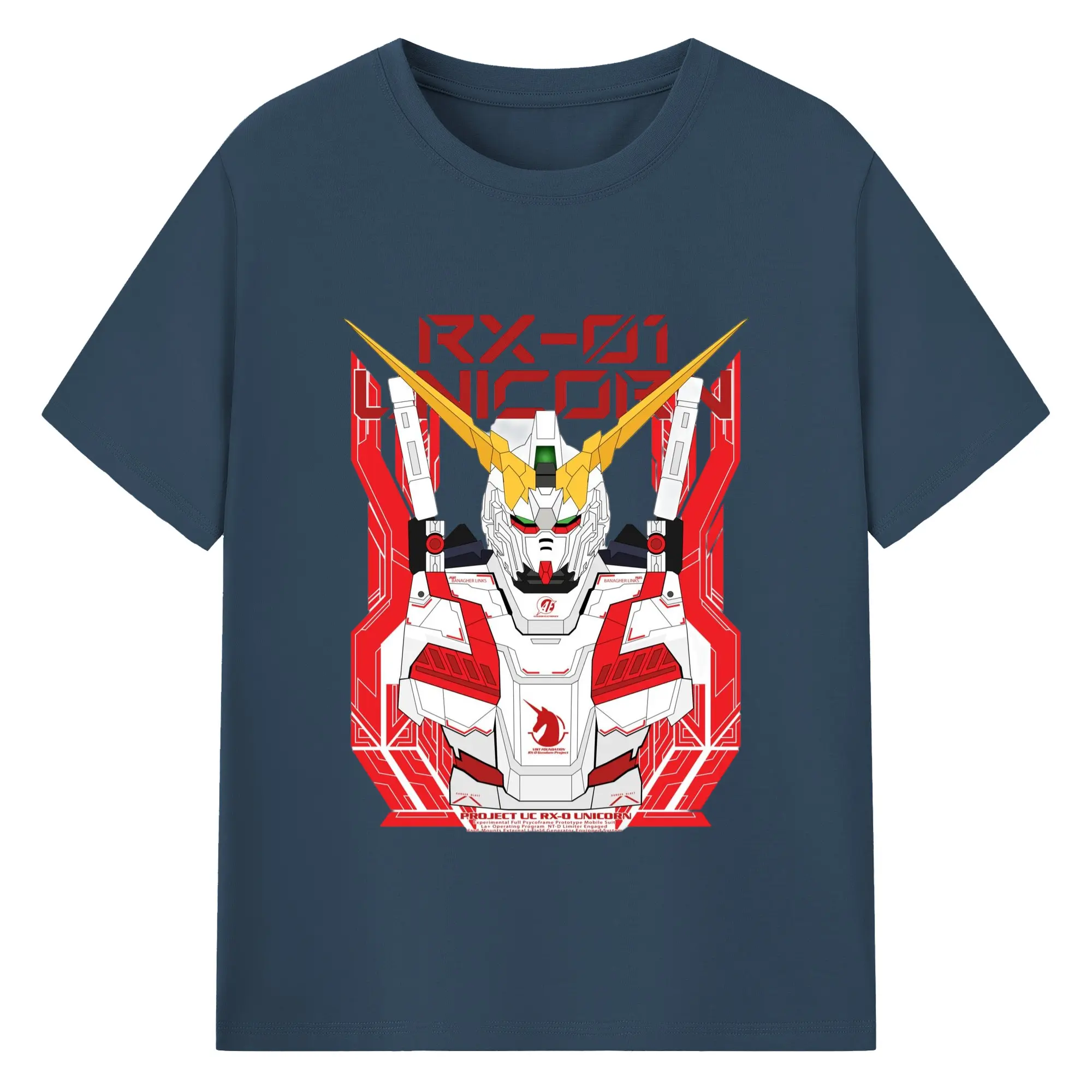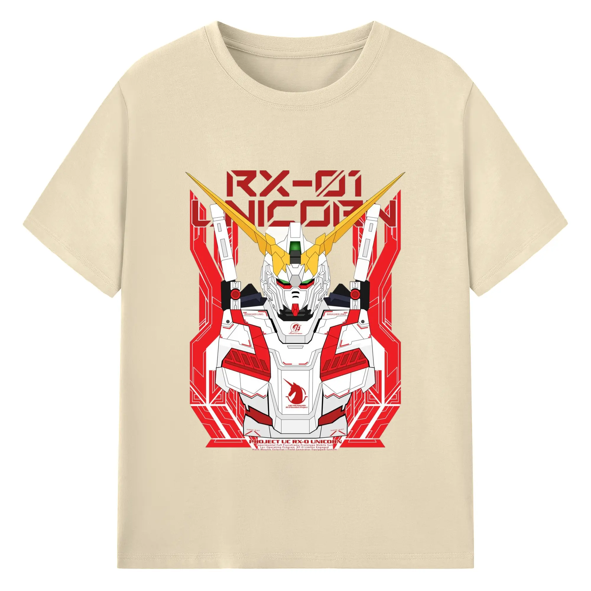 ガンダム 機動戦士ガンダム RX-01 - 綿100% ヴィンテージ風 半袖Tシャツ ・ フロントプリント ・ 柔らか肌触り ・ 通気性 快適 ・ スポーツ カジュアル 外出用