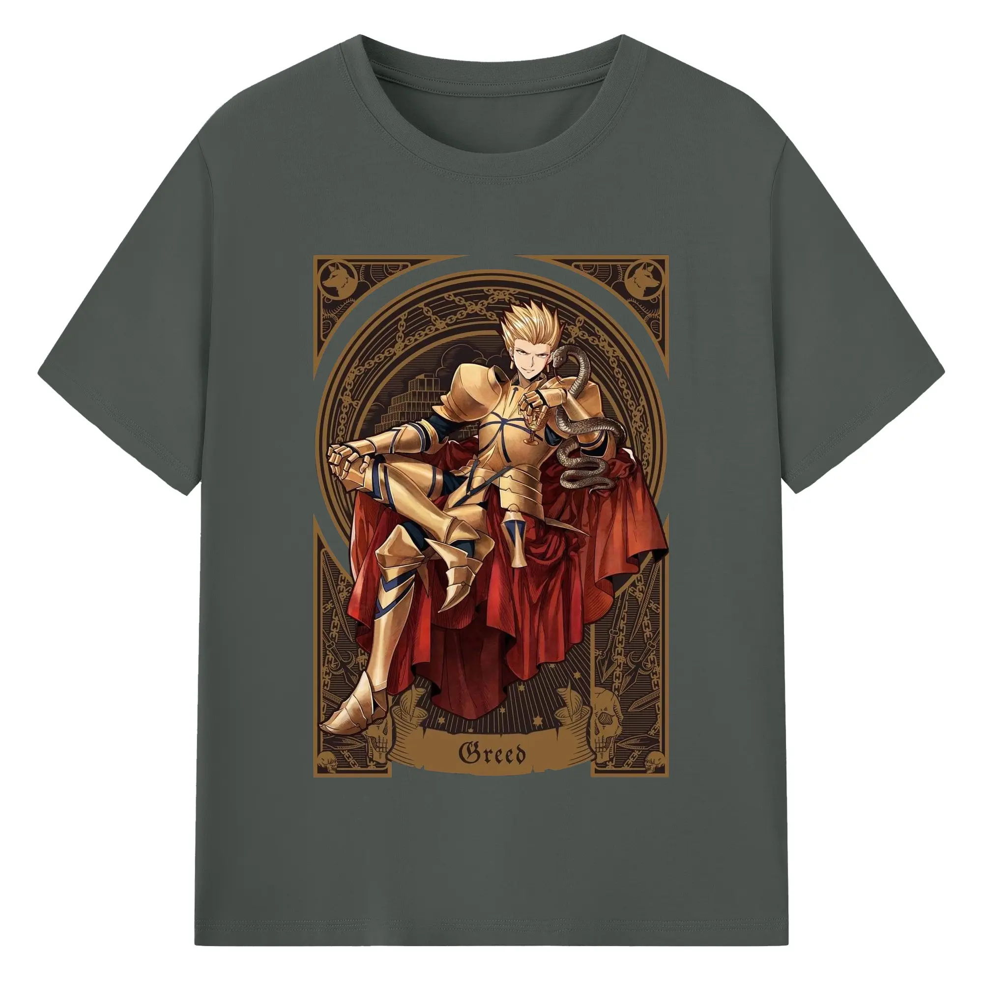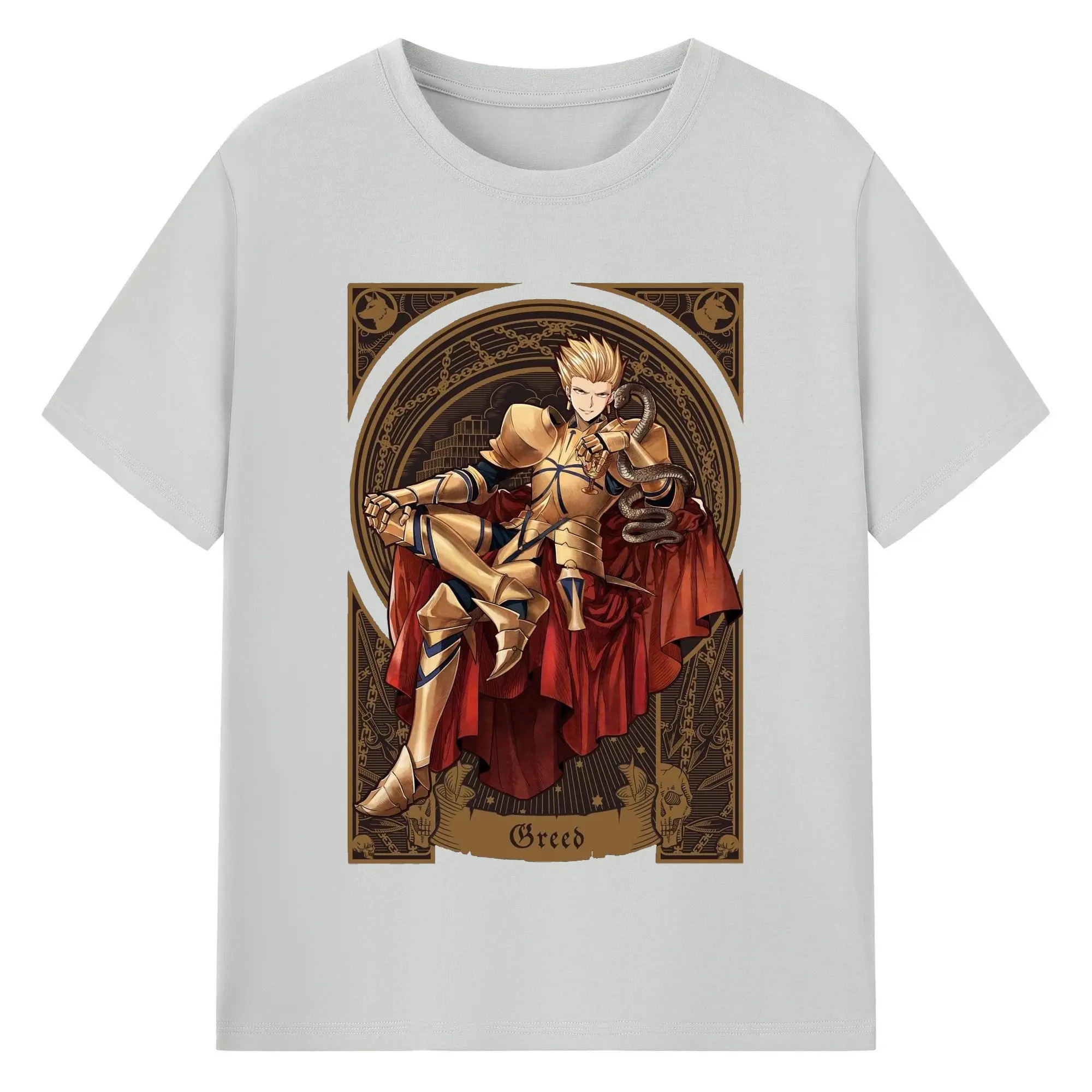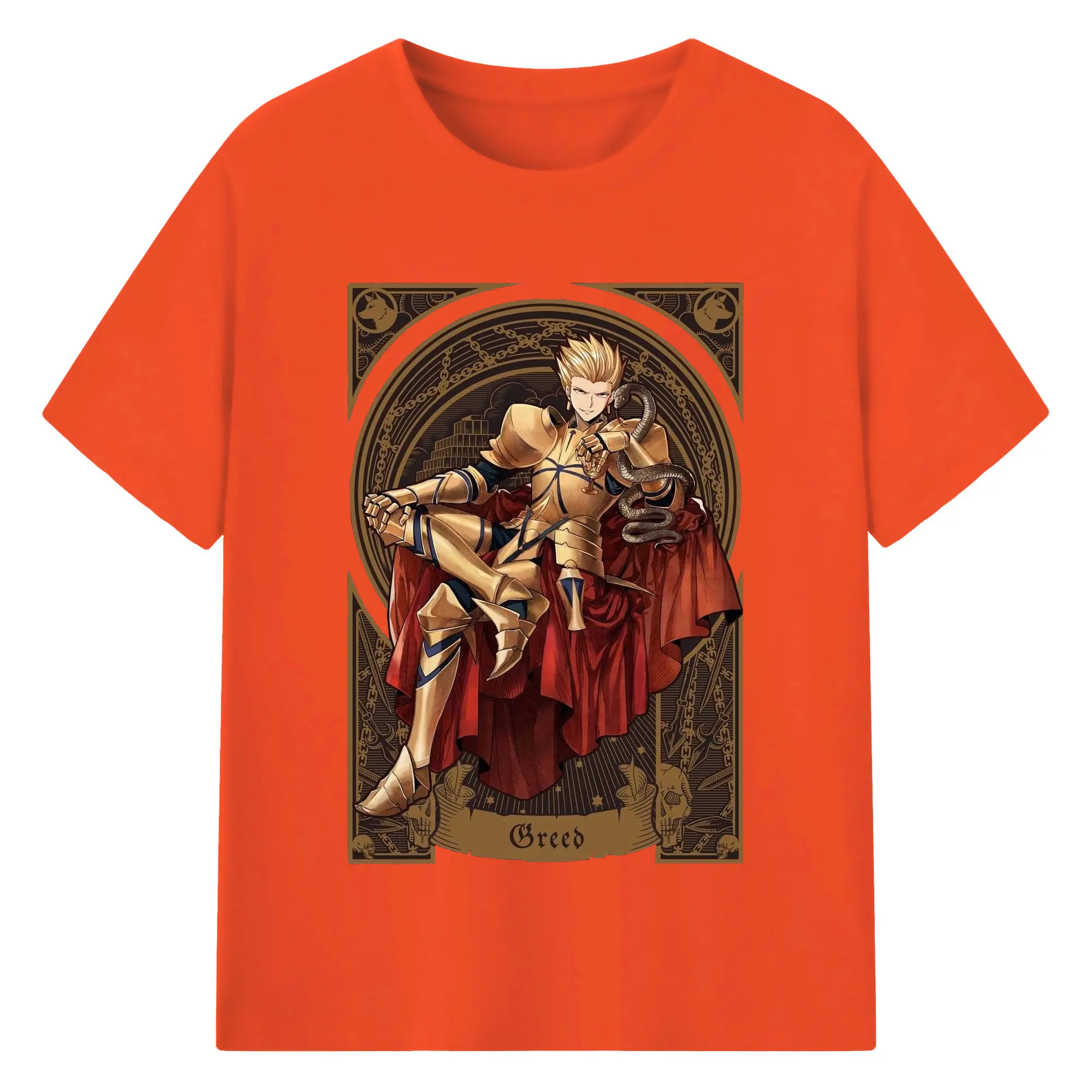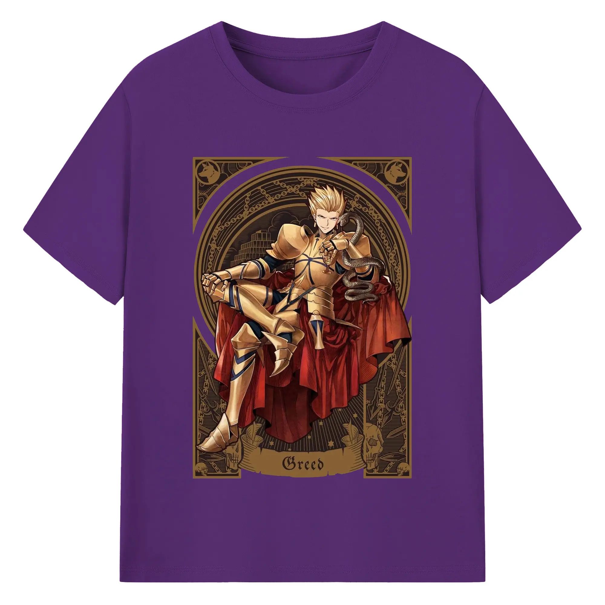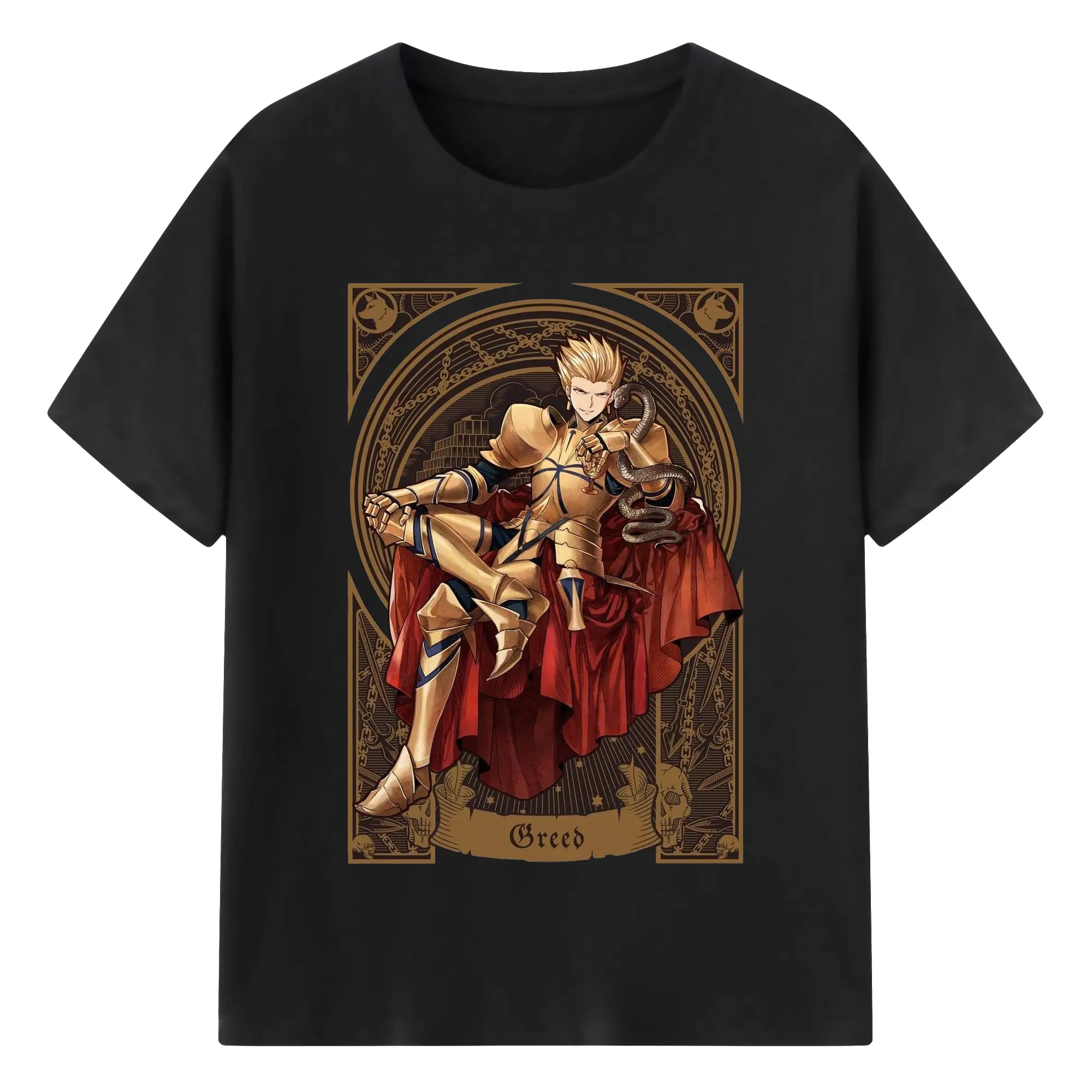 グランドオーダー FGO 英霊 ギルガメッシュ - 綿100% 半袖Tシャツ ・ フロントプリント ・ 快適 通気性 ・ 日常使い 散歩 スポーツ用