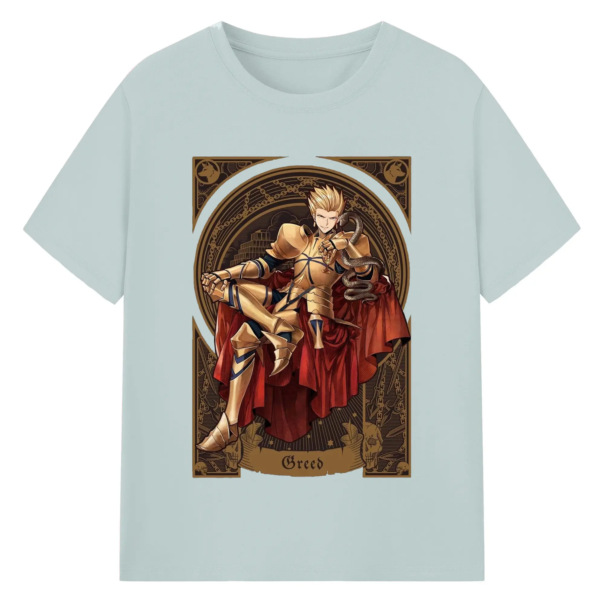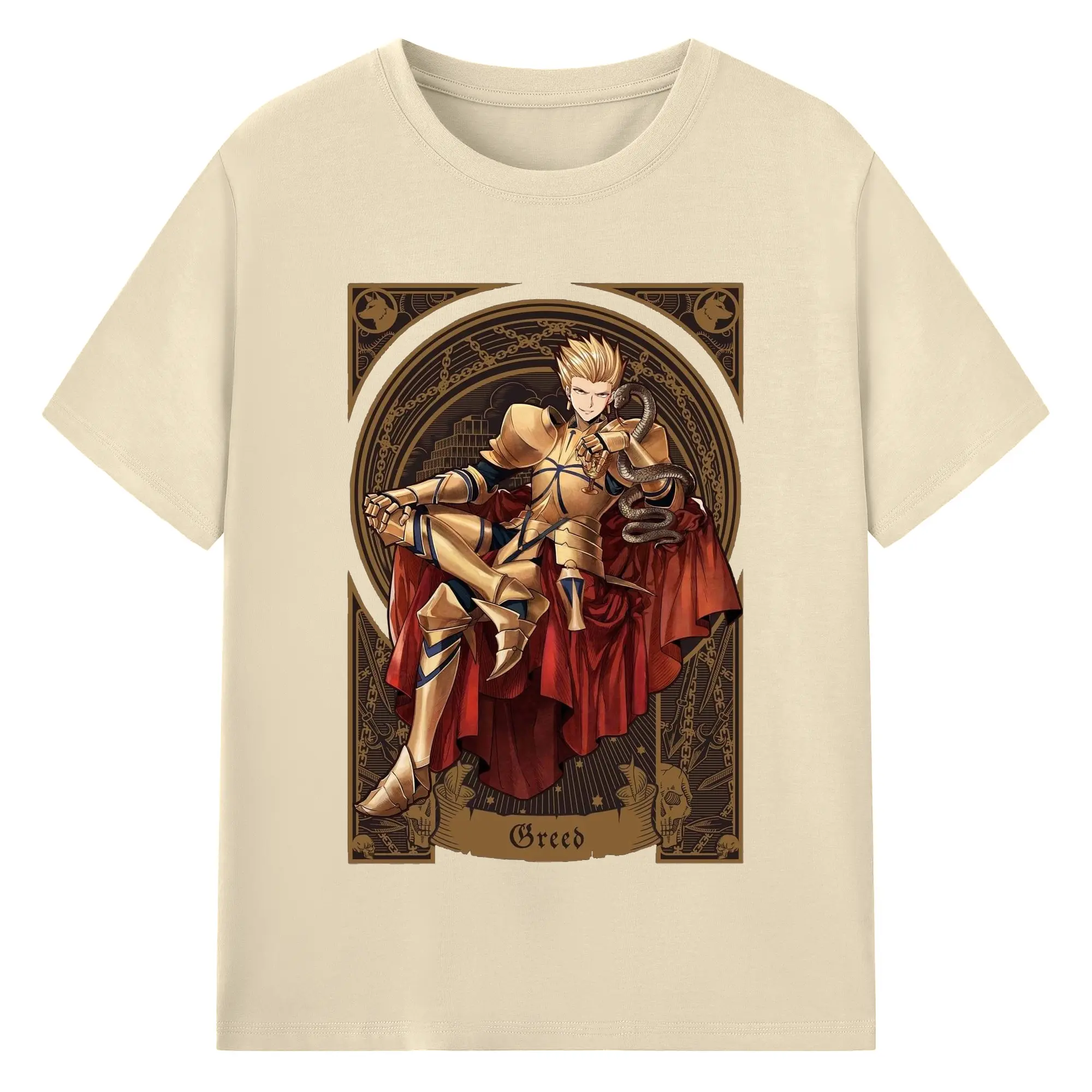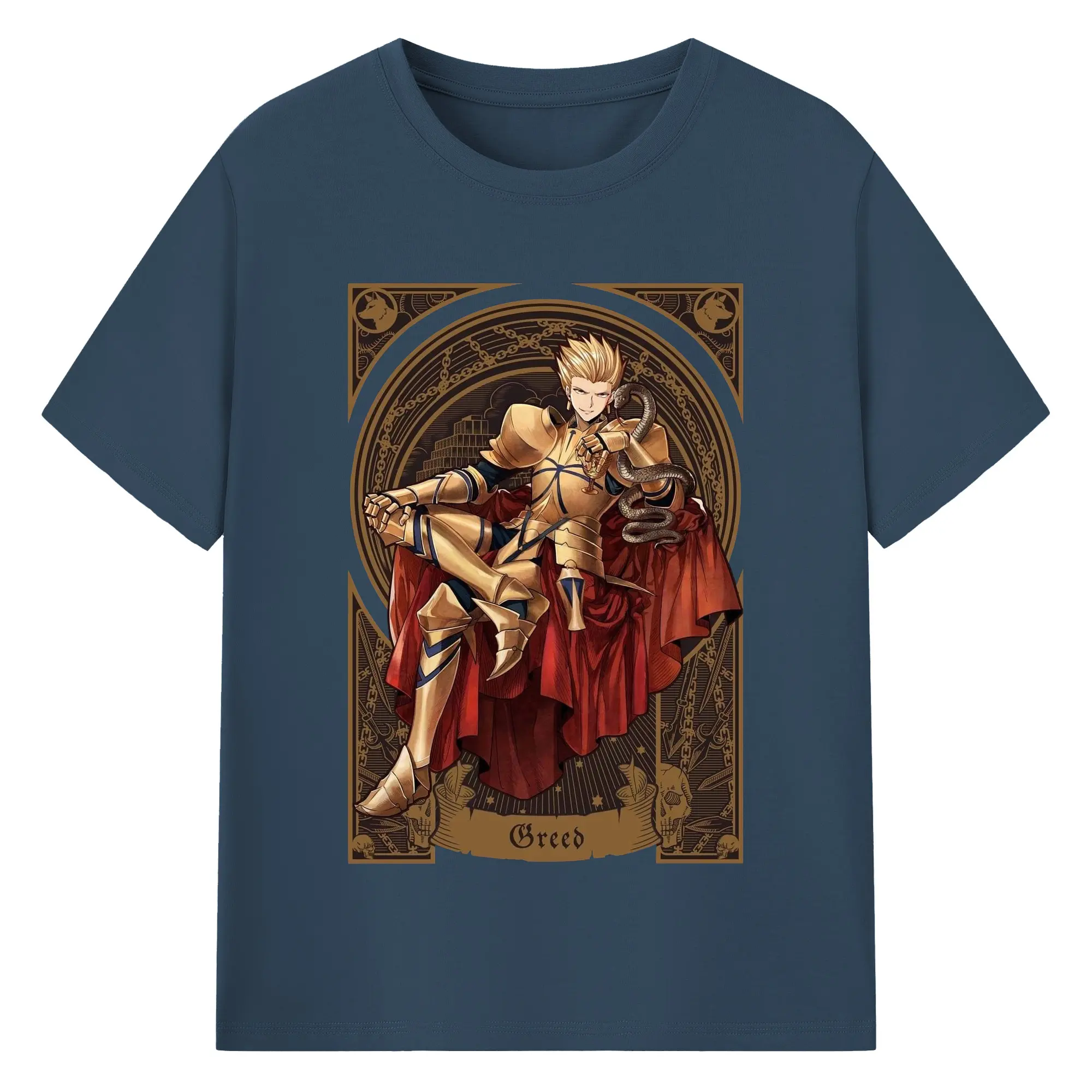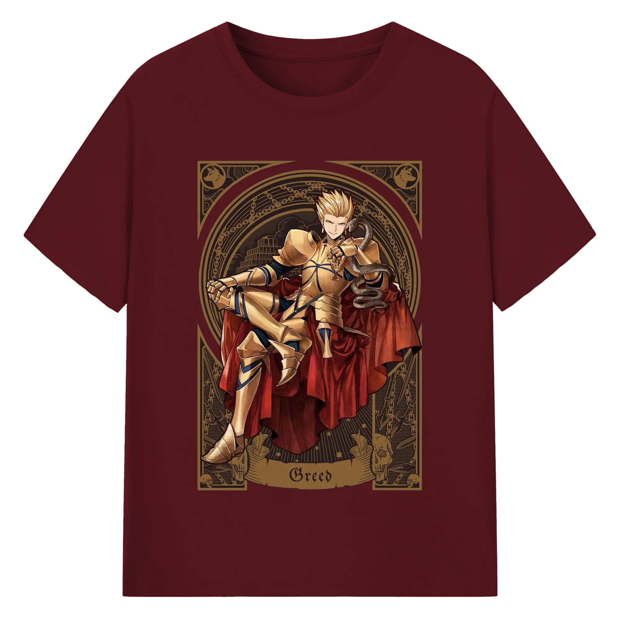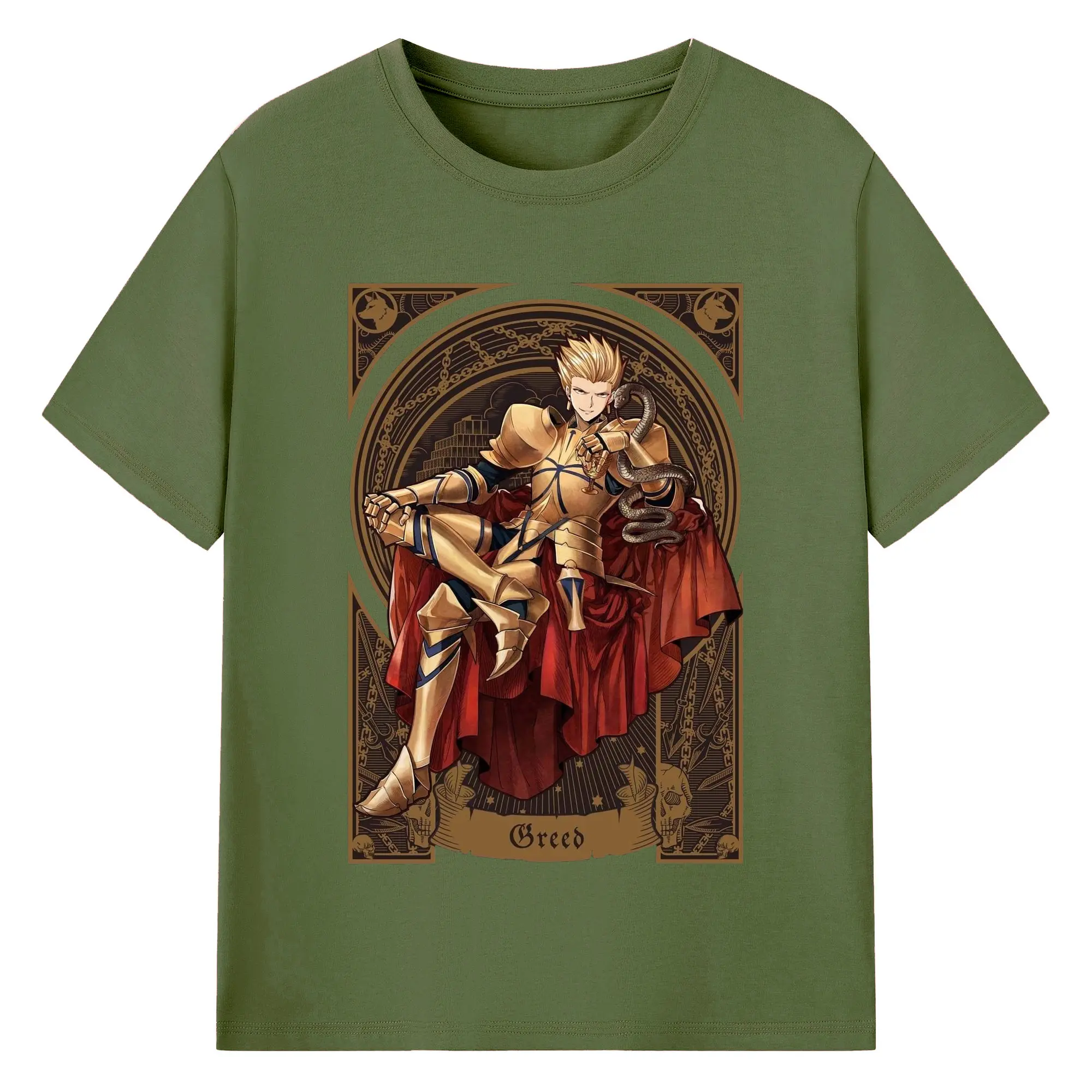 グランドオーダー FGO 英霊 ギルガメッシュ - 綿100% 半袖Tシャツ ・ フロントプリント ・ 快適 通気性 ・ 日常使い 散歩 スポーツ用