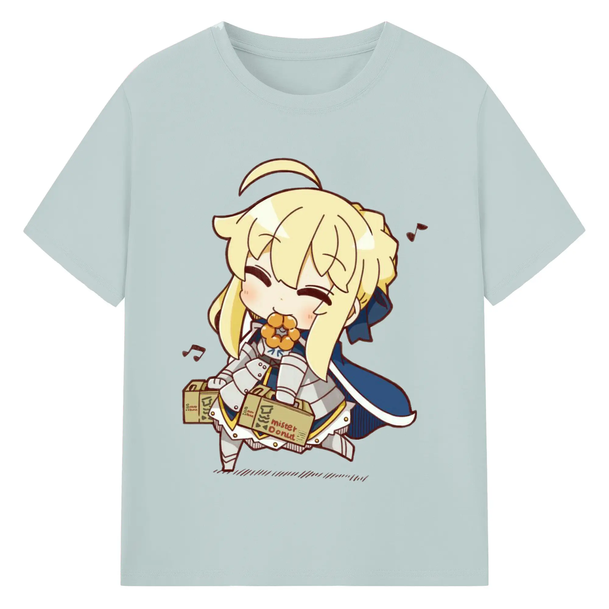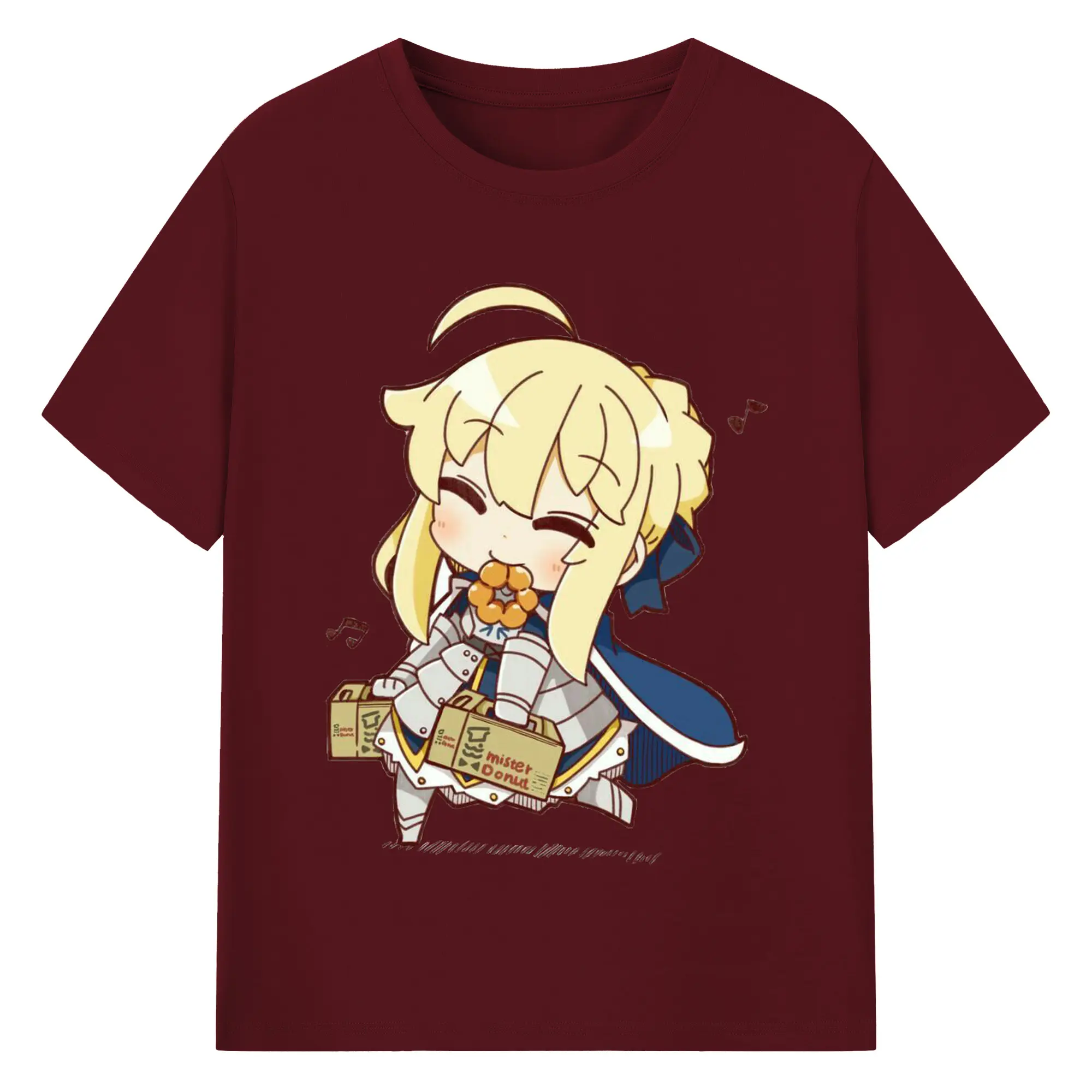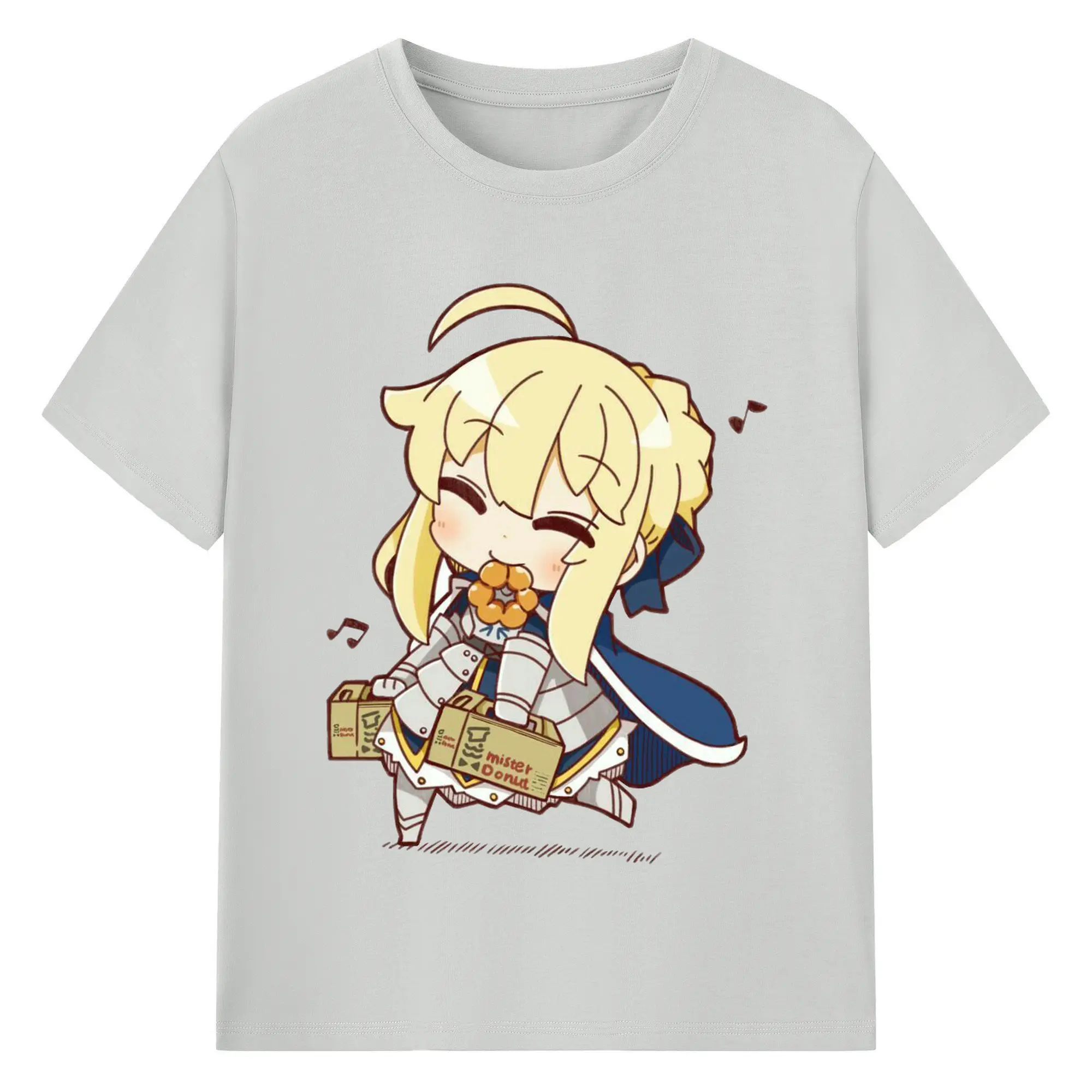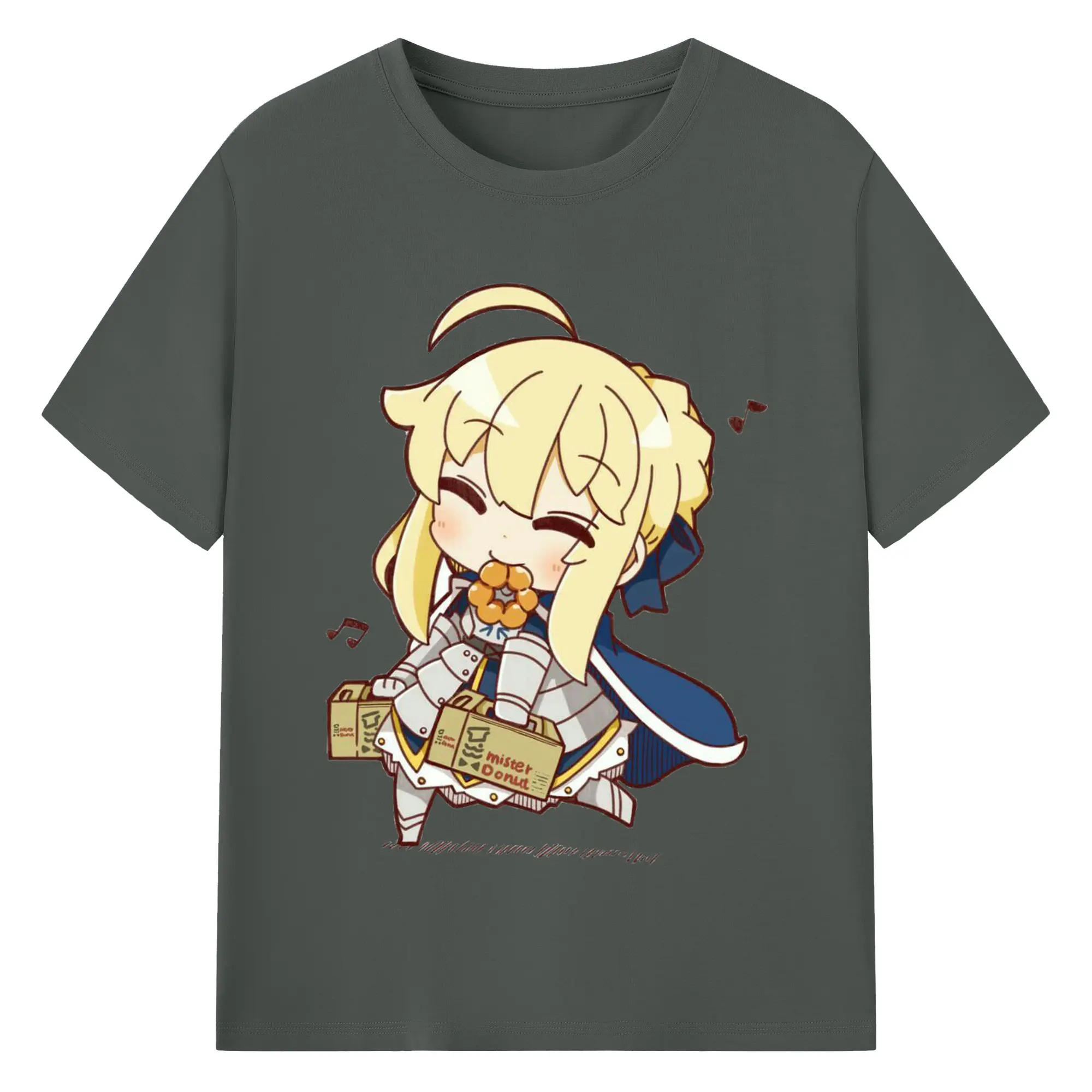 グランドオーダー FGO キャラクター アルトリア・ペンドラゴン - 綿100% ヴィンテージ風 半袖Tシャツ ・ フロントプリント ・ 柔らか肌触り ・ 通気性 快適 ・ スポーツ カジュアル 外出用