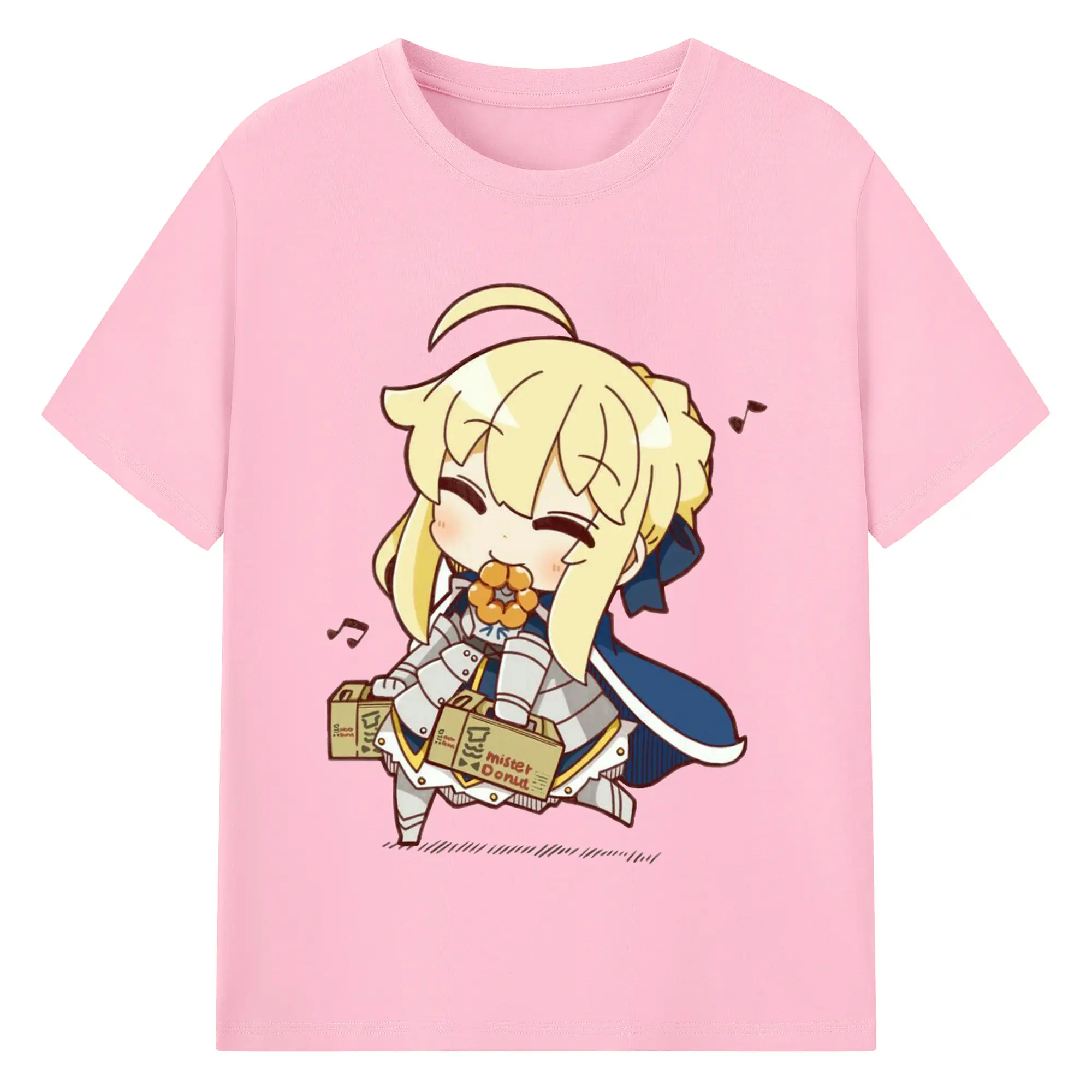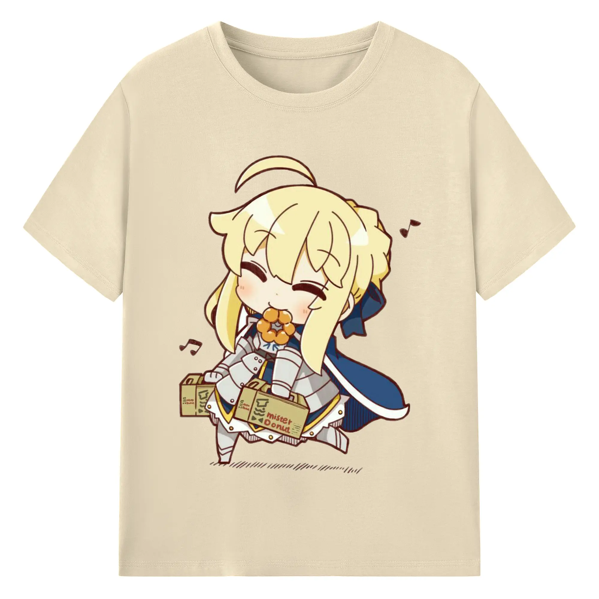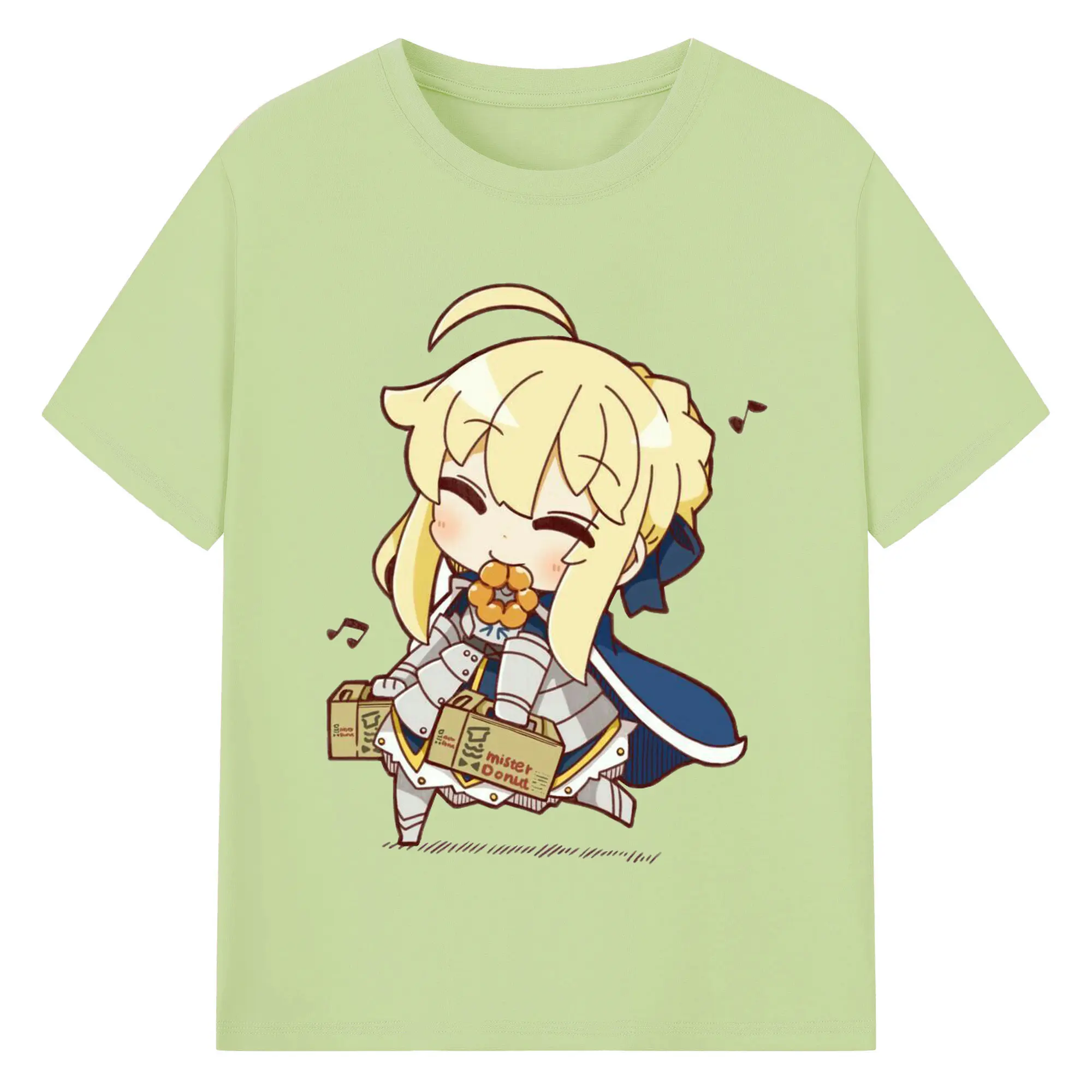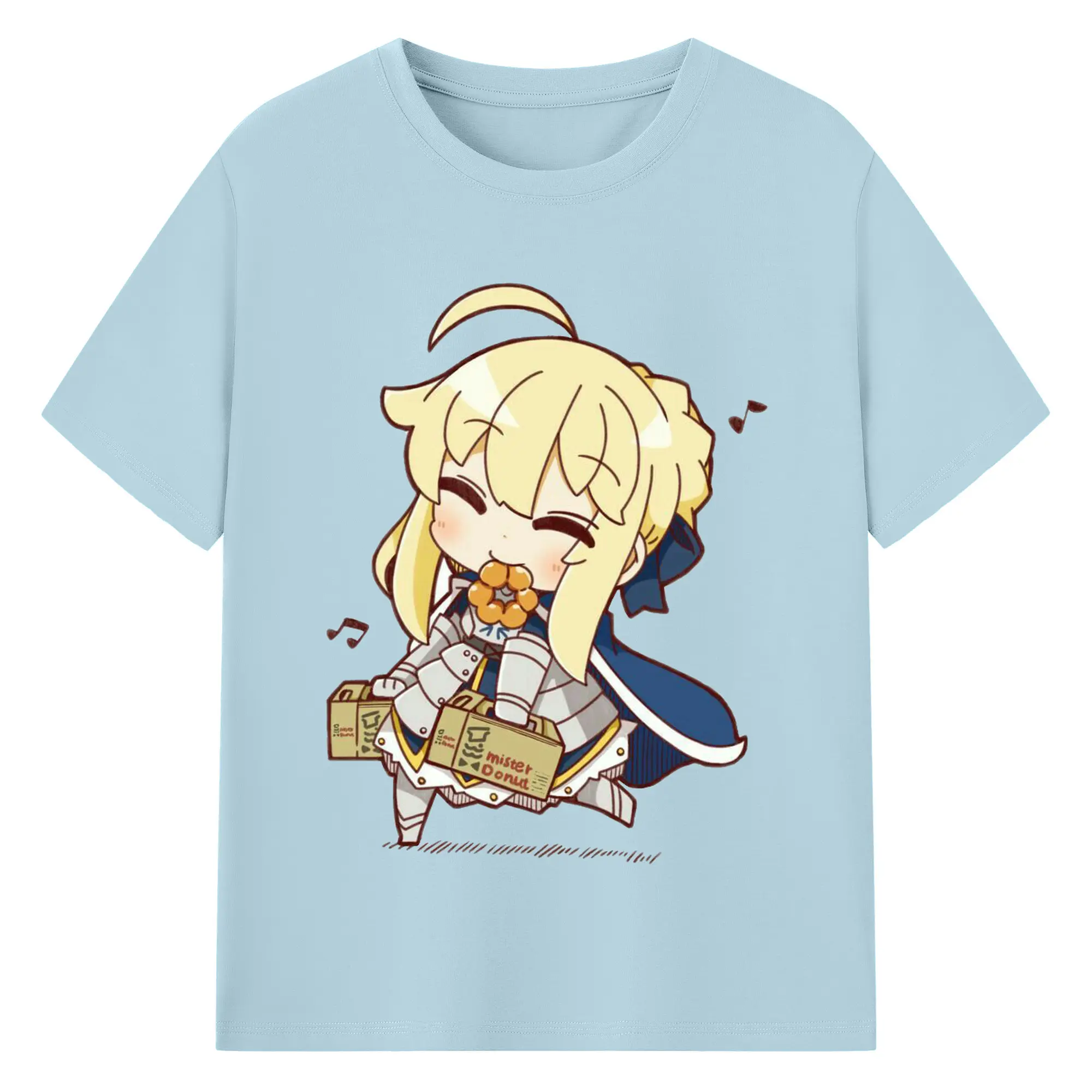 グランドオーダー FGO キャラクター アルトリア・ペンドラゴン - 綿100% ヴィンテージ風 半袖Tシャツ ・ フロントプリント ・ 柔らか肌触り ・ 通気性 快適 ・ スポーツ カジュアル 外出用