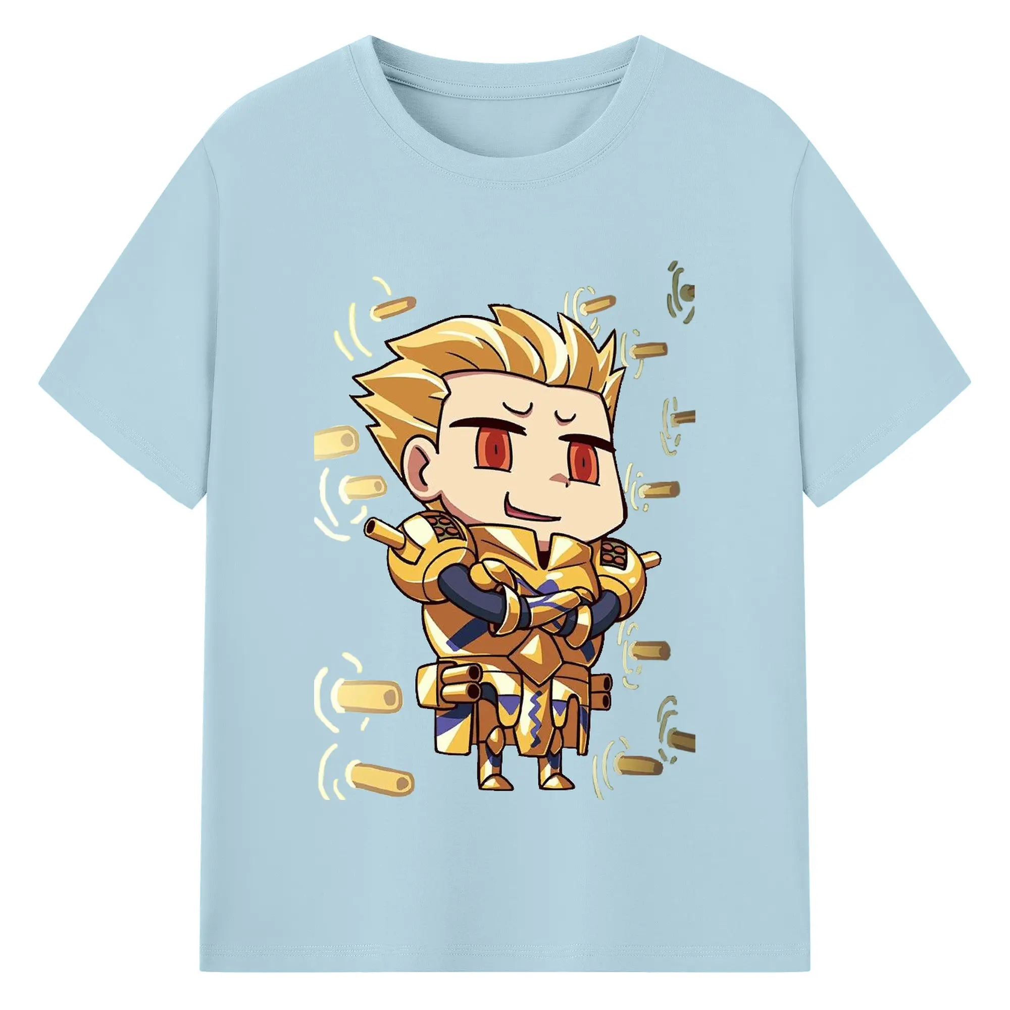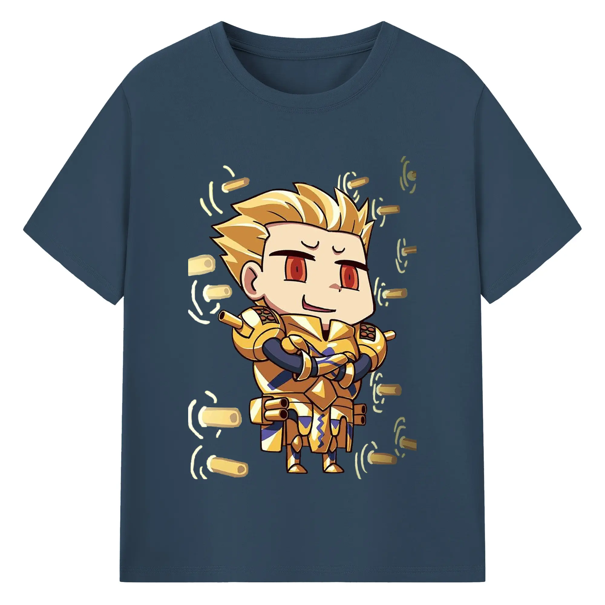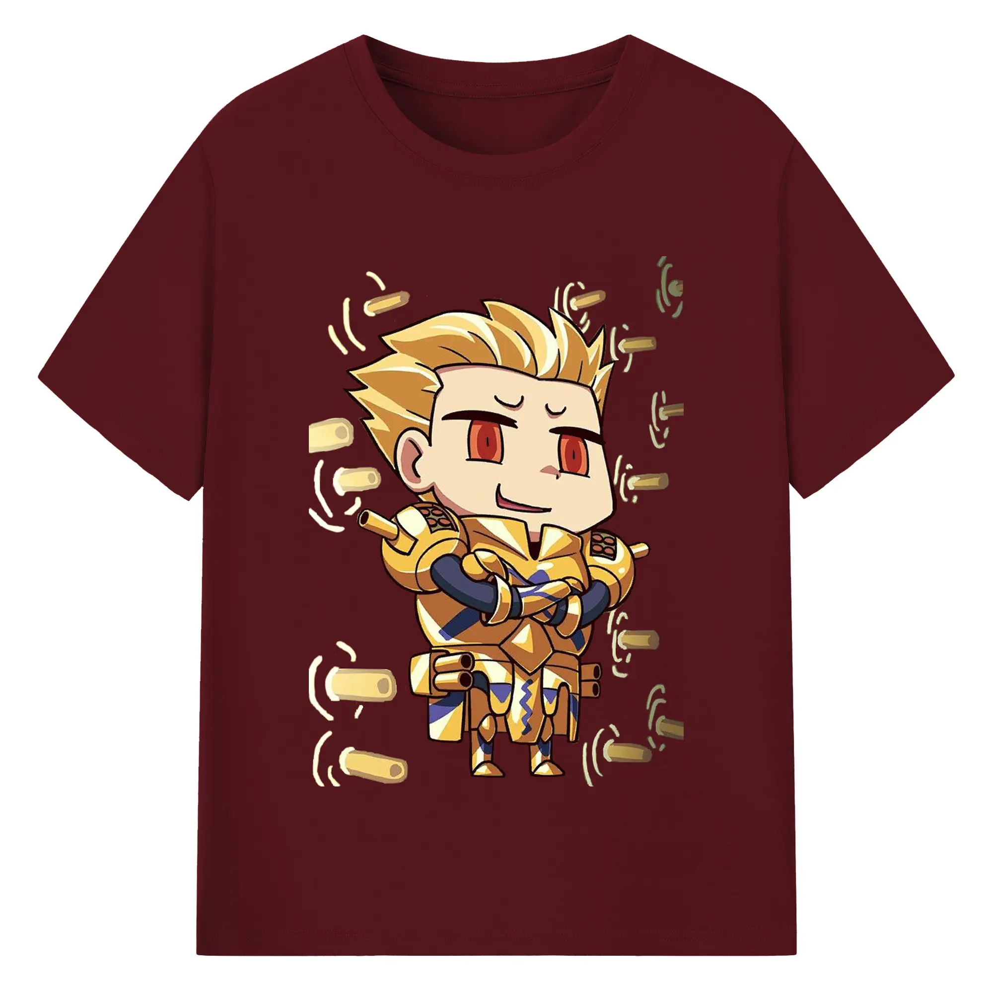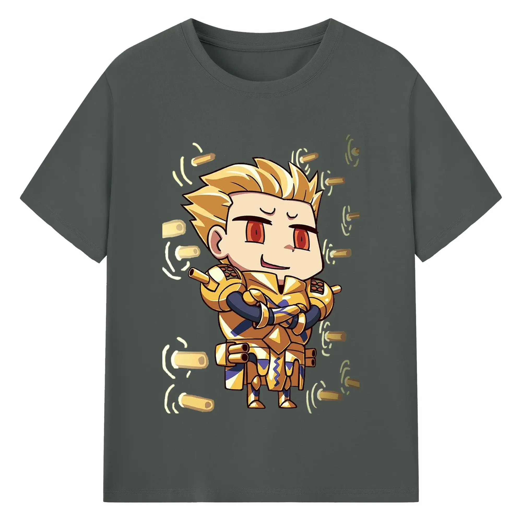 グランドオーダー デフォルメキャラ ギルガメッシュ - 綿100% ヴィンテージ風 半袖Tシャツ ・ フロントプリント ・ 柔らか肌触り ・ 通気性 快適 ・ スポーツ カジュアル 外出用