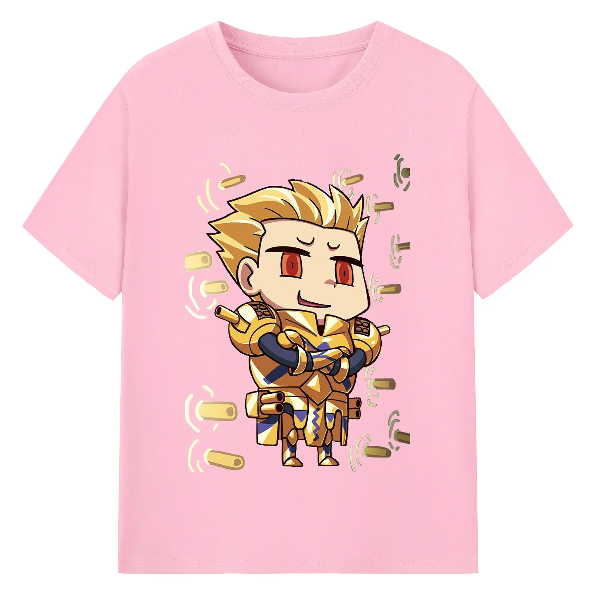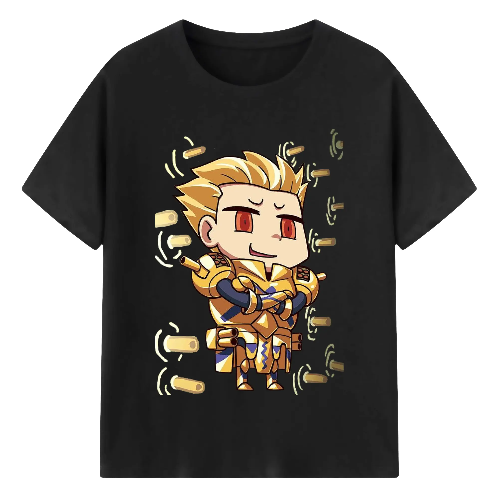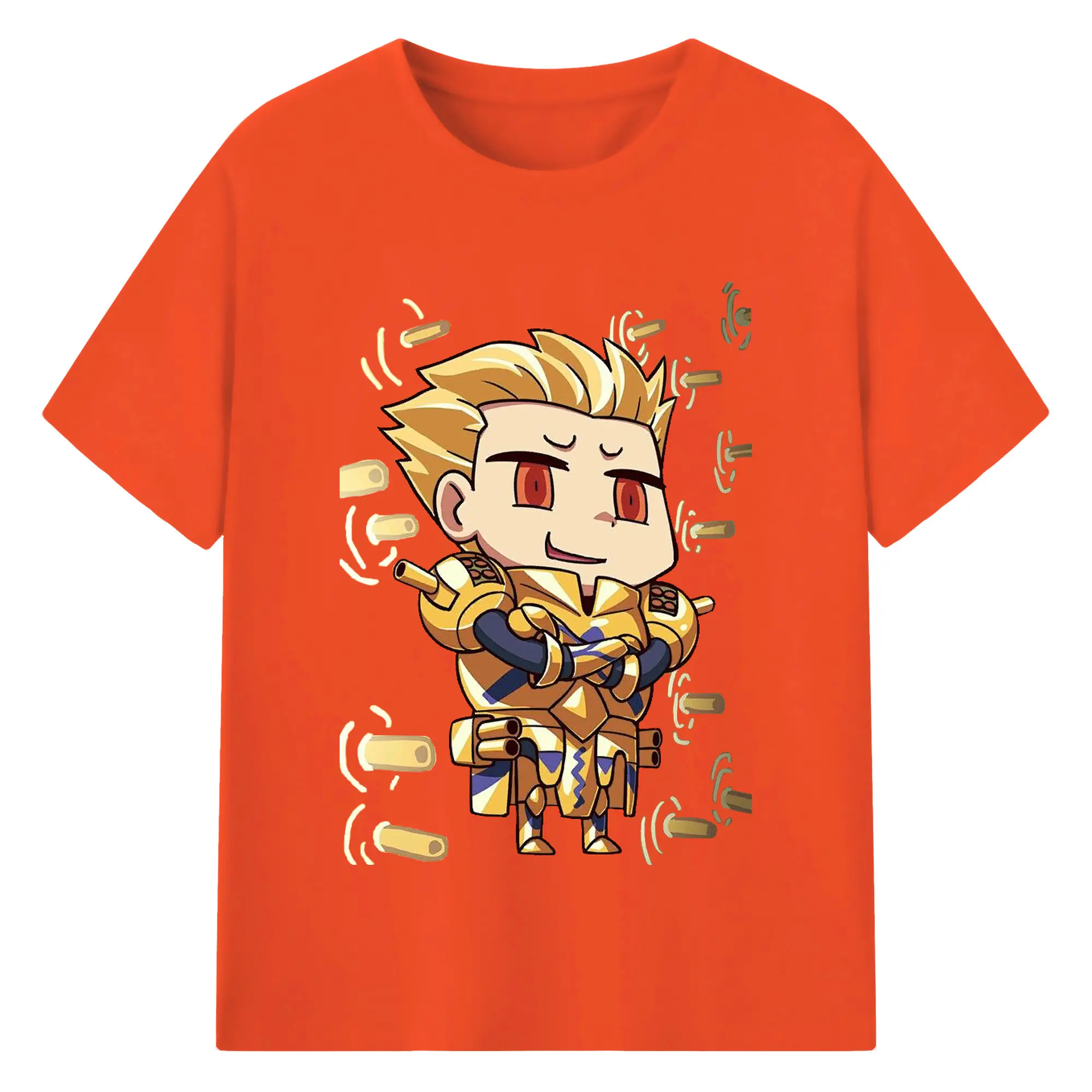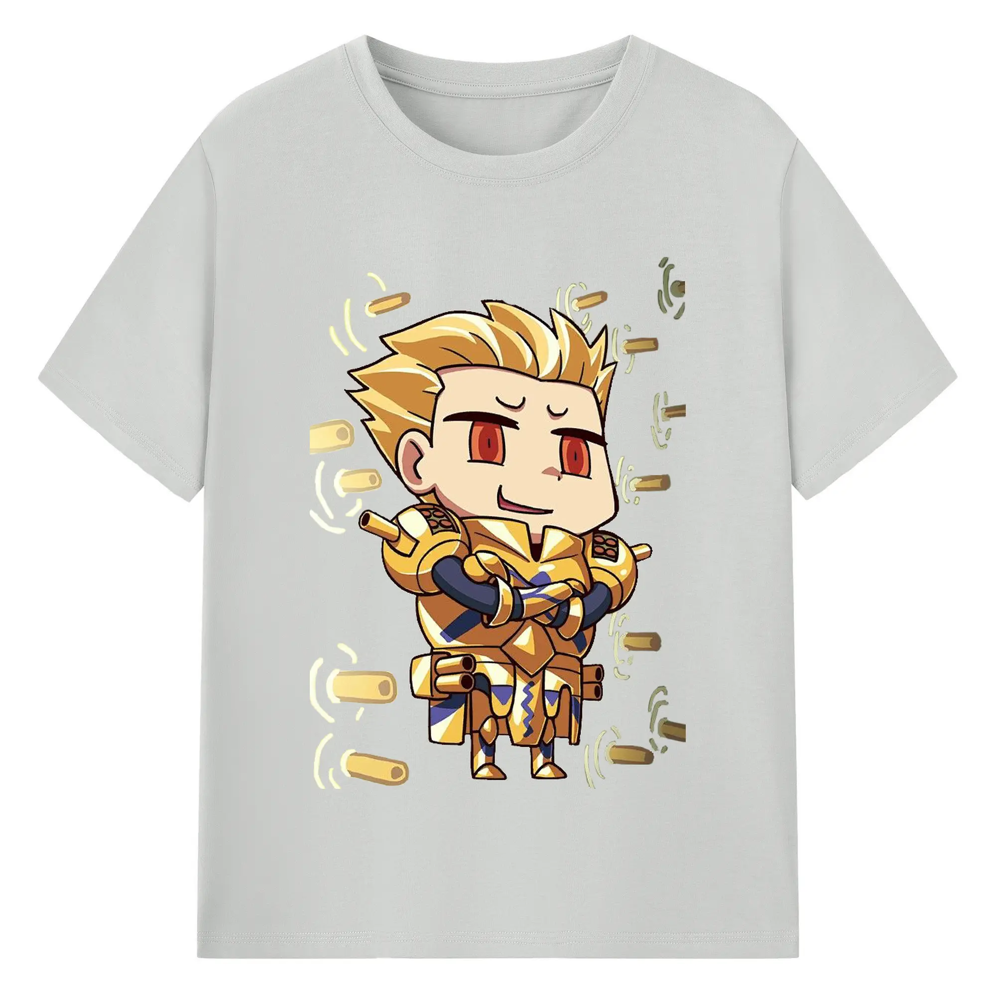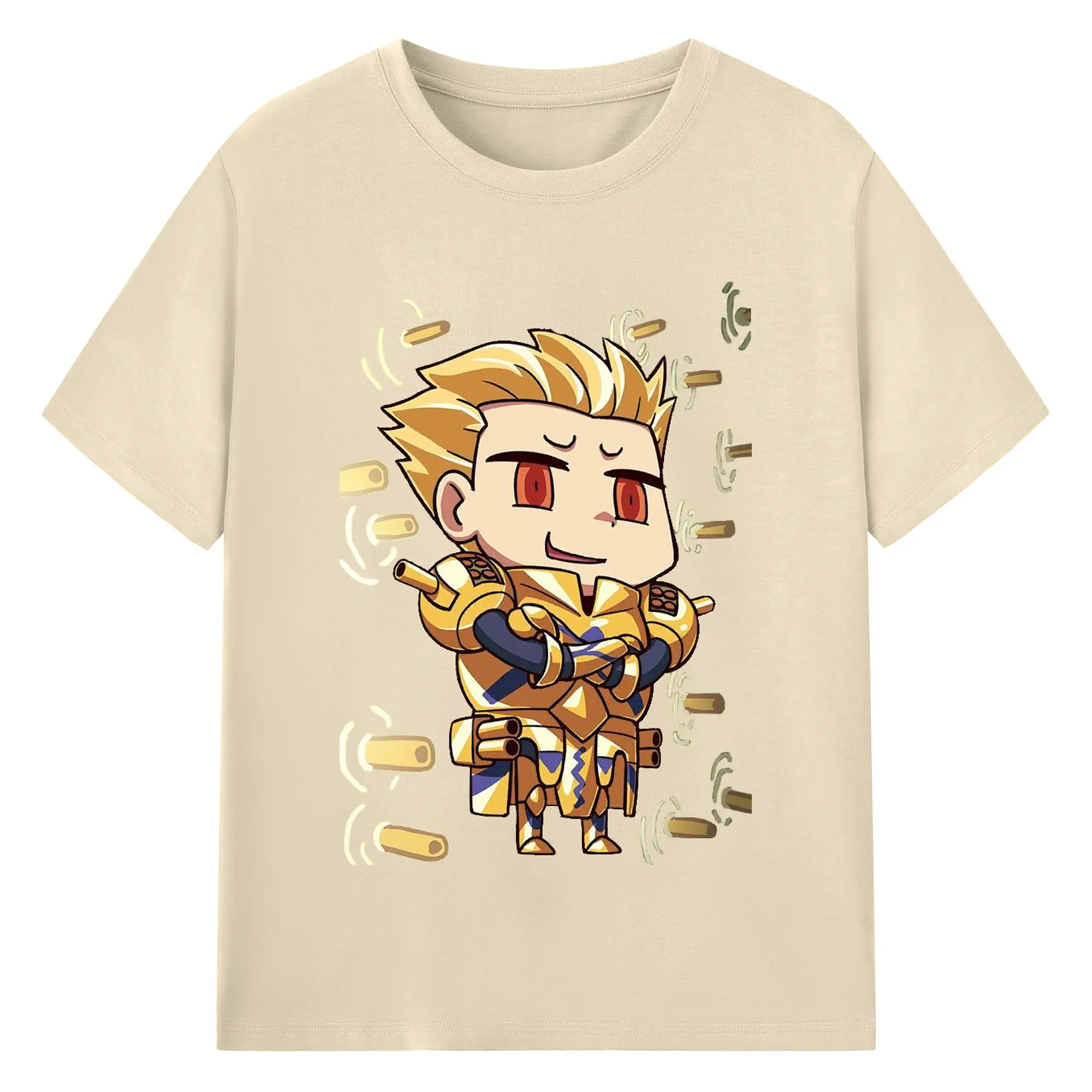 グランドオーダー デフォルメキャラ ギルガメッシュ - 綿100% ヴィンテージ風 半袖Tシャツ ・ フロントプリント ・ 柔らか肌触り ・ 通気性 快適 ・ スポーツ カジュアル 外出用