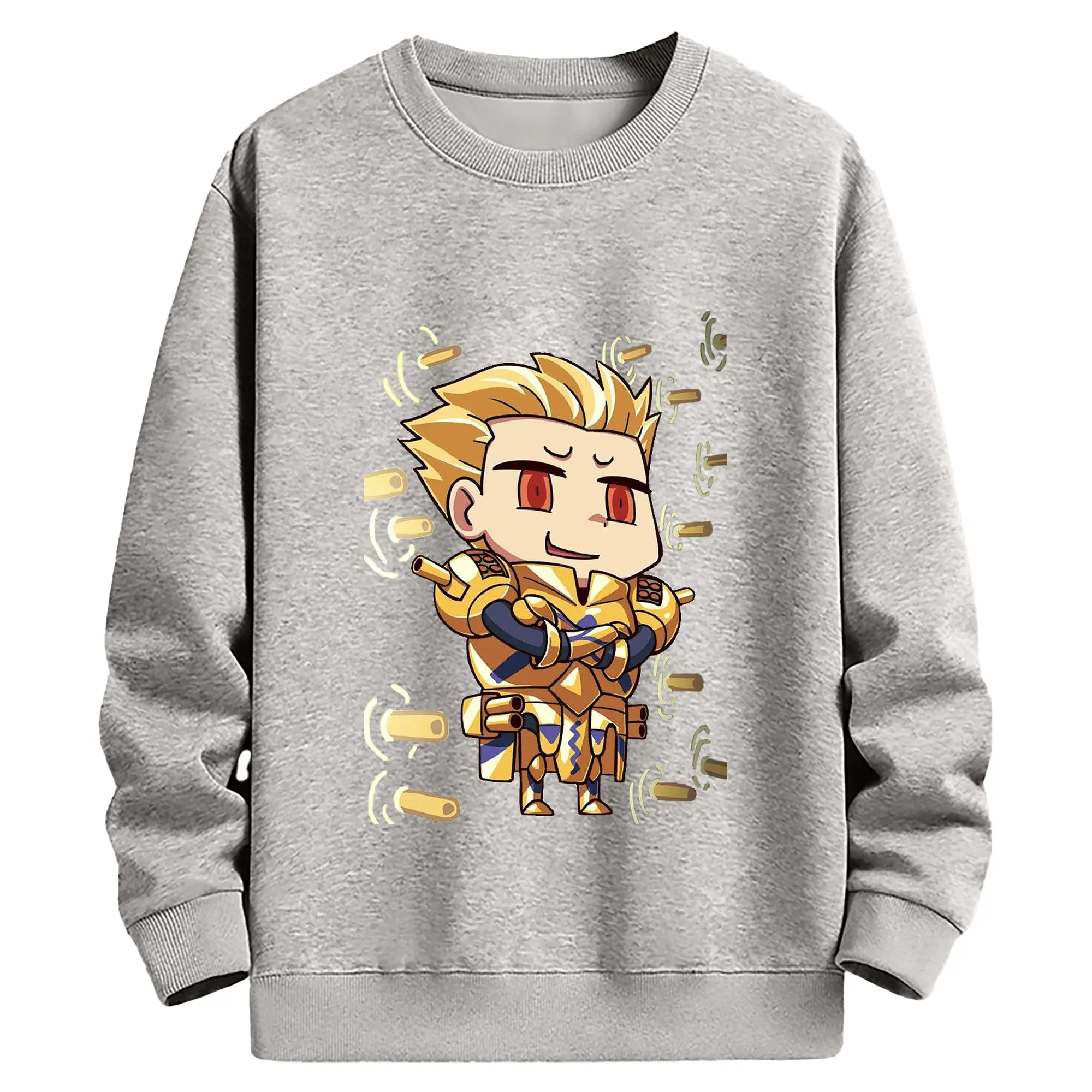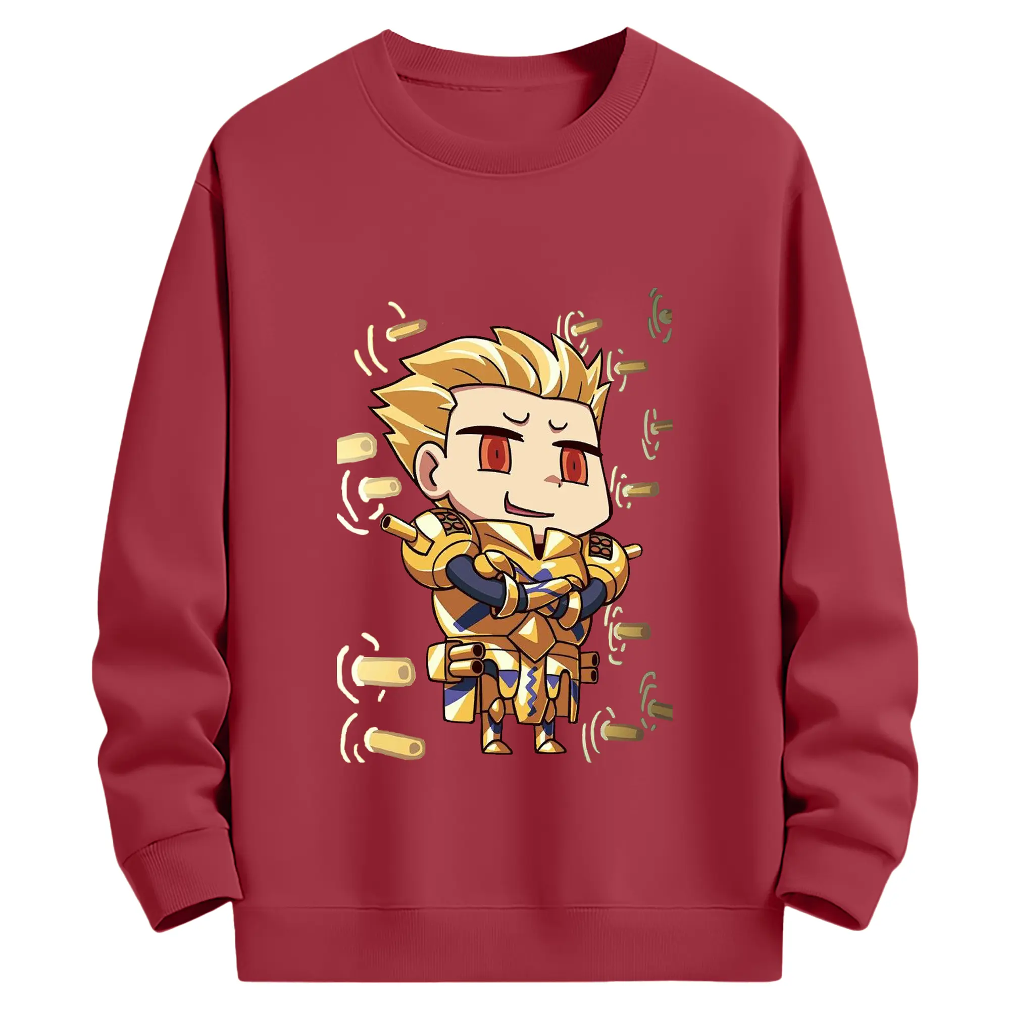 グランドオーダー デフォルメキャラ ギルガメッシュ - 綿100% 半袖Tシャツ ・ フロントプリント ・ 快適 通気性 ・ 日常使い 散歩 スポーツ用