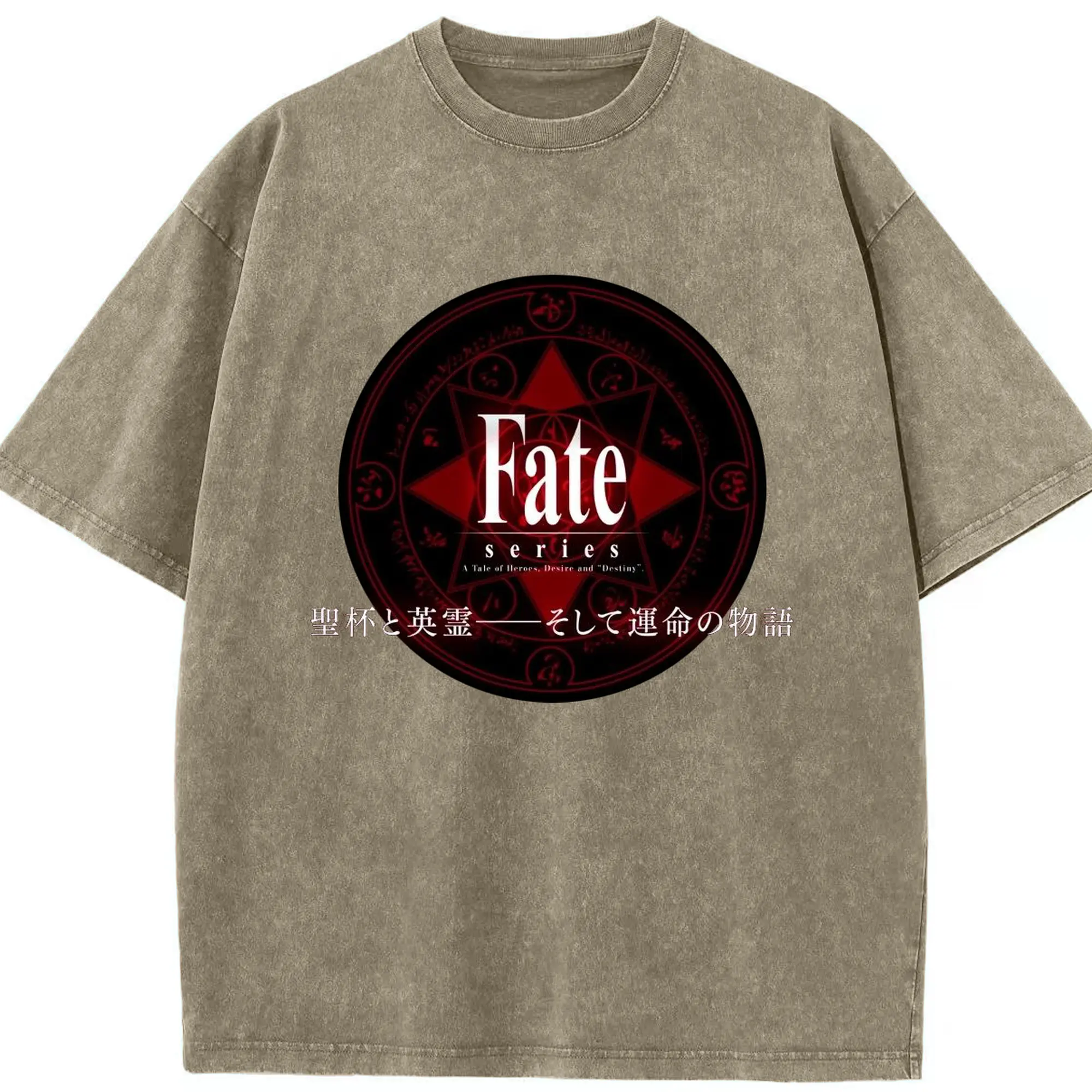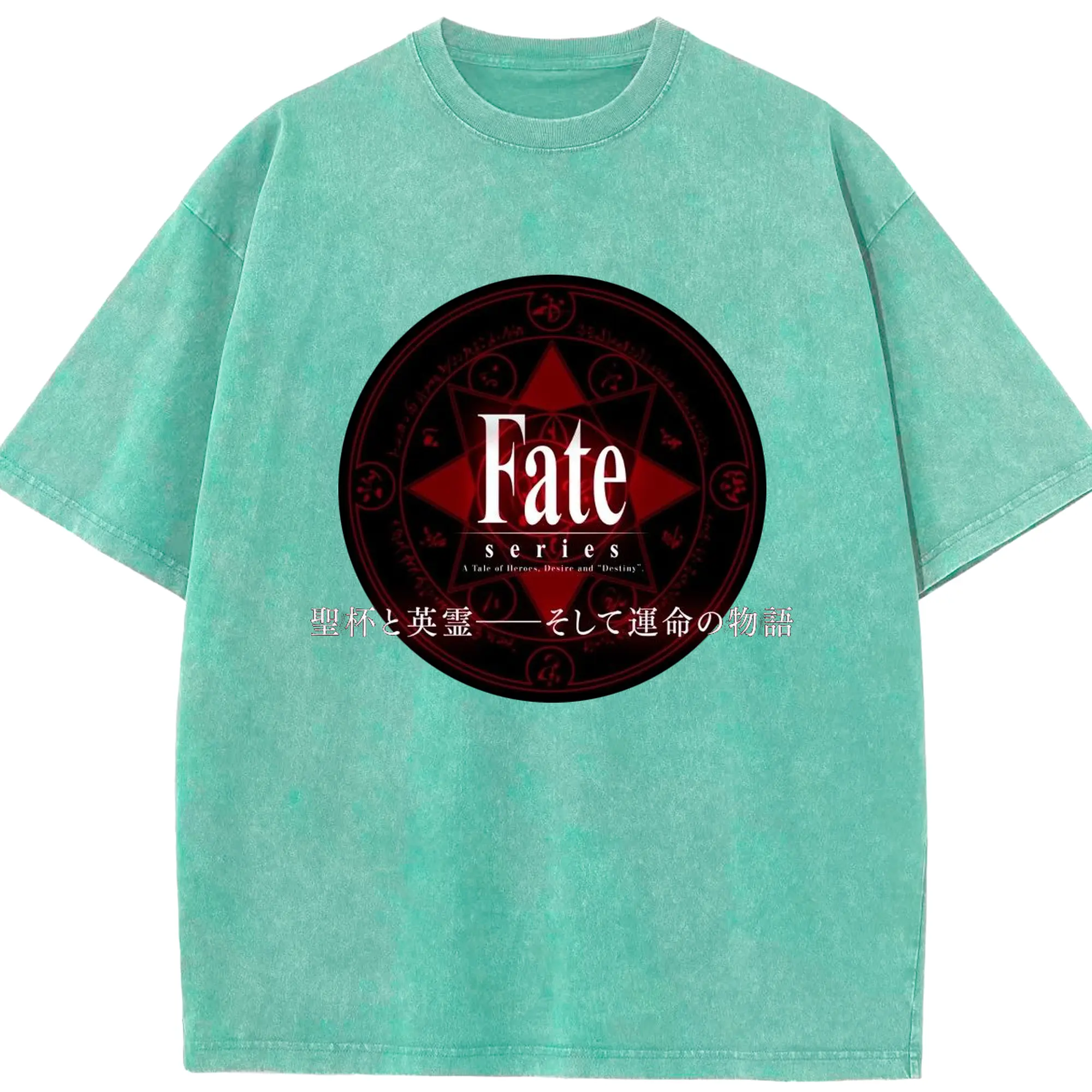 グランドオーダー FGO 英霊 - 綿100% ヴィンテージ風 半袖Tシャツ ・ フロントプリント ・ 柔らか肌触り ・ 通気性 快適 ・ スポーツ カジュアル 外出用