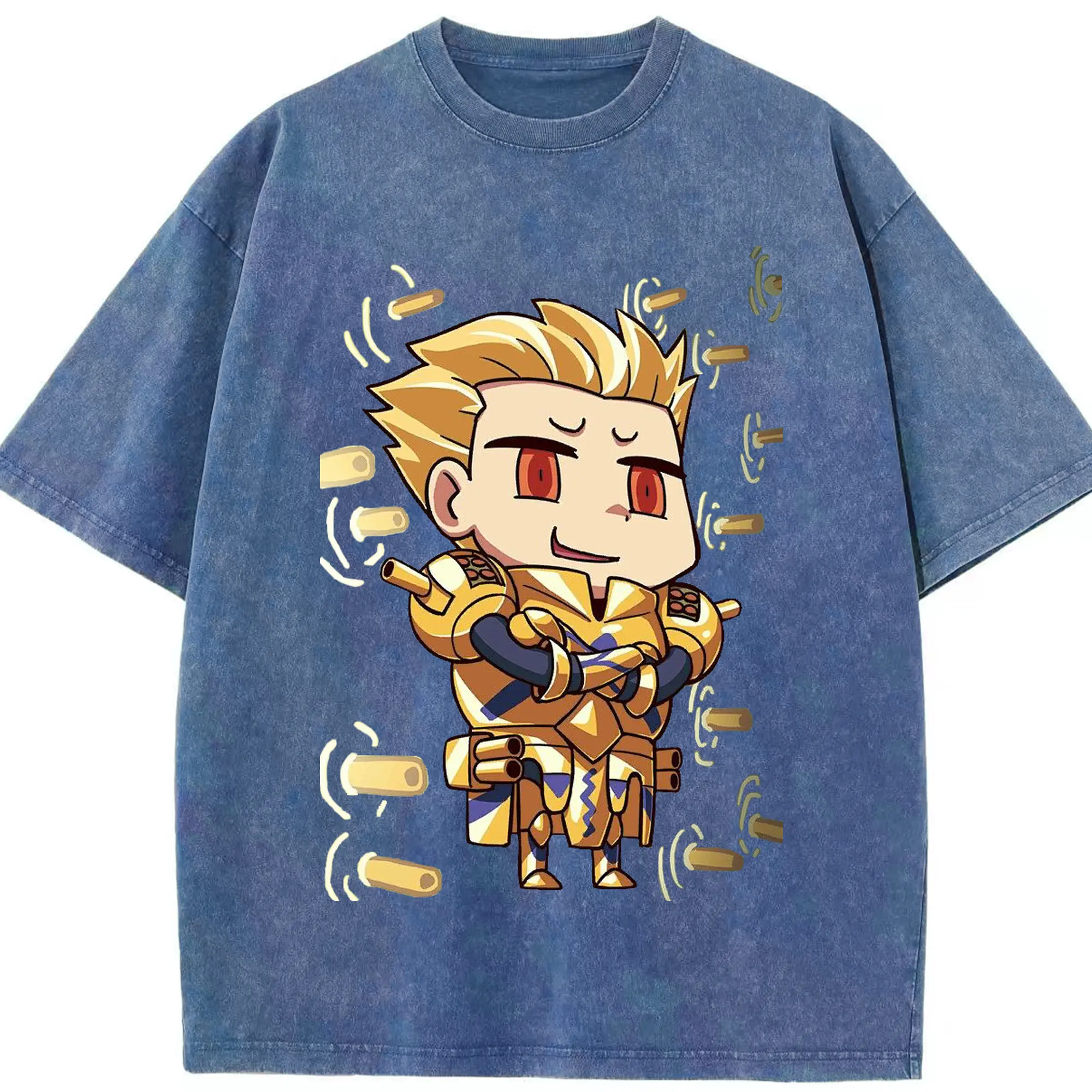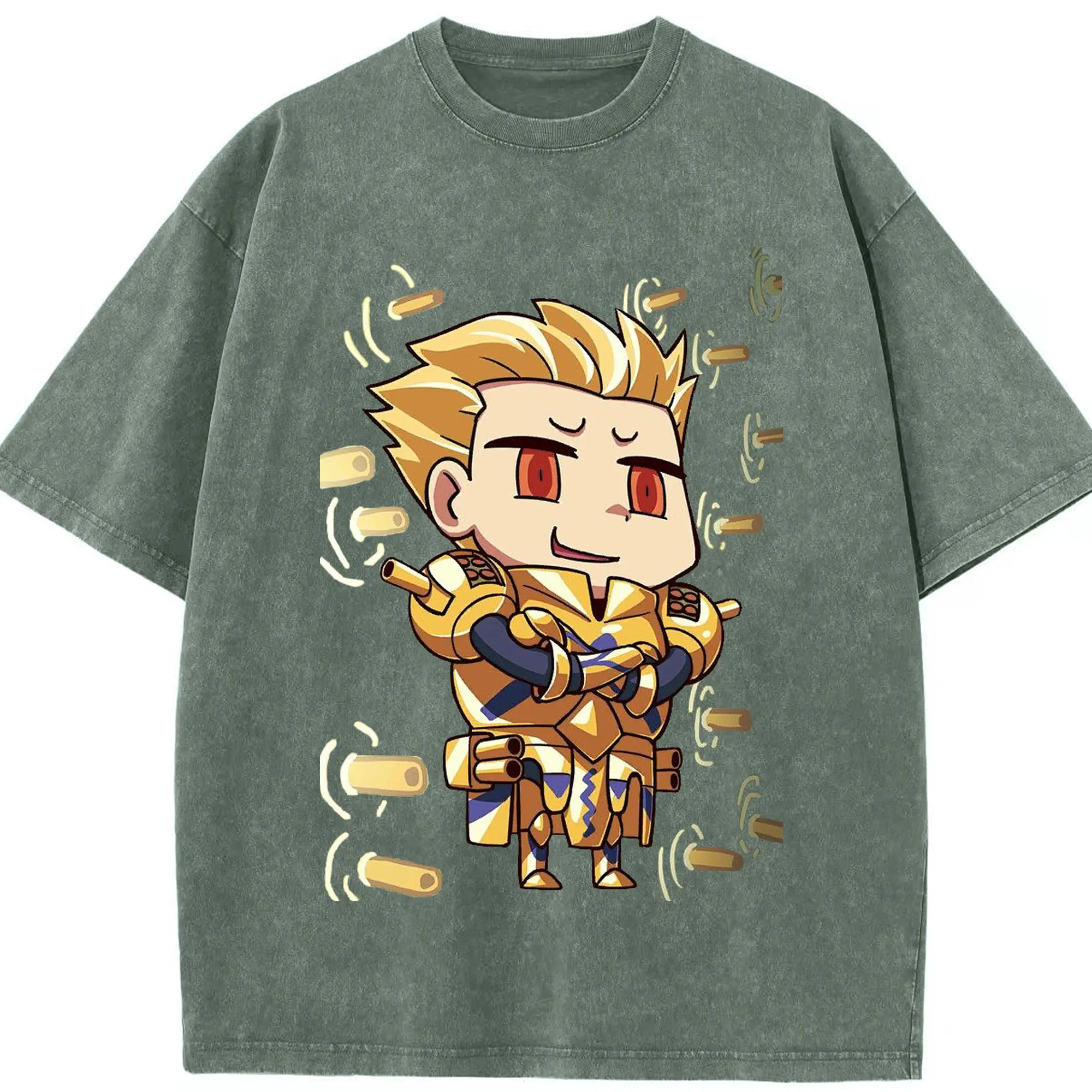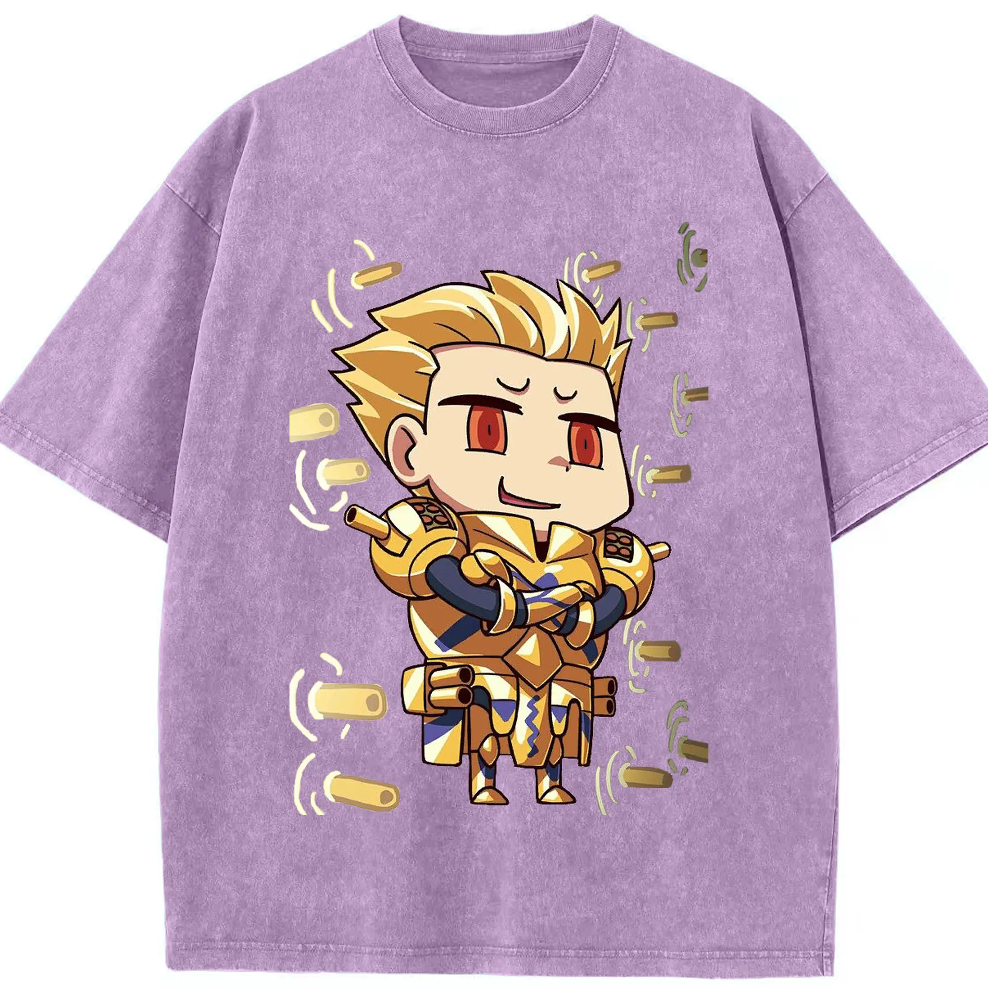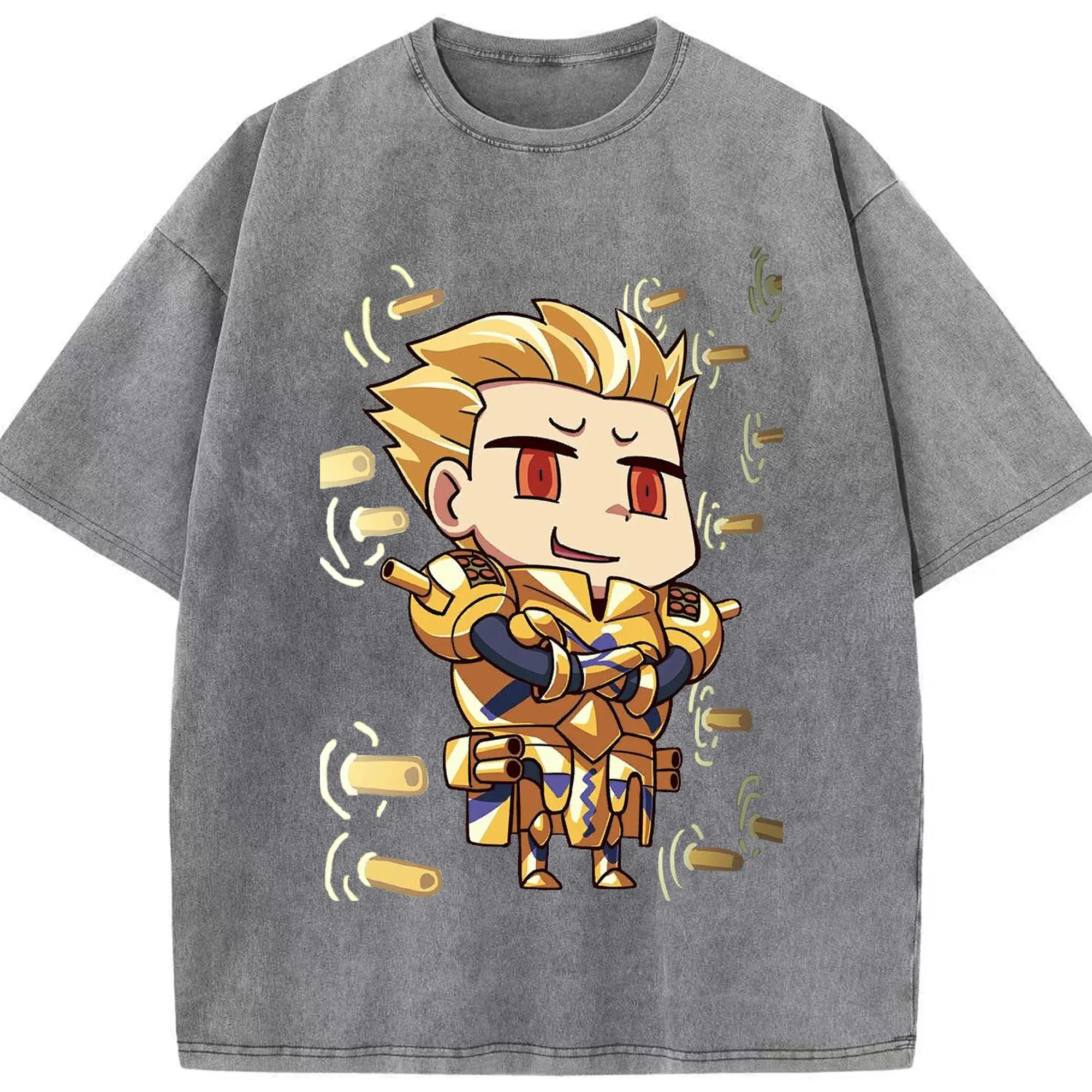 グランドオーダー デフォルメキャラ ギルガメッシュ - 綿100% 半袖Tシャツ ・ フロントプリント ・ 快適 通気性 ・ 日常使い 散歩 スポーツ用