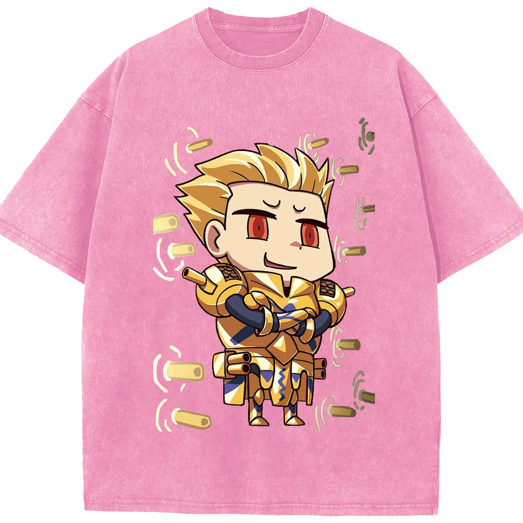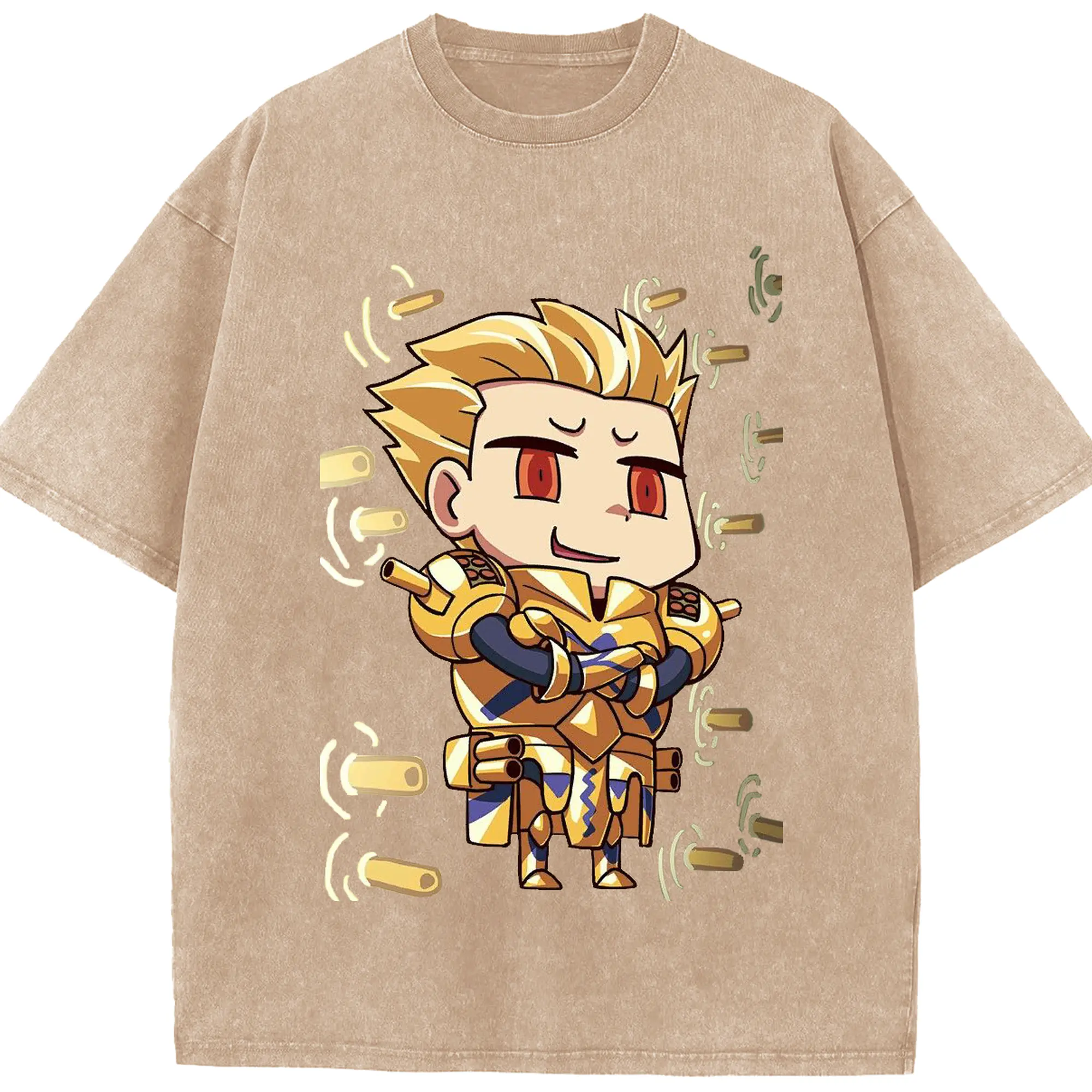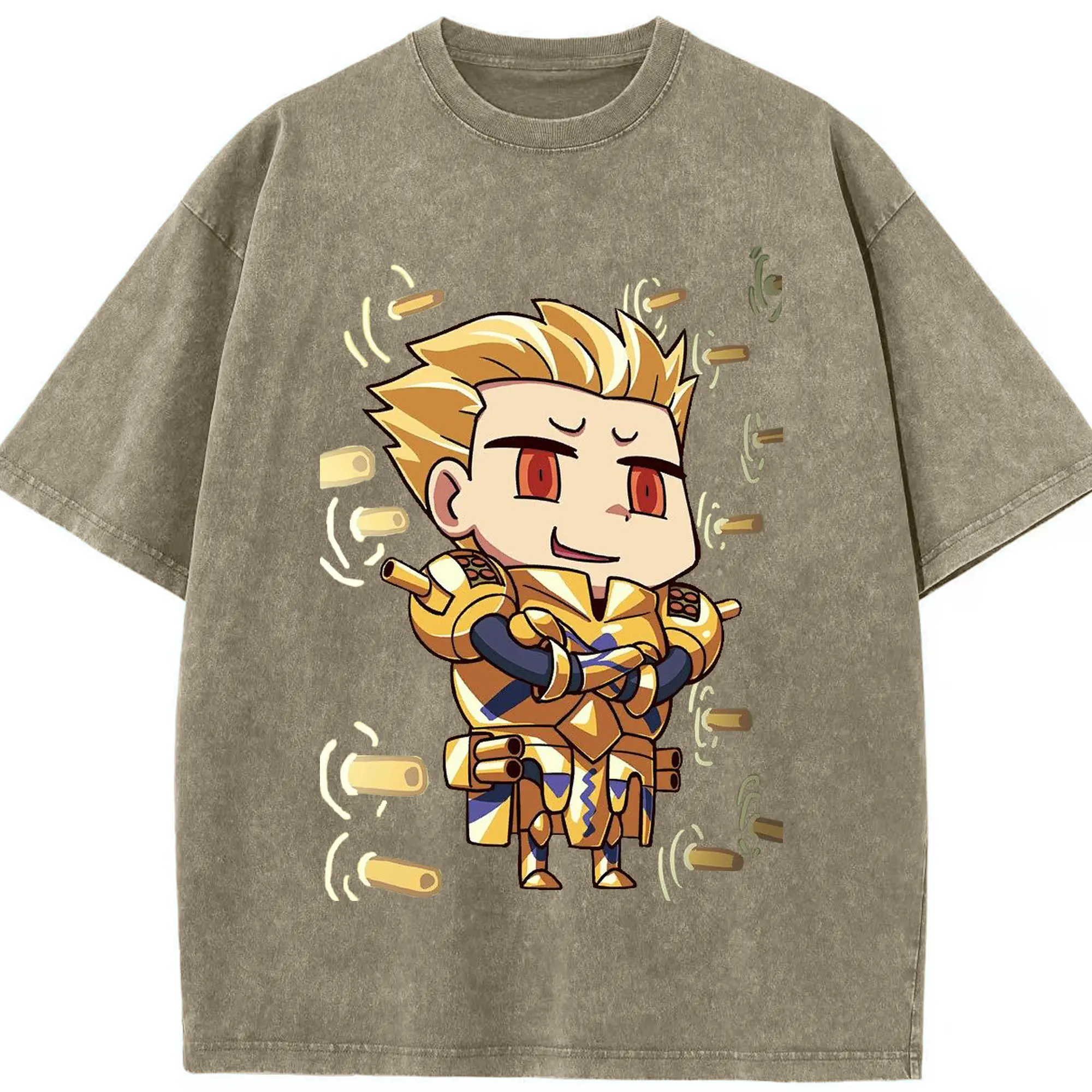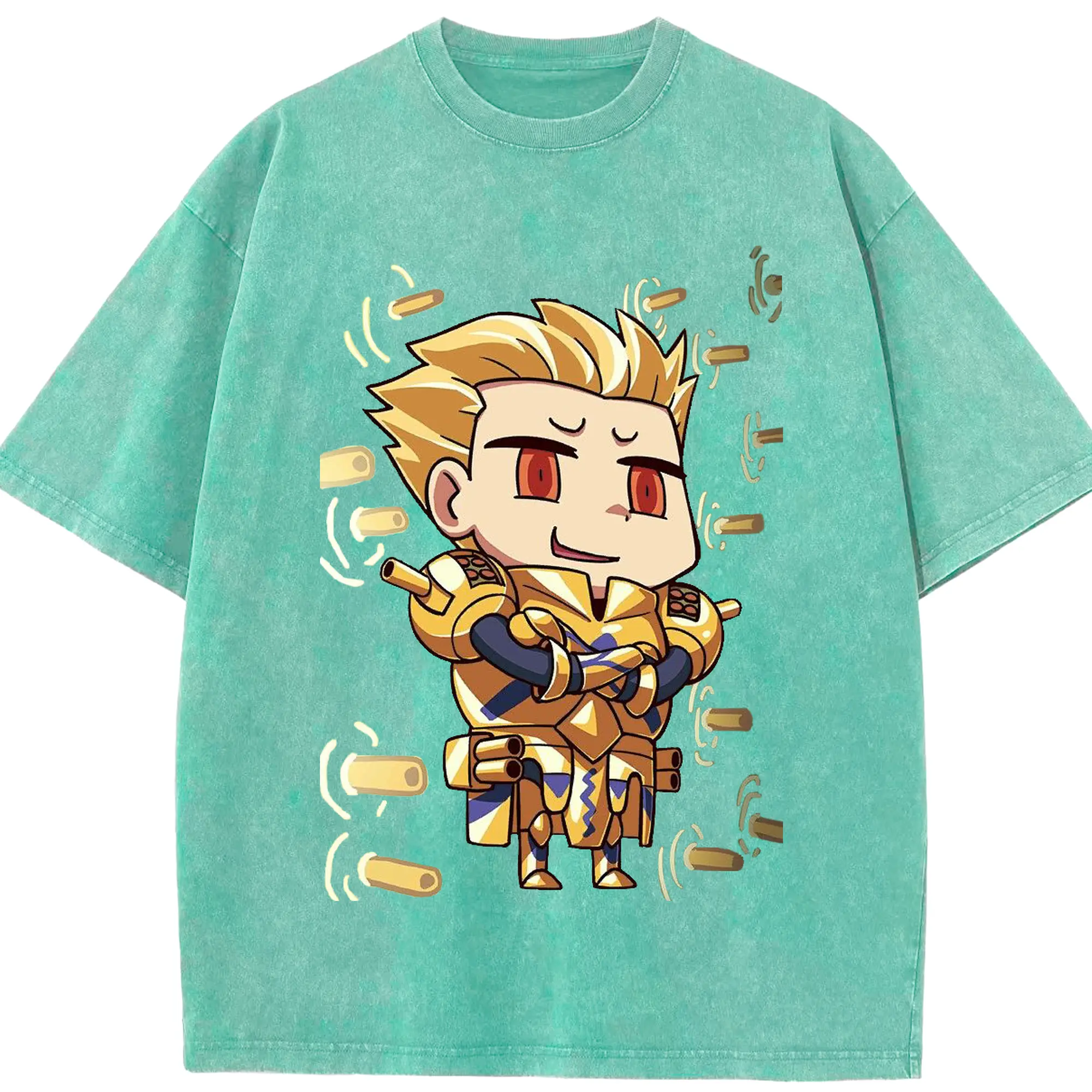 グランドオーダー デフォルメキャラ ギルガメッシュ - 綿100% 半袖Tシャツ ・ フロントプリント ・ 快適 通気性 ・ 日常使い 散歩 スポーツ用