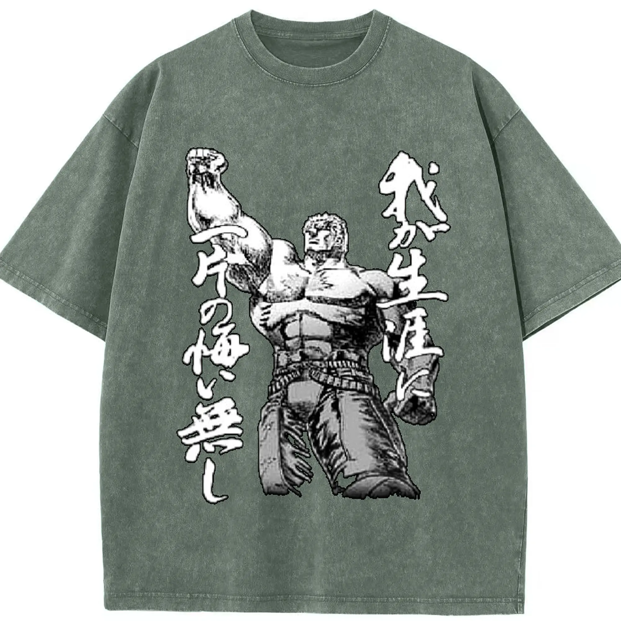 ケンシロウ 名言俺の人生に一片の悔い無し - 綿100% 半袖Tシャツ ・ フロントプリント ・ 快適 通気性 ・ 日常使い 散歩 スポーツ用
