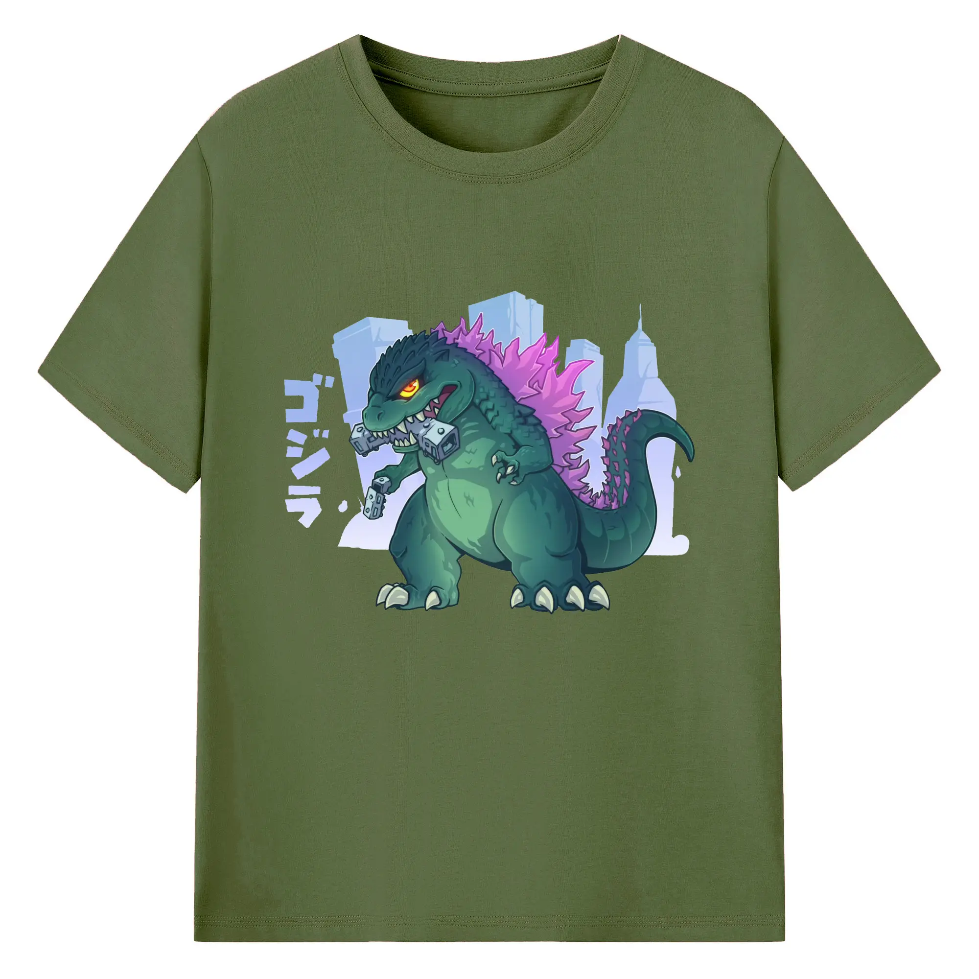 ゴジラ ちびゴジラ - 綿100% 半袖Tシャツ ・ フロントプリント ・ 快適 通気性 ・ 日常使い 散歩 スポーツ用