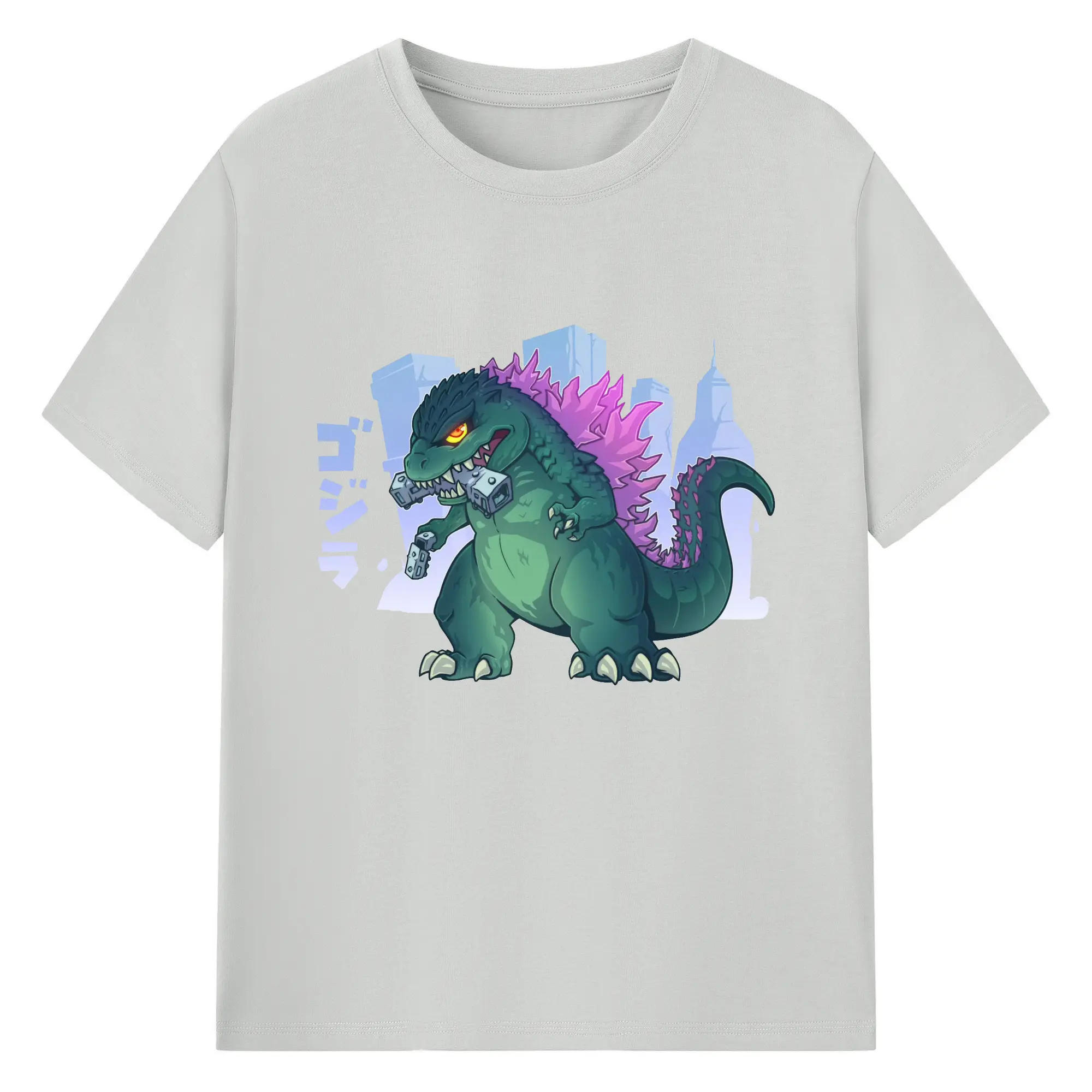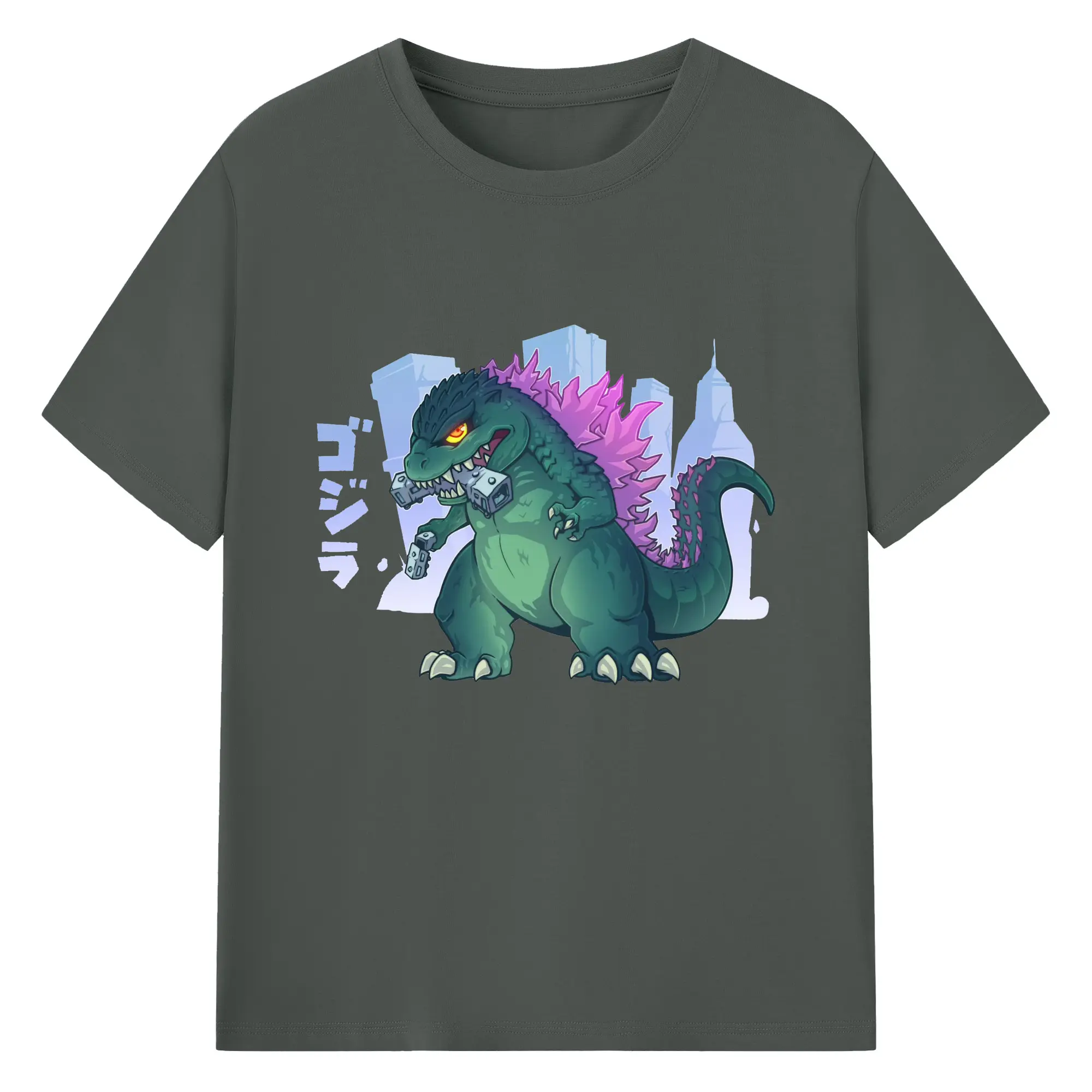 ゴジラ キャットジラ CATZILLA かわいい怪獣 - 綿100% 半袖Tシャツ ・ フロントプリント ・ 快適 通気性 ・ 日常使い 散歩 スポーツ用