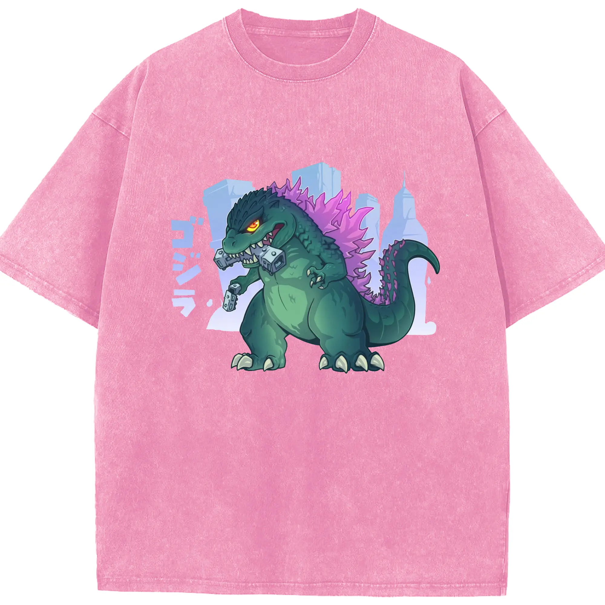 ゴジラ ちびゴジラ - 綿100% ヴィンテージ風 半袖Tシャツ ・ フロントプリント ・ 柔らか肌触り ・ 通気性 快適 ・ スポーツ カジュアル 外出用