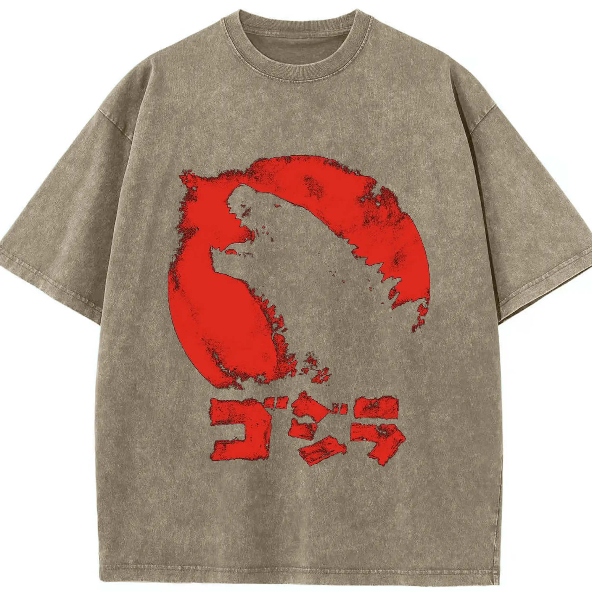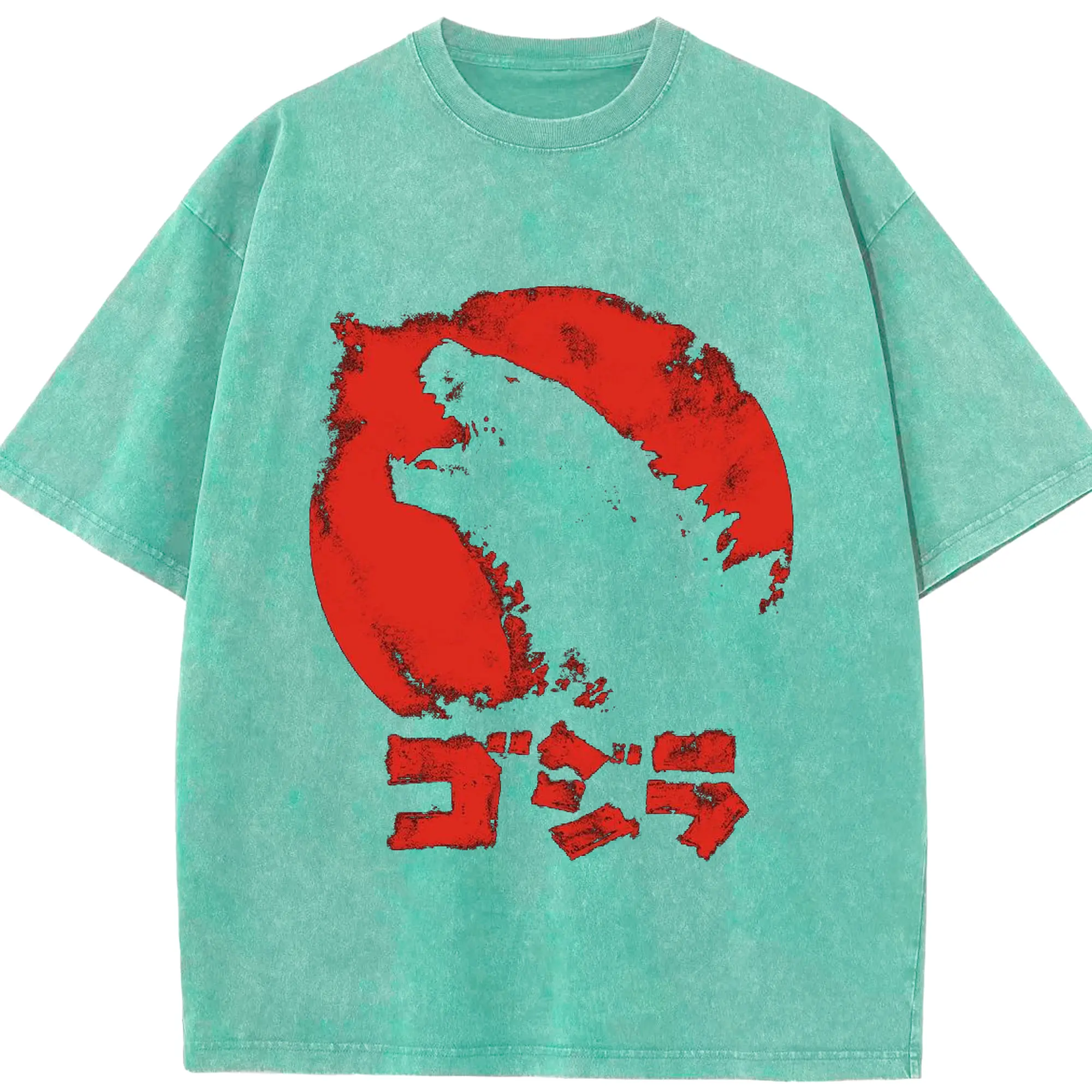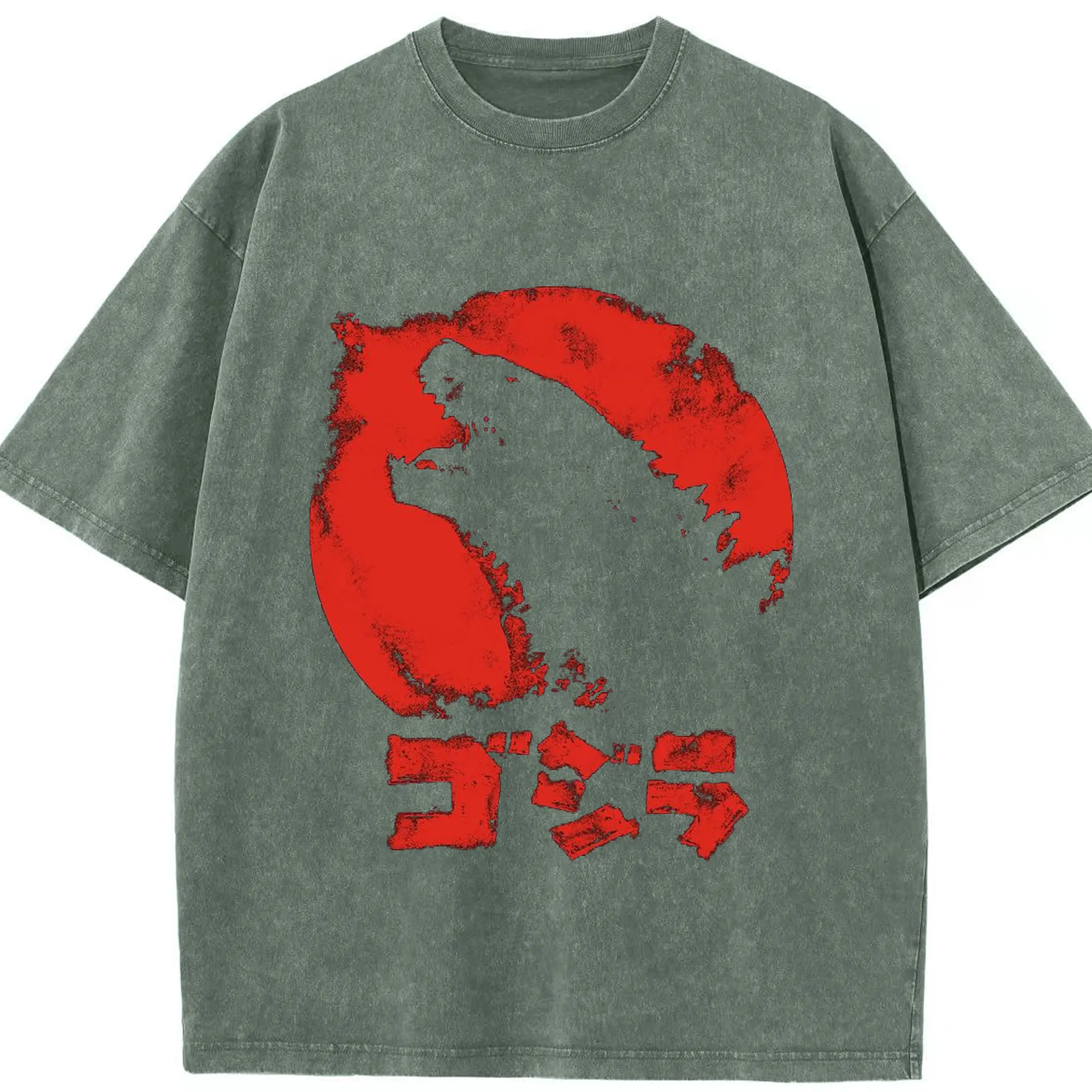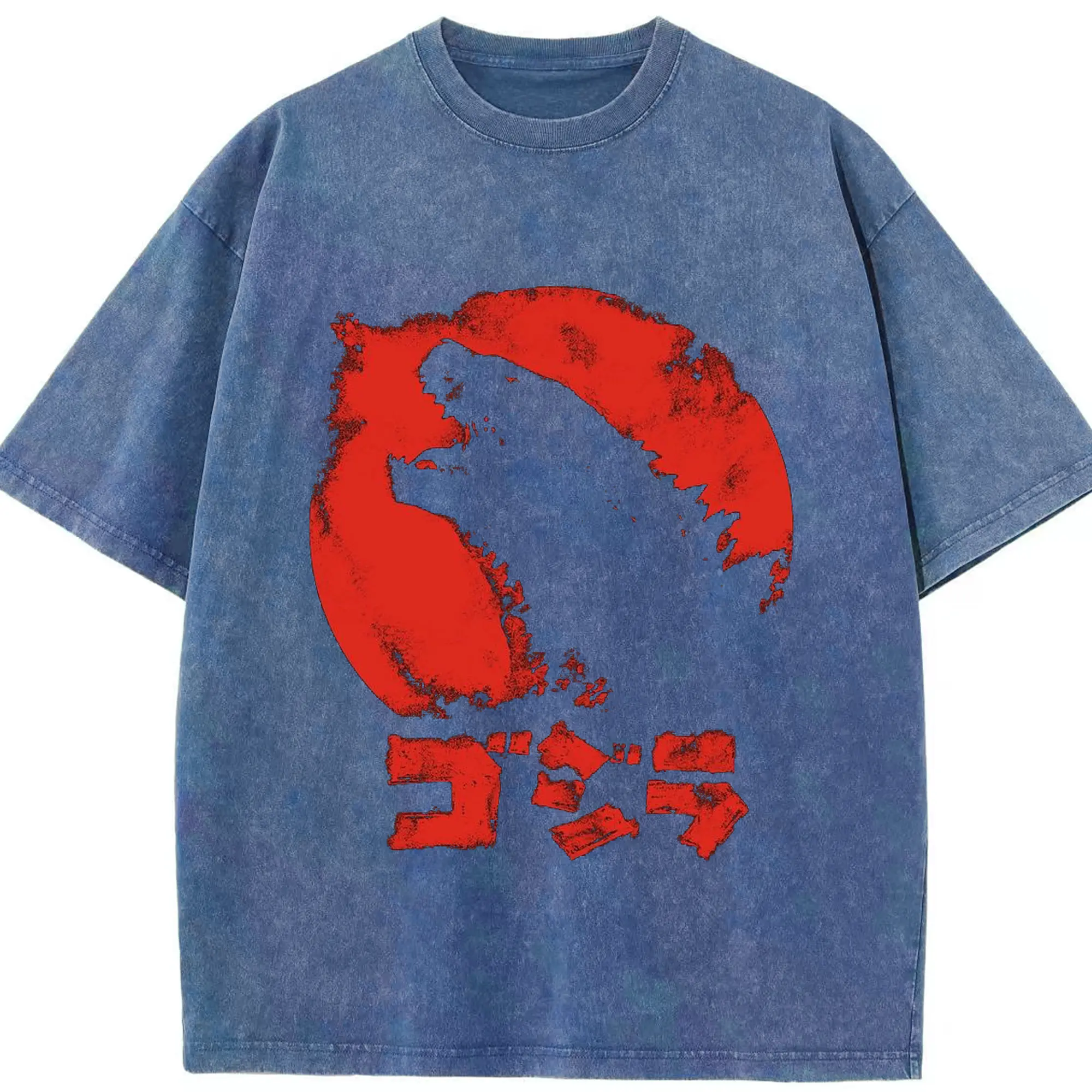 ゴジラ キングオブモンスターズロゴ - 綿100% ヴィンテージ風 半袖Tシャツ ・ フロントプリント ・ 柔らか肌触り ・ 通気性 快適 ・ スポーツ カジュアル 外出用