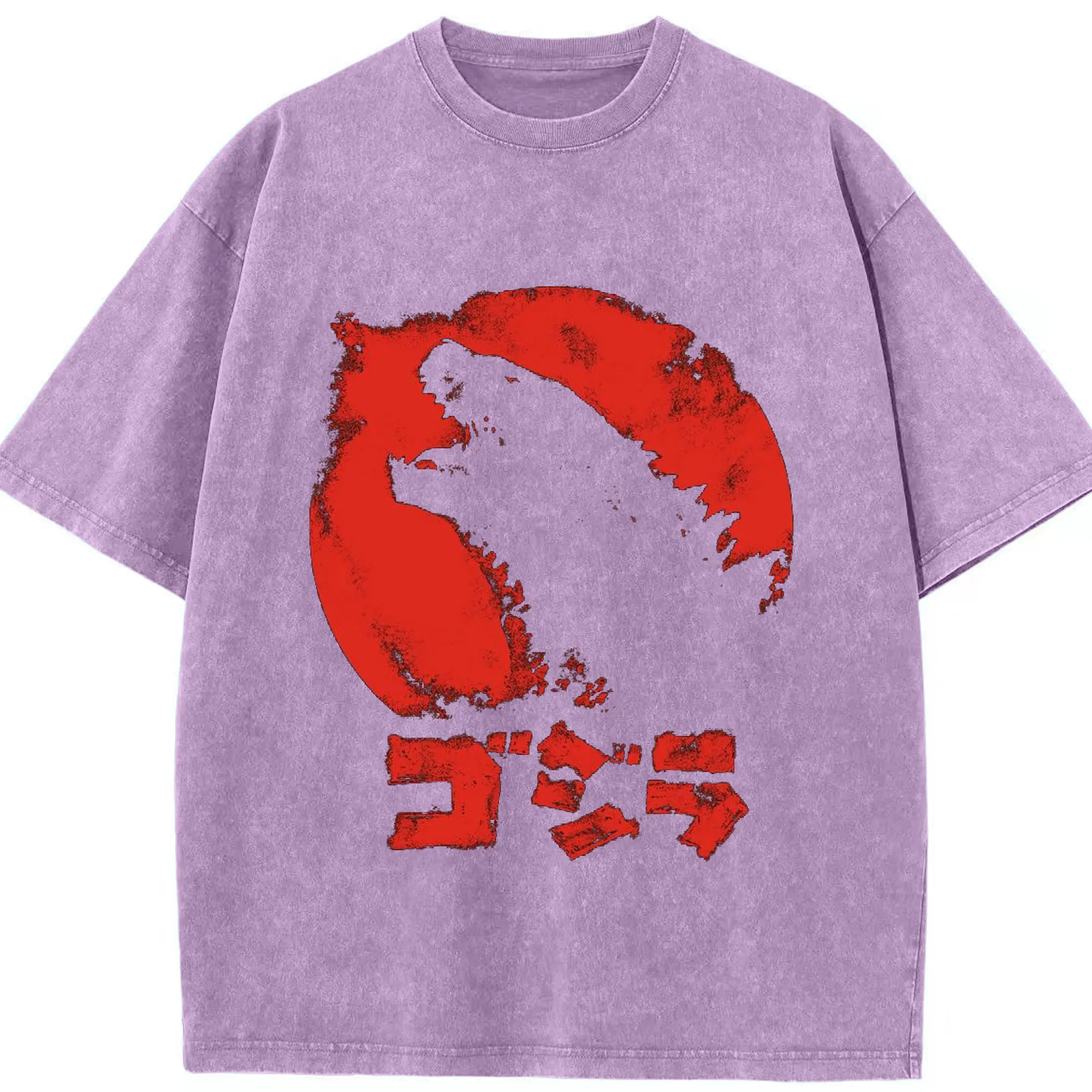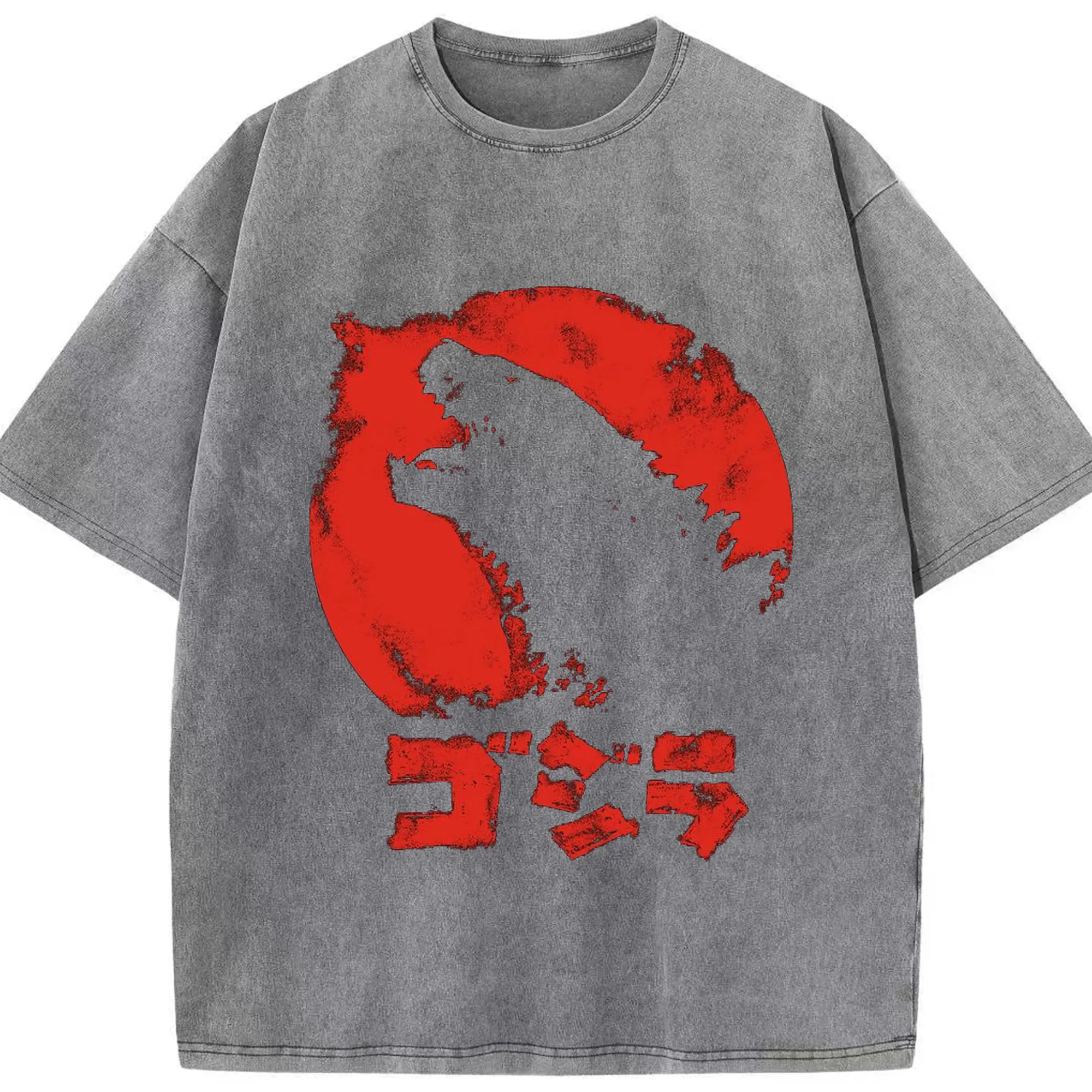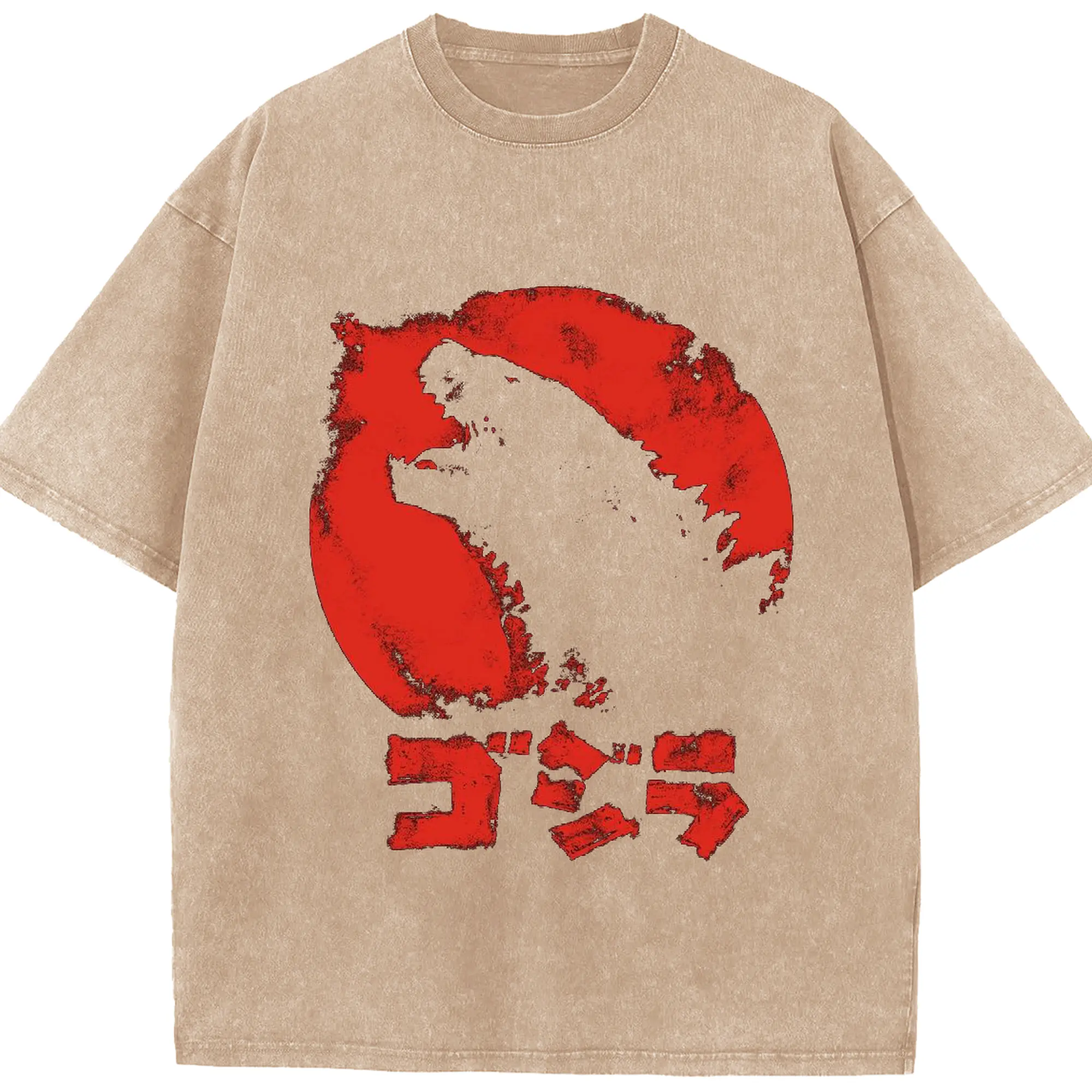 ゴジラ シンプルロゴ - 綿100% ヴィンテージ風 半袖Tシャツ ・ フロントプリント ・ 柔らか肌触り ・ 通気性 快適 ・ スポーツ カジュアル 外出用