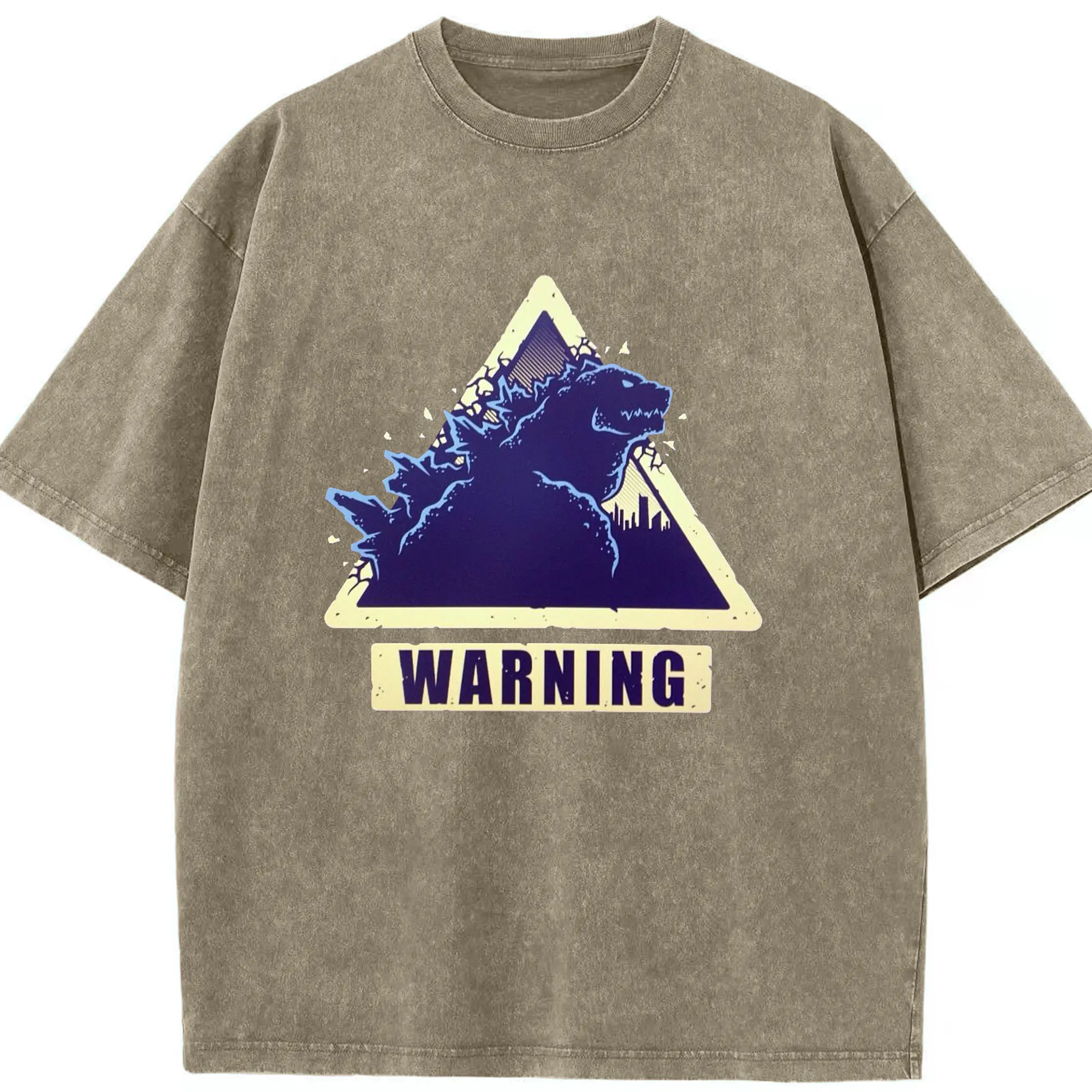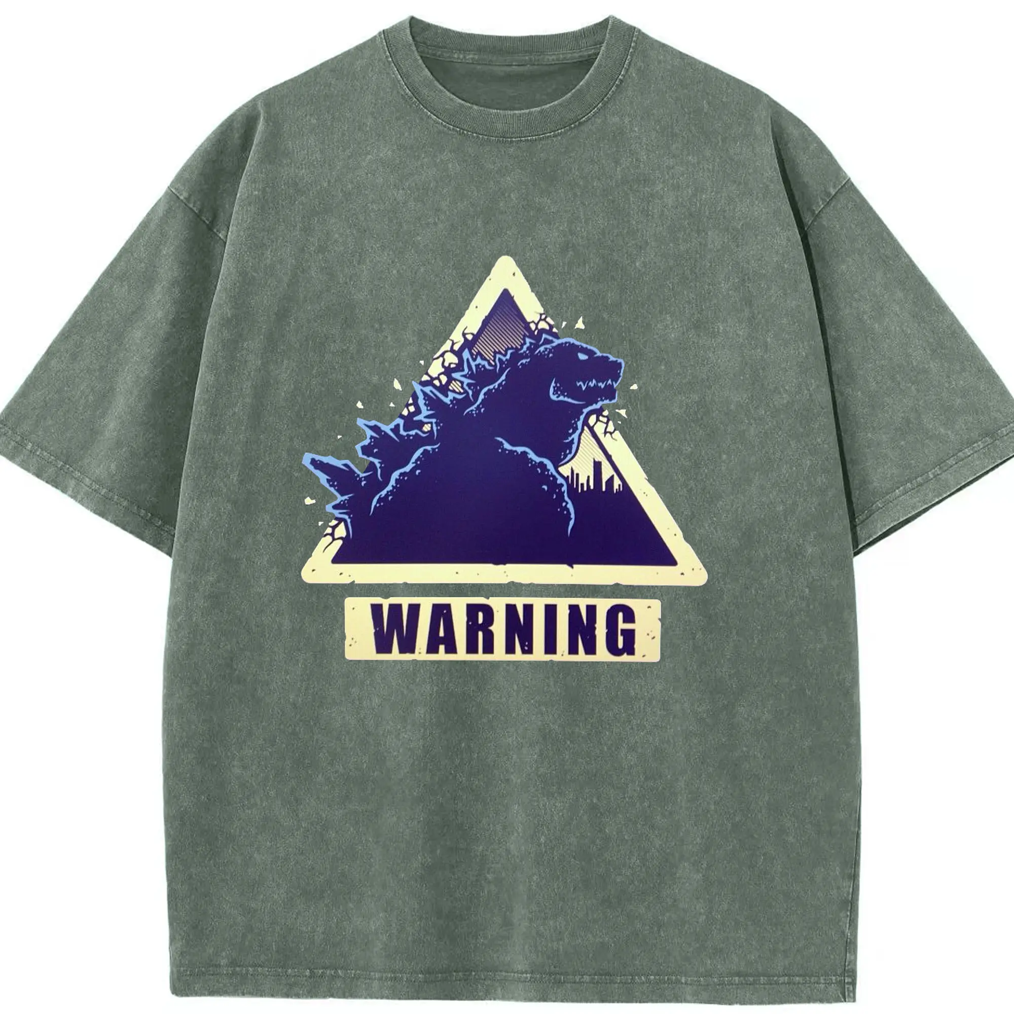 ゴジラの食事タイム - 綿100% ヴィンテージ風 半袖Tシャツ ・ フロントプリント ・ 柔らか肌触り ・ 通気性 快適 ・ スポーツ カジュアル 外出用