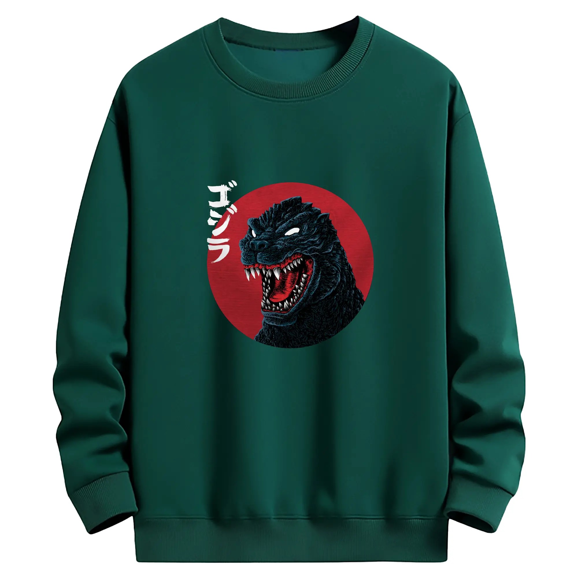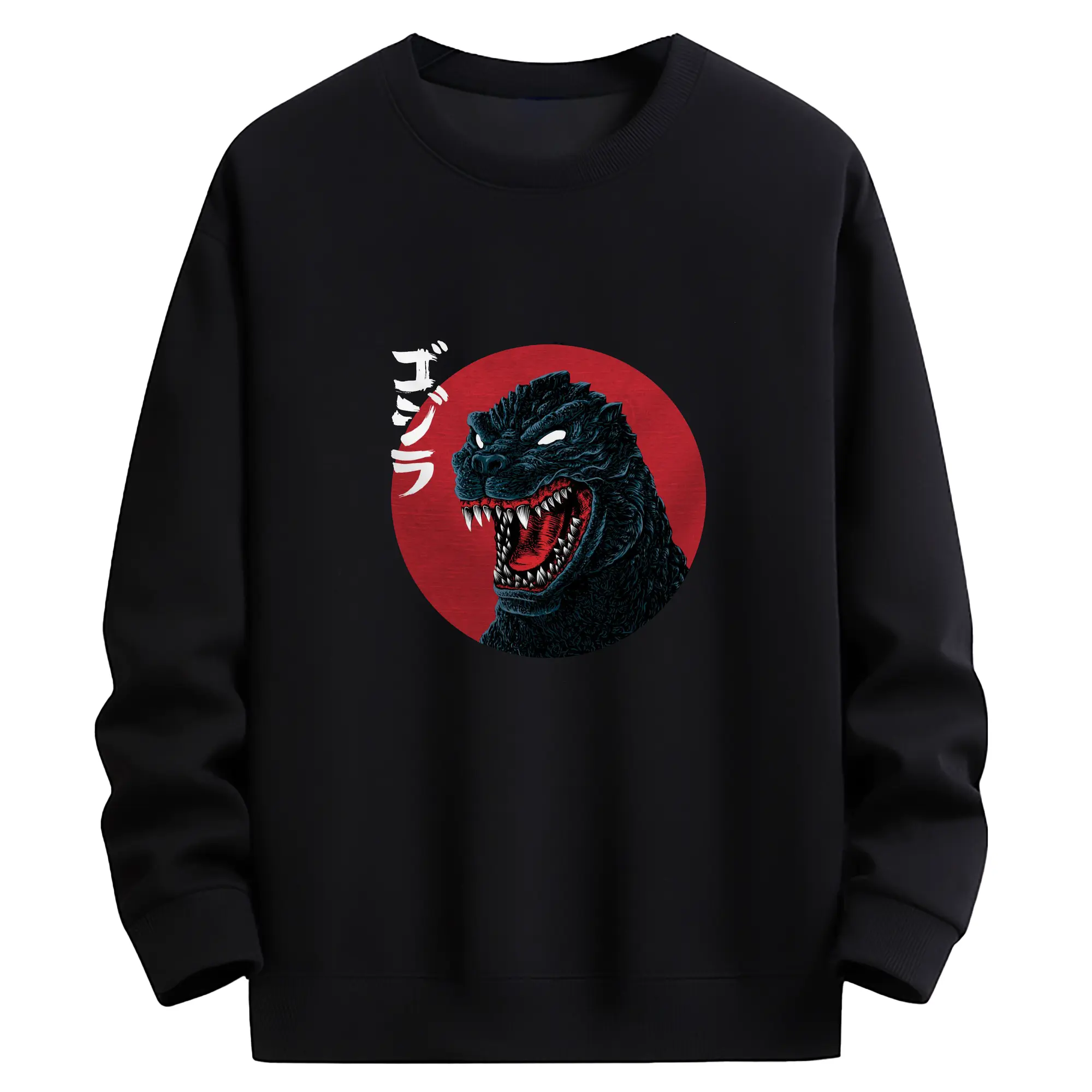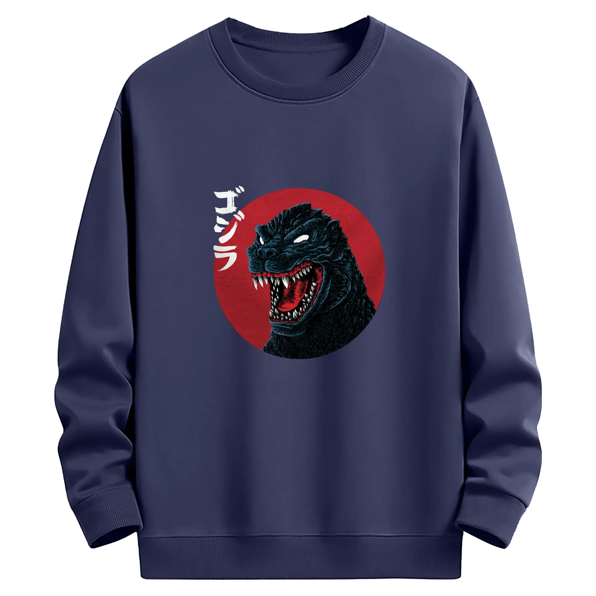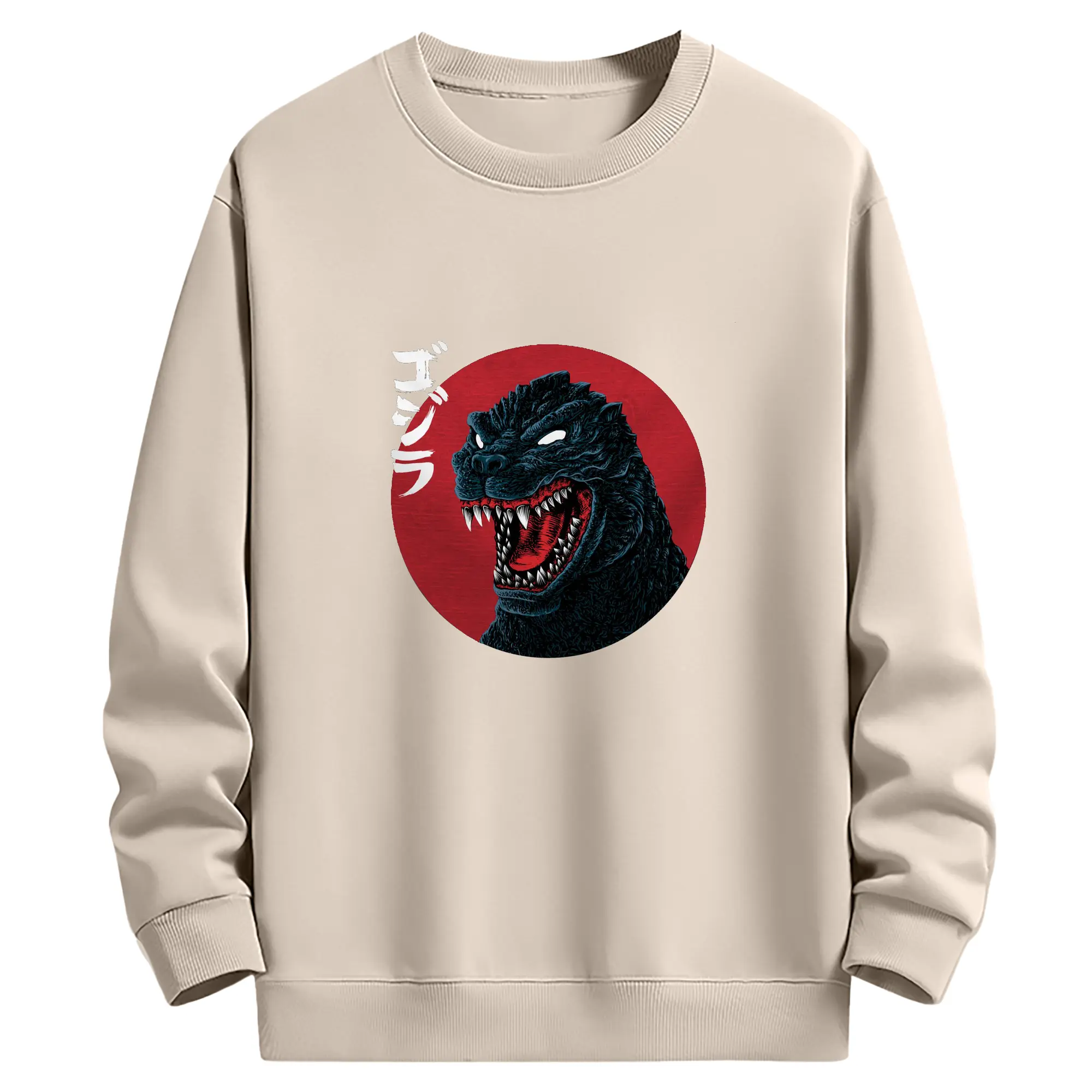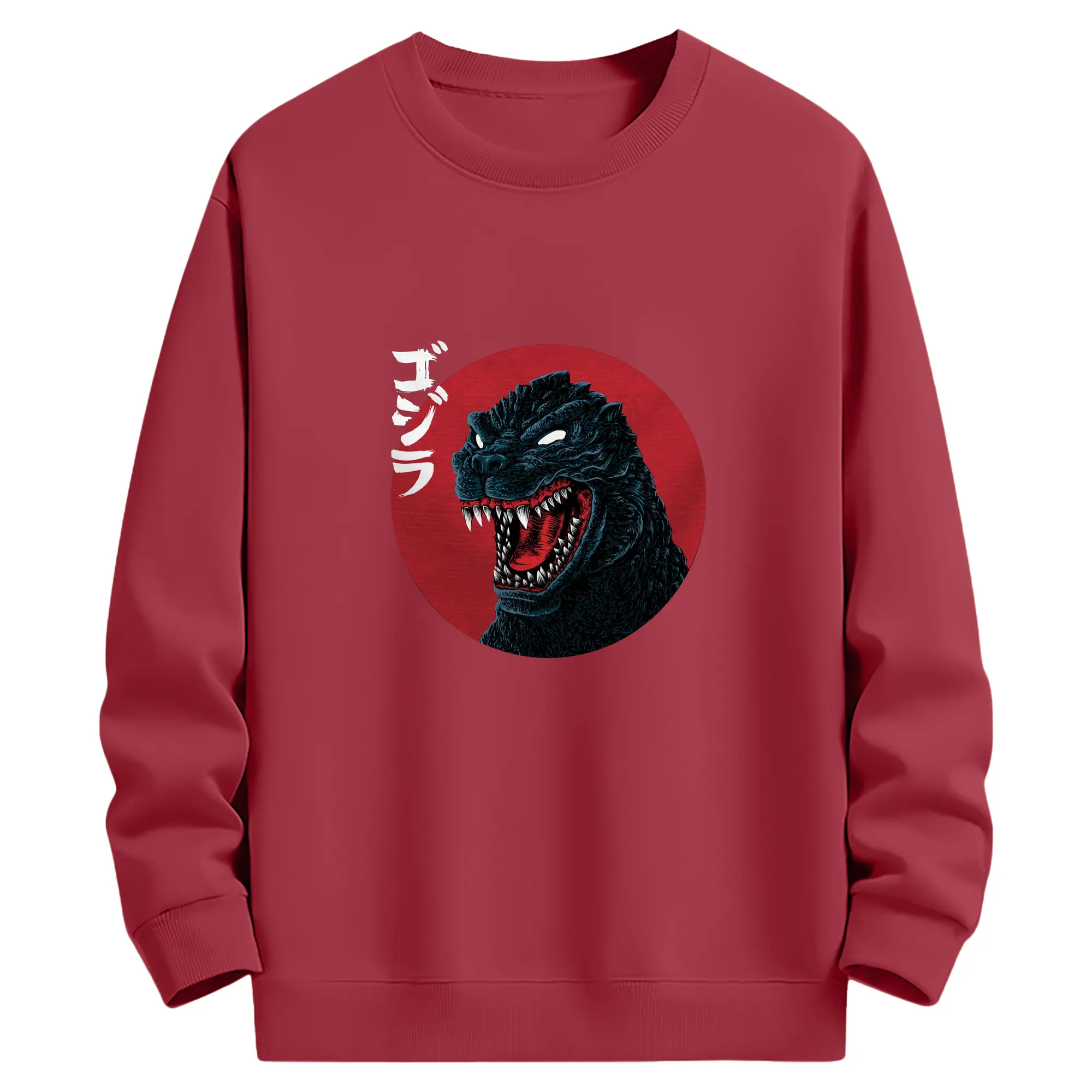 ゴジラの食事タイム - 高品質 クルーネック スウェット ・ コットン59% ポリエステル41% ・ ユニセックス 長袖 トレーナー ・ カジュアル デイリー スポーツ 散歩用