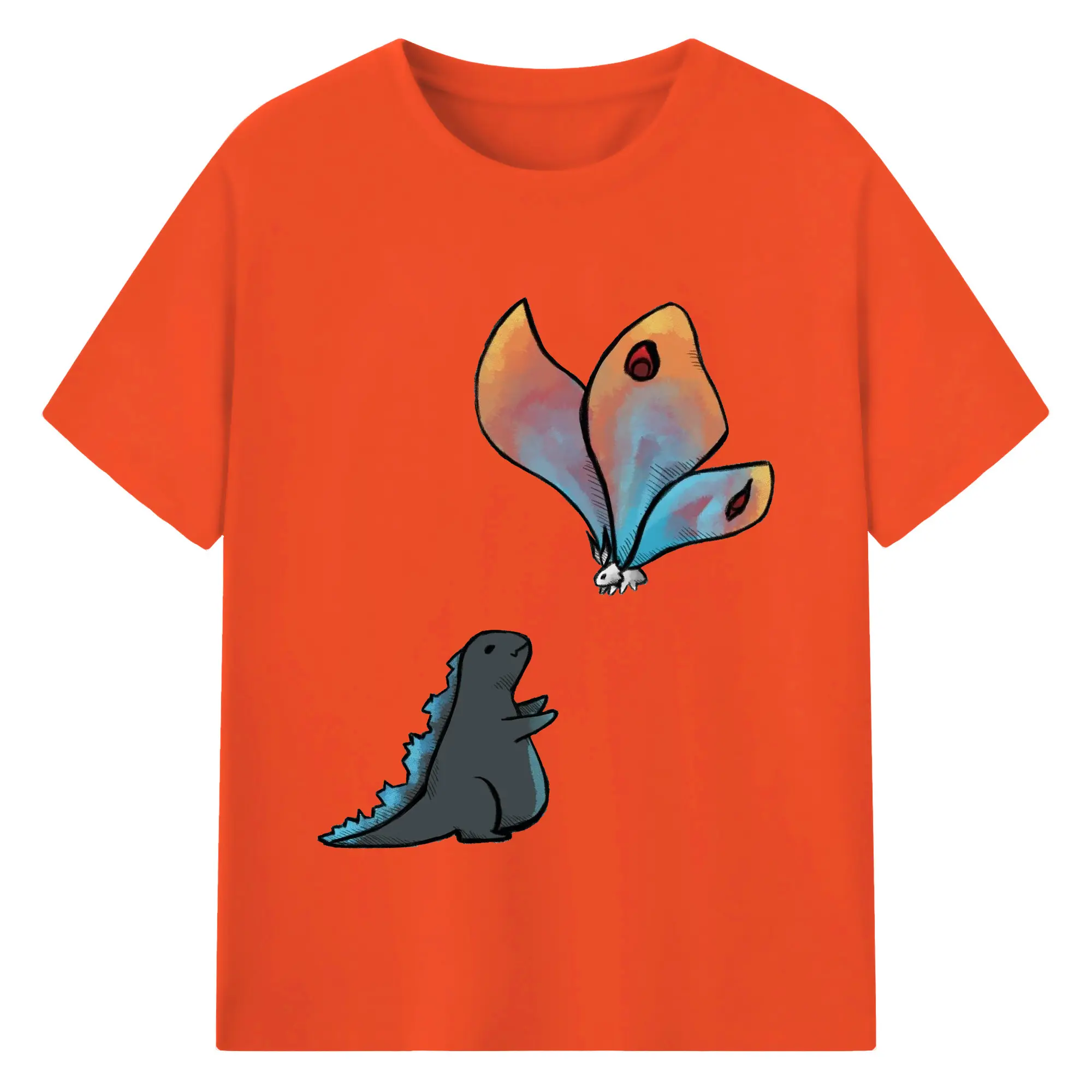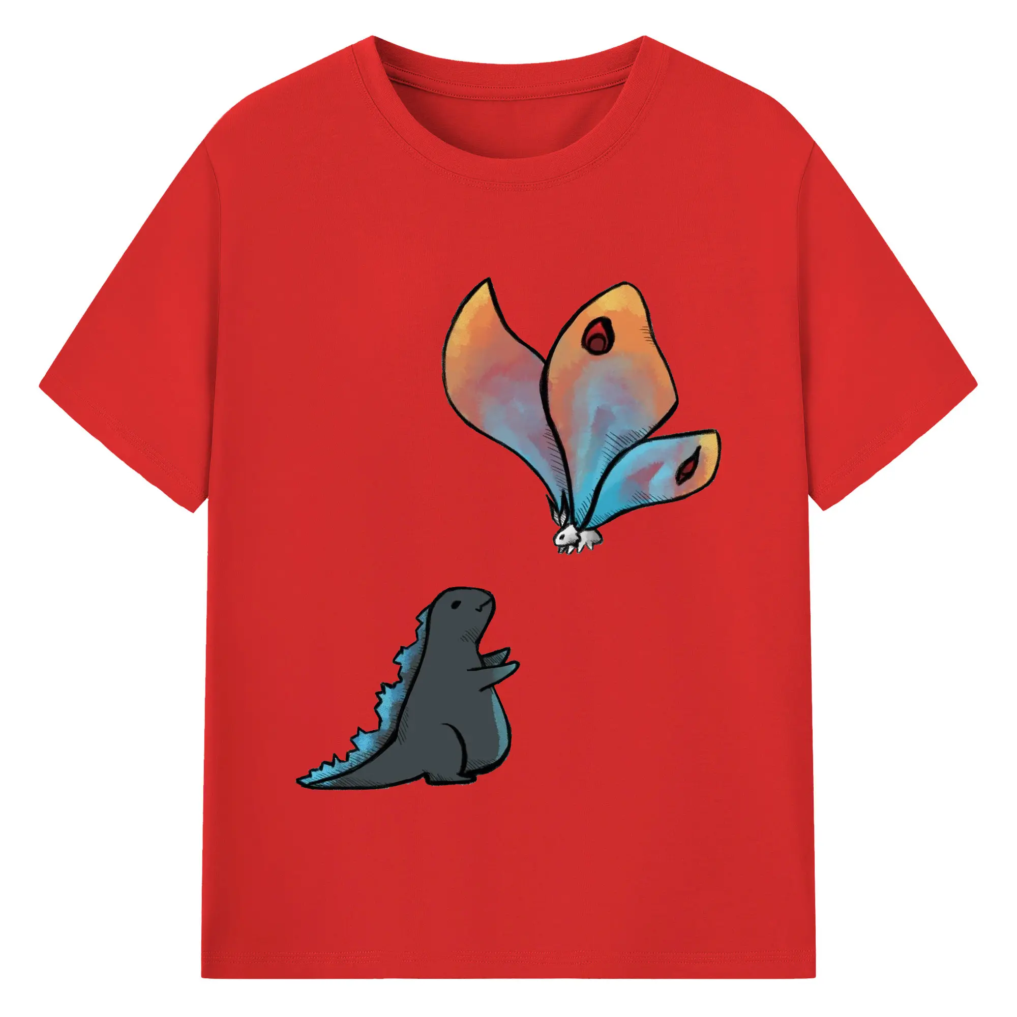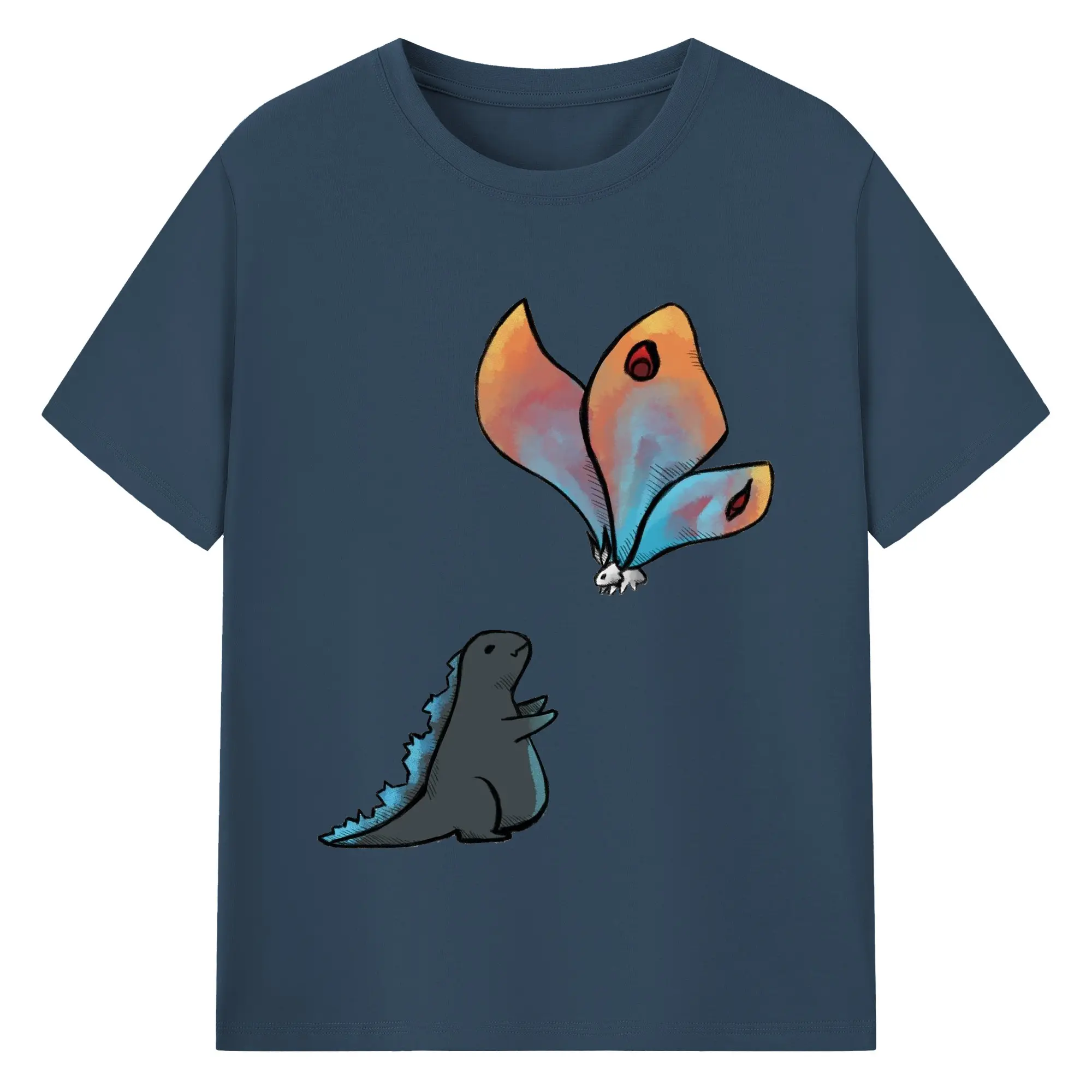 ゴジラの食事タイム - 綿100% 半袖Tシャツ ・ フロントプリント ・ 快適 通気性 ・ 日常使い 散歩 スポーツ用