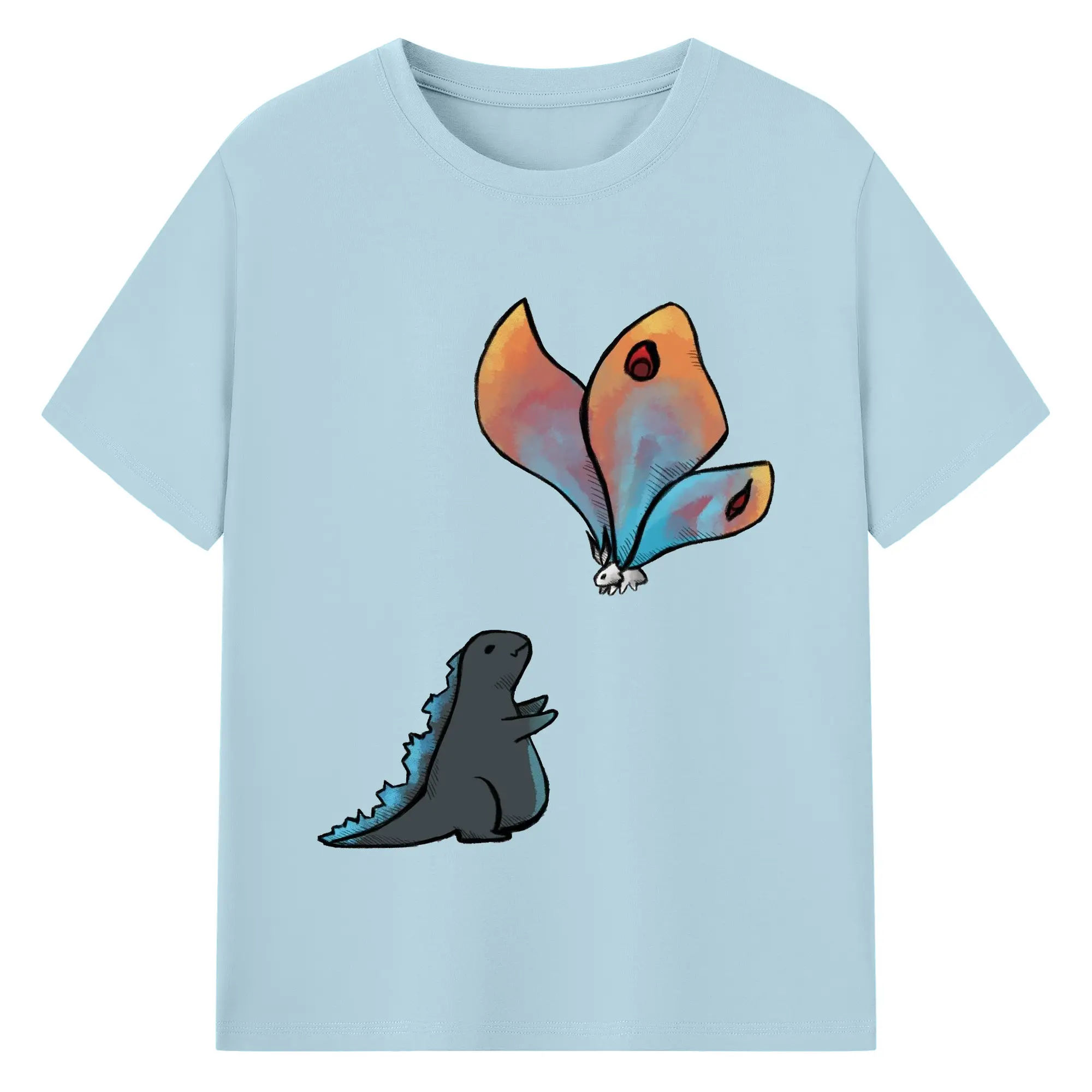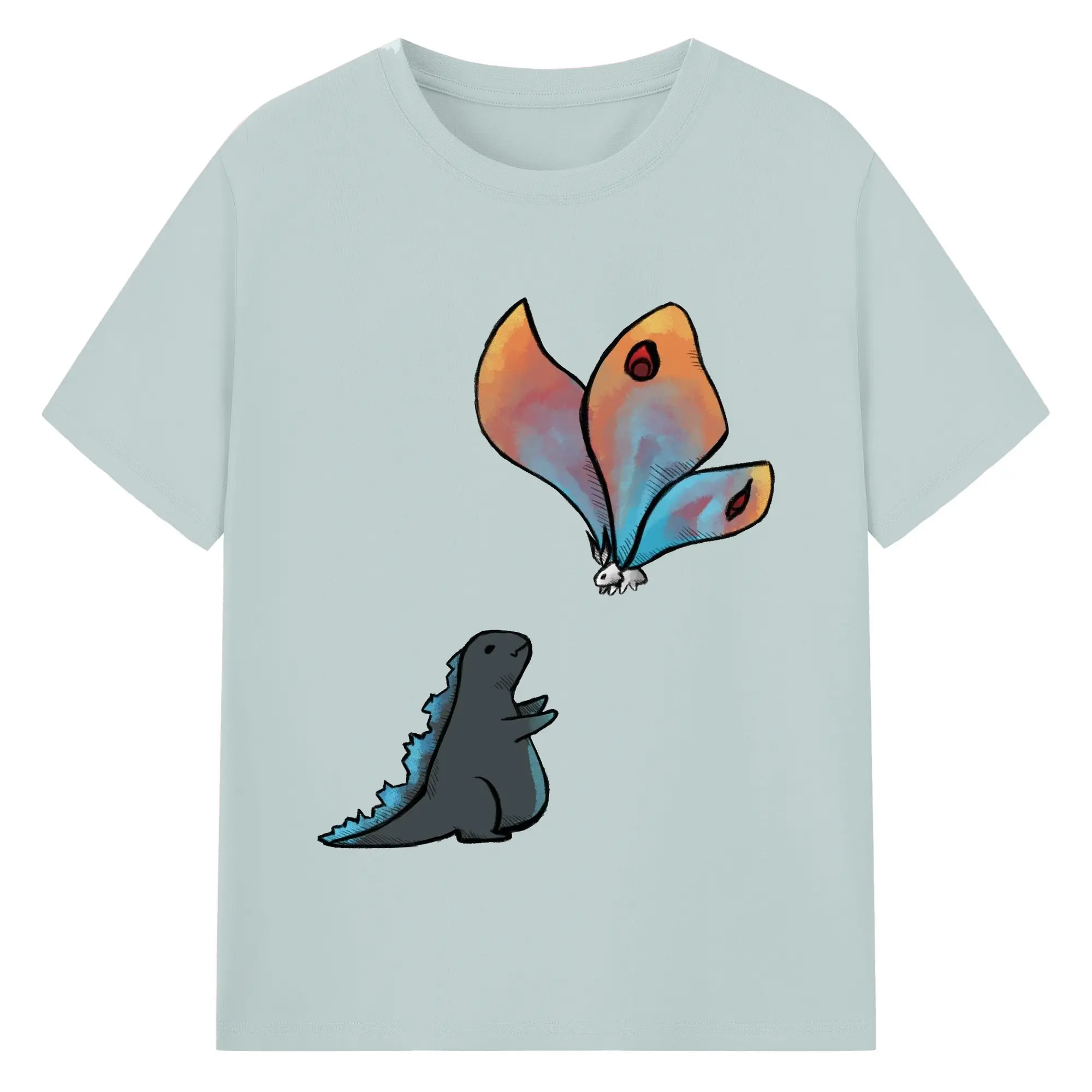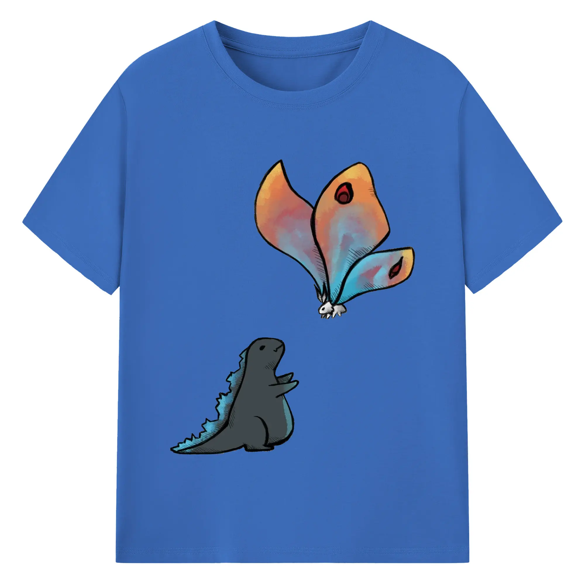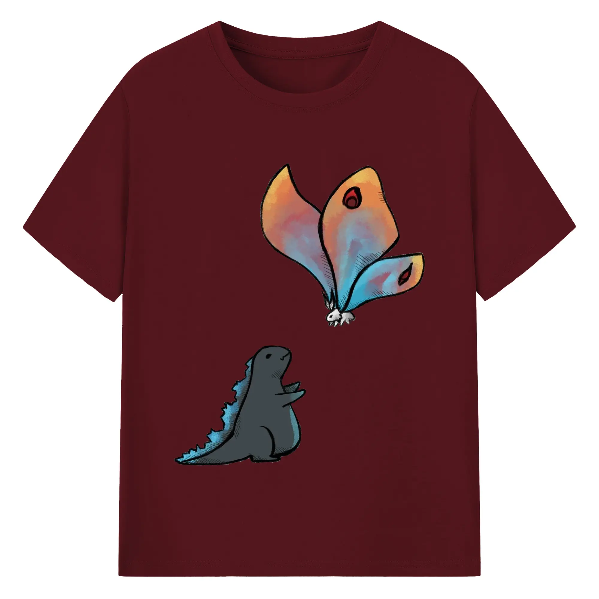 ゴジラの食事タイム - 綿100% 半袖Tシャツ ・ フロントプリント ・ 快適 通気性 ・ 日常使い 散歩 スポーツ用