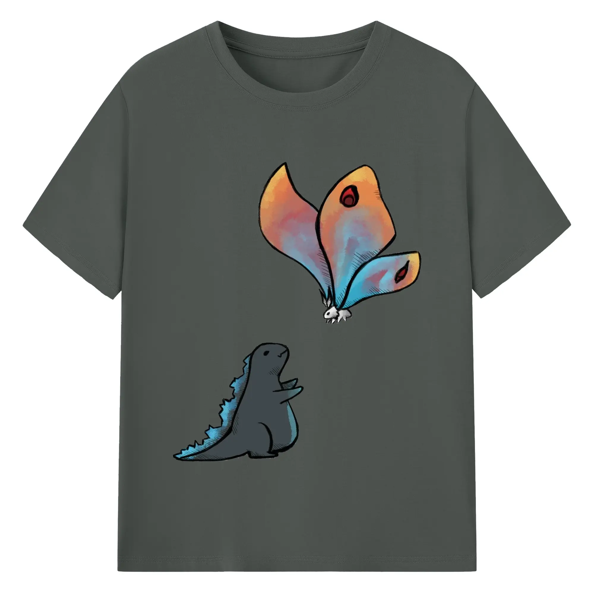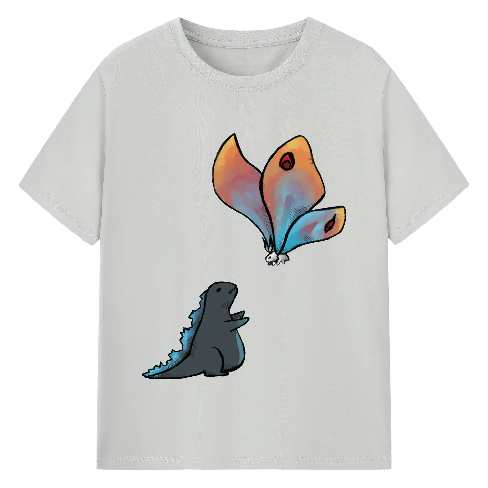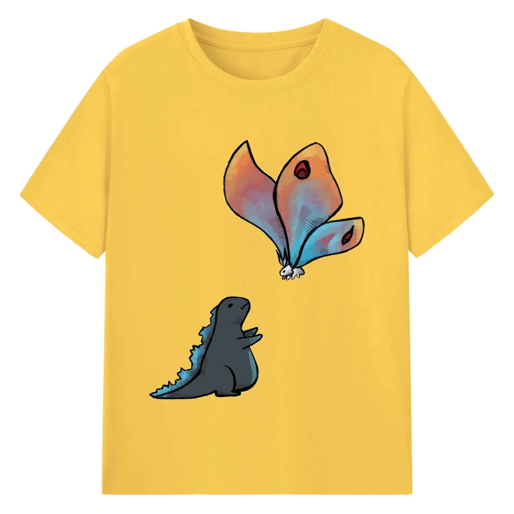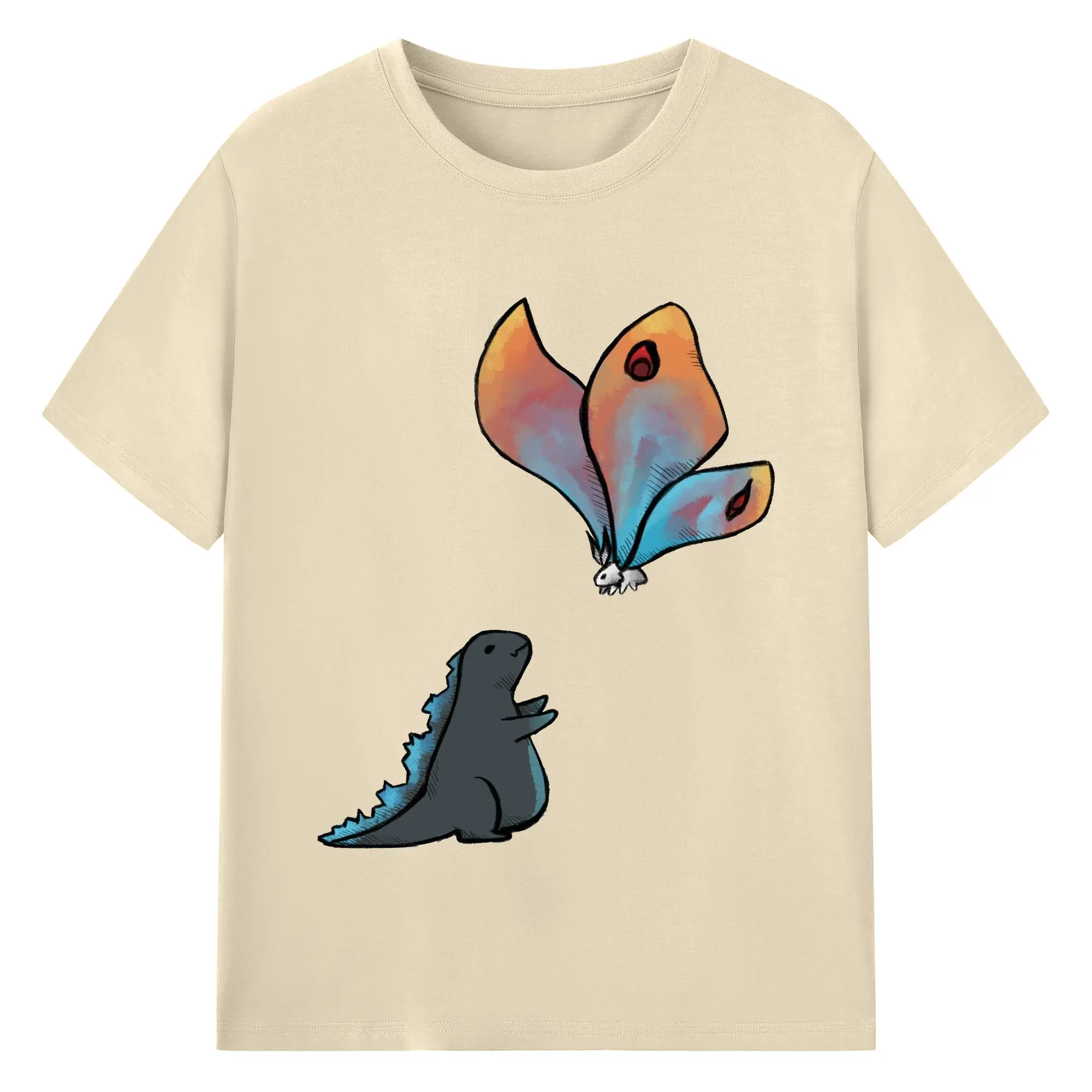 ゴジラとモスラ ゴジラの進化 ゴジラの足音 - 綿100% 半袖Tシャツ ・ フロントプリント ・ 快適 通気性 ・ 日常使い 散歩 スポーツ用