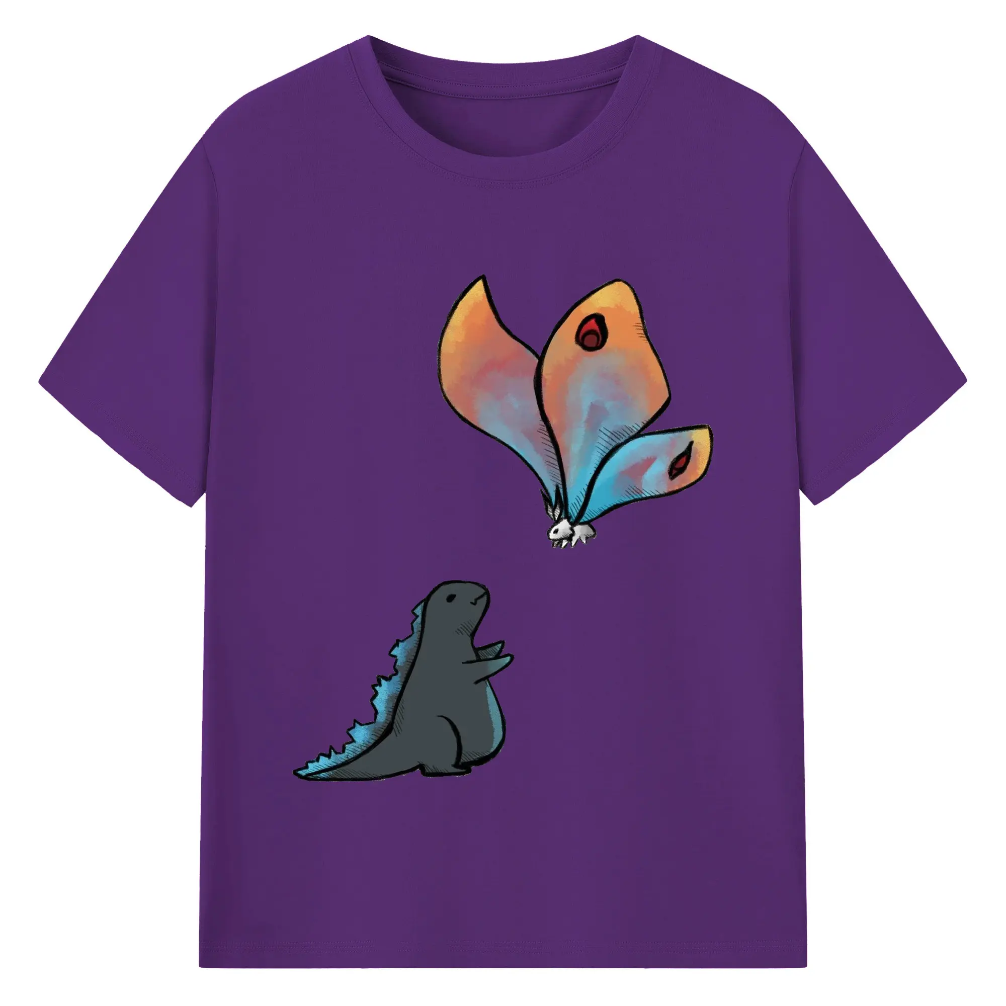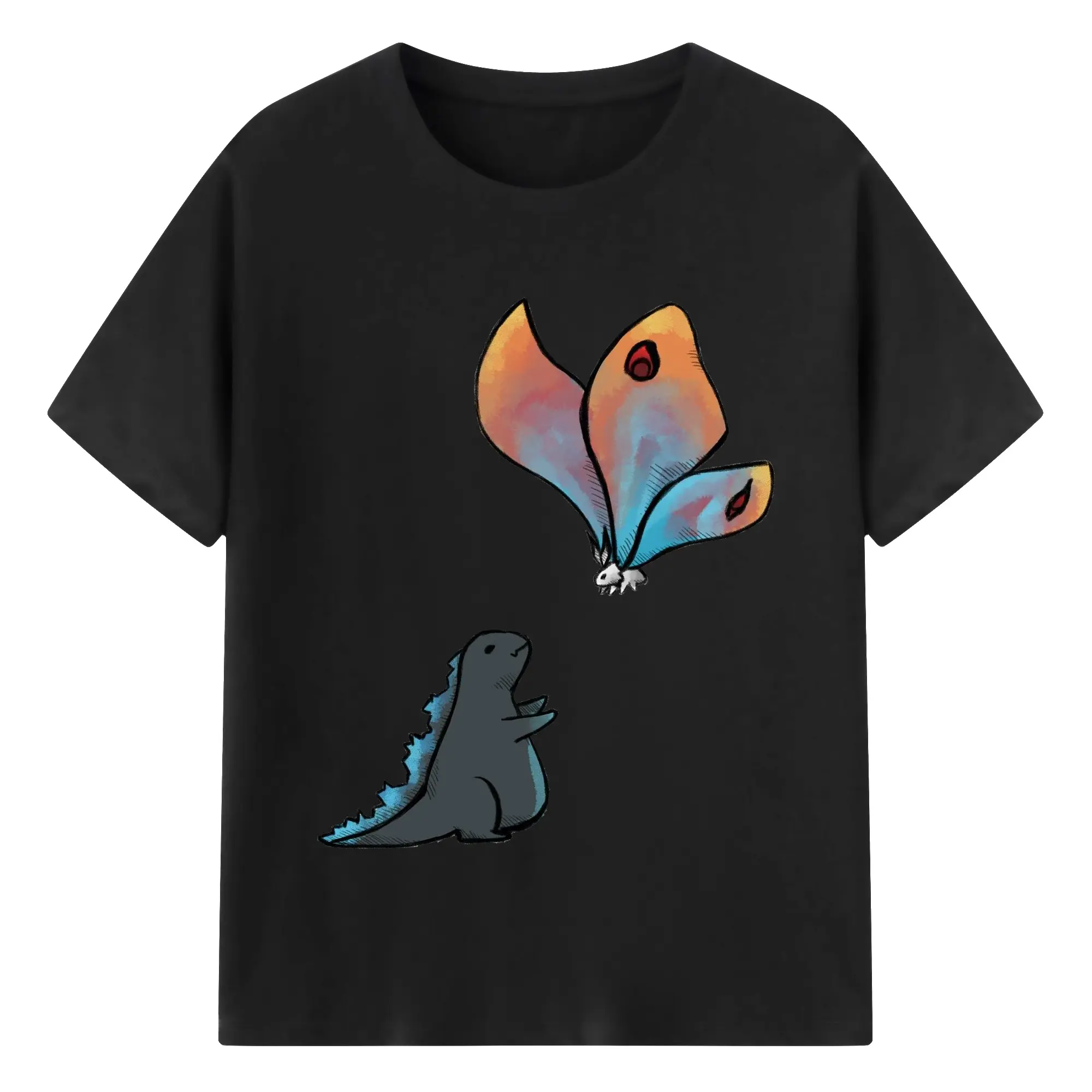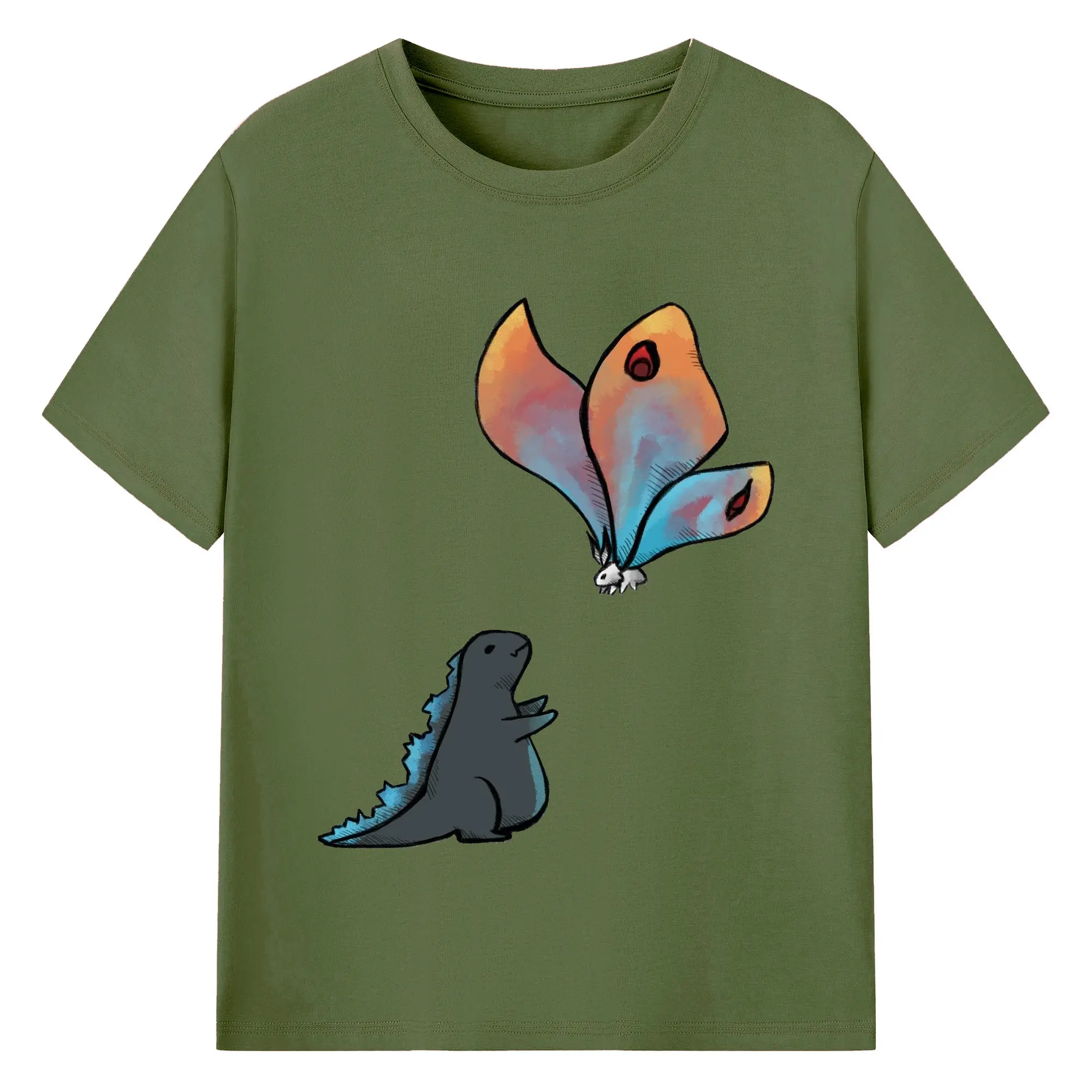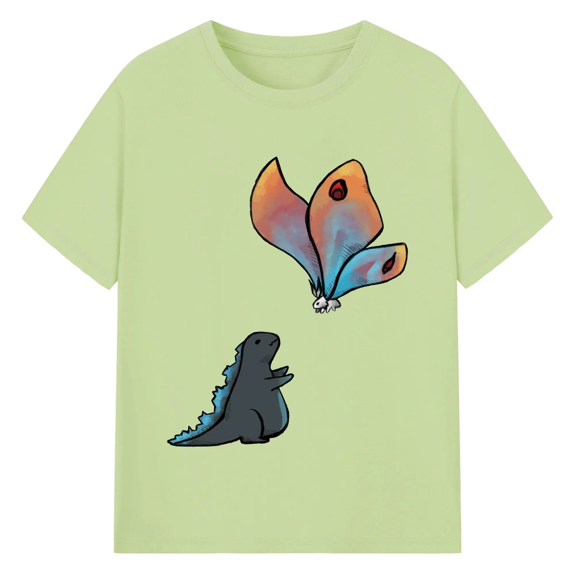 ゴジラとモスラ ゴジラの進化 ゴジラの足音 - 綿100% 半袖Tシャツ ・ フロントプリント ・ 快適 通気性 ・ 日常使い 散歩 スポーツ用