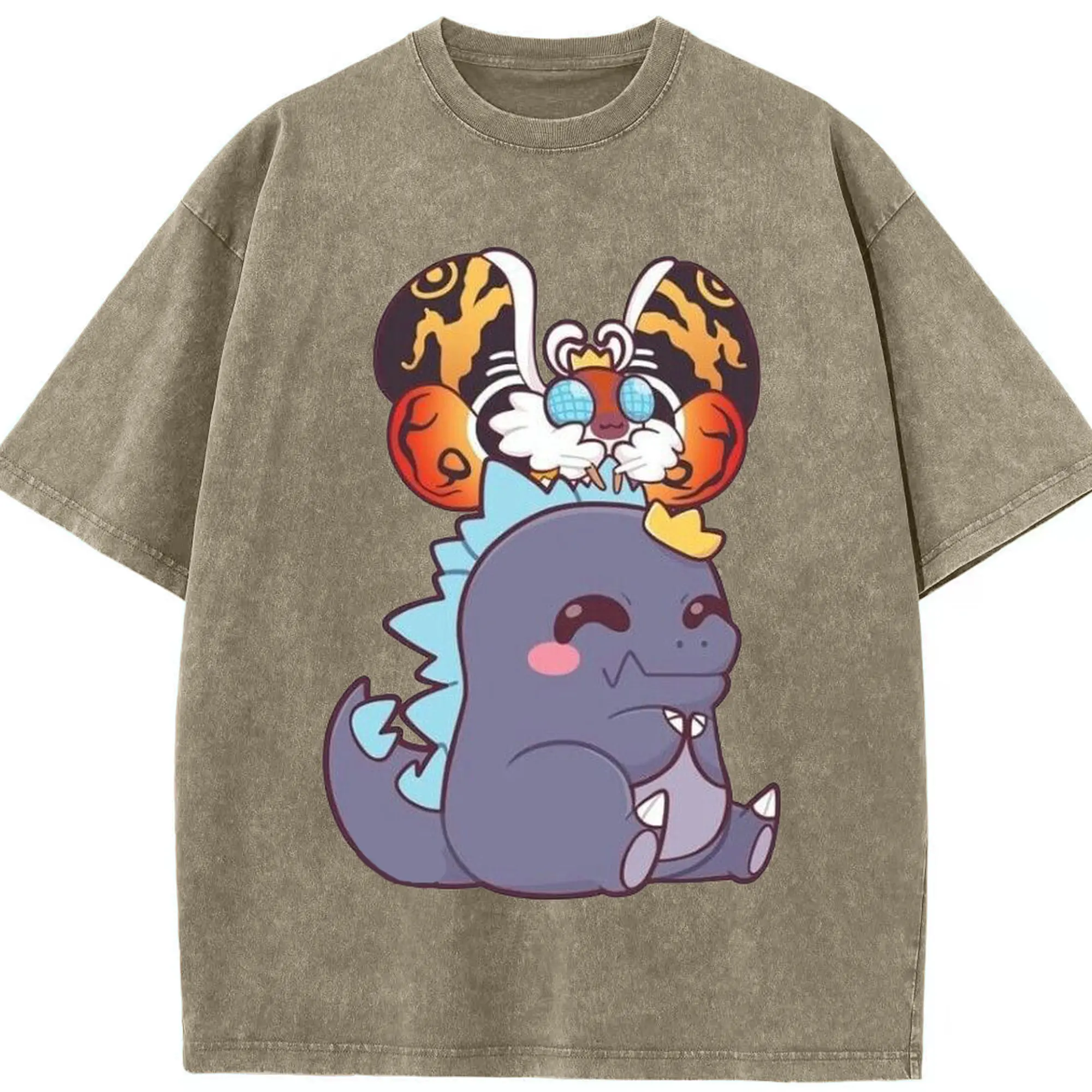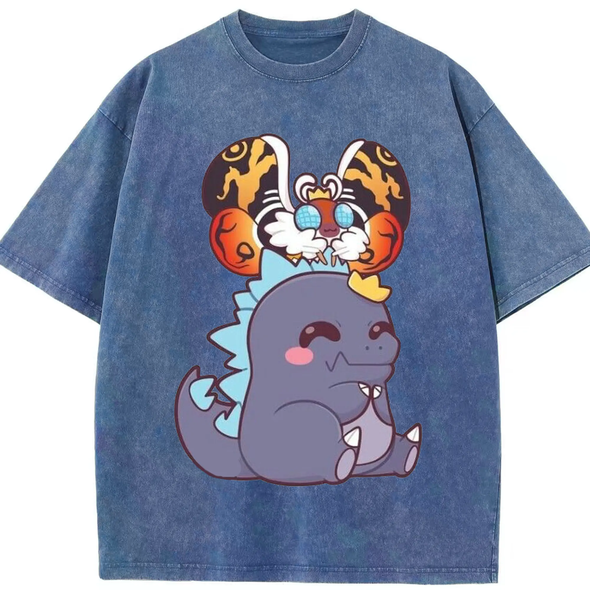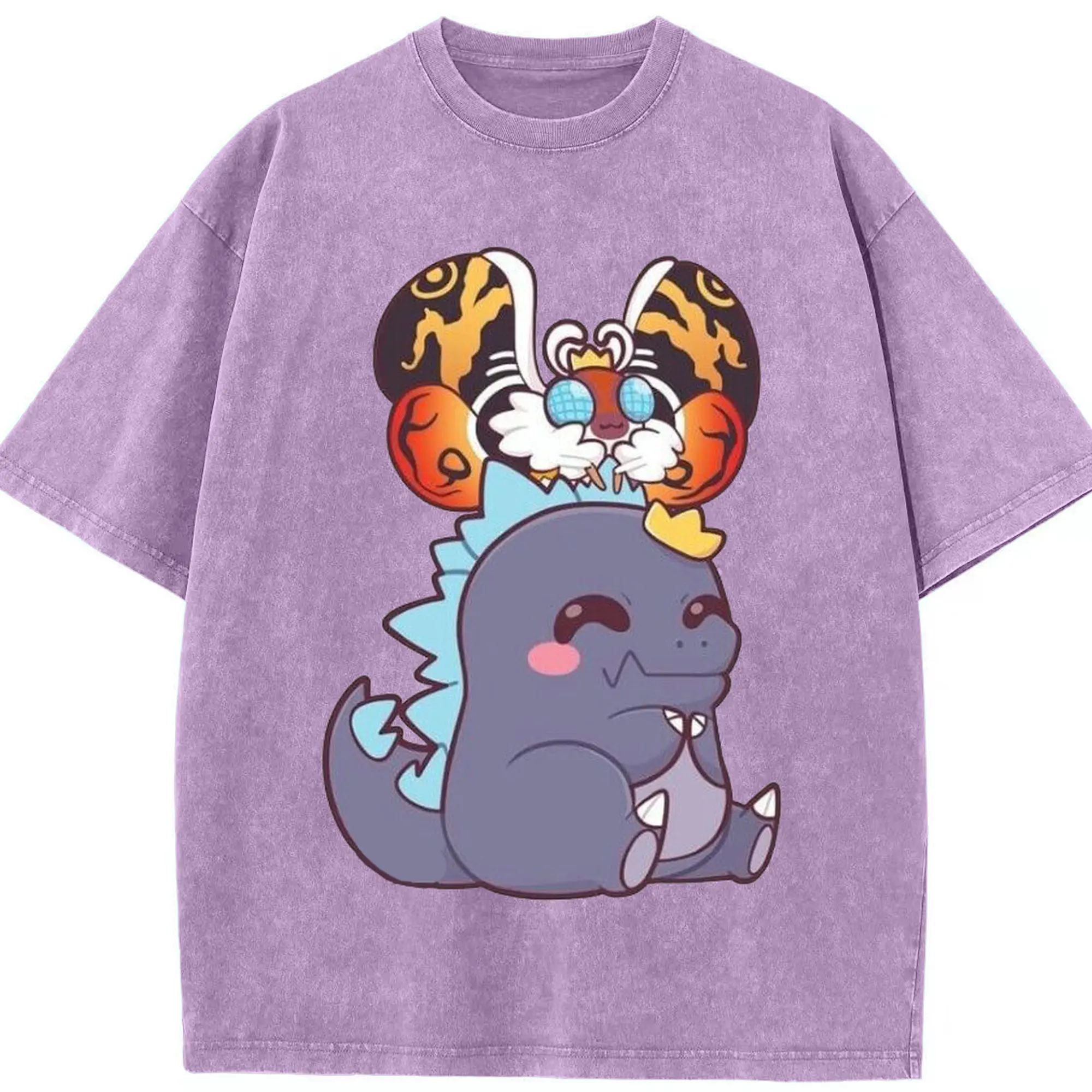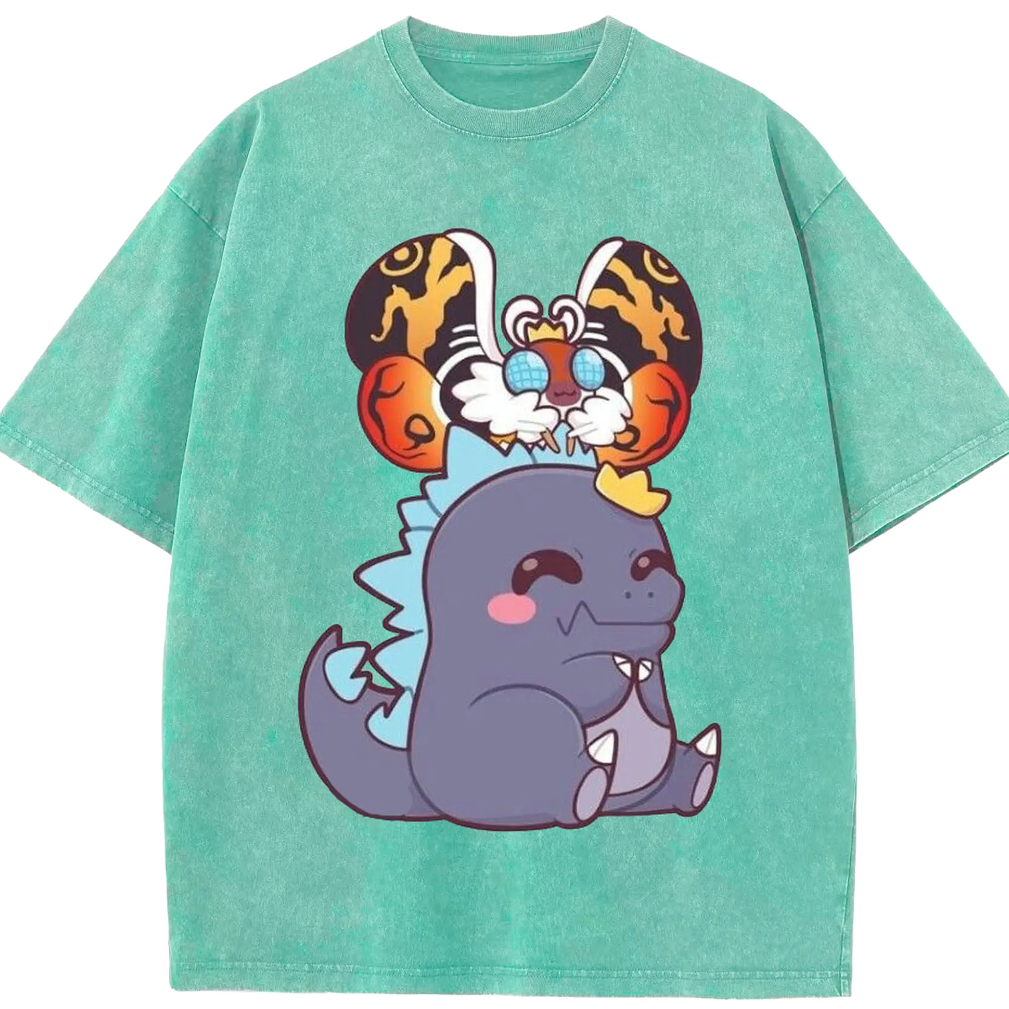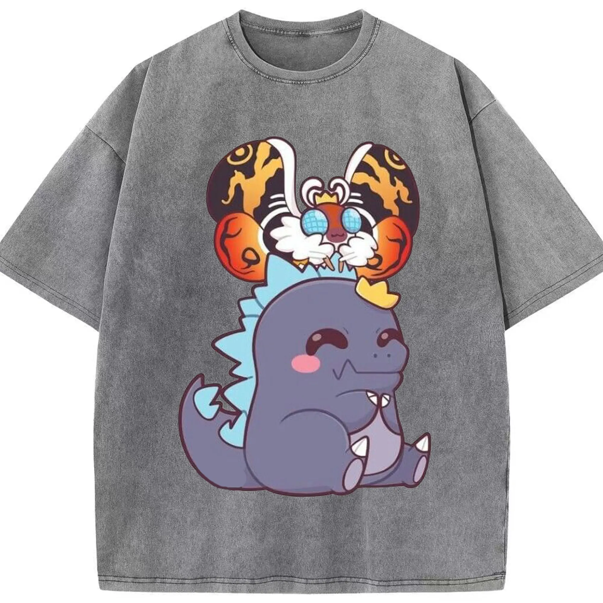 ゴジラとモスラ モスラの守護精霊 - 綿100% ヴィンテージ風 半袖Tシャツ ・ フロントプリント ・ 柔らか肌触り ・ 通気性 快適 ・ スポーツ カジュアル 外出用