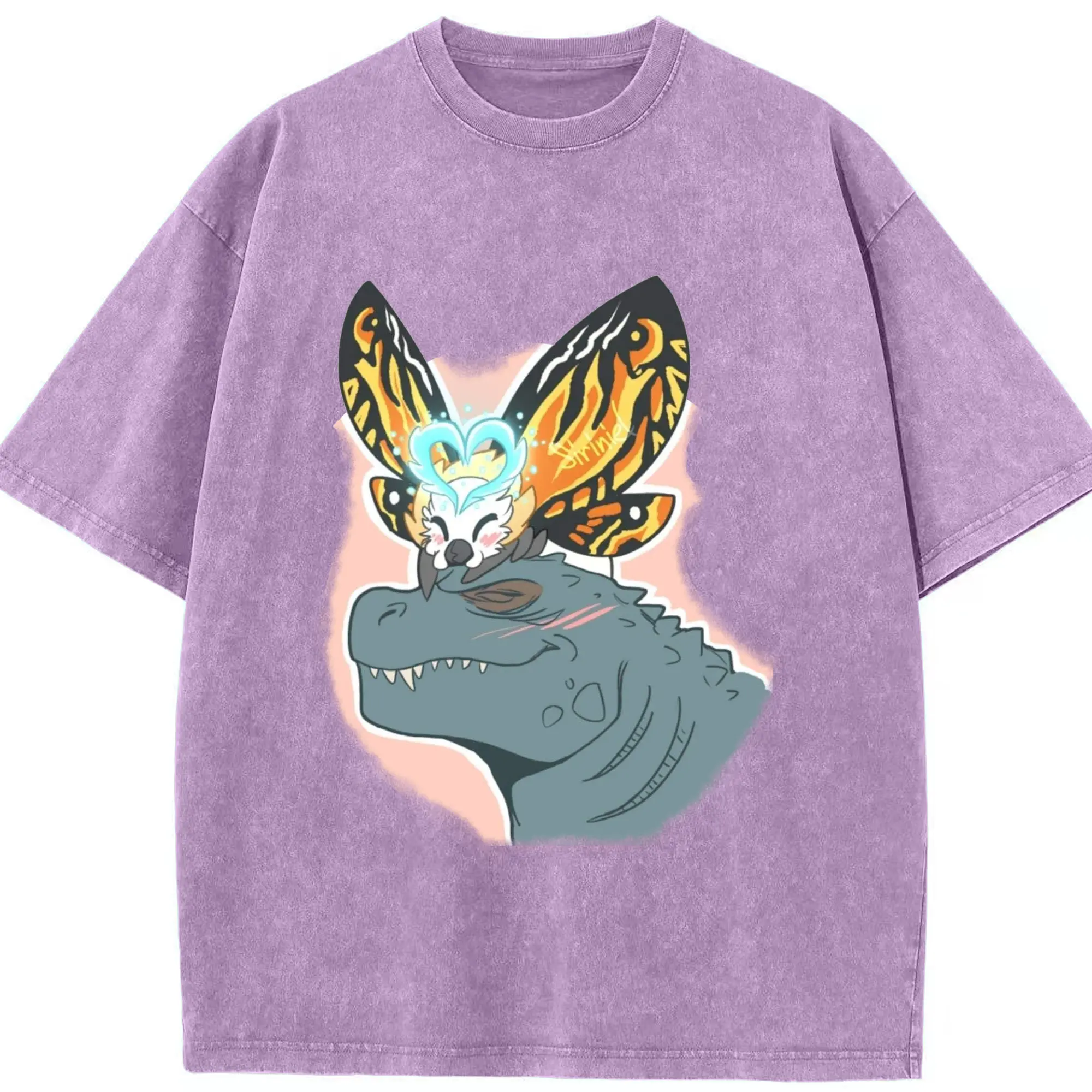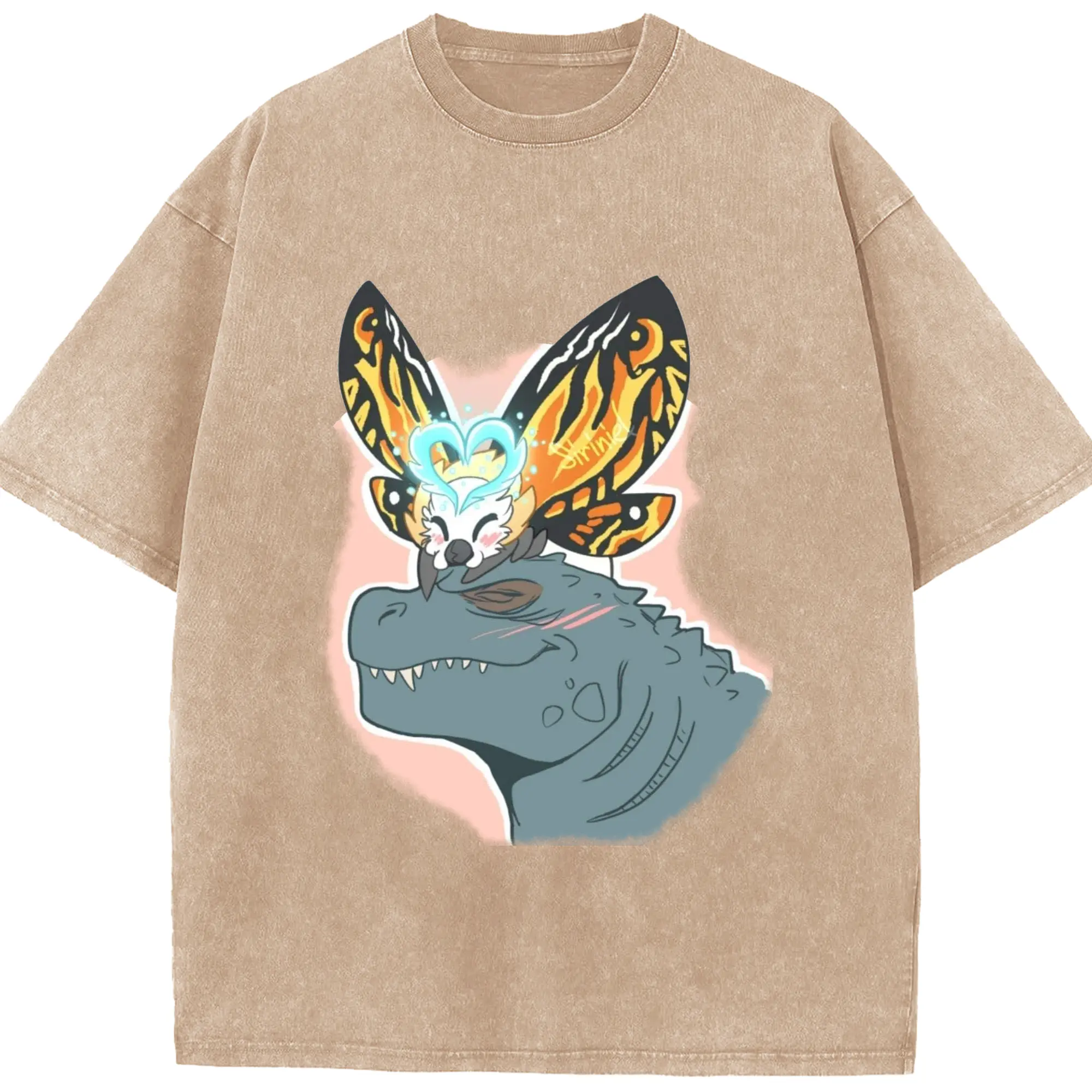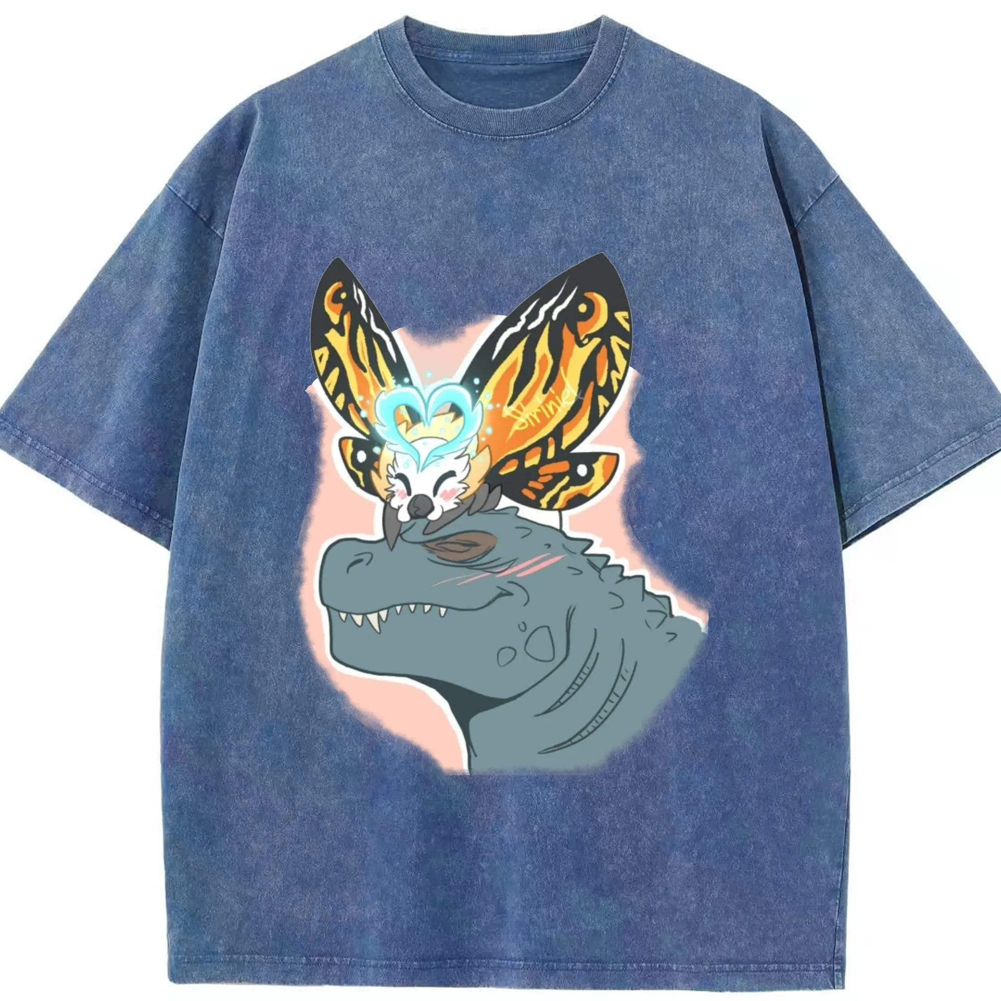 ゴジラとモスラ モスラの羽音 - 綿100% ヴィンテージ風 半袖Tシャツ ・ フロントプリント ・ 柔らか肌触り ・ 通気性 快適 ・ スポーツ カジュアル 外出用