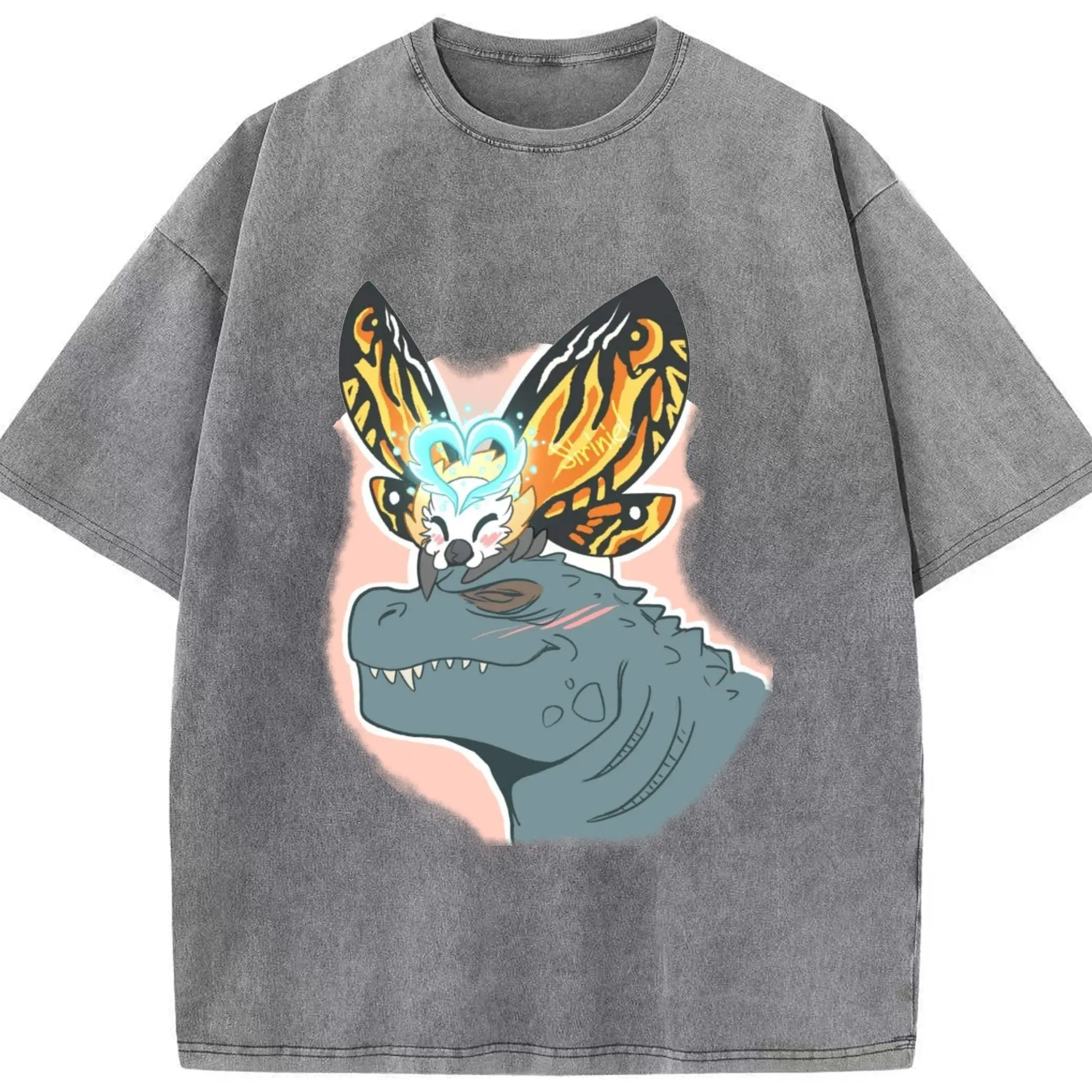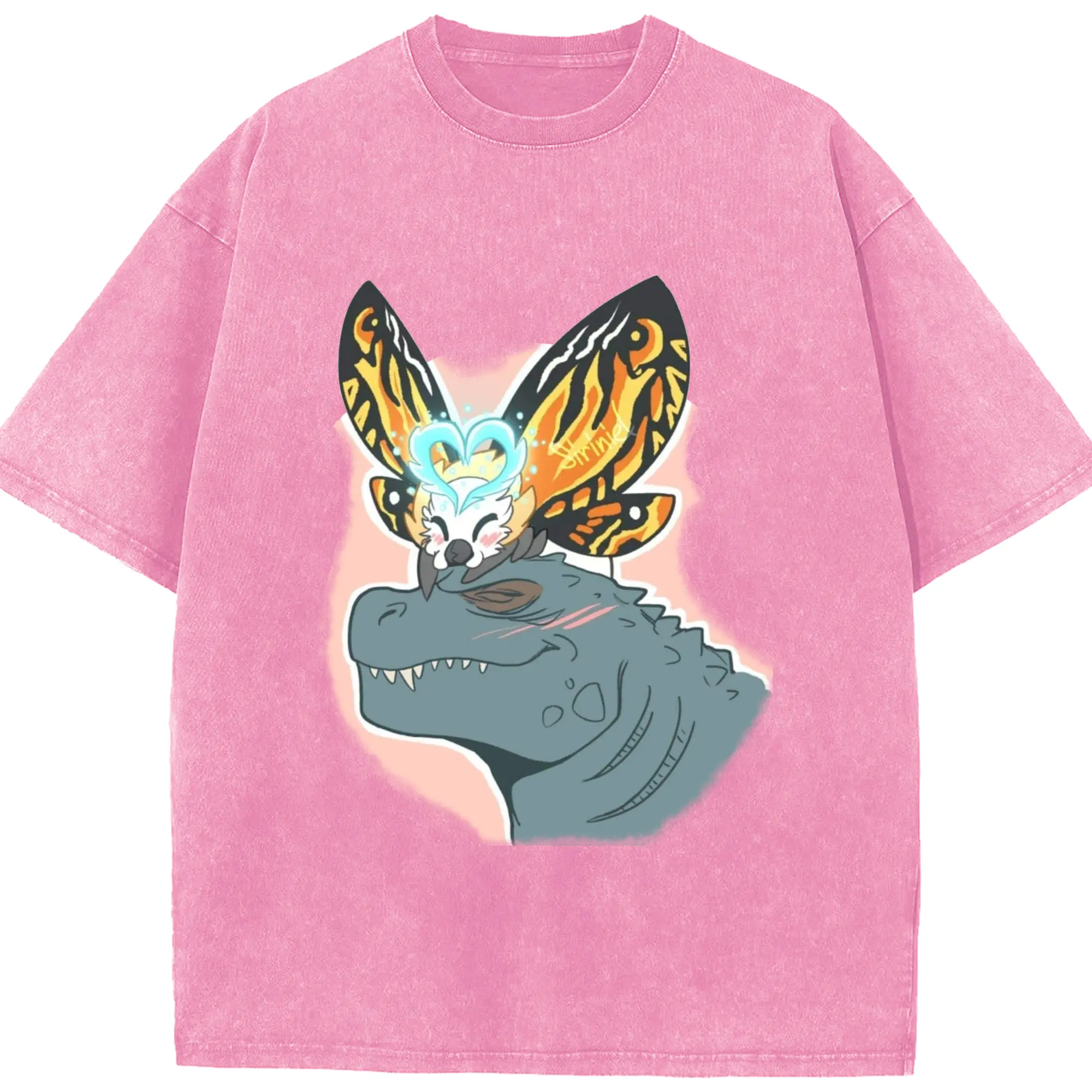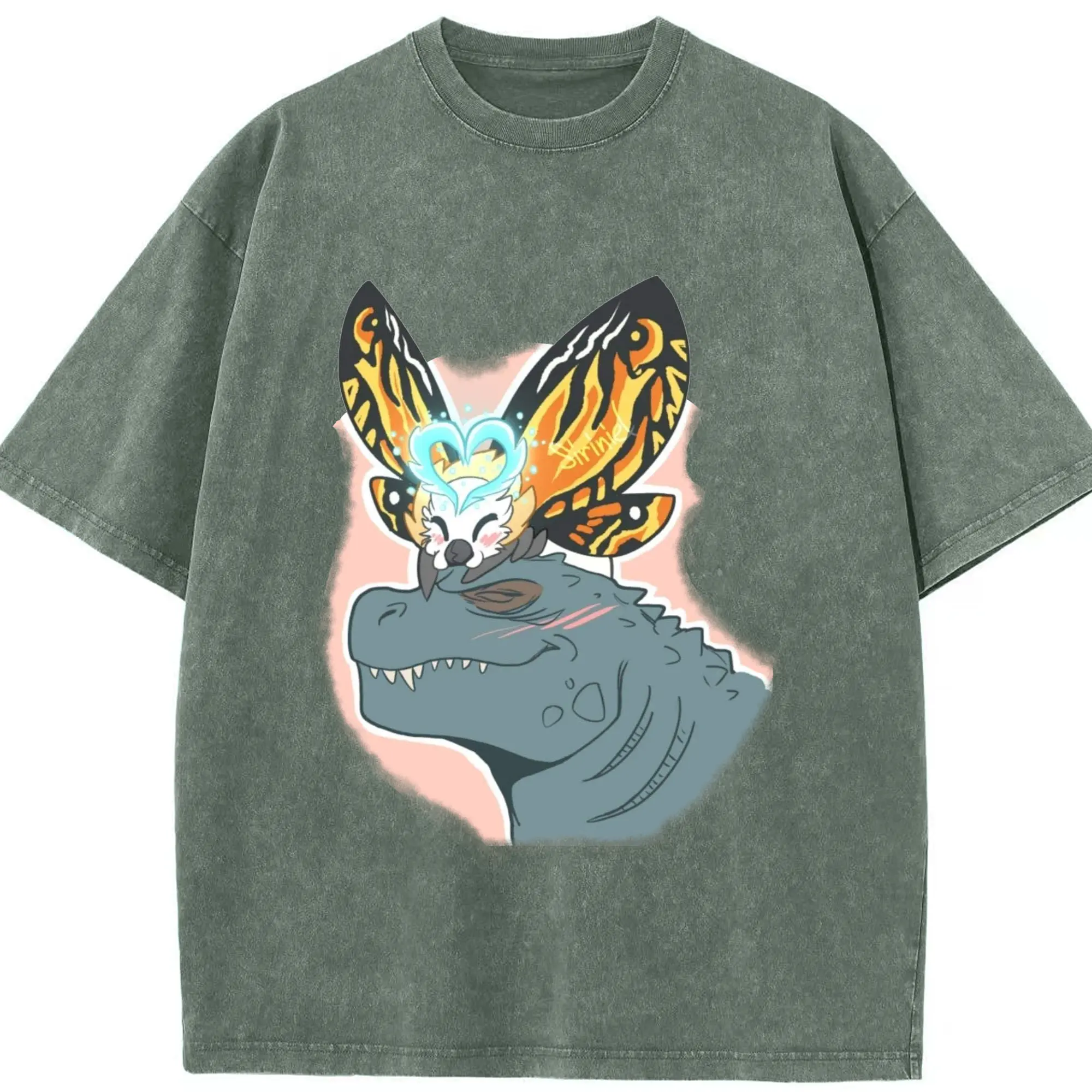 ゴジラとモスラ モスラの羽音 - 綿100% ヴィンテージ風 半袖Tシャツ ・ フロントプリント ・ 柔らか肌触り ・ 通気性 快適 ・ スポーツ カジュアル 外出用
