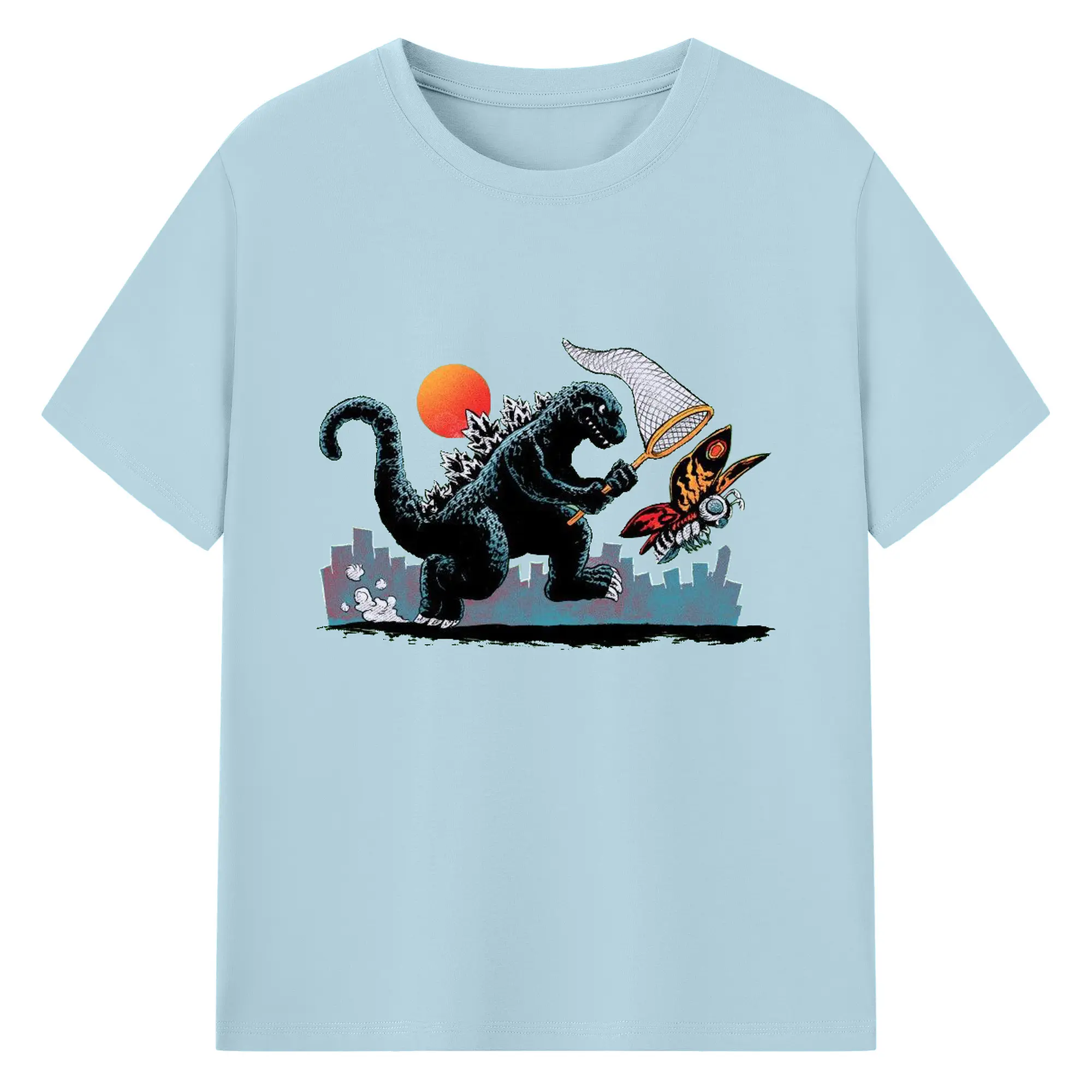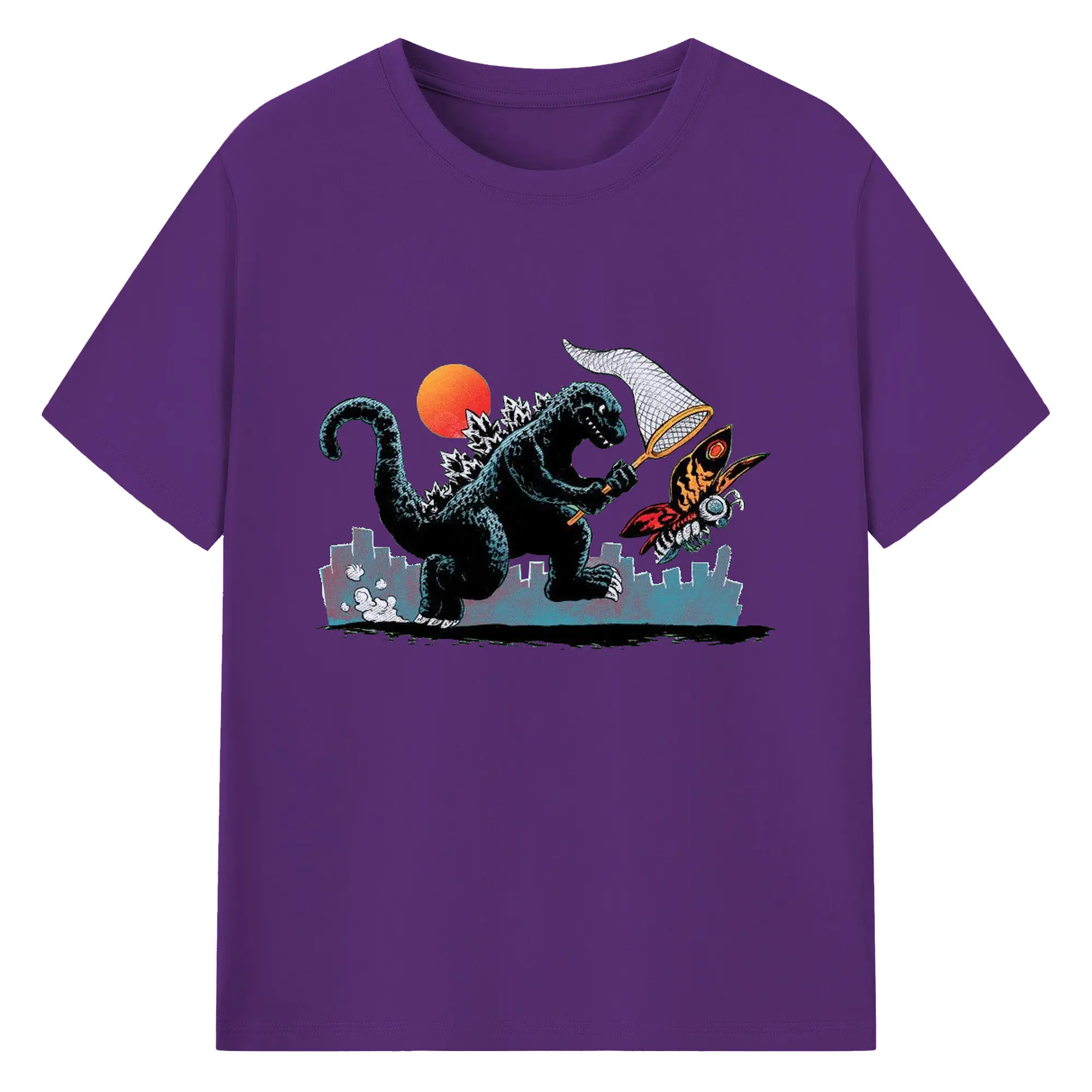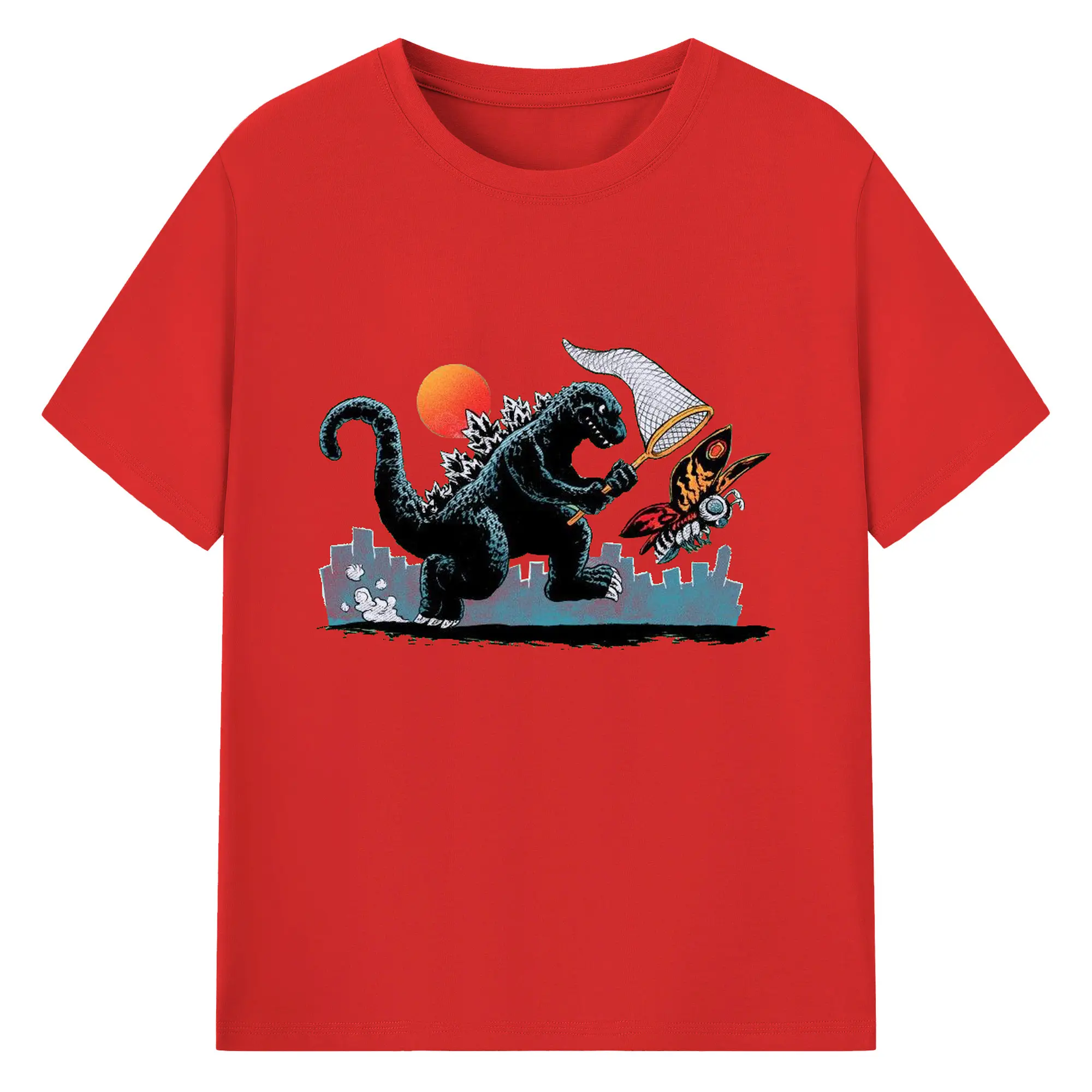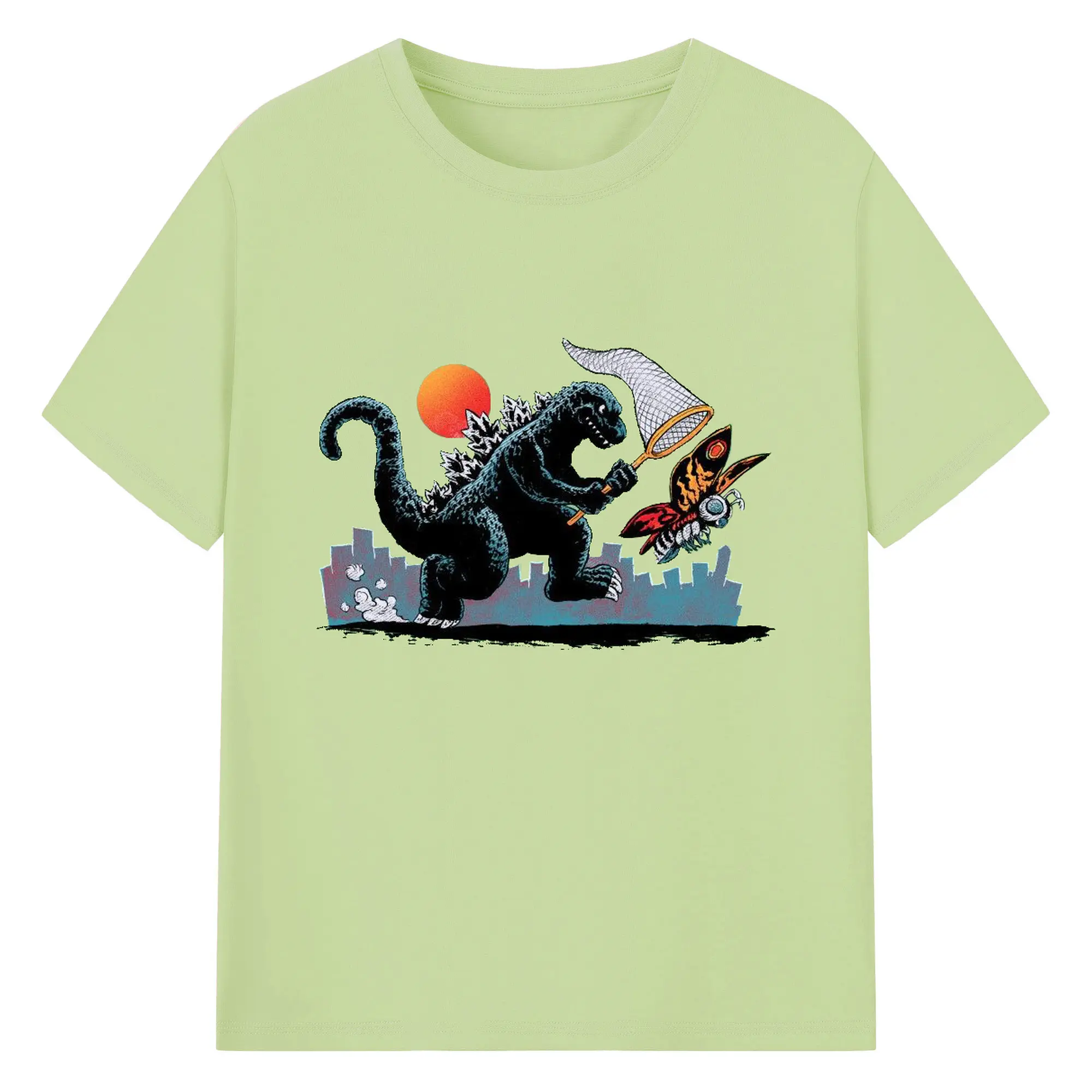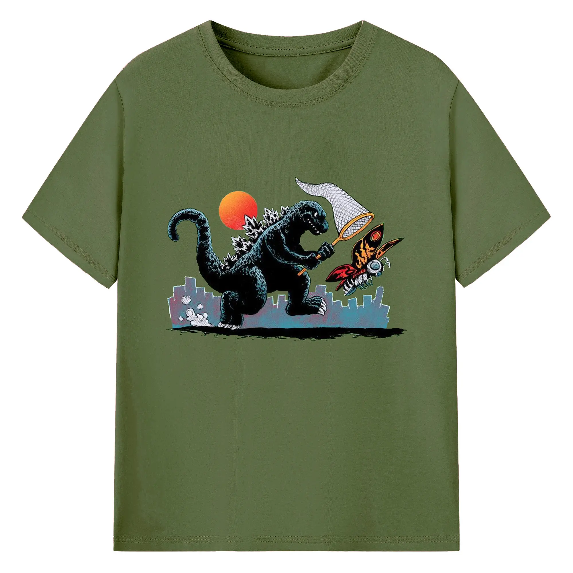 ゴジラの食事タイム - 綿100% 半袖Tシャツ ・ フロントプリント ・ 快適 通気性 ・ 日常使い 散歩 スポーツ用
