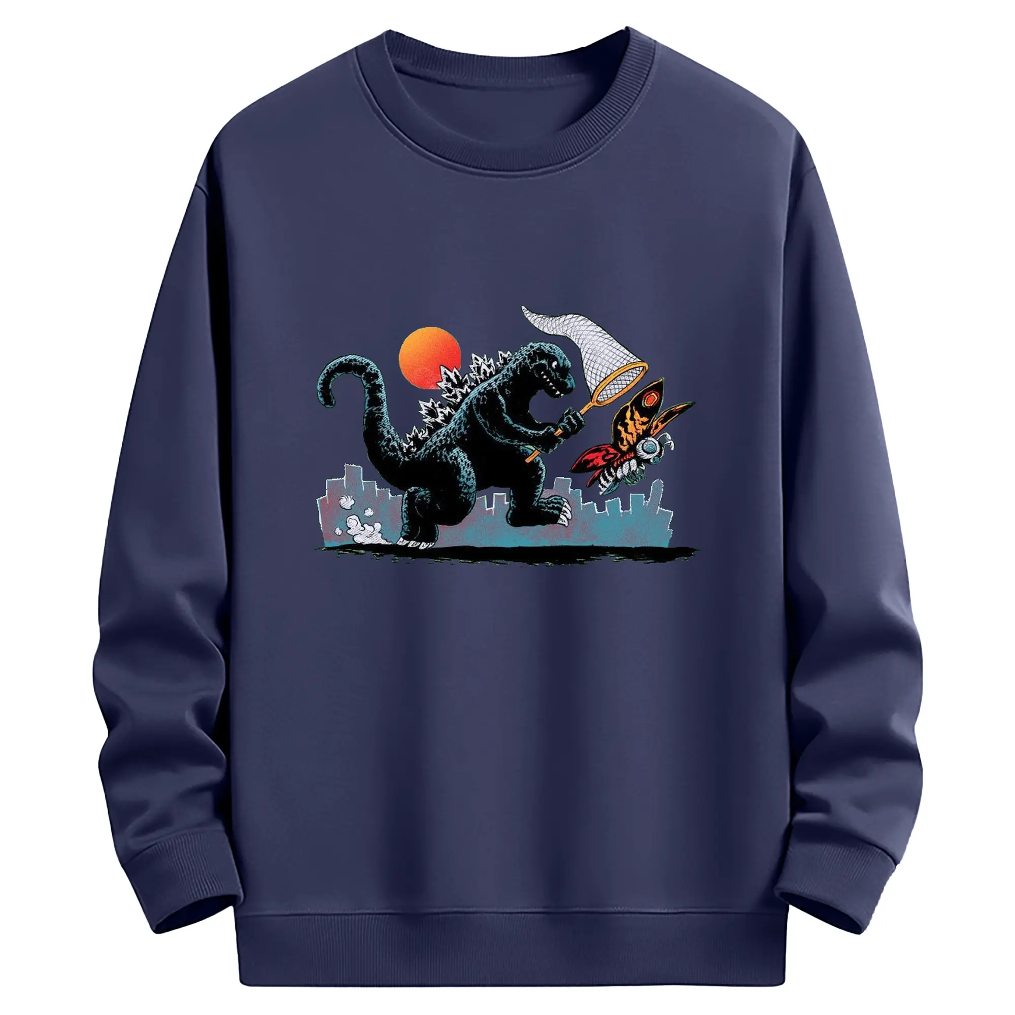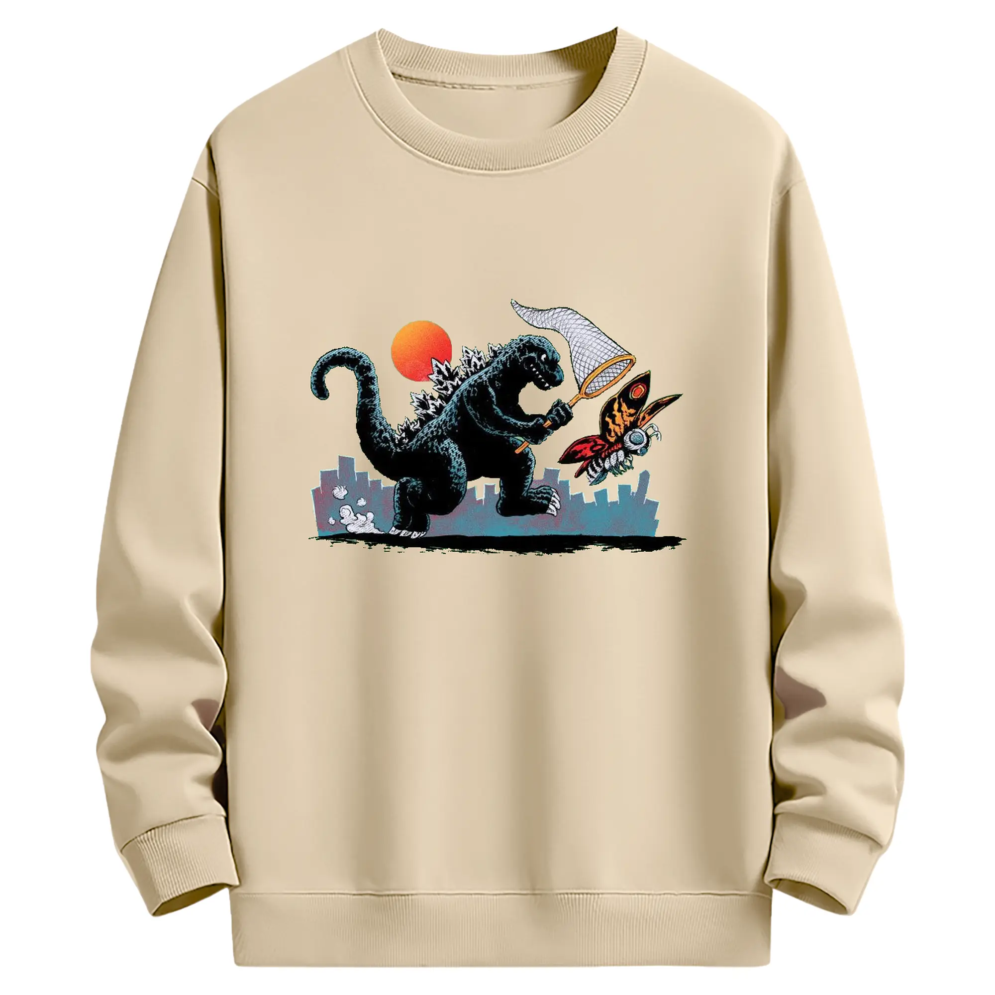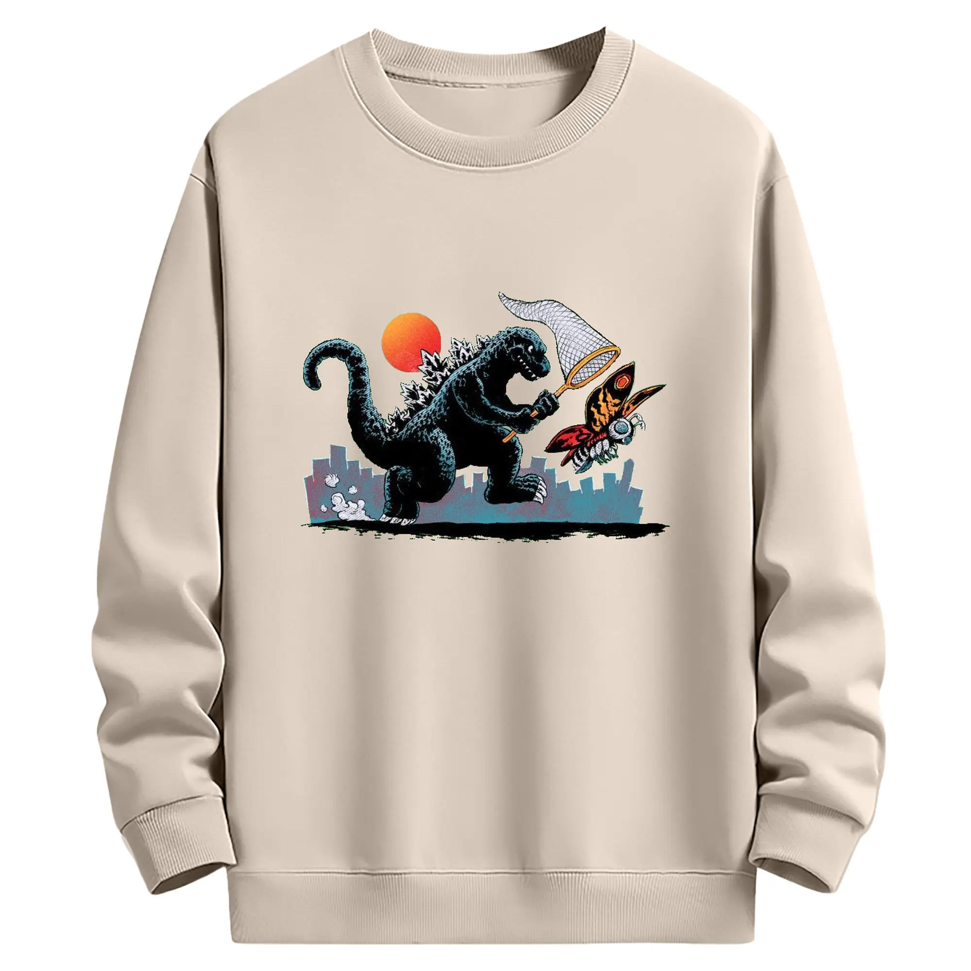 ゴジラとモスラ 怪獣アート - 高品質 クルーネック スウェット ・ コットン59% ポリエステル41% ・ ユニセックス 長袖 トレーナー ・ カジュアル デイリー スポーツ 散歩用